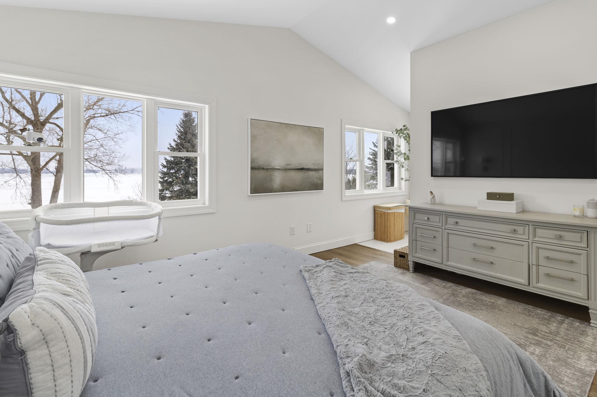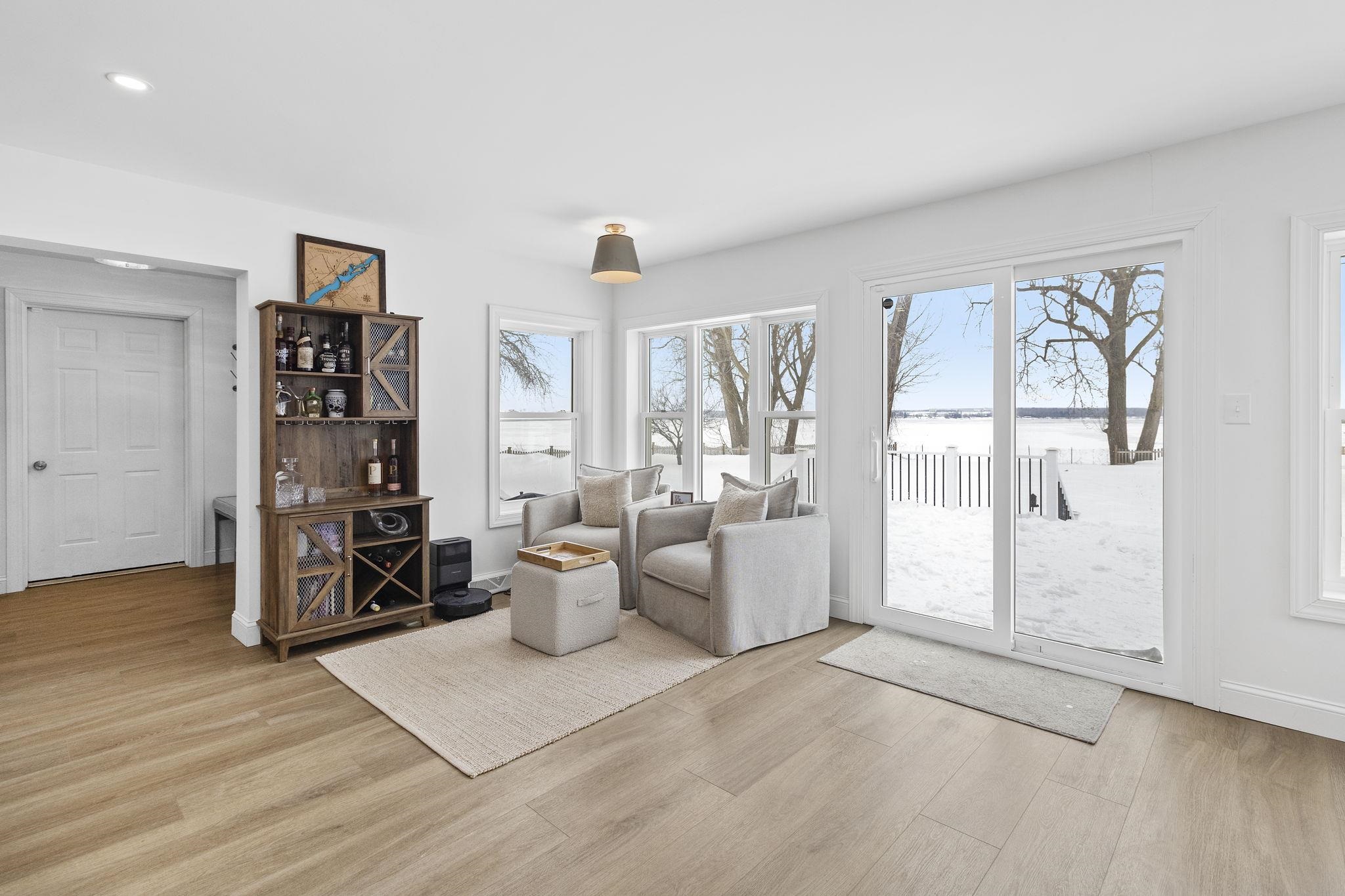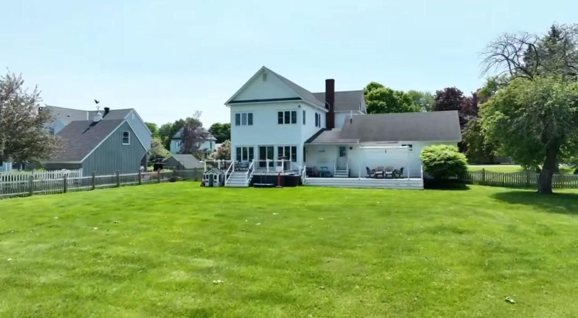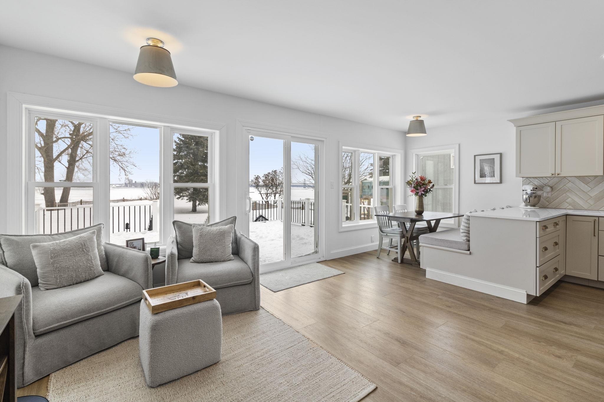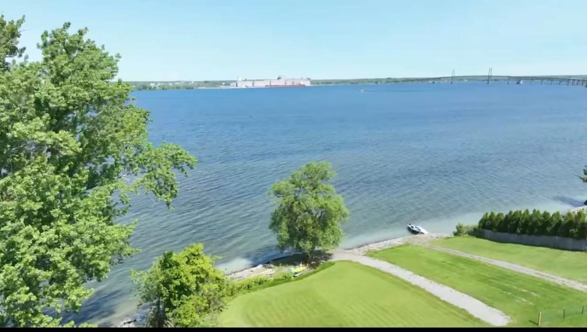 Luxury riverfront living awaits. This stunningly fully furnished remodeled 5-bedroom, 3- bath home boast 125 feet of St. Lawrence River frontage on a sprawling .91 acres nestled in a highly desirable neighborhood. From the moment you step inside, you'll be captivated by the top-of-the-line finishes, elegant luxury vinyl plank flooring, and meticulously tiled bathrooms. Imagine entertaining in the grand double living room with its cozy gas fireplace, or hosting memorable dinners in the formal dining room. The chef-inspired kitchen boasts quartz countertops, a farmhouse sink, custom wooden cabinets with hidden dishwasher and Pottery Barn Fixtures. Savor morning coffee or casual meals in the cozy breakfast nook or seating area off to the side with awe-inspiring river views, then finish your evening off when you step onto your expansive two tiered new composite deck with pergola taking in the memorable sunsets over the river. Down stairs also features a convenient laundry closet, new full bathroom, mudroom and plenty of closet space. Upstairs discover a master suite that offers spectacular river views and a beautifully appointed tile bathroom, with 4 additional bedrooms and another beautifully appointed full bathroom. This home has it all an oversized attached garage with ample storage and parking, newer roof, newer furnace, central air and fenced in yard. Don't miss your opportunity to own your piece of riverfront paradise.