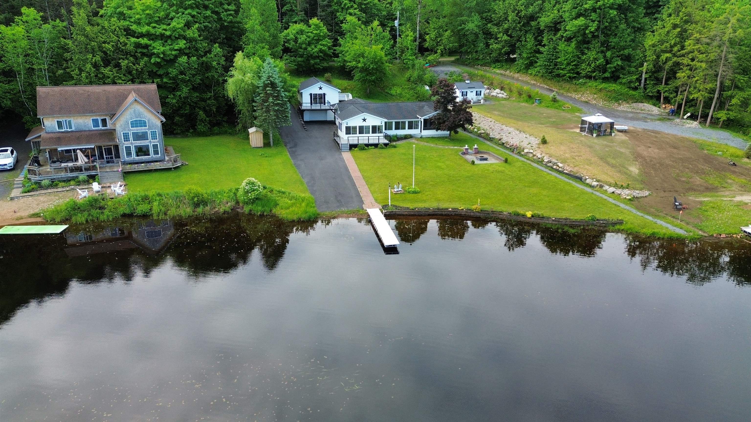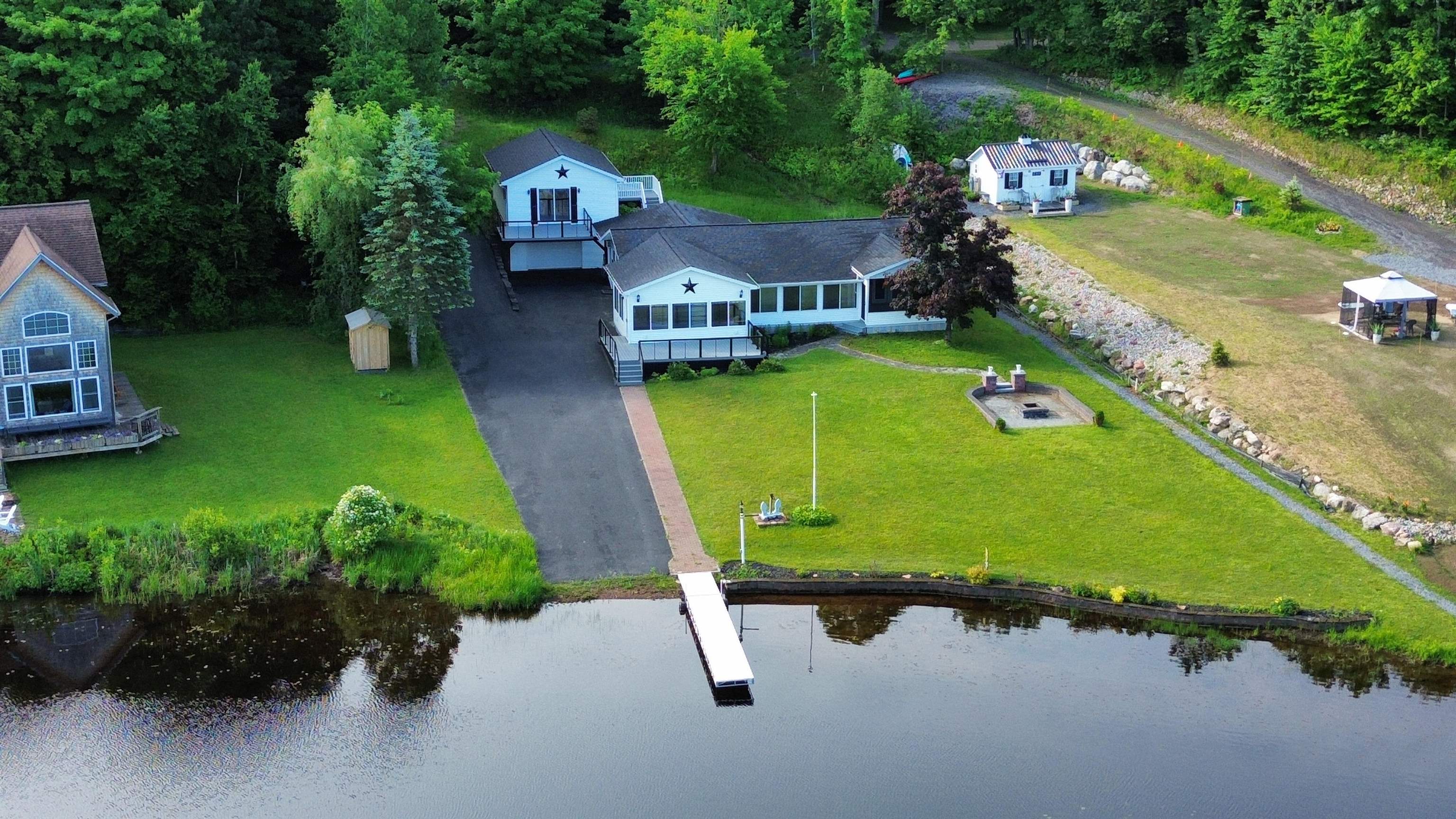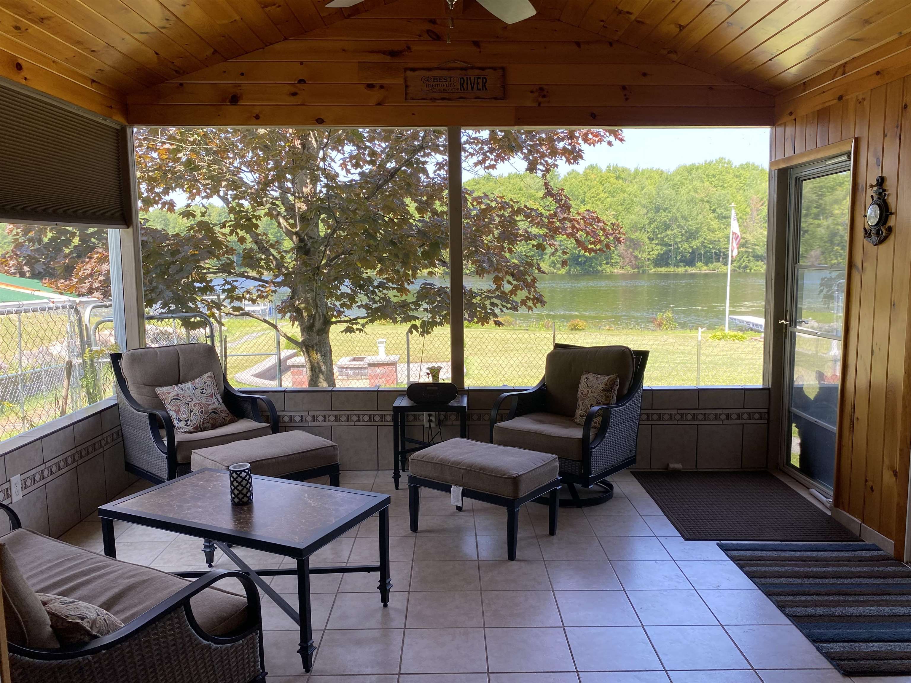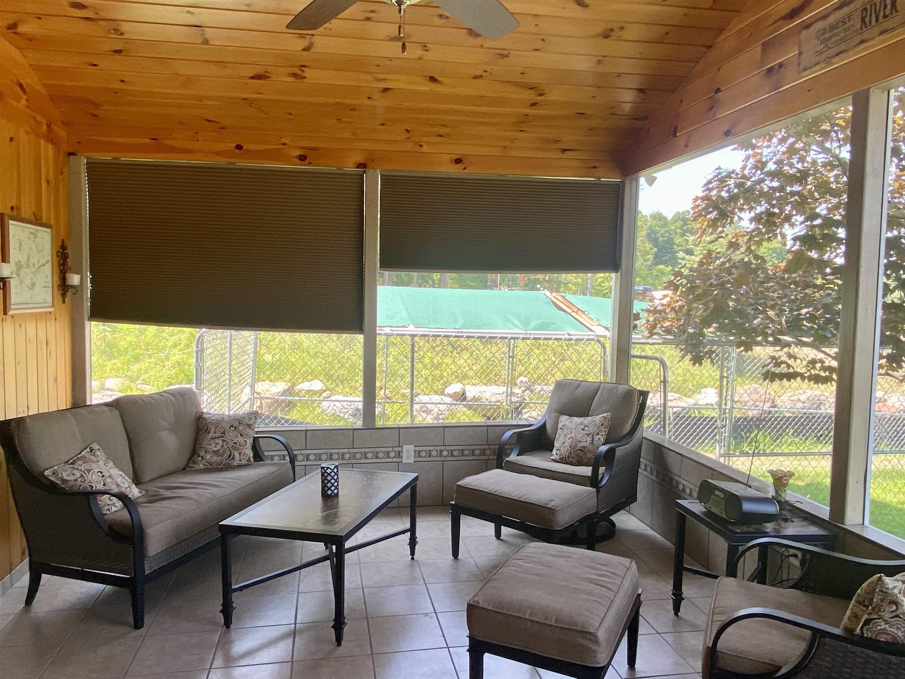 Welcome to your serene waterfront retreat on Hannawa Pond/Raquette River! This charming four-bedroom, two-bathroom, single-story seasonal (but insulated) home offers the perfect blend of comfort and tranquility. A new composite deck with modern railing overlooks the lard yard and water with the peacefulness of trees across the river. A second living room/sunroom offers stunning water views and showcases a wood tile floor, wood ceiling and lots of windows. A large cased opening will bring you into the open concept dining, kitchen and living areas. The kitchen features a large island with seating for many, a gas cooktop, built-in wall oven, wine rack and beautiful cabinetry. The living room is enhanced with a decorative corner fireplace, a hidden air conditioner, and a large cased window opening into the sun room. The screen porch, featuring a vaulted knotty pine ceiling and tile flooring & wall areas, is a perfect place to unwind and enjoy the peaceful surroundings. The property boasts a spacious primary suite with an open bathroom that includes a large jetted tub and separate shower, offering a spa-like retreat. The second bedroom has French doors leading to the great screen room and there are two additional smaller bedrooms to provide cozy accommodations. Additionally, the home features a main floor laundry room with an extra fridge and sink, conveniently located off the back door. The property also includes a detached garage with a versatile second-floor space adding more that 500 sq. Ft. Of additional space! It that has both a man door and garage door. This space is perfect for a bunk room, entertainment area, workshop, or whatever fits your needs. Off the upstairs garage door is a landing with a ramp on the back side and a front balcony for added convenience and charm. The downstairs garage has a poured foundation and is large enough to fit most vehicles or maybe a boat for winter storage. Outdoor living is at its finest here with a new deck (2024) overlooking the expansive front yard and waterfront. A paved driveway (sealed in 2024) extends all the way to the water, doubling as a boat launch, making it easy to enjoy the pond. There is no public boat launch on this water, so this is a great asset to the property. A paver path leads to a cozy fire pit area with stone flooring and low walls, perfect for evenings spent under the stars. Don’t miss the opportunity to own this peaceful waterfront escape...with no neighbors across the water from you! Please make an appointment to see the property & do not drive down without one. Thank you
