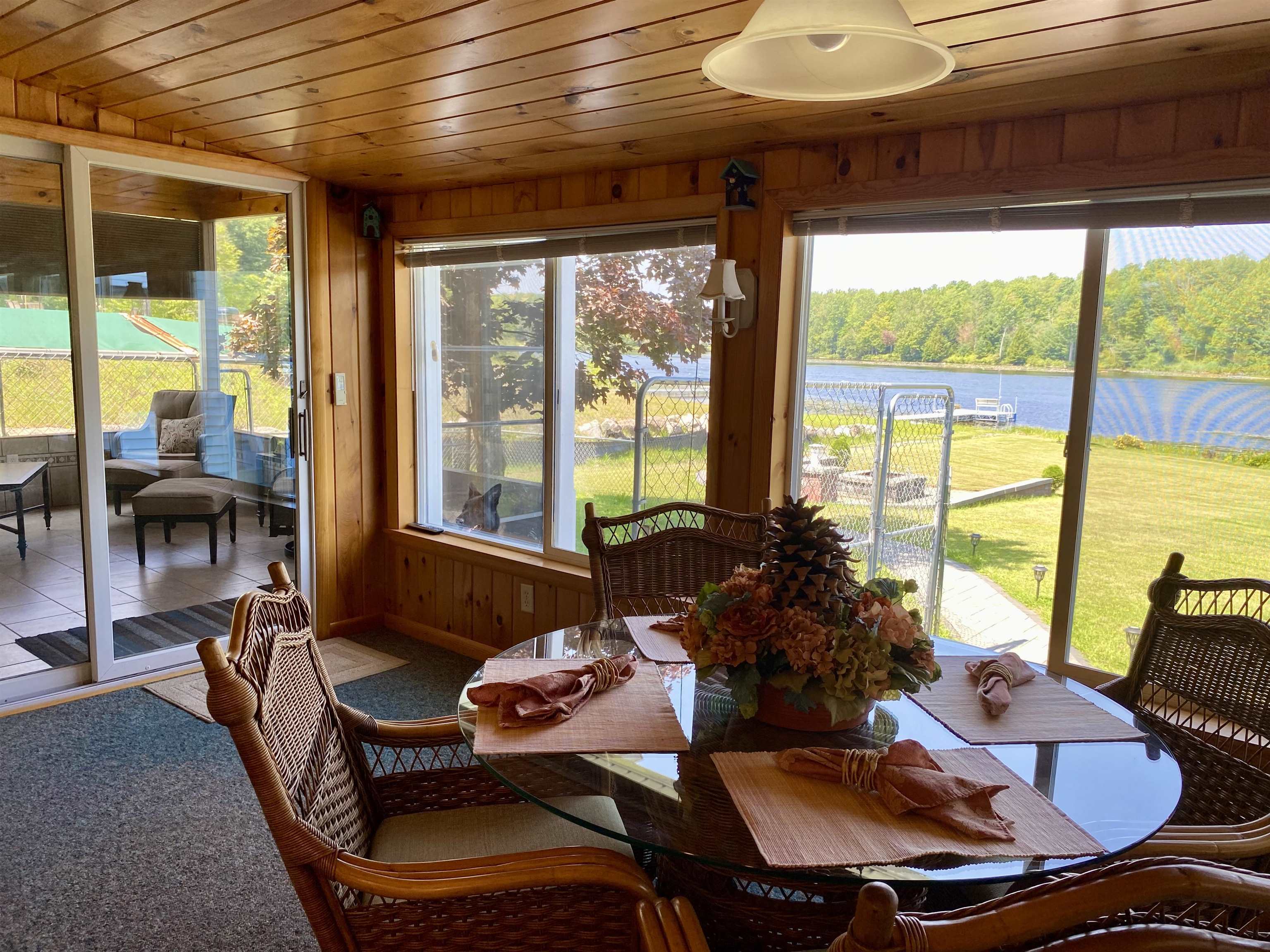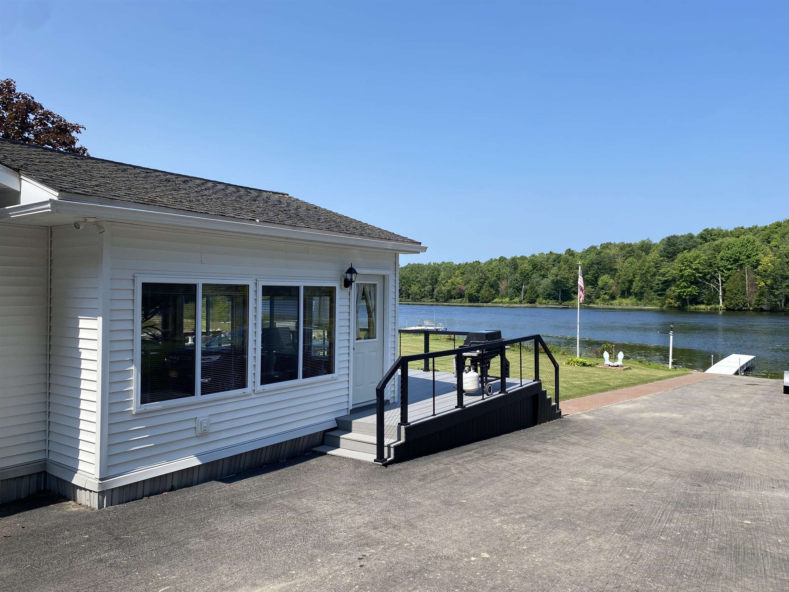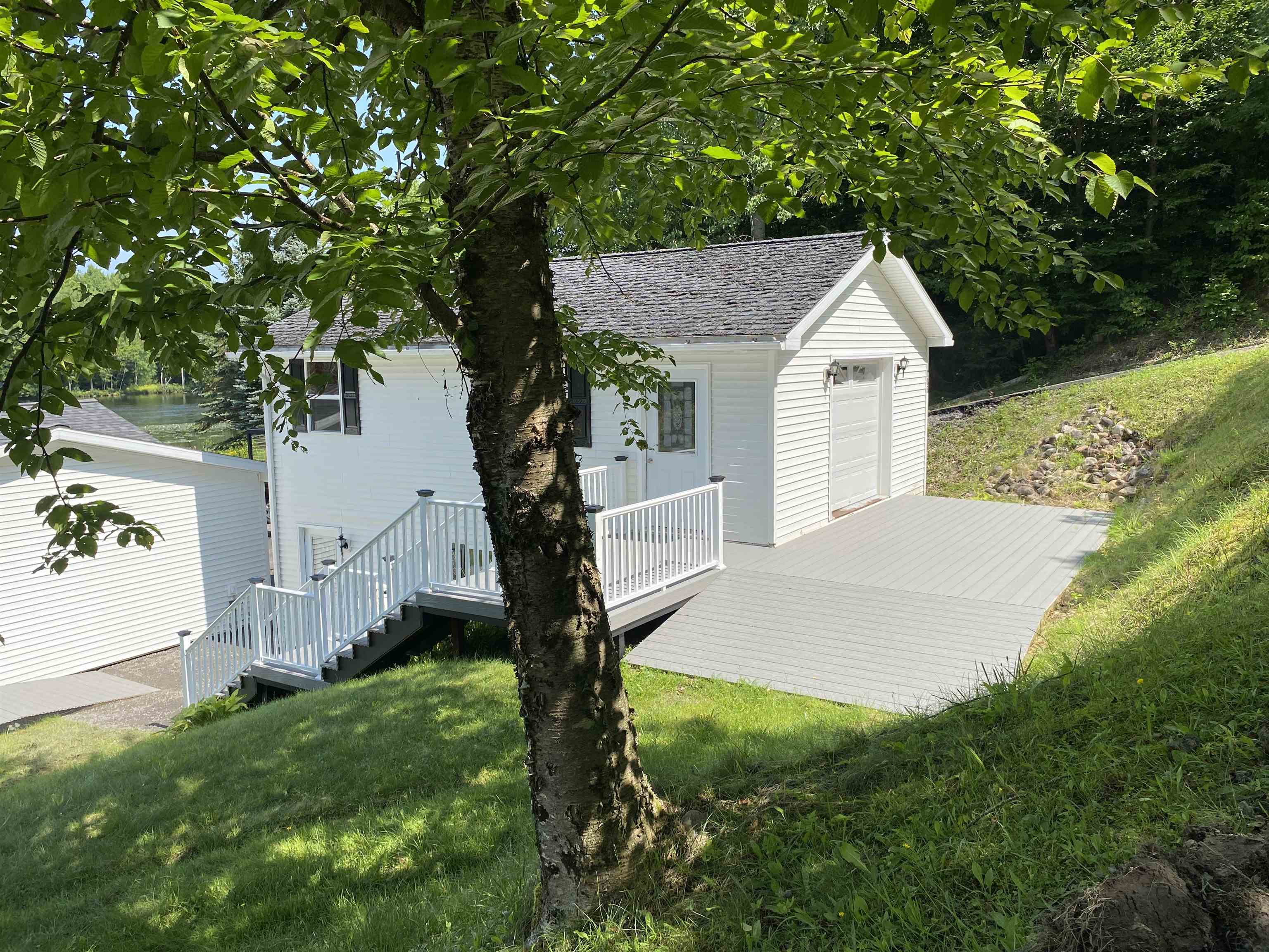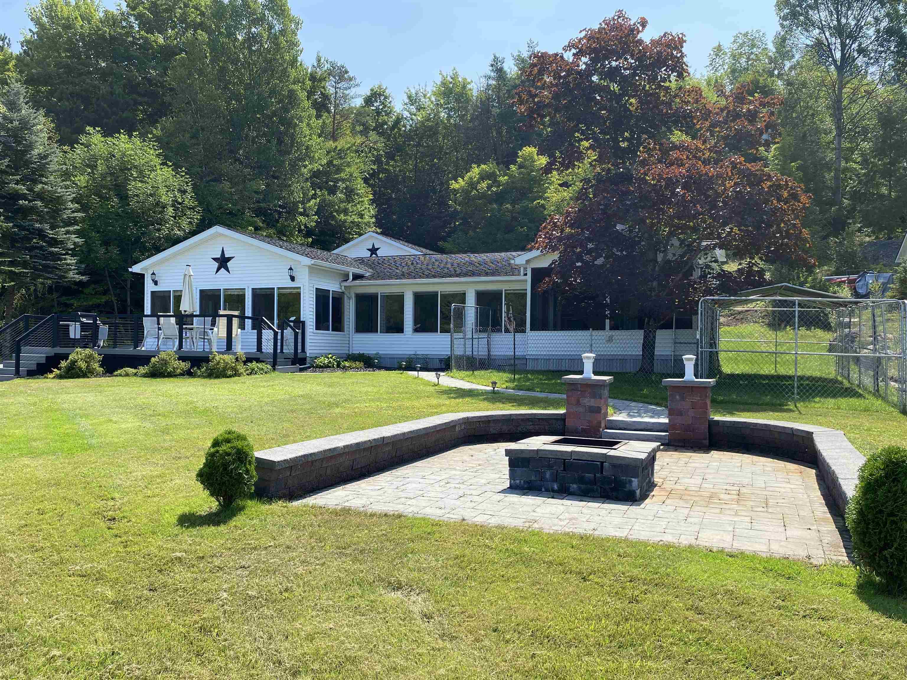 Welcome to your serene waterfront retreat on Hannawa Pond/Raquette River! This charming four-bedroom, two-bathroom, single-story seasonal (but insulated) home offers the perfect blend of comfort and tranquility. A new composite deck with modern railing overlooks the lard yard and water with the peacefulness of trees across the river. A second living room/sunroom offers stunning water views and showcases a wood tile floor, wood ceiling and lots of windows. A large cased opening will bring you into the open concept dining, kitchen and living areas. The kitchen features a large island with seating for many, a gas cooktop, built-in wall oven, wine rack and beautiful cabinetry. The living room is enhanced with a decorative corner fireplace, a hidden air conditioner, and a large cased window opening into the sun room. The screen porch, featuring a vaulted knotty pine ceiling and tile flooring & wall areas, is a perfect place to unwind and enjoy the peaceful surroundings. The property boasts a spacious primary suite with an open bathroom that includes a large jetted tub and separate shower, offering a spa-like retreat. The second bedroom has French doors leading to the great screen room and there are two additional smaller bedrooms to provide cozy accommodations. Additionally, the home features a main floor laundry room with an extra fridge and sink, conveniently located off the back door. The property also includes a detached garage with a versatile second-floor space adding more that 500 sq. Ft. Of additional space! It that has both a man door and garage door. This space is perfect for a bunk room, entertainment area, workshop, or whatever fits your needs. Off the upstairs garage door is a landing with a ramp on the back side and a front balcony for added convenience and charm. The downstairs garage has a poured foundation and is large enough to fit most vehicles or maybe a boat for winter storage. Outdoor living is at its finest here with a new deck (2024) overlooking the expansive front yard and waterfront. A paved driveway (sealed in 2024) extends all the way to the water, doubling as a boat launch, making it easy to enjoy the pond. There is no public boat launch on this water, so this is a great asset to the property. A paver path leads to a cozy fire pit area with stone flooring and low walls, perfect for evenings spent under the stars. Don’t miss the opportunity to own this peaceful waterfront escape...with no neighbors across the water from you! Please make an appointment to see the property & do not drive down without one. Thank you