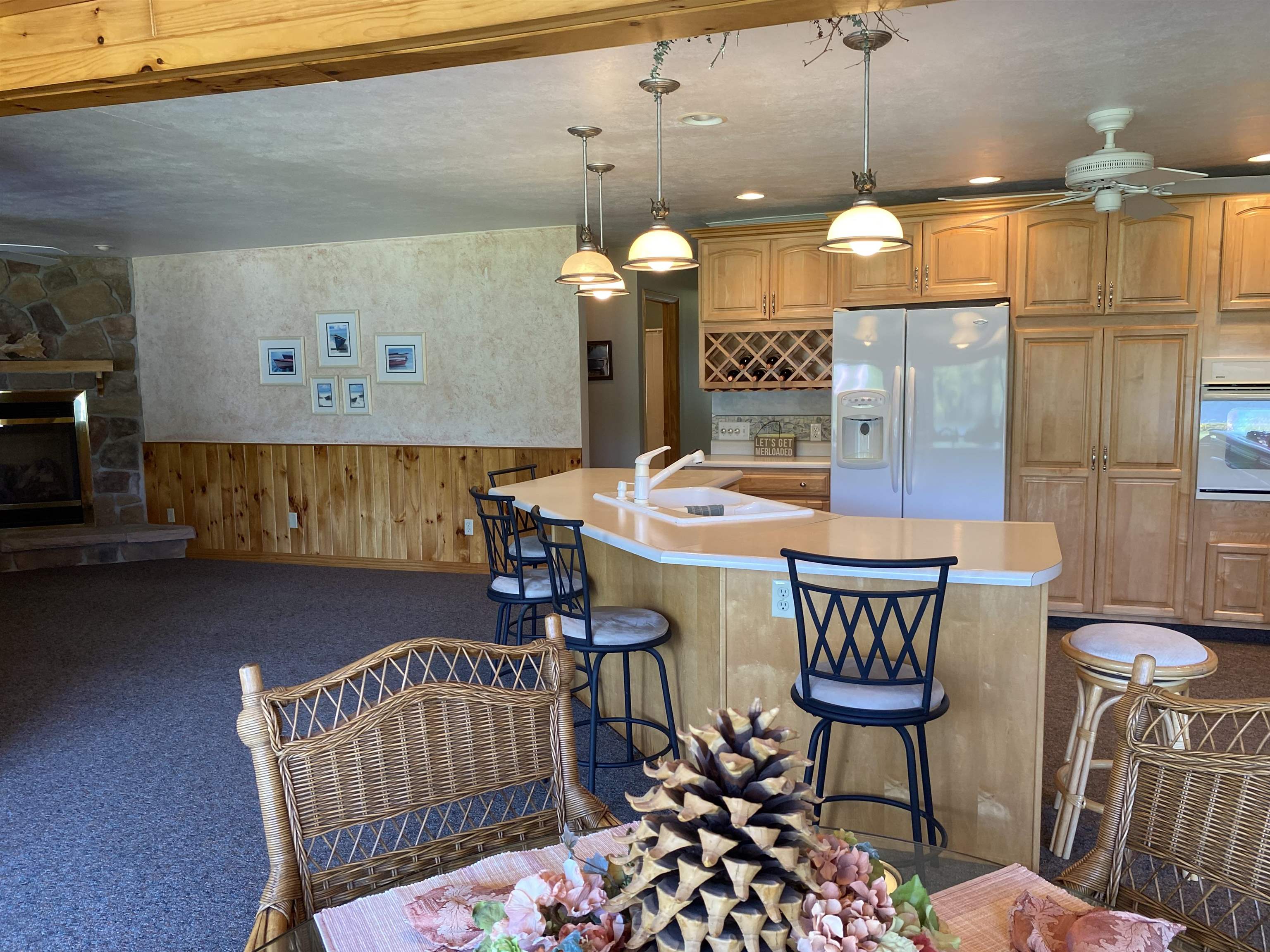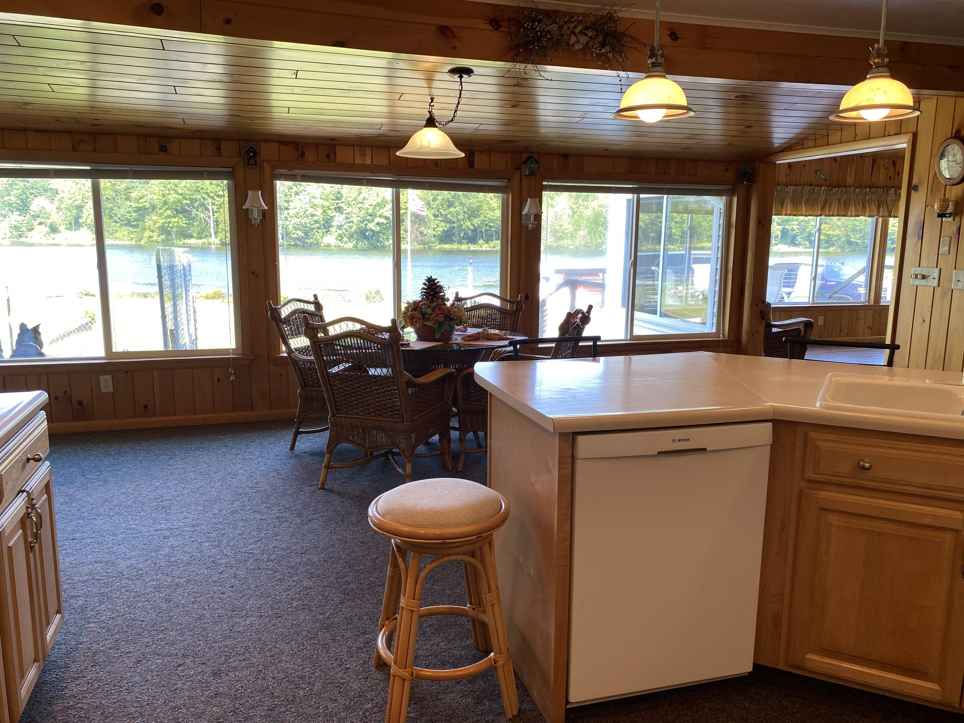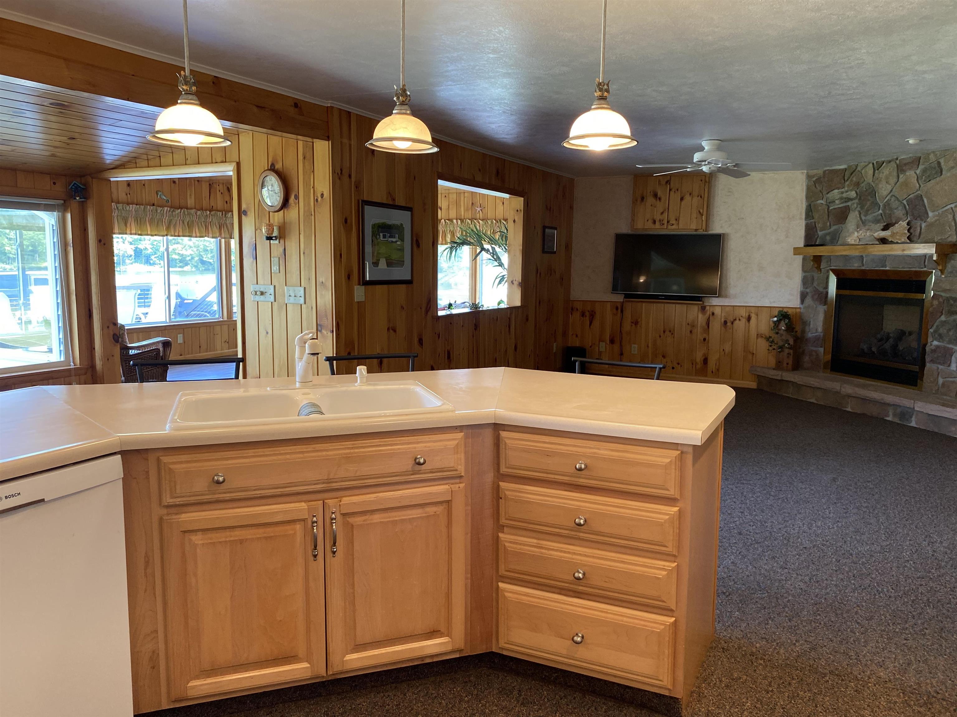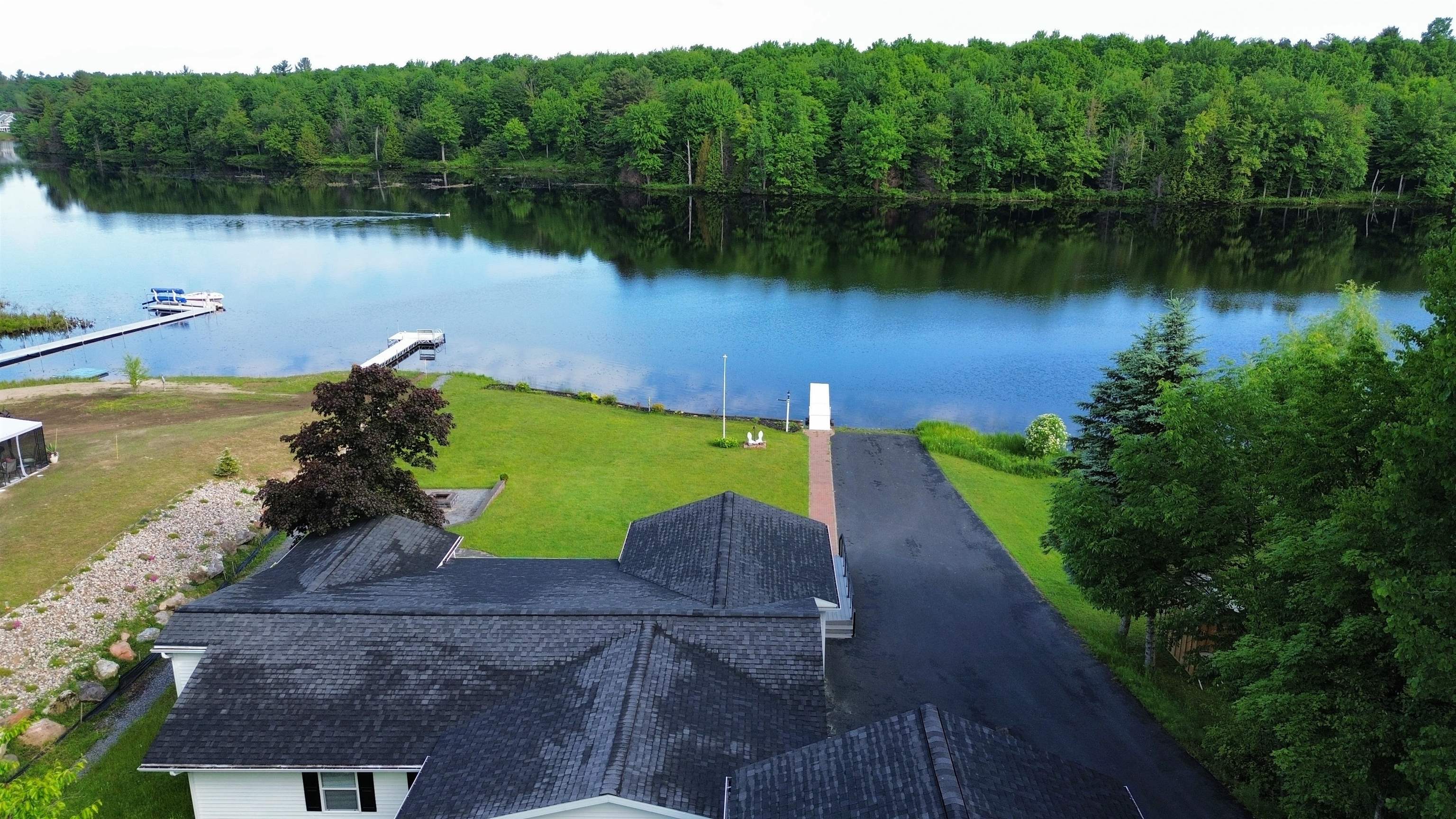 Welcome to your serene waterfront retreat on Hannawa Pond/Raquette River! This charming four-bedroom, two-bathroom, single-story seasonal (but insulated) home offers the perfect blend of comfort and tranquility. A new composite deck with modern railing overlooks the lard yard and water with the peacefulness of trees across the river. A second living room/sunroom offers stunning water views and showcases a wood tile floor, wood ceiling and lots of windows. A large cased opening will bring you into the open concept dining, kitchen and living areas. The kitchen features a large island with seating for many, a gas cooktop, built-in wall oven, wine rack and beautiful cabinetry. The living room is enhanced with a decorative corner fireplace, a hidden air conditioner, and a large cased window opening into the sun room. The screen porch, featuring a vaulted knotty pine ceiling and tile flooring & wall areas, is a perfect place to unwind and enjoy the peaceful surroundings. The property boasts a spacious primary suite with an open bathroom that includes a large jetted tub and separate shower, offering a spa-like retreat. The second bedroom has French doors leading to the great screen room and there are two additional smaller bedrooms to provide cozy accommodations. Additionally, the home features a main floor laundry room with an extra fridge and sink, conveniently located off the back door. The property also includes a detached garage with a versatile second-floor space adding more that 500 sq. Ft. Of additional space! It that has both a man door and garage door. This space is perfect for a bunk room, entertainment area, workshop, or whatever fits your needs. Off the upstairs garage door is a landing with a ramp on the back side and a front balcony for added convenience and charm. The downstairs garage has a poured foundation and is large enough to fit most vehicles or maybe a boat for winter storage. Outdoor living is at its finest here with a new deck (2024) overlooking the expansive front yard and waterfront. A paved driveway (sealed in 2024) extends all the way to the water, doubling as a boat launch, making it easy to enjoy the pond. There is no public boat launch on this water, so this is a great asset to the property. A paver path leads to a cozy fire pit area with stone flooring and low walls, perfect for evenings spent under the stars. Don’t miss the opportunity to own this peaceful waterfront escape...with no neighbors across the water from you! Please make an appointment to see the property & do not drive down without one. Thank you