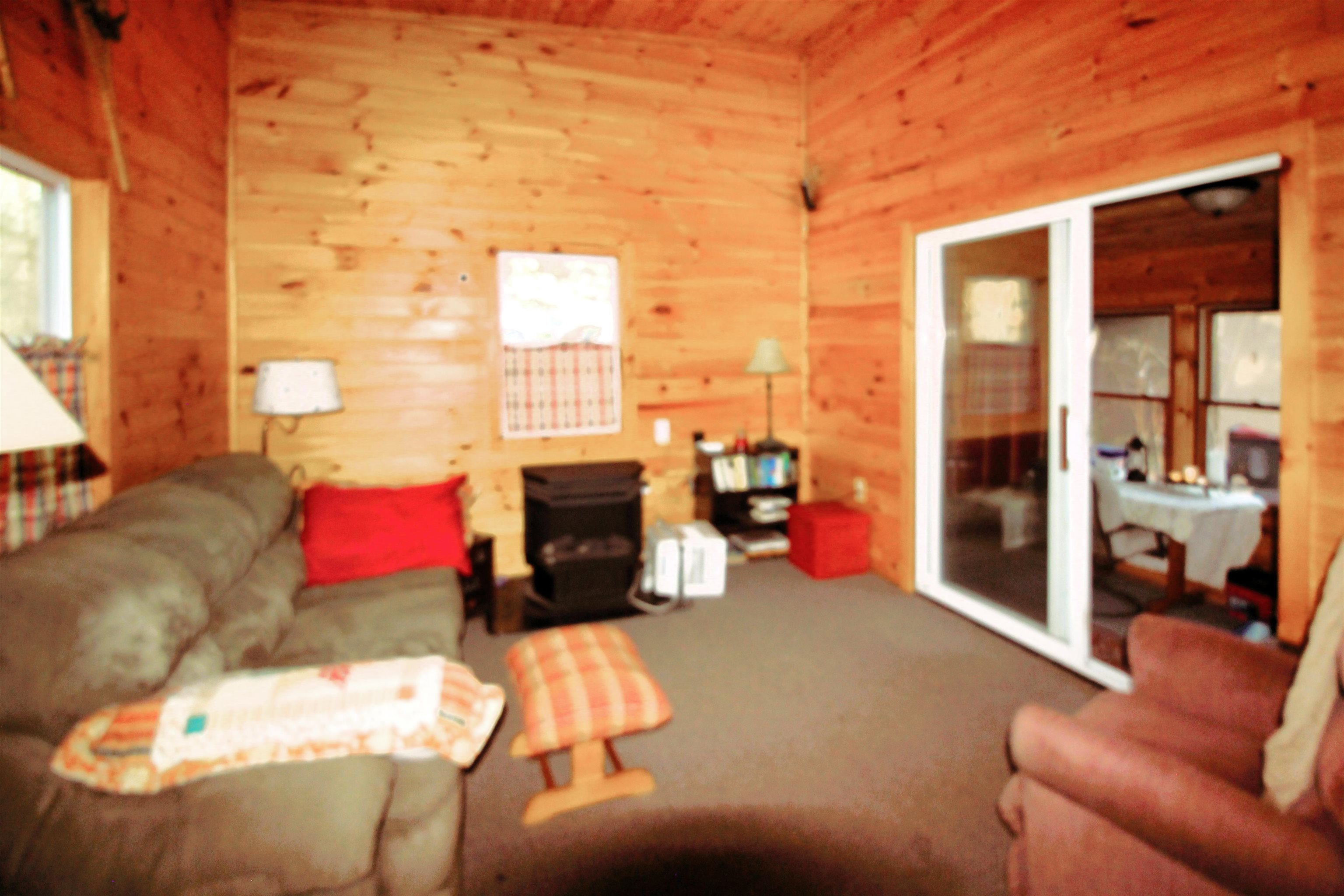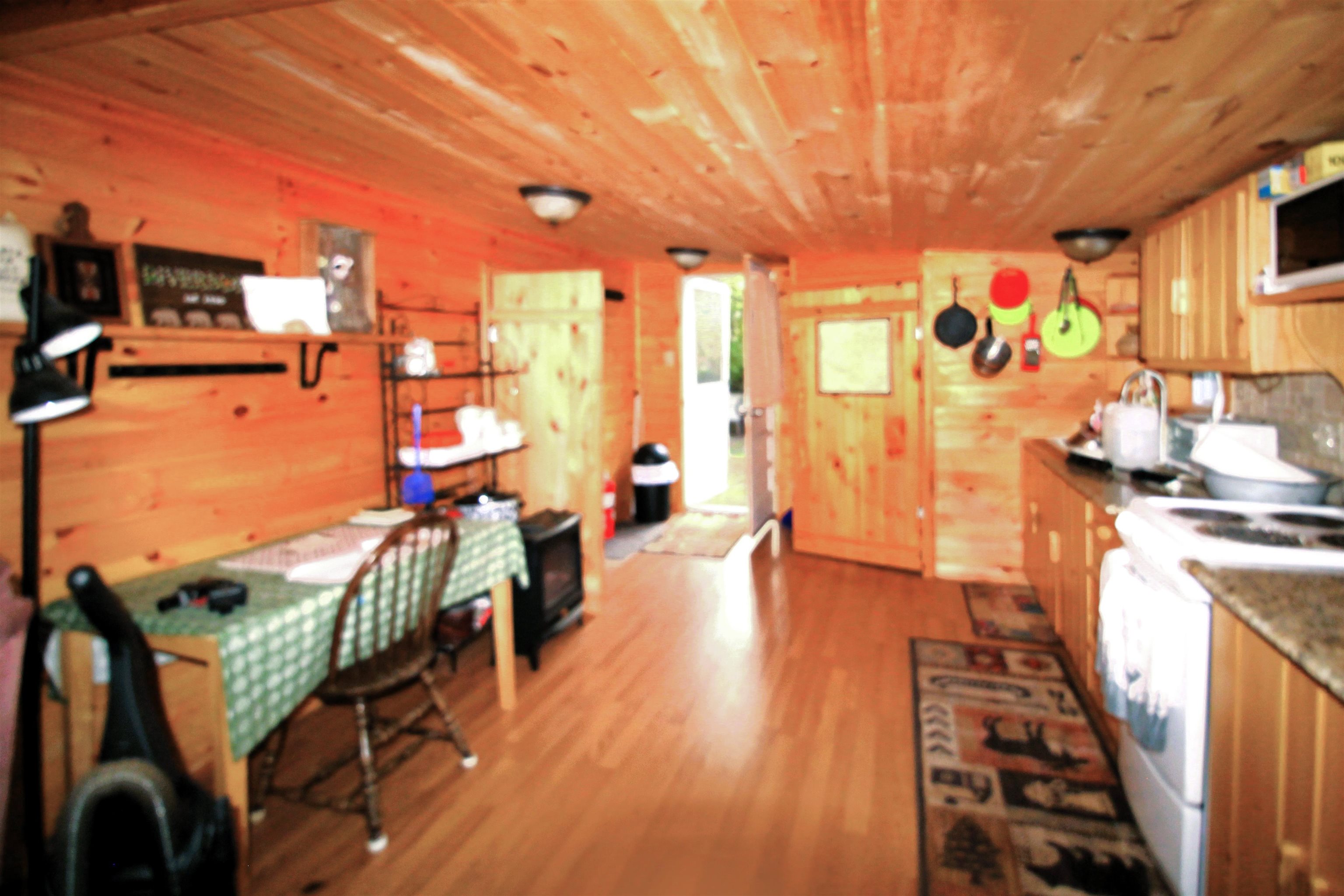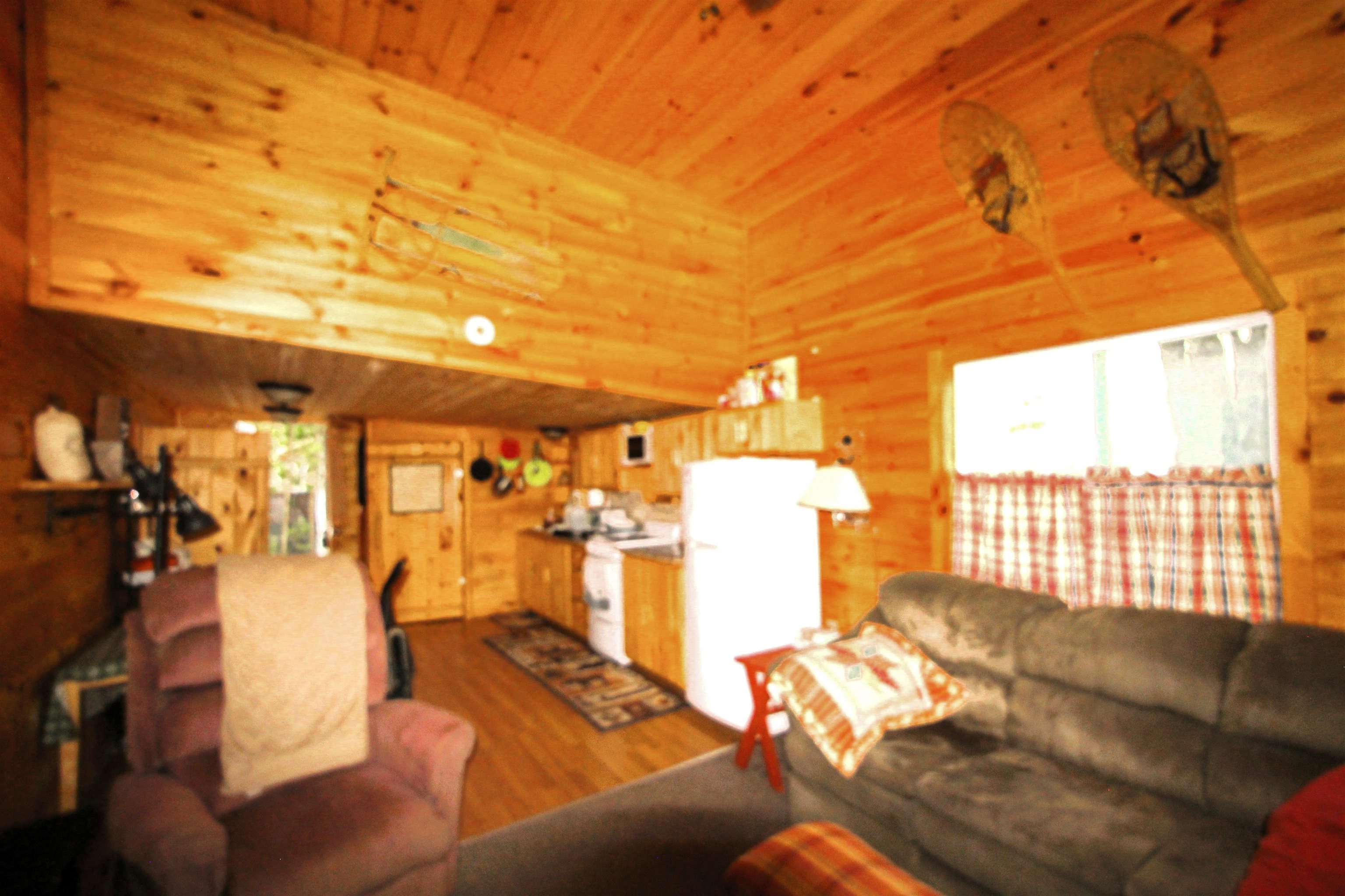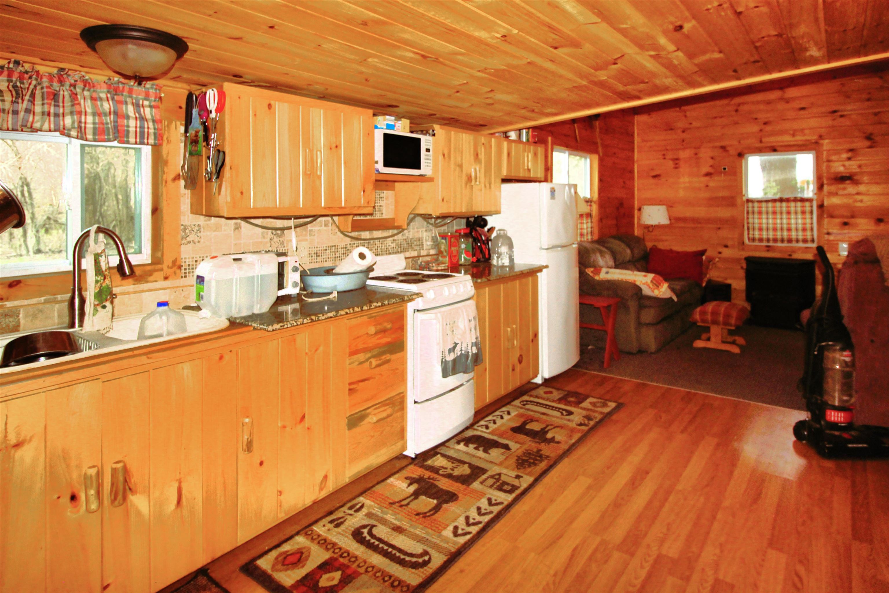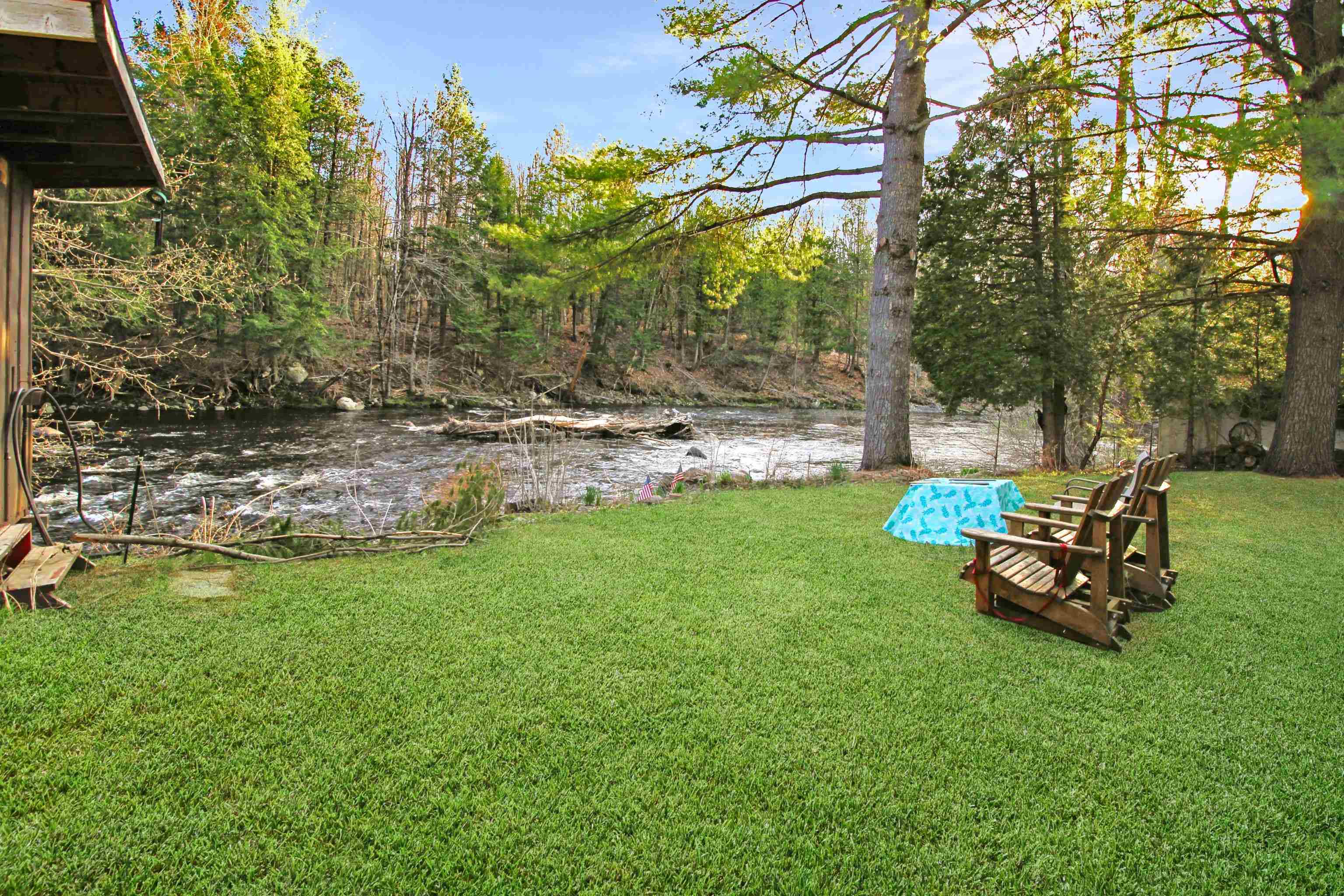 Nestled along the serenely flowing Deer River, this charming abode is affectionately known as River Song. The soothing sounds of water cascading over rocks and meandering past the cottage create a harmonious melody that is a constant companion to those who reside here. To experience this property, use this link for a 3D Tour https://northcountry360tours.com/151WestCotterRd Though the yard is quaint, its prime location just a short drive from expansive state lands makes it an ideal base for outdoor enthusiasts. The riverside of the cottage offers a private oasis where one can sit and watch the river flow by, with the lush panoramic view of the forest across providing a calming backdrop. The cottage features a half bath serviced by a 300-gallon holding tank, ensuring convenience without compromising on charm. The kitchen is well-appointed with ample counter and cabinet space, providing a cozy spot for meals, especially on rainy days. In the living room, a standalone propane gas stove takes the edge off the chill, while vaulted ceilings with a ceiling fan add to the airy ambiance. Adjacent to the living room, a sunroom with sliding doors seamlessly blends the indoors with the outdoors, inviting nature to become a part of daily life. The bedroom, located off the kitchen on the riverside, ensures that the gentle lullaby of the river will soothe you to sleep each night. The interior of the cottage, save for a few personal items, will remain, preserving the welcoming atmosphere that has been lovingly created. A storage shed on the property houses the water pump, which draws water from the river. Although the water is untreated and non-potable, it serves as a reminder of the simplicity and natural beauty that defines River Song. This delightful cottage offers an accessible opportunity to own your own retreat and truly immerse yourself in the tranquility of nature.