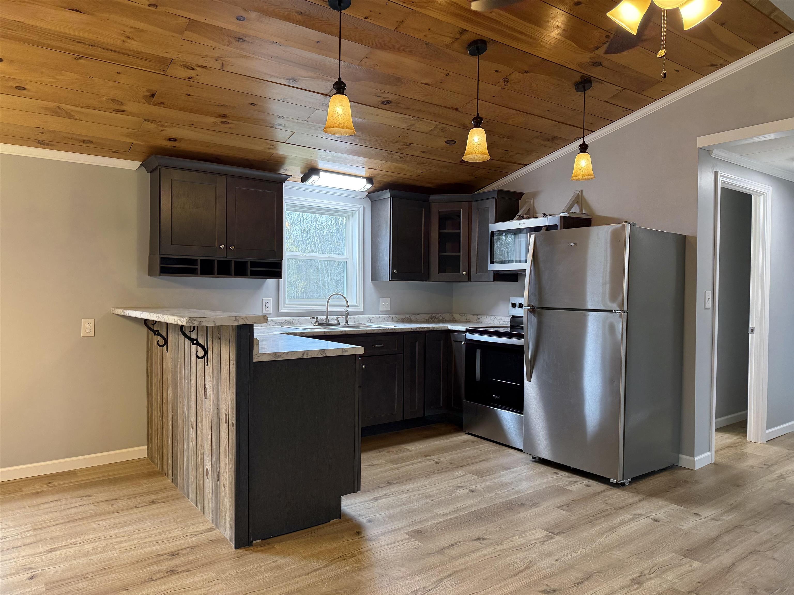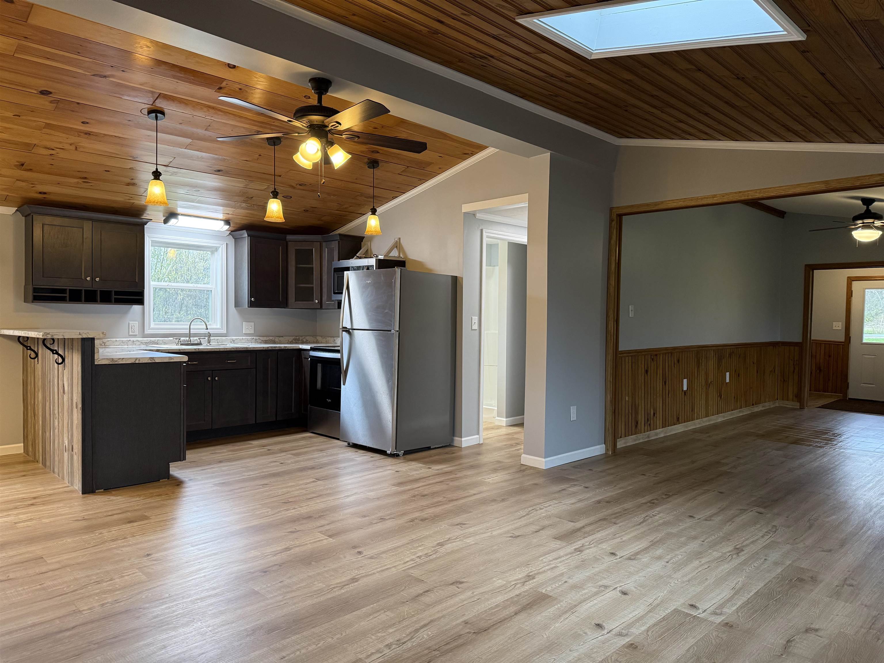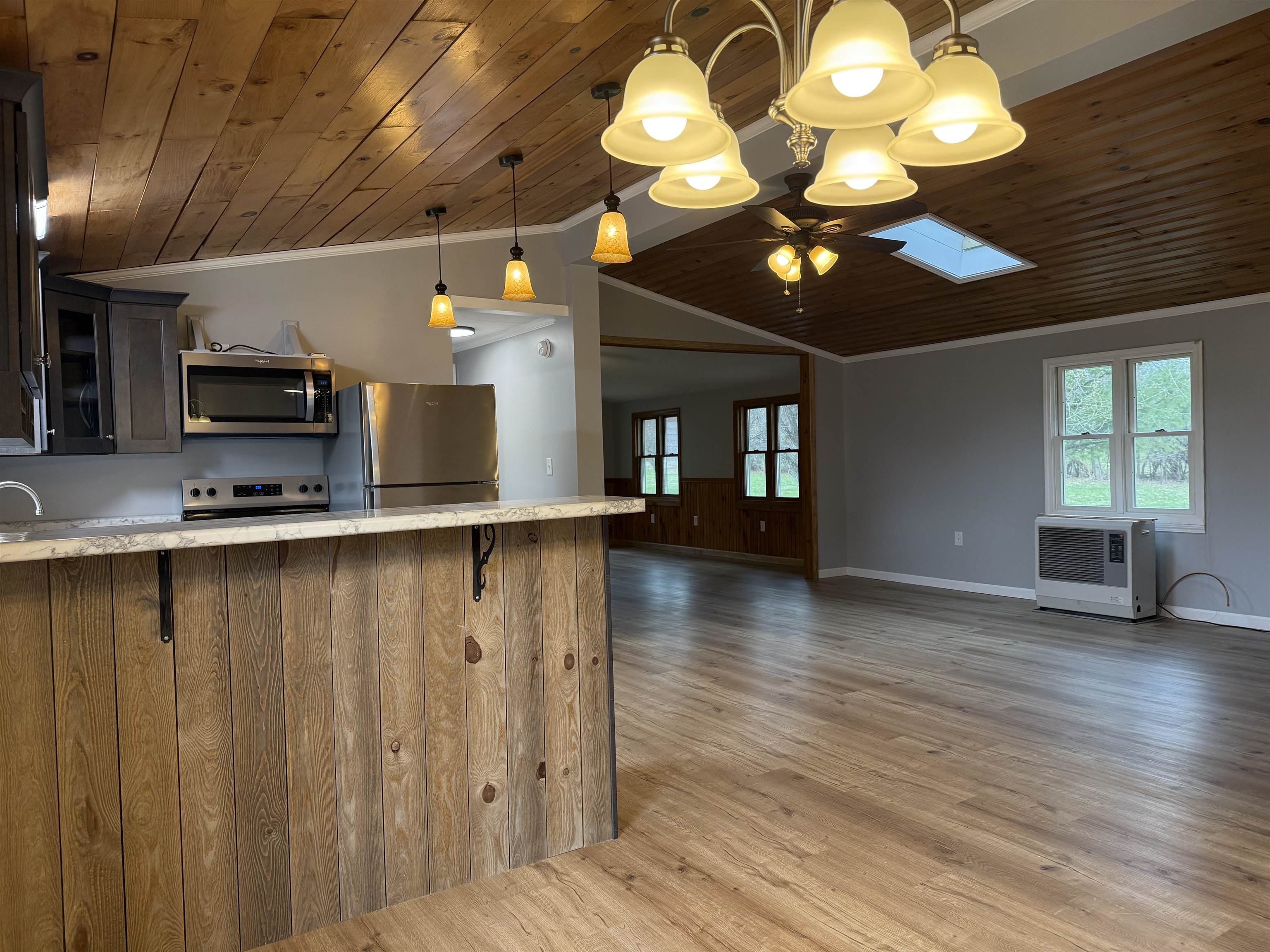 REMODELED RANCH WITH AN OVERSIZED NEW 2 CAR GARAGE IN NORWOOD! This lovely 3 bedroom, 2 bathroom home has many updates, such as, a new kitchen, new appliances, a new washer and dryer, new lighting, new flooring, 2 new bathrooms, new doors, new windows, a new oversized 2 car garage, new siding, new insulation, and more with a covered front porch and is situated on 2 acres of land just outside the village of Norwood. This home is located about 5 minutes from Potsdam. As you enter the home you will see the mud room area with a large closet that leads to the spacious living room that flows into the second living room, dining room, playroom or office space. There is a propane wall heater in that room to keep you cozy on cold winter nights. Then you will see the new kitchen with beautiful cabinets, countertop, a breakfast bar, stainless steel appliances and lighting. There is also a dining area off the kitchen for your convenience. Off the dining room you will the primary bedroom with a walkthrough closet that leads to the full primary bathroom. You will find another bedroom next to the primary bedroom. The laundry room with cabinets is off the dining area with a door to the side yard. Off the kitchen you will find another bedroom and another full bathroom. You will enjoy all of the space you will have in this home. The new oversized 2 car garage is a great addition to this property. There is plenty of room in the garage for your lawn mower and other outdoor equipment. You will love spending time and having get togethers in the large yard also. There is also a new stone driveway for your convenience. The current owner made so many improvement to this home for the new owner to enjoy! Schedule your showing soon to see this remodeled, move-in ready home!