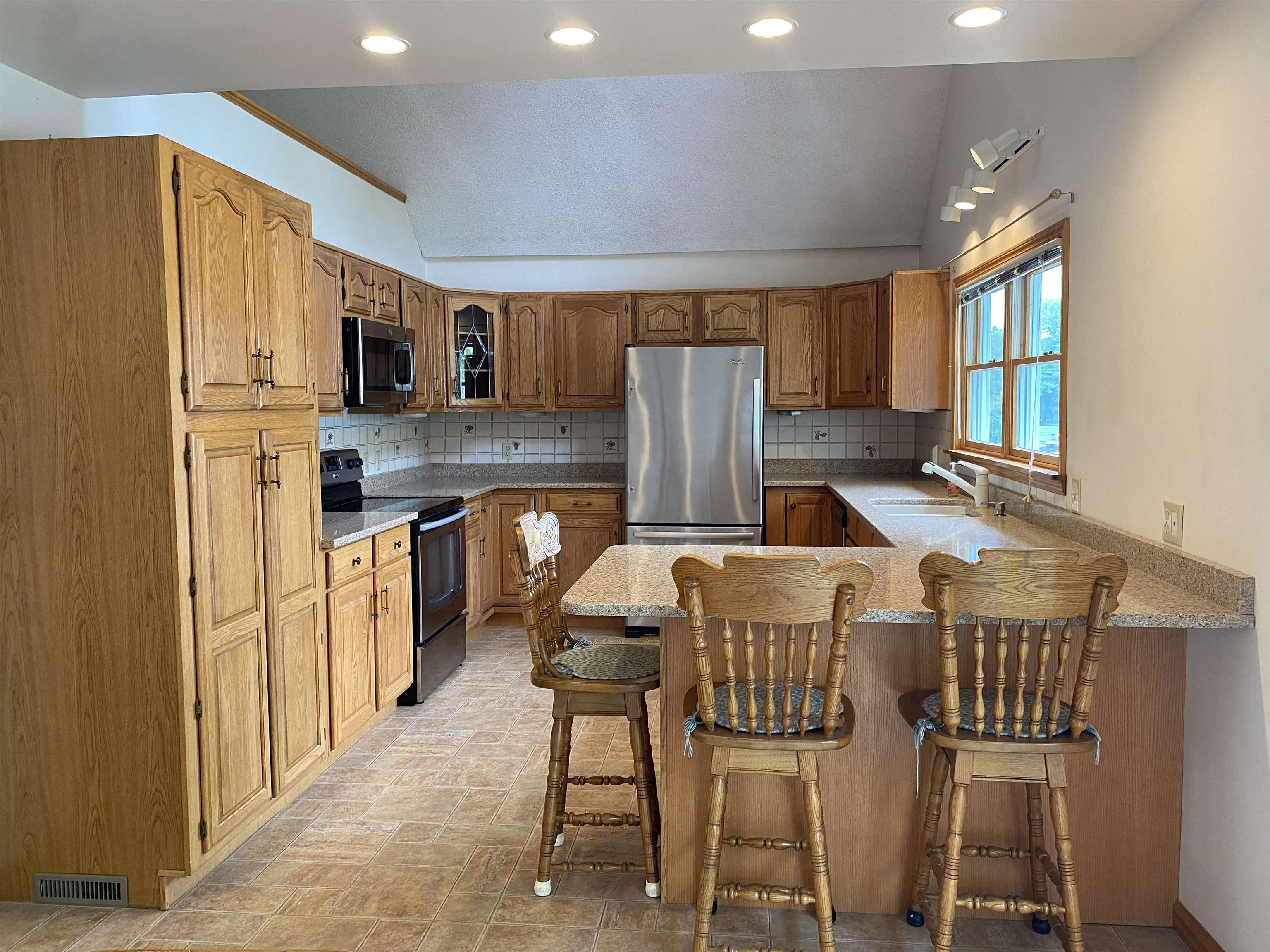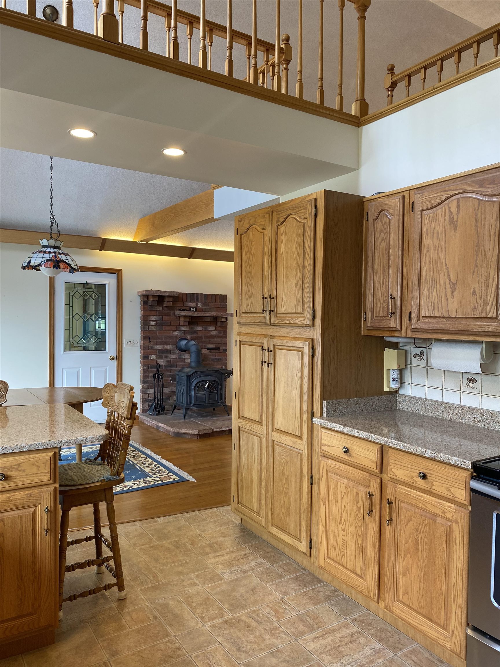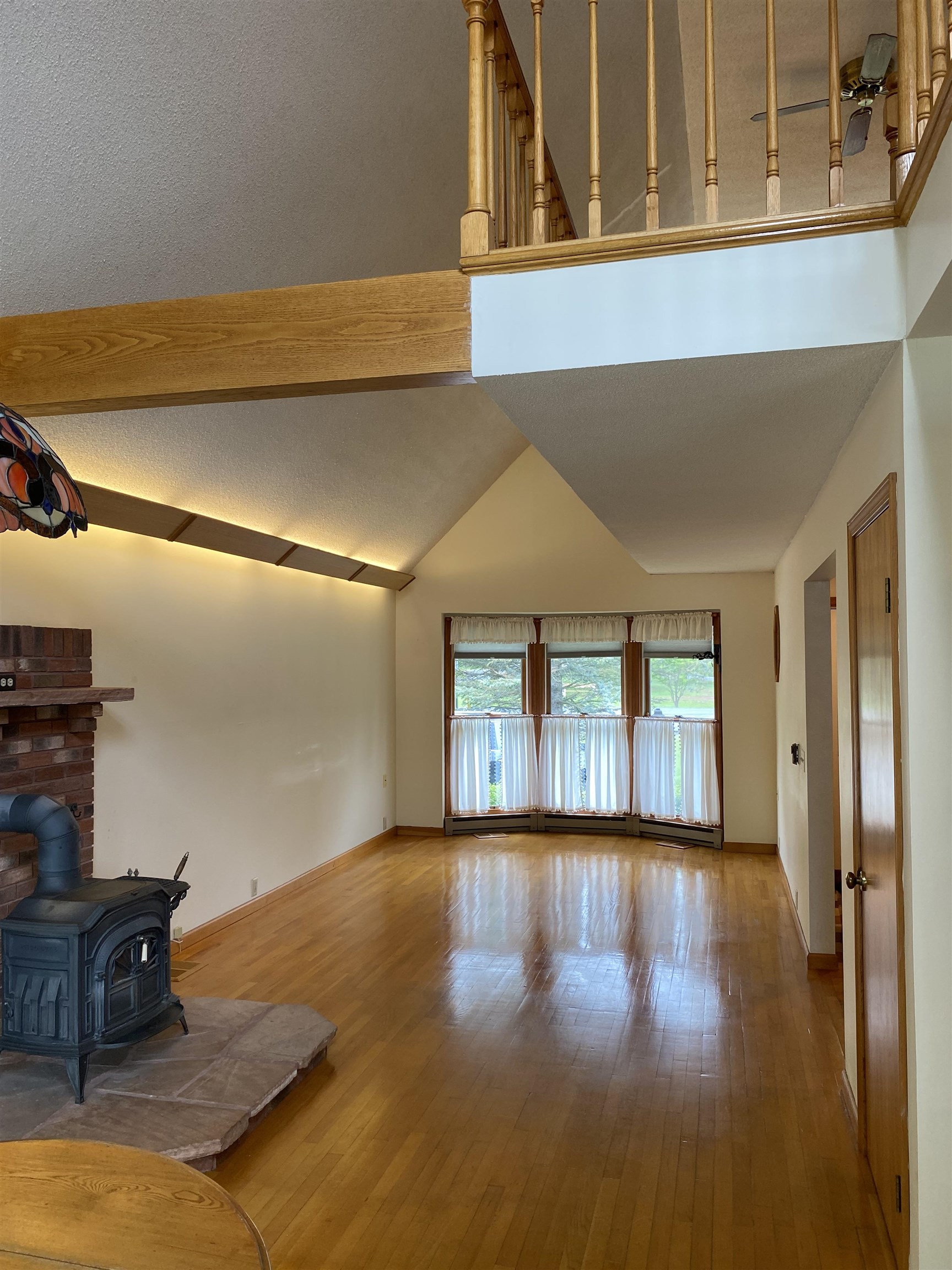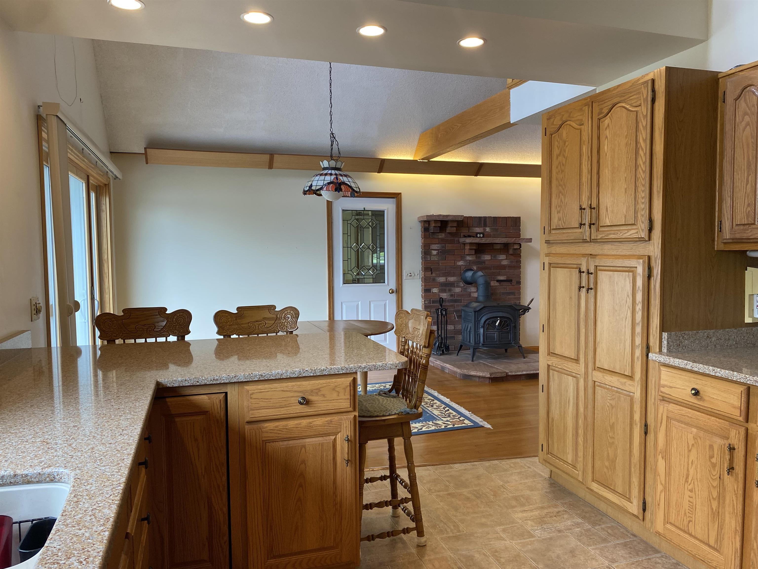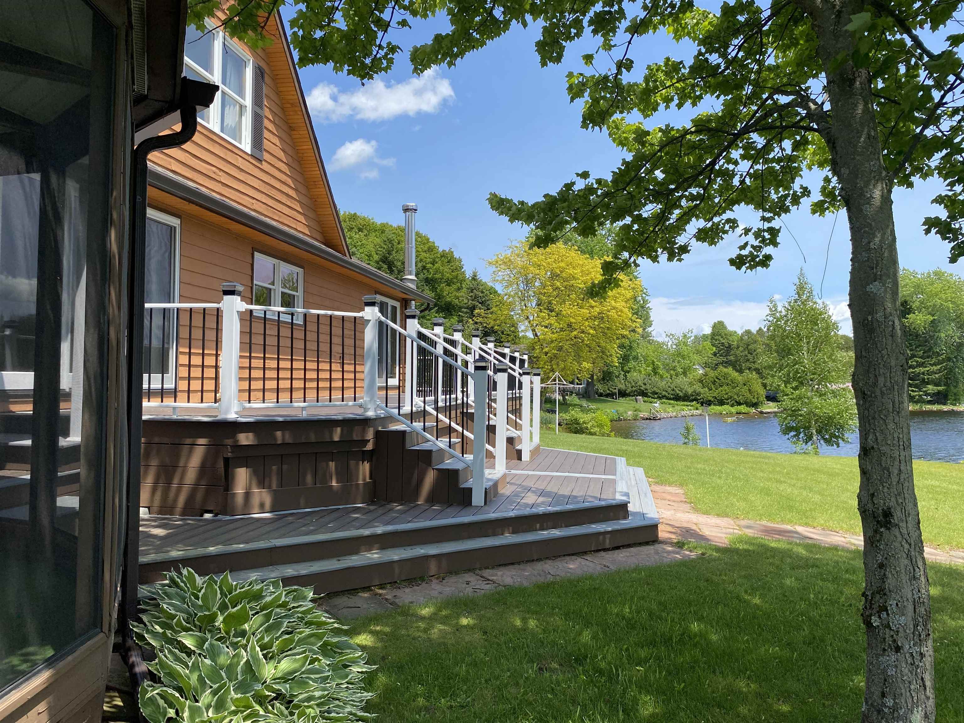 This well-maintained 3-bedroom, 2-bath home offers one of the larger water frontages on Hannawa Pond—approximately 384 feet—and a layout that blends comfort, function, and views. Outside, a new large composite deck and an arced screened porch provide excellent spaces to take in the water and surrounding landscape. A Potsdam sandstone pathway, made from reclaimed downtown sidewalk stone, leads from the deck to the shoreline. The paved wraparound driveway offers ample parking and will be sealed when weather allows. The exterior was also repainted and re-stained last year. Inside, the open-concept kitchen, living, and dining area is vaulted to a second-floor loft and filled with natural light. The updated kitchen includes stone countertops, stainless steel appliances, a breakfast bar, and a sink with a view of the pond. A newer sliding glass door connects the living space to the back deck. There’s also a wood-burning fireplace in the main living area for extra warmth and atmosphere. The loft space includes a great added flexible living space, lots of built-in storage and even a catwalk to a window that overlooks the water. A door off the dining area leads to an attached two-car insulated garage that includes automatic openers and a second stairwell to the lower level—ideal for easy access and convenience The primary suite on the main floor includes private deck access, a walk-in shower, and in-bathroom laundry. Two additional bedrooms and a full bath with new stone countertop and faucets round out the main level. The finished lower level provides an additional ~845 sq. ft. of heated living space and adds another flexible living space with a second kitchen area, propane fireplace, large windows, wall-to-wall carpet, and multiple storage options, including a walk-in mechanical room with three walls of built-in shelving. From its historic Potsdam sandstone walkway to the reconfigured deck and meticulously maintained interior and exterior, this home has been lovingly cared for and thoughtfully upgraded. With one of the larger water frontages on Hannawa Pond, this property offers both privacy and endless opportunity to enjoy lakeside living at its finest