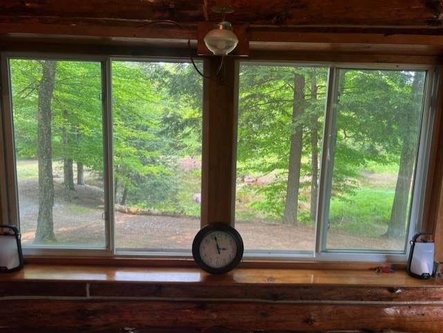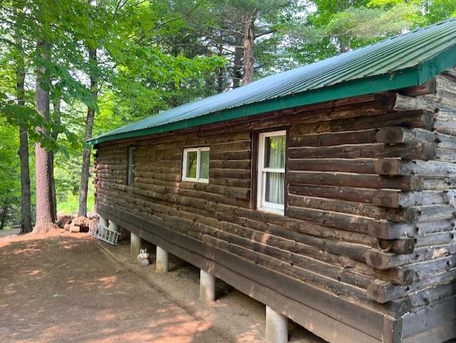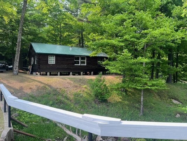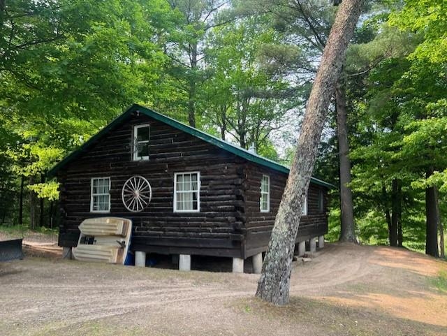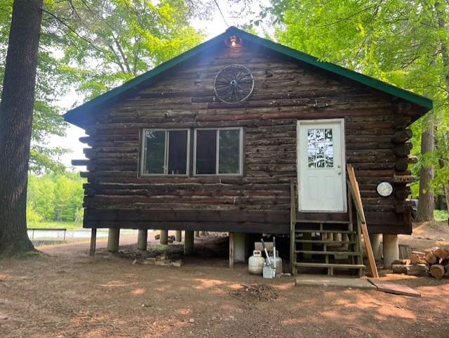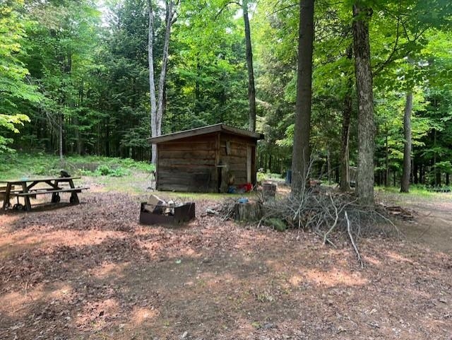 Off Grid log cabin and a storage shed on 5.9 acres. Log cabin is wired for a generator, but also has a propane cookstove/oven, and propane lights. A centrally placed woodstove heats the entire cabin. There is one bedroom, a bathroom, and an open floor plan with kitchen, dining room, living room, a set of bunk beds and a mud room. There are 2 loft areas that provide extra storage. Water is supplied by the larger pond. This pond has a man made dam that has a waterfall that flows into a creek and feeds the second smaller pond. These ponds are spring fed and are home to bullheads, bass, and trout. There are several large windows in this cabin that provide excellent opportunities to view deer, turkeys, and all other wildlife in the area. The logs used to build the cabin were cut from the property. Contact a Realtor today to schedule your private showing.