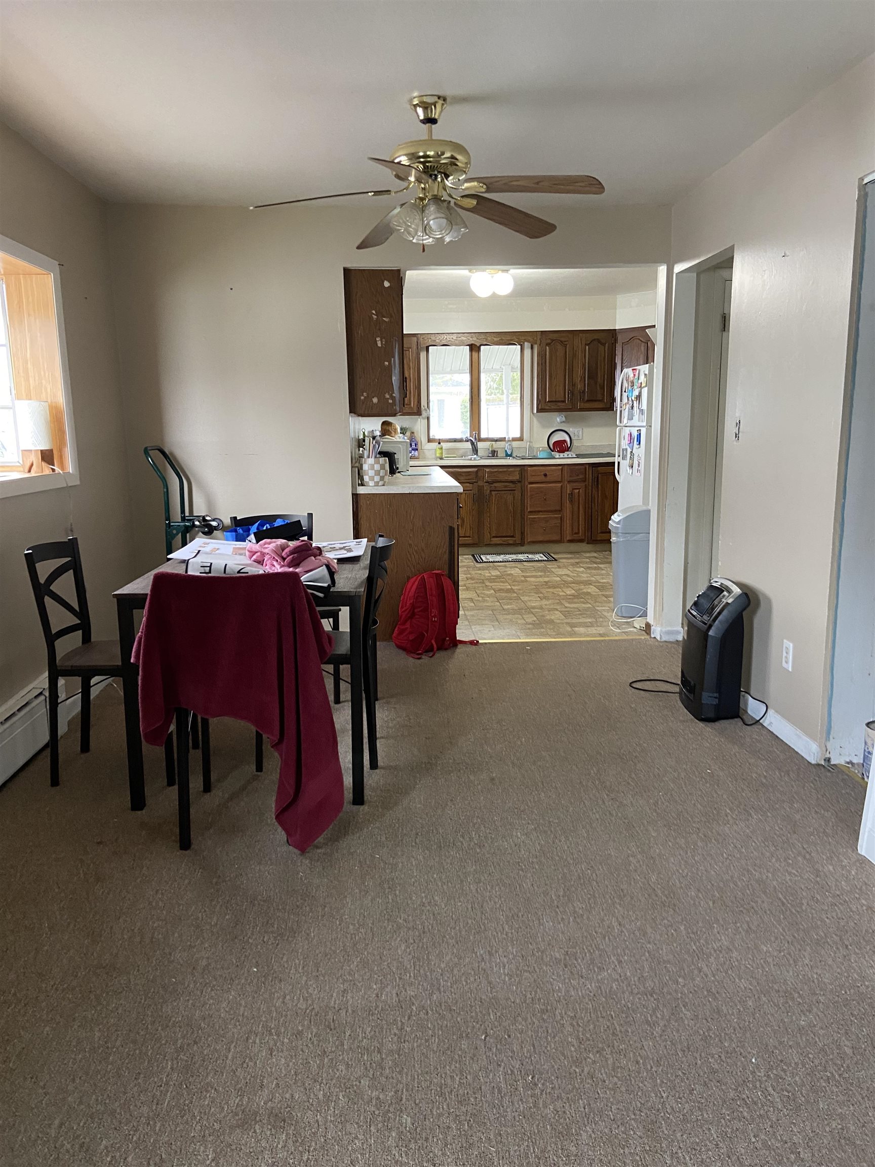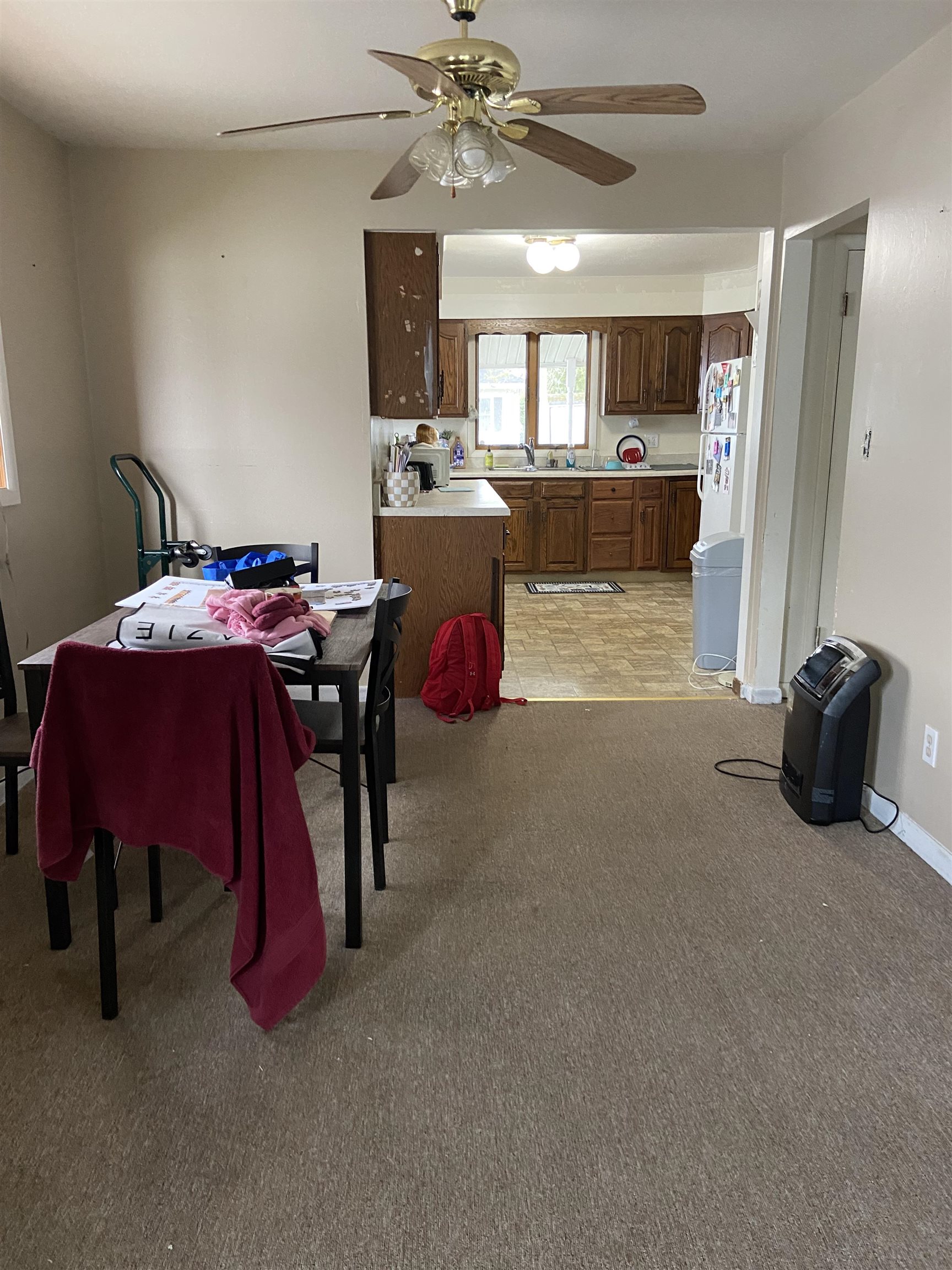 CHARMING and QUAINT ranch style home for sale! This home offers a large kitchen with tons of cabinets along with large living room, two bedrooms, dining room and much more. There is an attached enclosed back porch and the home has a metal roof. It has hot water natural gas heat and some electric. The block foundation does need some work but at $49,000 this home is a bargain.