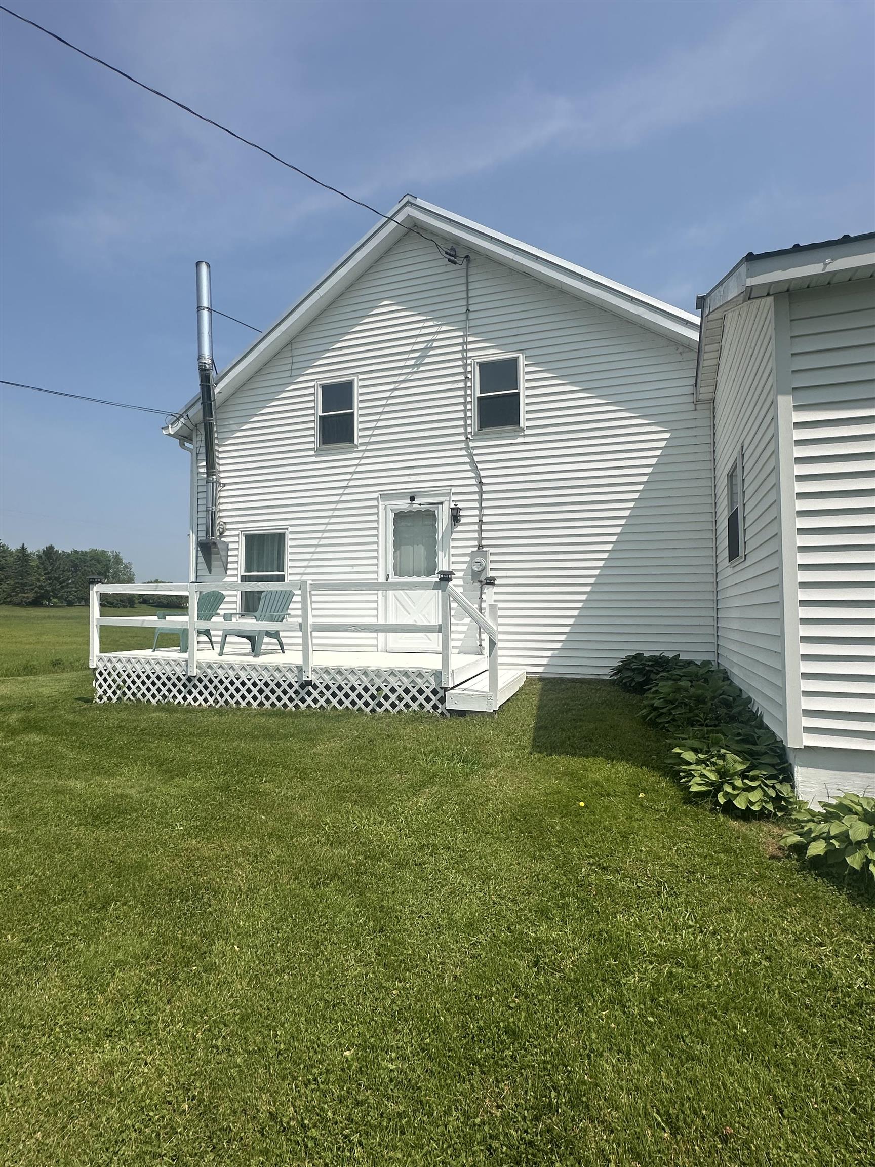 2769 CR 49 Winthrop is a charming farmhouse dating back to the 1870s, which has benefited from significant renovations over the past three decades. Major improvements include a garage and kitchen addition, as well as an expanded main floor bathroom. Recent upgrades feature a new metal roof, replacement vinyl windows, all-new flooring, a modern boiler, water softener, rebuilt pool walls, a resurfaced driveway, and seamless gutters. This residence offers four bedrooms and two full bathrooms, situated on nearly an acre of land. The property provides a sense of privacy, bordered by open fields to the side and rear, and a picturesque meadow across the street. Entry is through the attached one-car garage and mudroom, leading directly into the spacious kitchen, which is equipped with ample cabinetry and new stainless-steel appliances. The main floor also includes a connected dining and living room, a primary bedroom with a large walk-in closet, and a generously sized full bathroom with laundry. There is an old doorway from the main floor bathroom to the primary closet, which could be reopened to create a private ensuite bath. A woodstove adds warmth to the living room, and a screened porch at the front of the house can be enjoyed year-round with a small electric heater. New LVT flooring and carpeting have been installed throughout both levels. Upstairs, there are three bedrooms—two of moderate size and one larger room—as well as an additional full bathroom. Outside, the property includes a detached 14 x 28 one-car garage, an 8 x 10 storage barn, and a 21-foot above-ground pool, perfect for summer relaxation. Prospective buyers are encouraged to contact an agent to arrange a showing of this beautifully updated farmhouse.