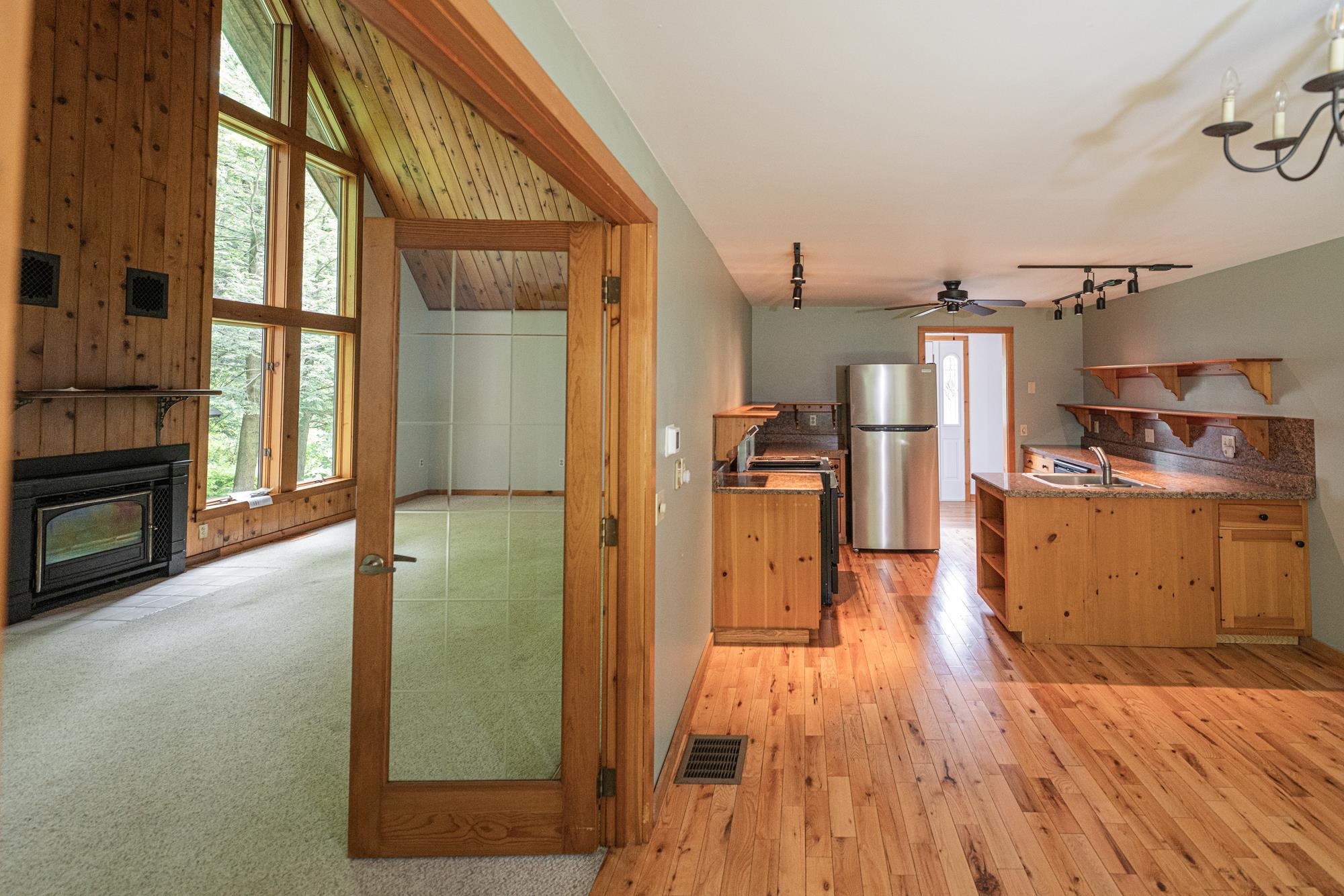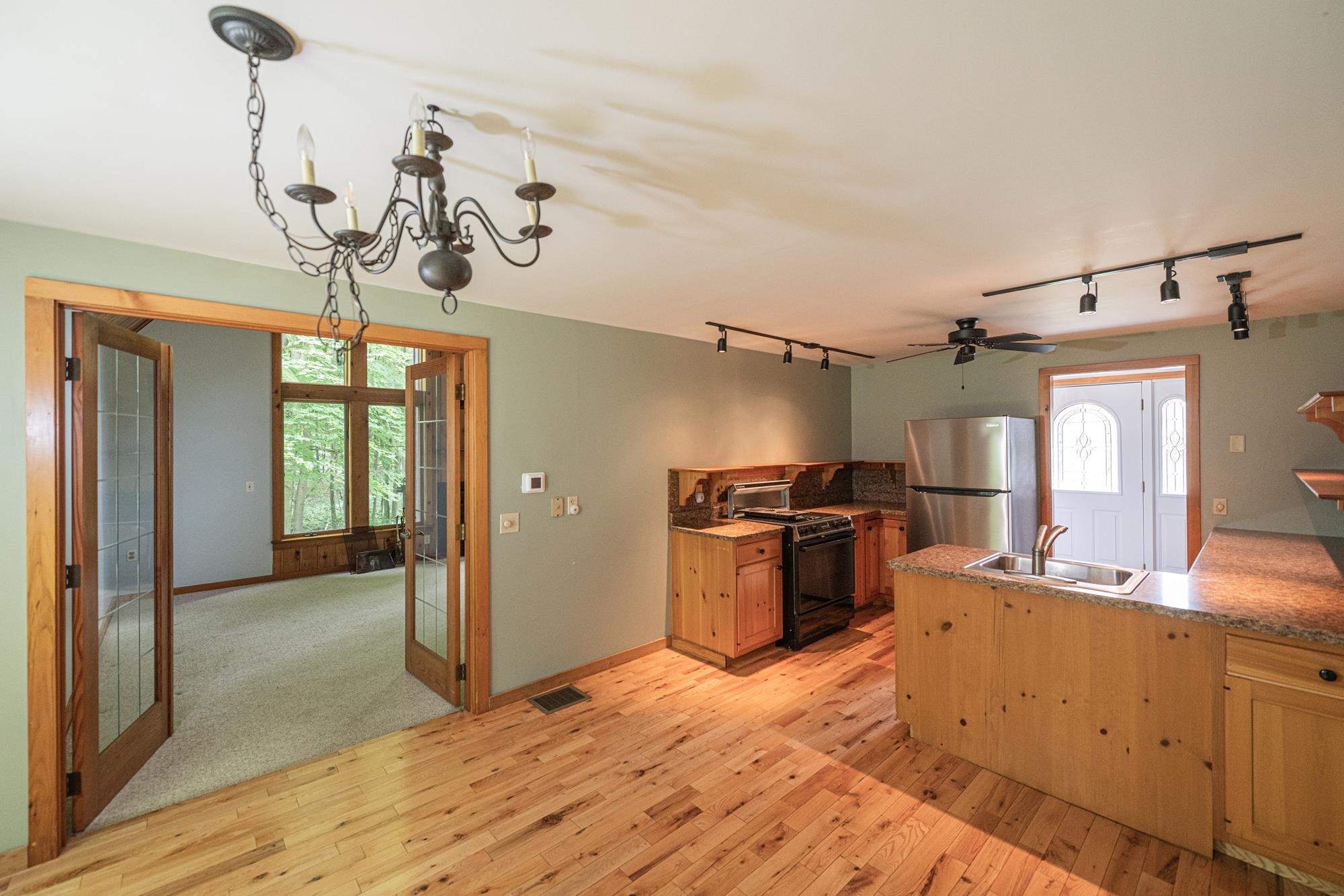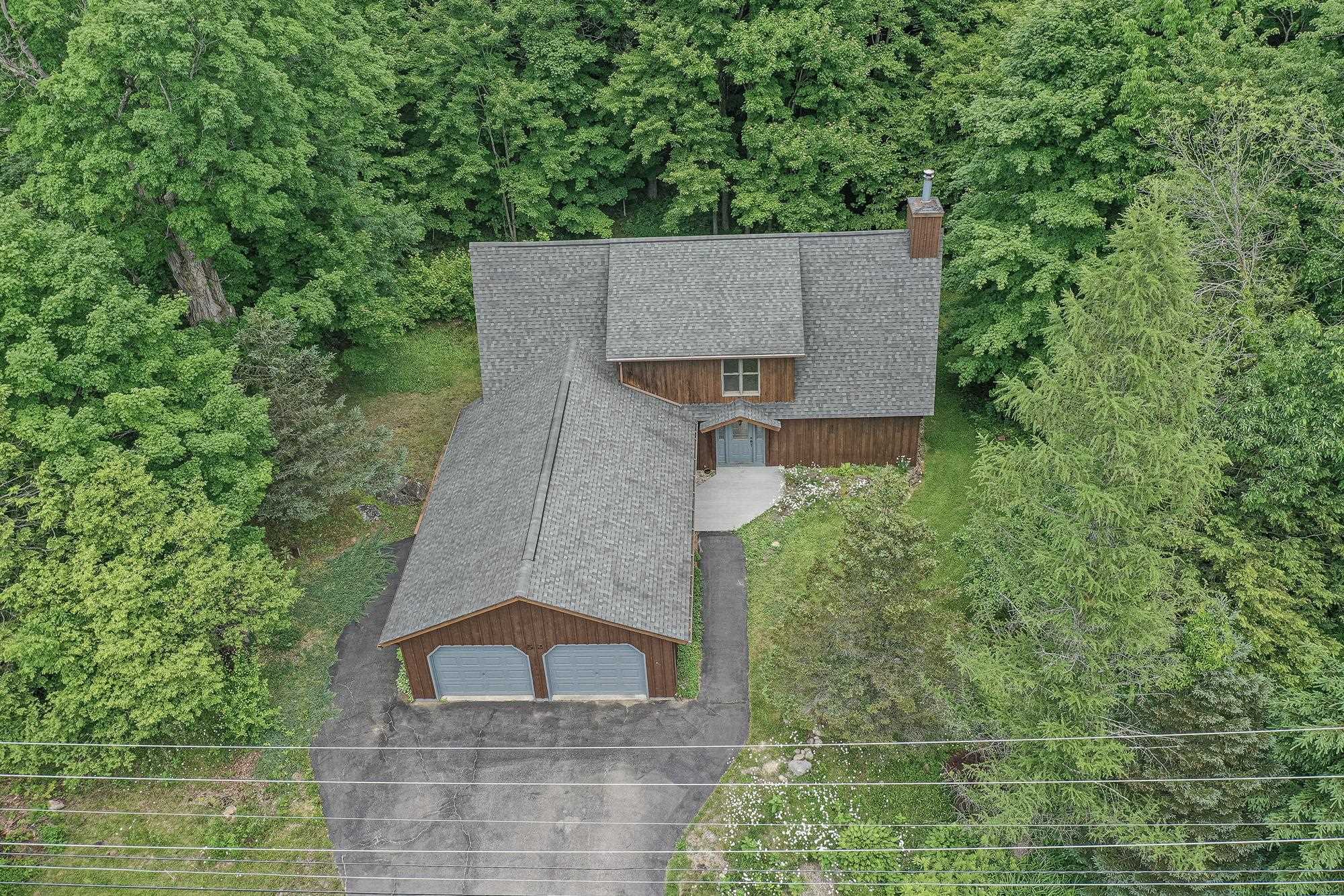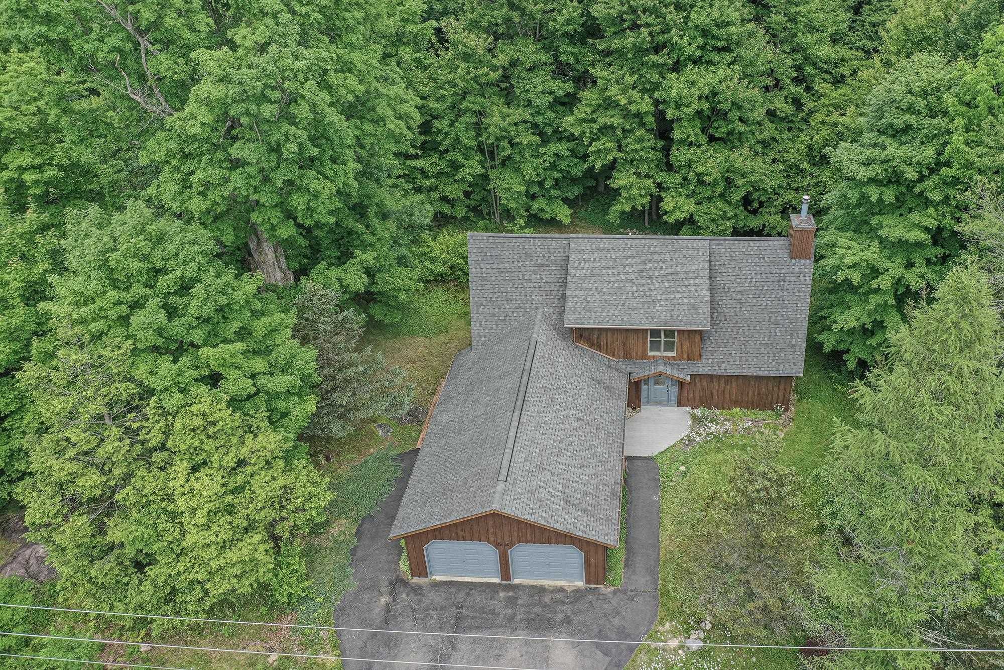 Nestled in the trees on a beautiful country road you will find 52 Risley Road. This custom built home has so much to offer. Situated on 9.5 acres of land, as you walk in the front door, to your right is a grand living room with a wall of windows, cathedral ceilings and a Vermont Castings woodstove. Through the French doors you will find the formal dining room with another large window overlooking the backyard. This area is open to the kitchen which includes custom made cabinetry, hardwood floors, plenty of storage, and counterspace! Steps away from the kitchen is the mudroom with access to the breezeway leading to the two car garage. There is also a first floor bedroom that could be used as an office or den and a primary suite on the first floor with an attached full bathroom. A laundry room and half bathroom complete this level! Upstairs you will find another full bathroom, a nice sized bedroom and then a stunning loft style bedroom that overlooks the living room space. Natural light pours in from three sides in this room and there is a very large walk-in closet. The new on demand water heater, softener and filter system can be found on the first level and the crawl space offers space for the forced air propane furnace. Outside, you will find an abundance of road frontage on Risley Road. The property extends up to Old State Road as well. The driveway is paved and the attached two car garage is oversized and there is a wood patio to the left side of the home and garage. Outside you will also find a wood storage area and an abundance of wildlife! If living out in the peace and tranquility of the country has always been your dream, this is the place for you! Check out the 3D tour and schedule your private tour of this lovely home today!