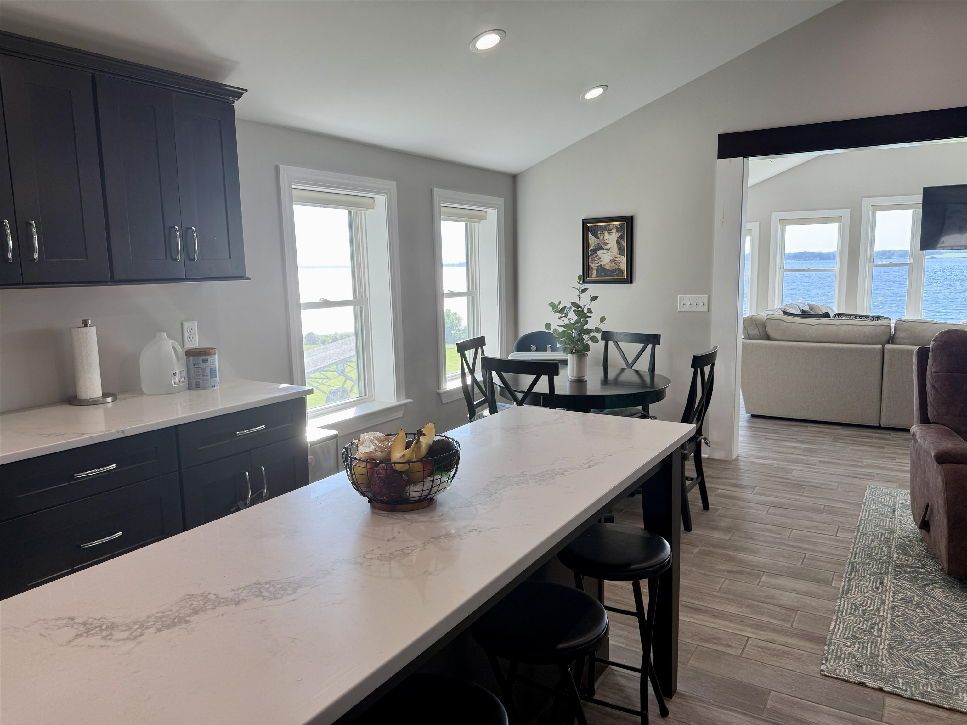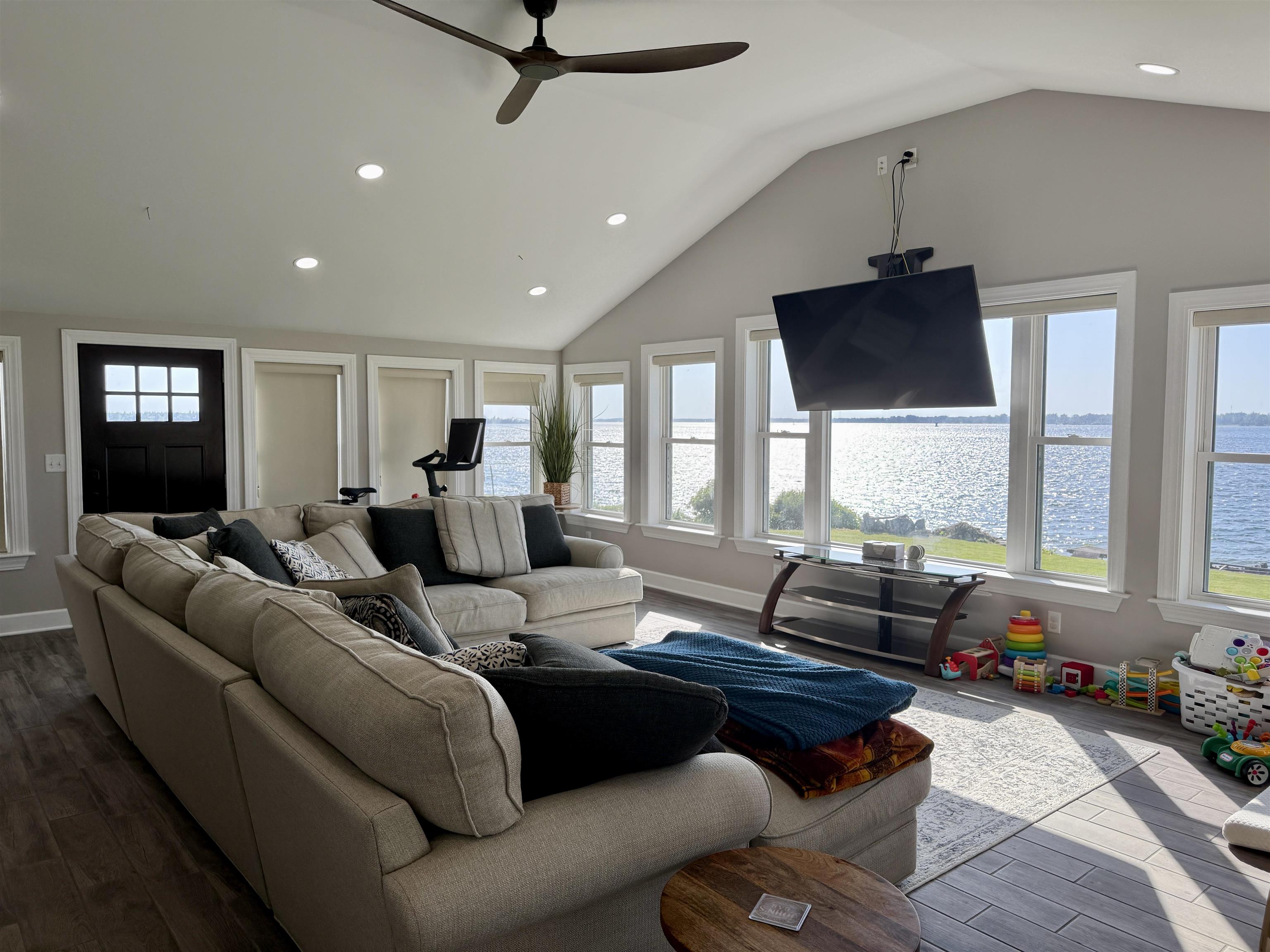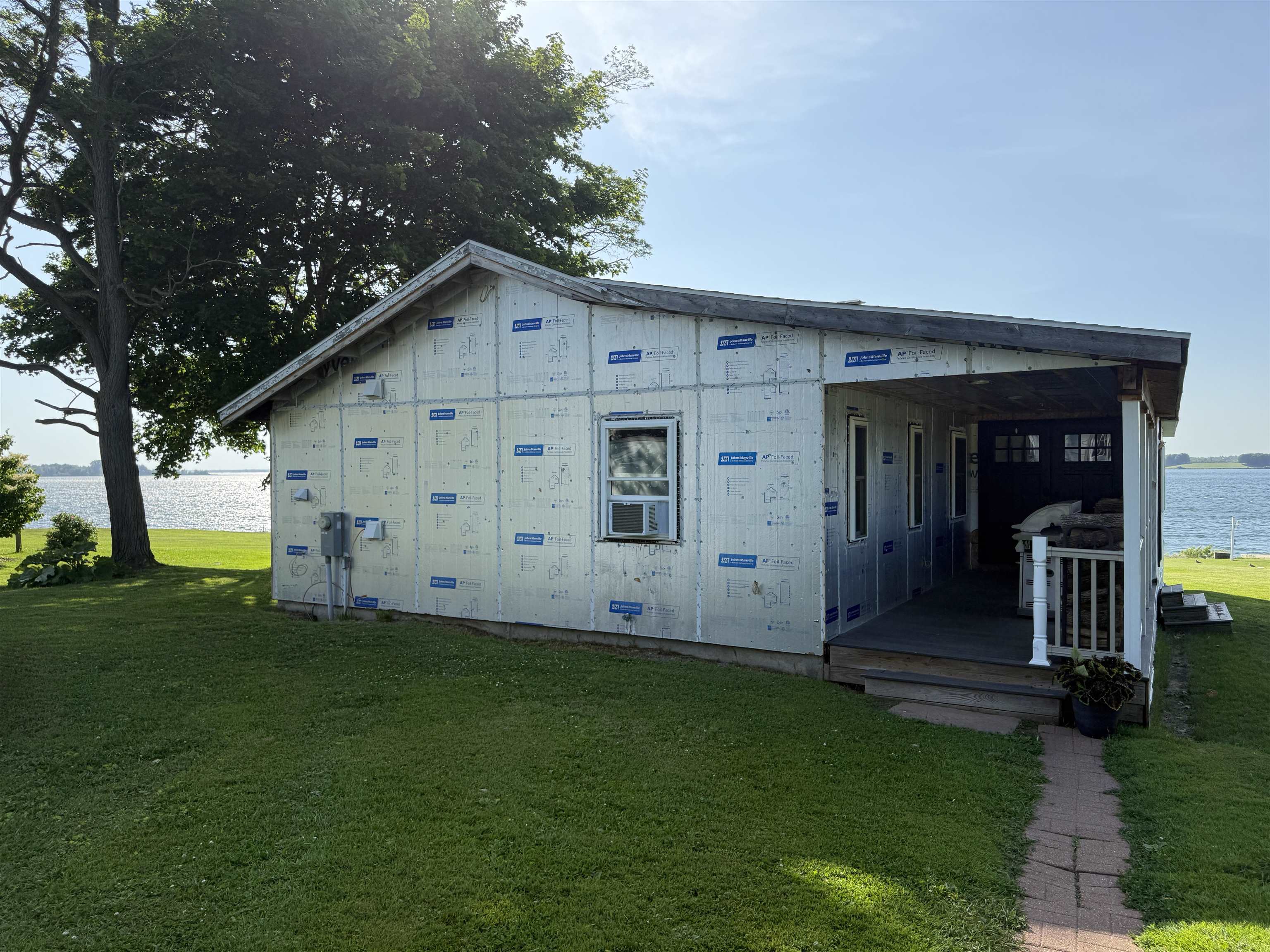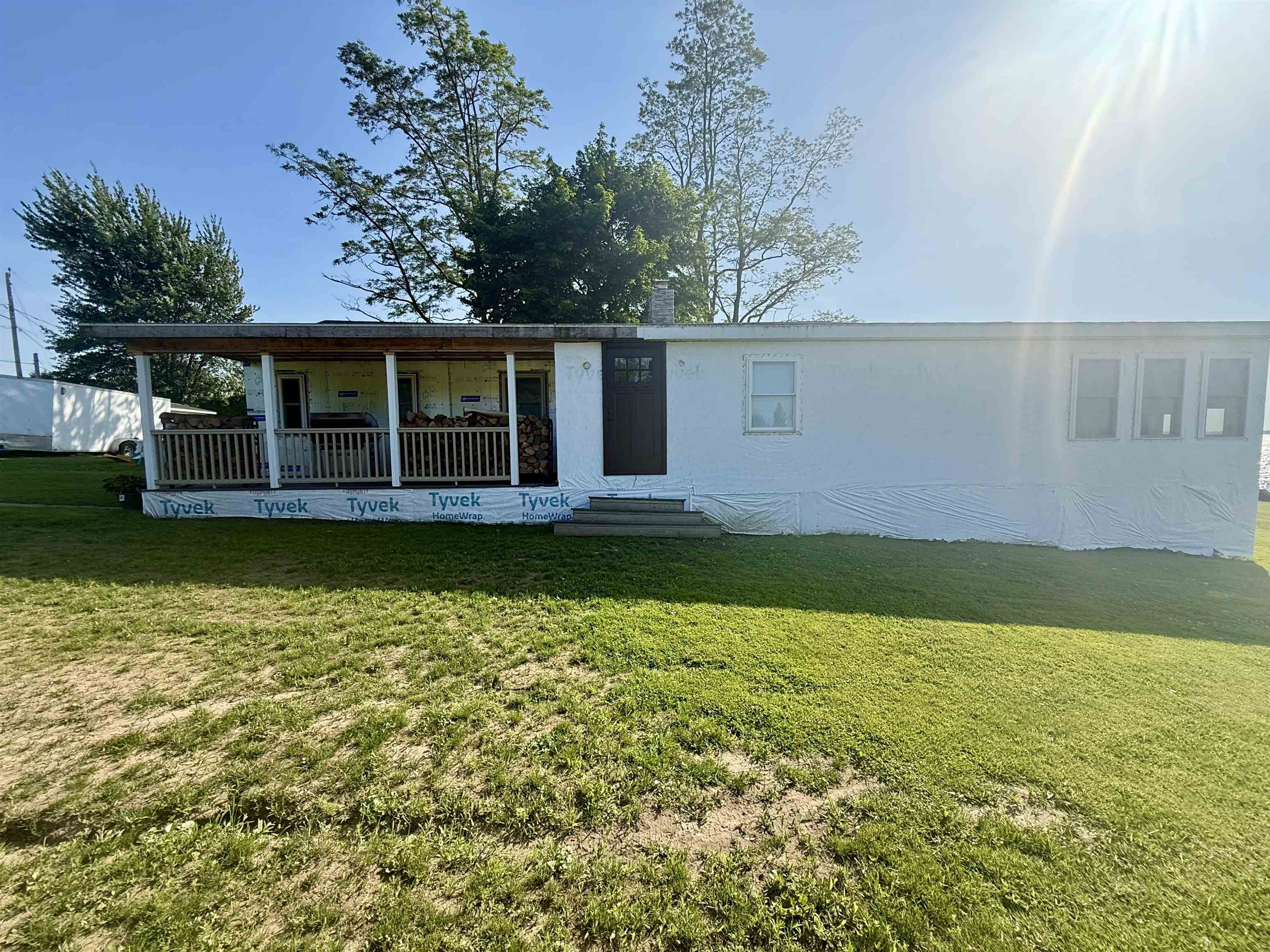 Welcome to this stunningly remodeled home on the St Lawrence River. Step inside where everything is new and modern, bright and fresh. The first thing you will notice is the wall of windows allowing the St Lawrence River into your home. The living room is flooded with light and the open floor plan with the kitchen makes this such an inviting space. The kitchen has quartz counter tops, soft close cabinets and drawers and a large kitchen island that is open to the sitting area around the custom built stacked stone wood burning fireplace. There are three bedrooms with the primary room having a walk in closet. The bathroom has a jetted tub, tiled shower and the laundry is conveniently located here as well. The house has electric in floor radiant heat, propane on demand hot water and a mini split AC unit and all new electrical and plumbing. The house is nearly finished with its remodel- just needs new siding! Along the 92 feet of river frontage there is a concrete boat launch, dock and deck by the water. The seller is also including a paddle boat, a Larson Cuddy Cabin boat, dock and trailer. Everything is here to jump start living the River Life!