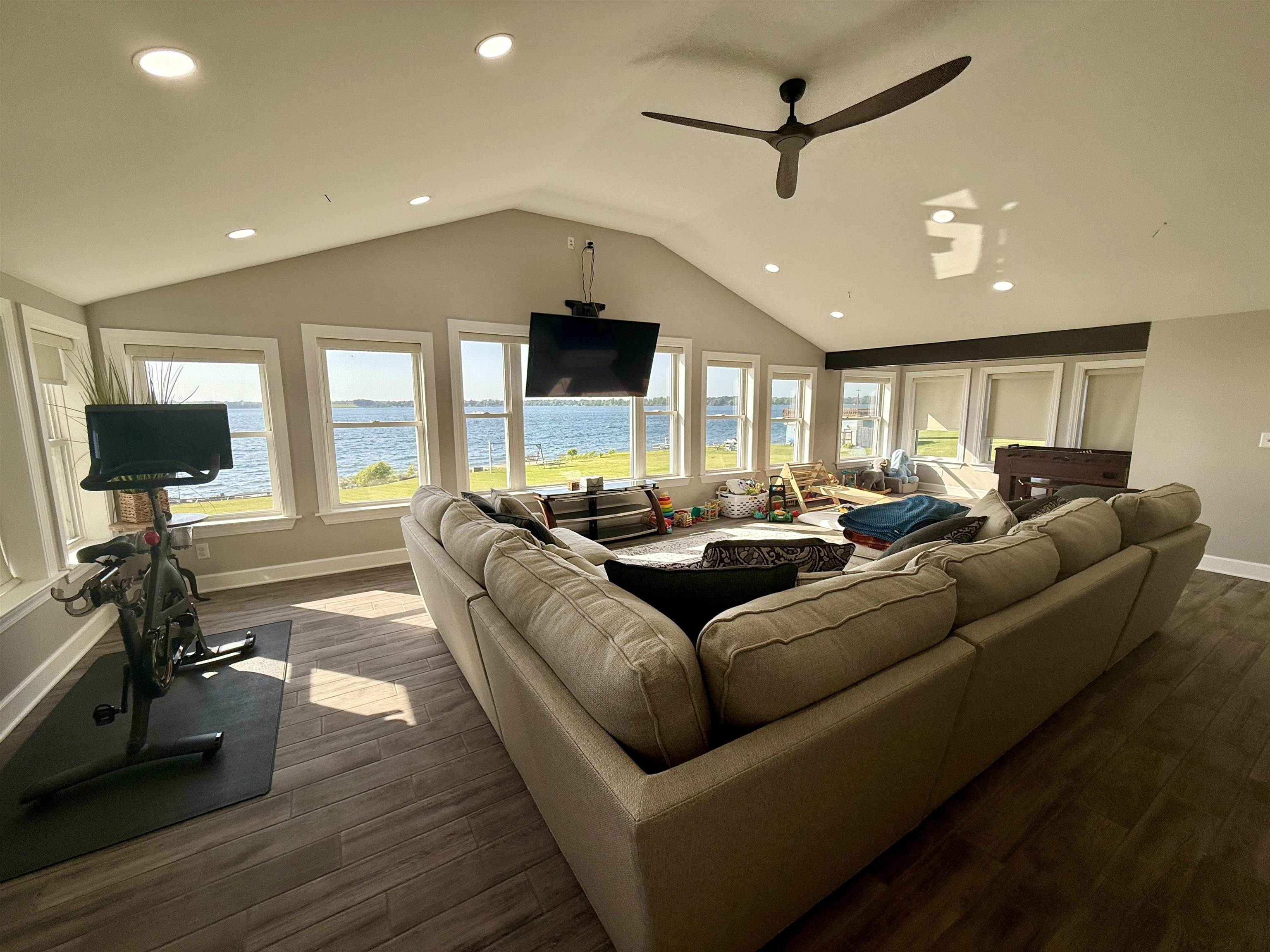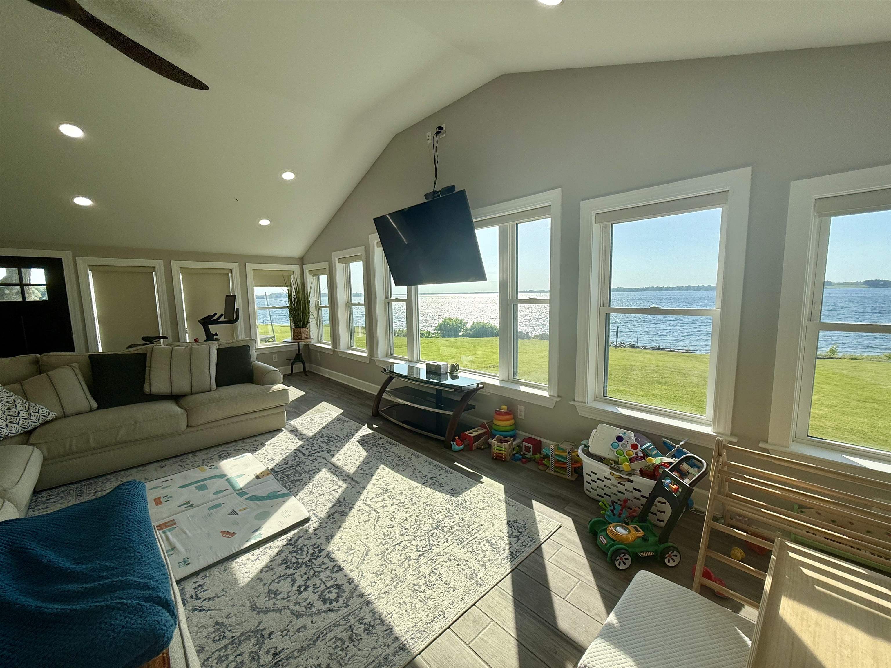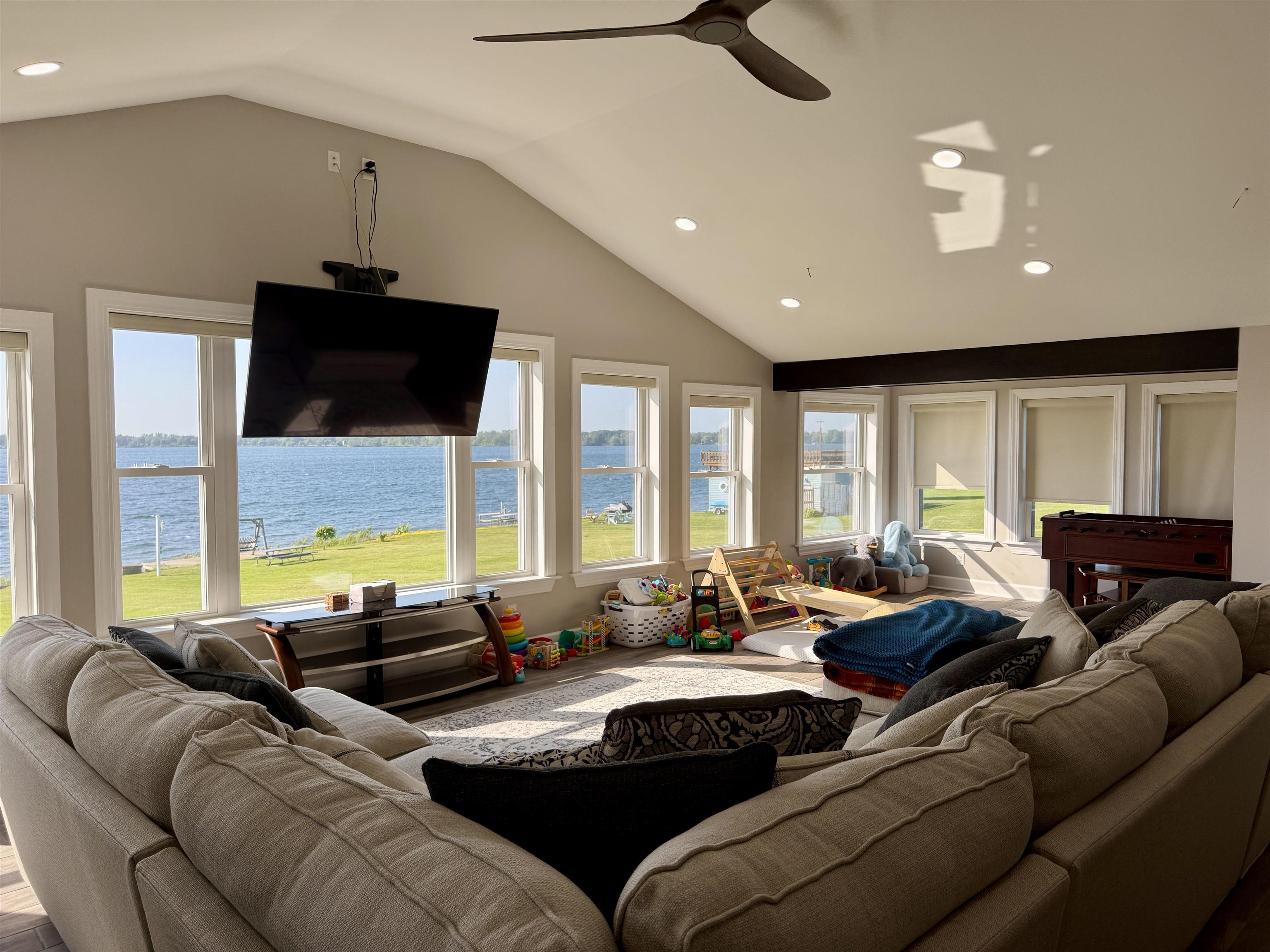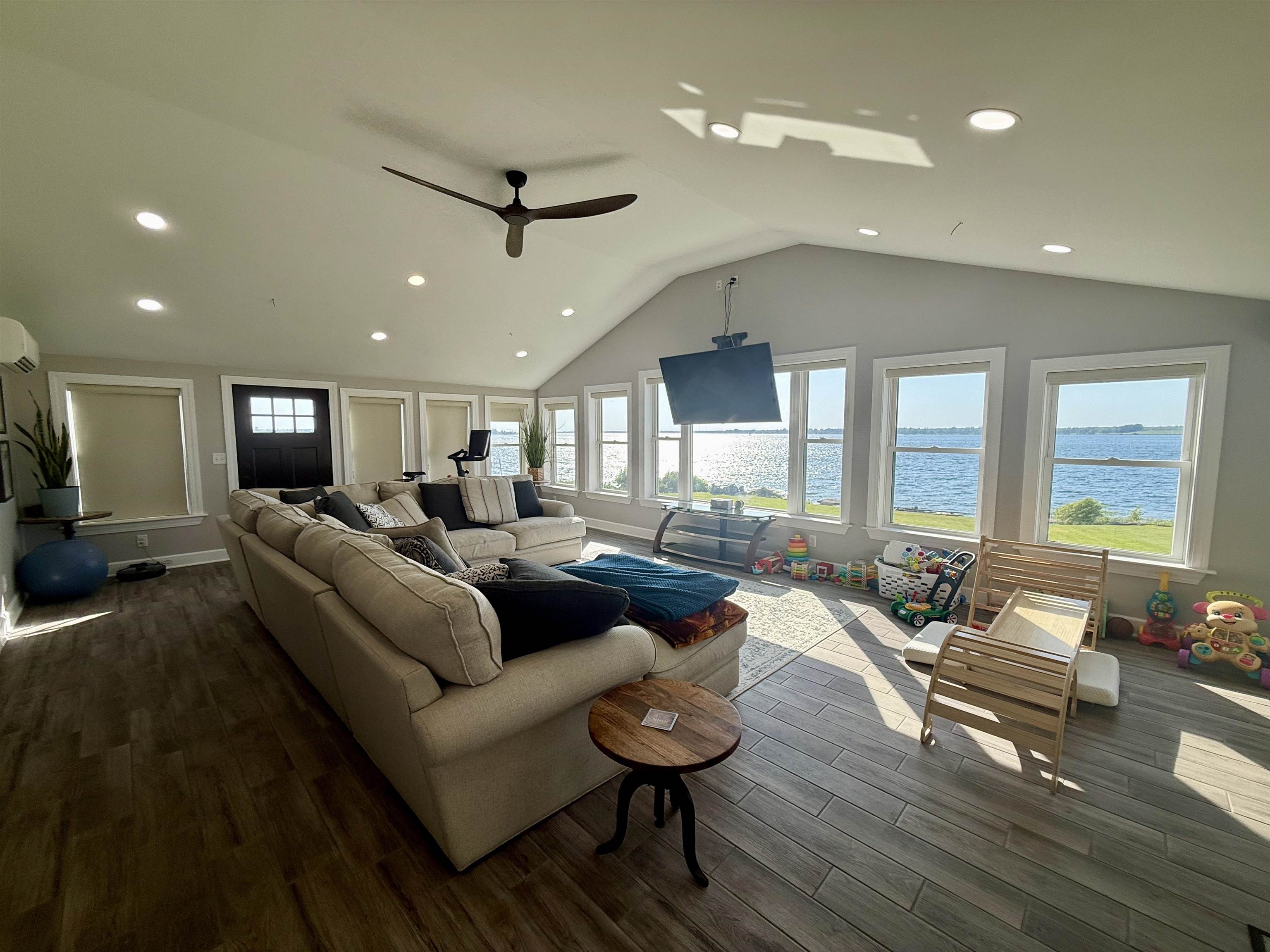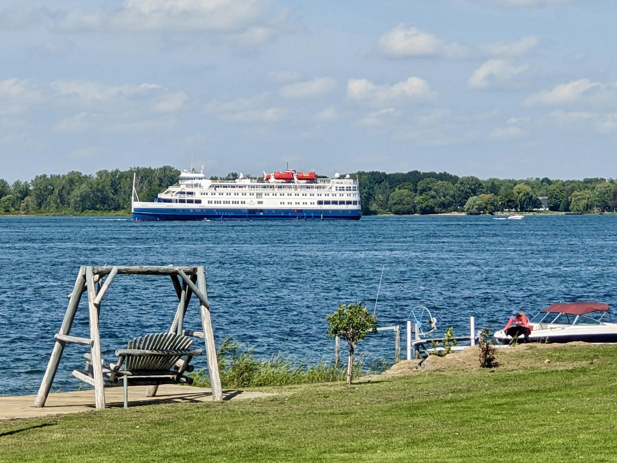Welcome to this stunningly remodeled home on the St Lawrence River. Step inside where everything is new and modern, bright and fresh. The first thing you will notice is the wall of windows allowing the St Lawrence River into your home. The living room is flooded with light and the open floor plan with the kitchen makes this such an inviting space. The kitchen has quartz counter tops, soft close cabinets and drawers and a large kitchen island that is open to the sitting area around the custom built stacked stone wood burning fireplace. There are three bedrooms with the primary room having a walk in closet. The bathroom has a jetted tub, tiled shower and the laundry is conveniently located here as well. The house has electric in floor radiant heat, propane on demand hot water and a mini split AC unit and all new electrical and plumbing. The house is nearly finished with its remodel- just needs new siding! Along the 92 feet of river frontage there is a concrete boat launch, dock and deck by the water. The seller is also including a paddle boat, a Larson Cuddy Cabin boat, dock and trailer. Everything is here to jump start living the River Life!
