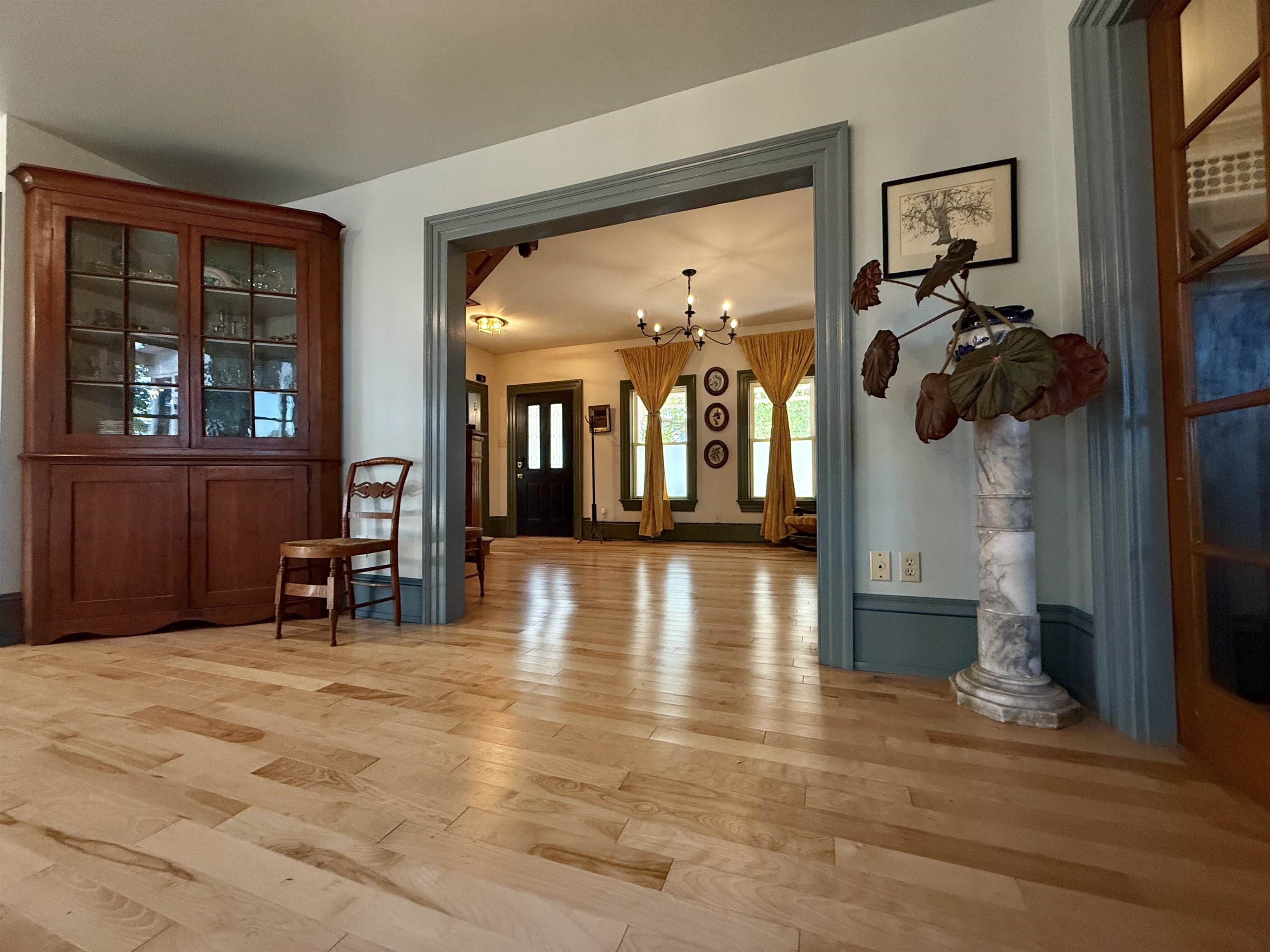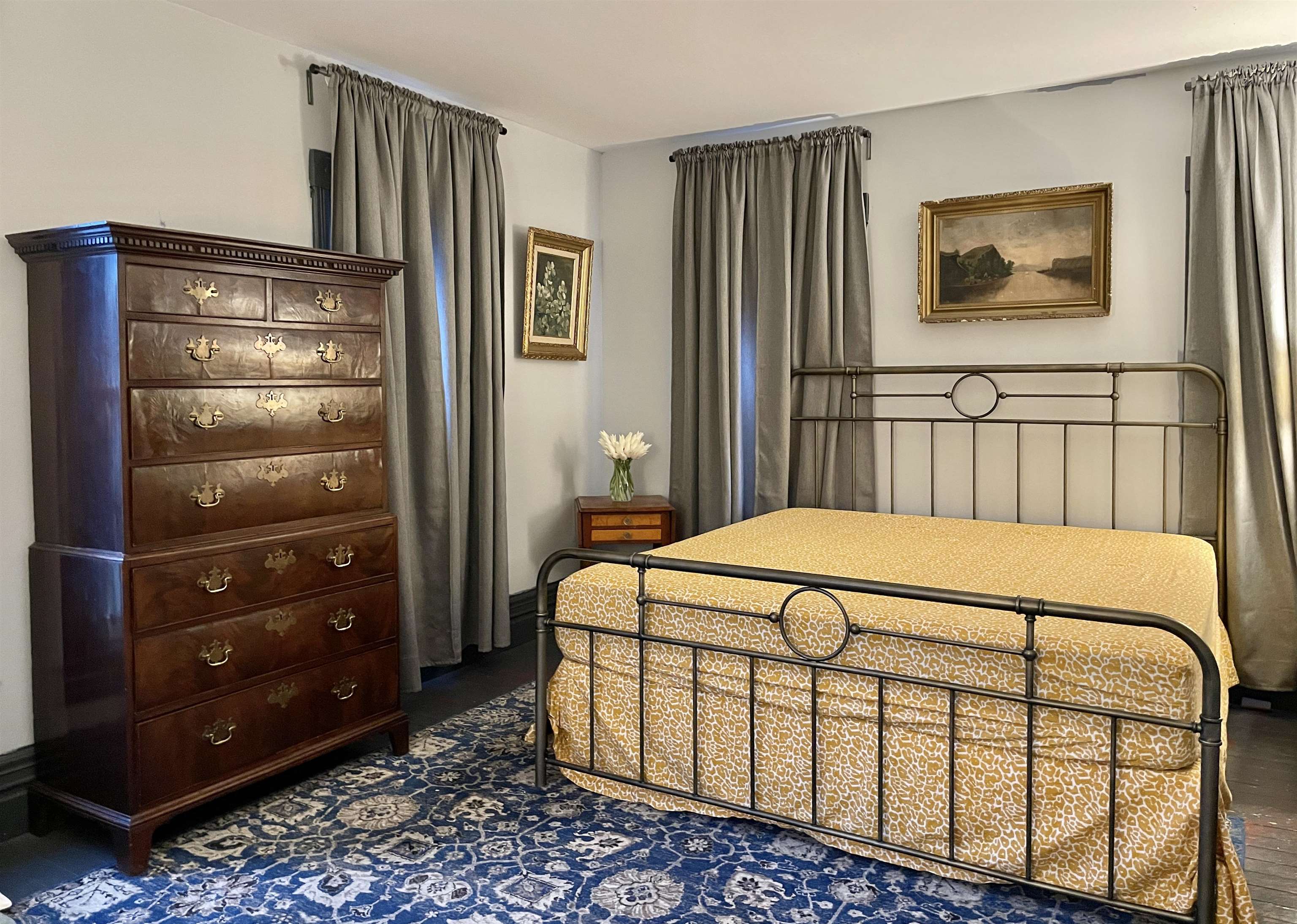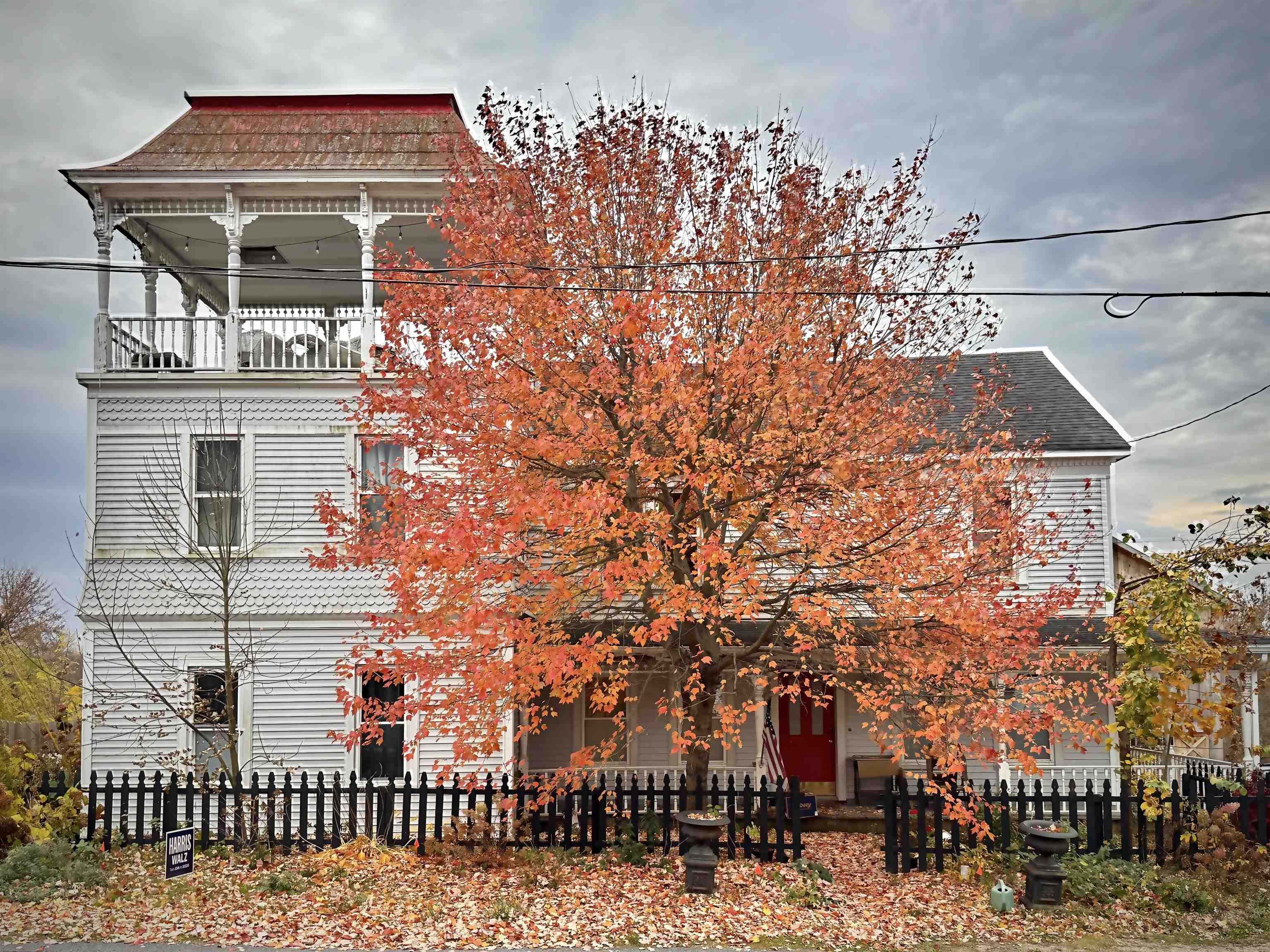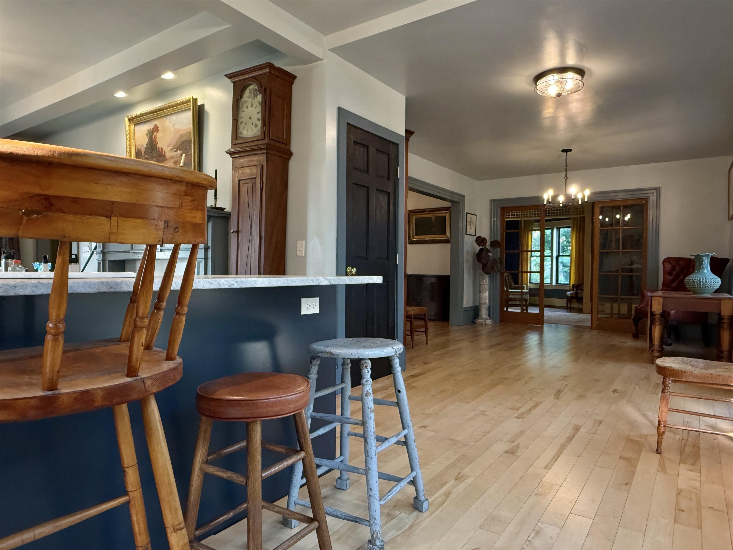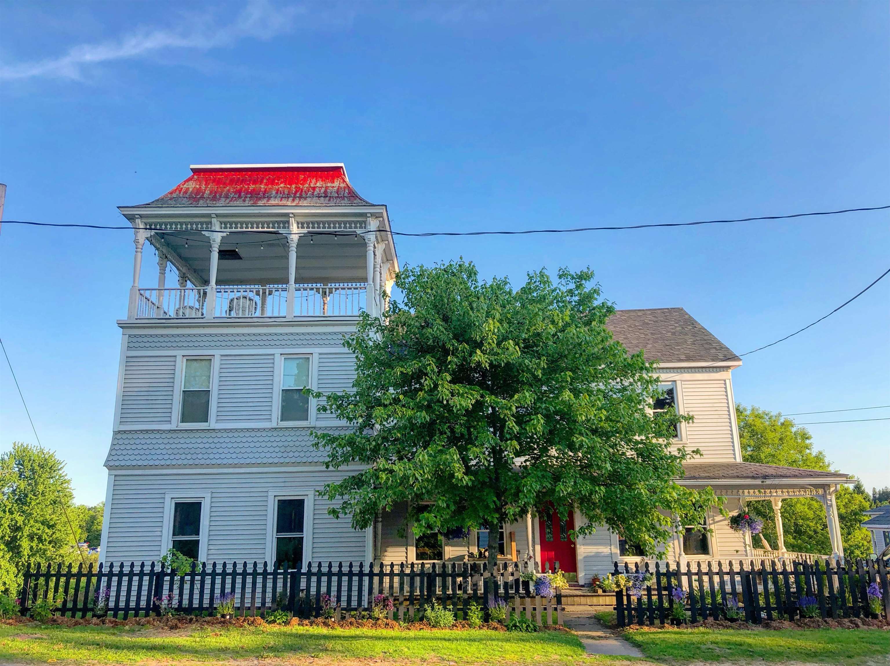 A one-of-a-kind home on at least two fronts: architecture and vista! Nestled between two worlds, the front of the home appears in charming black and white vignettes of downtown Madrid throughout its long history—while the backyard opens to a stunning riverfront view, bordered only by parkland and undeveloped shoreline on both sides. This historic home began its story in 1832 and evolved through the 19th century with the addition of a prominent three-story tower. The top level was contemporarily described as an “open-air bedroom,” though the landmark is now locally known as the cupola. Lovingly stewarded by just a few families over nearly two centuries, this home now offers you the chance to write the next chapter in its storied book. Extensive interior renovations range from foundational upgrades—like a new heating system and completely replaced plumbing—to more design-forward improvements, including a brand-new kitchen and bathrooms. Whether it’s the solid hardwood yellow birch floors, antiqued quartzite countertops, or the large frameless glass walk-in shower, these updates have ushered the home into an entirely new era. The open layout on the first floor is perfect for hosting, and things really come to life in warmer months when guests can enjoy the large attached deck and screened-in room spanning the entire riverside of the home. A gentle slope leads from the house to the river, past established shrubbery and perennials, and into an English-style garden bursting with grapes, apples, plums, strawberries, and more. The tomatoes are already ripening, and the lavender is in peak bloom—too bad listing descriptions can’t quite capture the peaceful scent of the garden, or the ever-present sound of rushing water over the dam. From here, there’s yet another postcard-worthy view: the historic stone bridge framed by garden greenery. Potential golfers will be delighted to find the backyard abuts the local golf course—so if gardening, kayaking, or fishing aren’t your thing, there’s always golf! And you’ll have plenty of space to store multiple carts in the 1,792-square-foot timber frame barn, built with locally sourced and milled hemlock logs, pulled out of the forest by draft horses. The barn includes an insulated slab and plumbing to support a potential accessory dwelling unit on the second floor—complete with those same incredible river views. A future project to dream about? The new parcel includes additional land from an adjoining lot, adding over 100 feet of river frontage. Much of the extensive antique collection inside could also be included in the sale—offering the possibility of purchasing the home largely furnished on day one. Though much has been thoughtfully renovated and modernized, successive owners have taken great care to preserve standout original features: the stunning staircase, the coved (rounded plaster) ceiling in the living room, and now the replacement of a few posts on the cupola—currently underway. As the next steward and owner, the baton is in your hands. Your love affair with one truly remarkable home begins now—its next chapter is yours to write. The seller is a NYS Licensed Real Estate Broker.