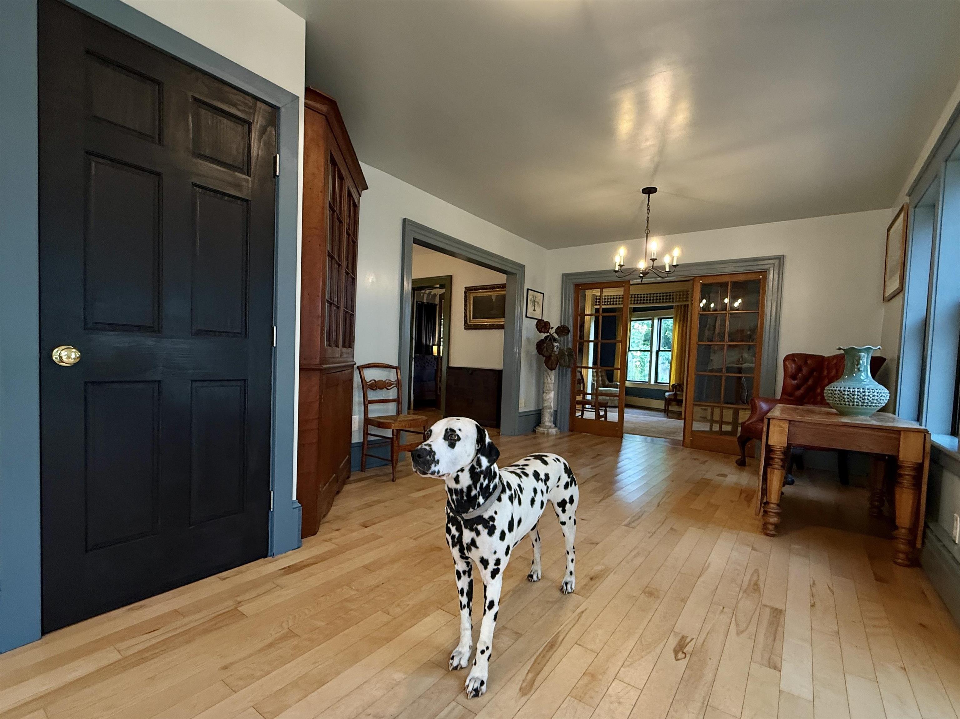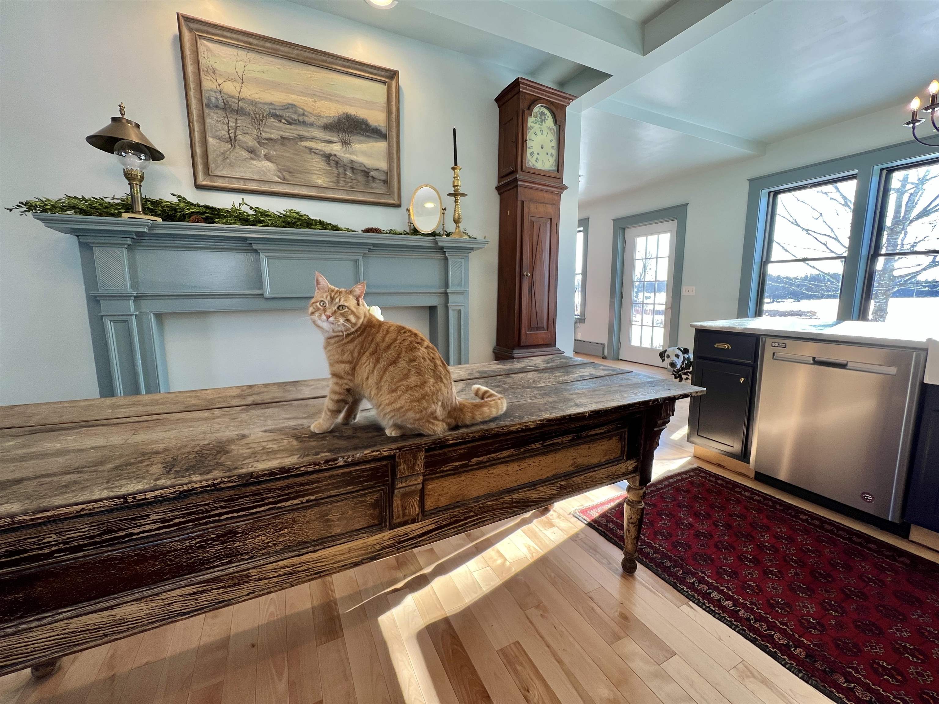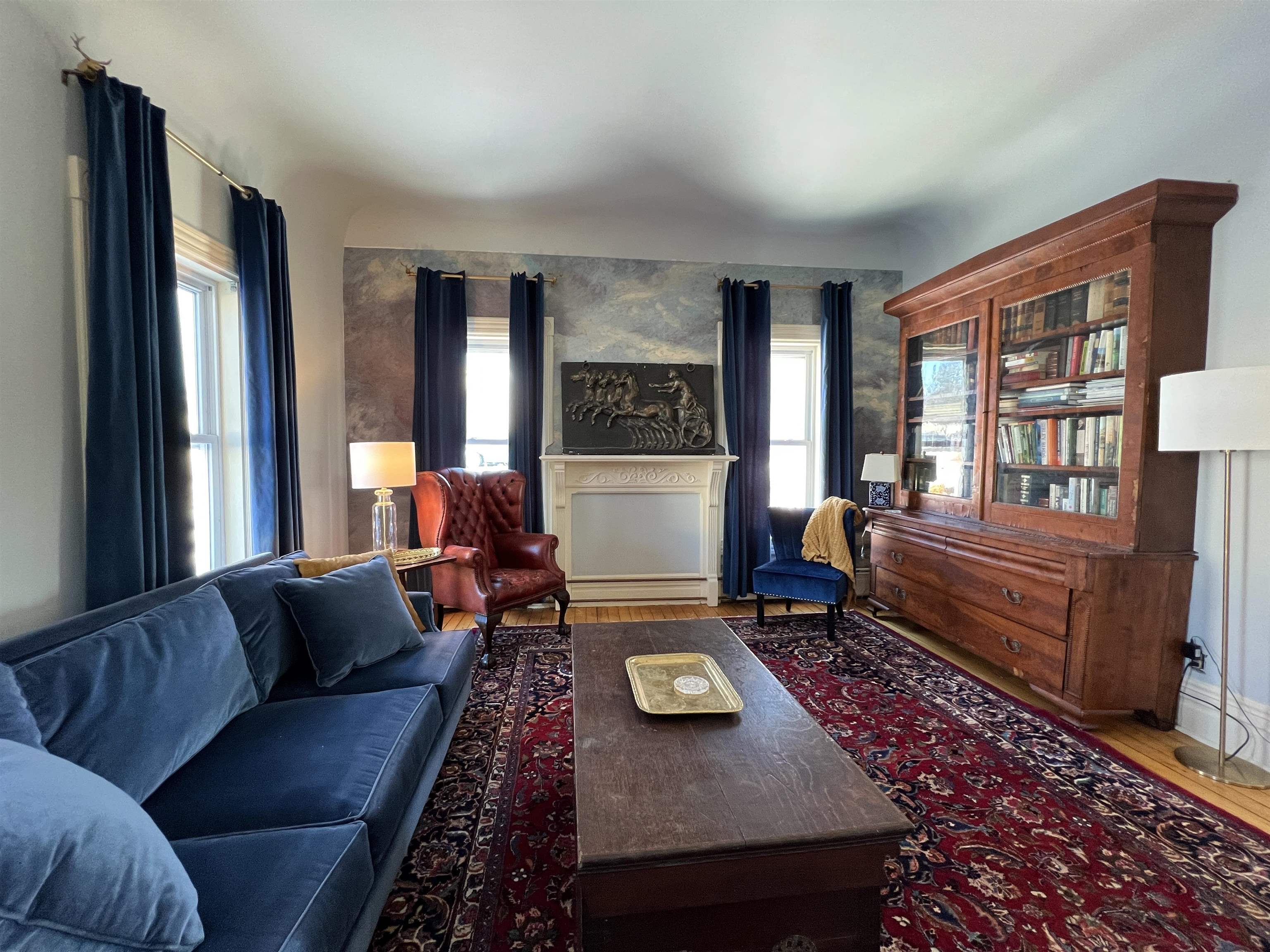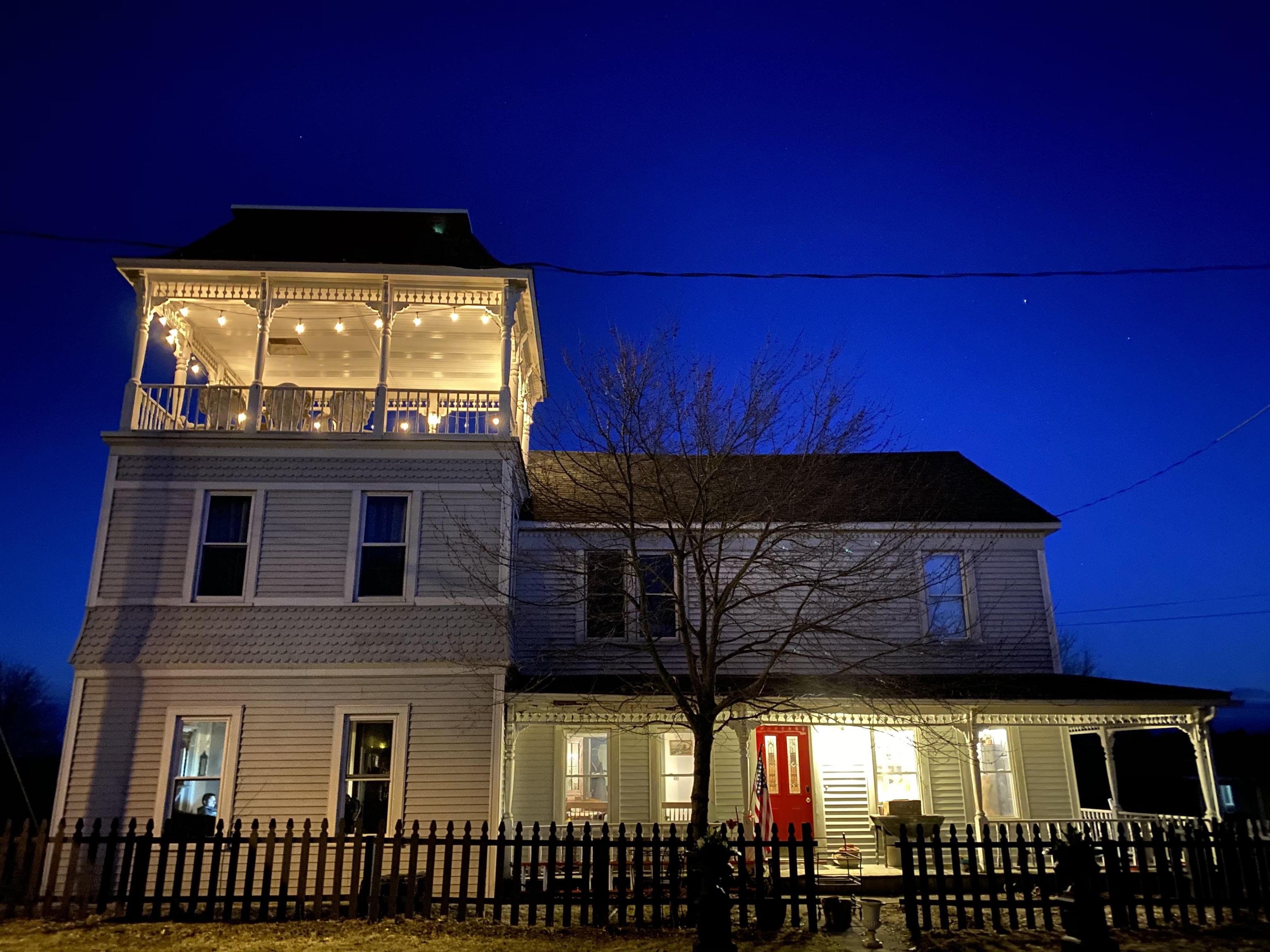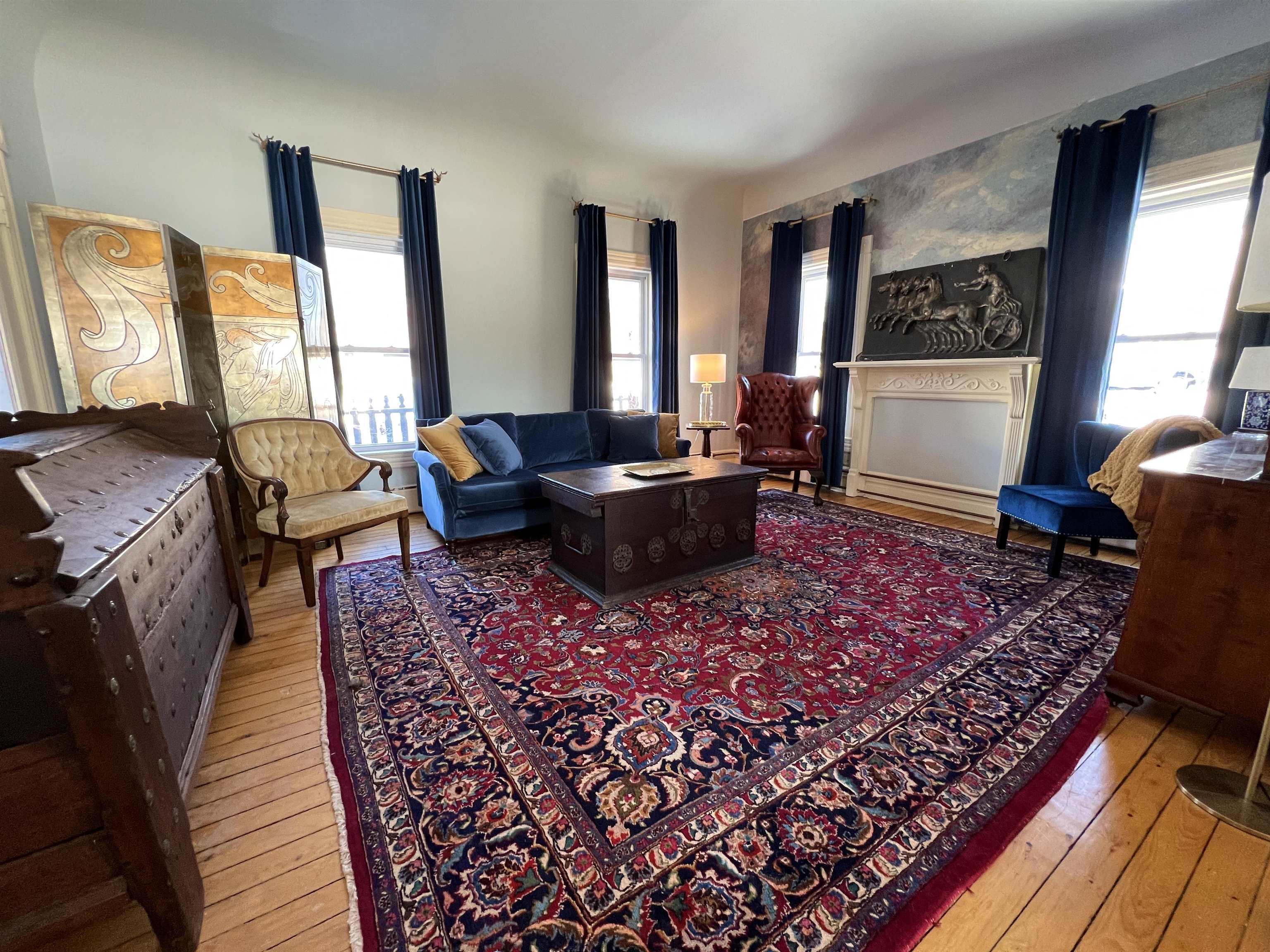 A one-of-a-kind home on at least two fronts: architecture and vista! Nestled between two worlds, the front of the home appears in charming black and white vignettes of downtown Madrid throughout its long history—while the backyard opens to a stunning riverfront view, bordered only by parkland and undeveloped shoreline on both sides. This historic home began its story in 1832 and evolved through the 19th century with the addition of a prominent three-story tower. The top level was contemporarily described as an “open-air bedroom,” though the landmark is now locally known as the cupola. Lovingly stewarded by just a few families over nearly two centuries, this home now offers you the chance to write the next chapter in its storied book. Extensive interior renovations range from foundational upgrades—like a new heating system and completely replaced plumbing—to more design-forward improvements, including a brand-new kitchen and bathrooms. Whether it’s the solid hardwood yellow birch floors, antiqued quartzite countertops, or the large frameless glass walk-in shower, these updates have ushered the home into an entirely new era. The open layout on the first floor is perfect for hosting, and things really come to life in warmer months when guests can enjoy the large attached deck and screened-in room spanning the entire riverside of the home. A gentle slope leads from the house to the river, past established shrubbery and perennials, and into an English-style garden bursting with grapes, apples, plums, strawberries, and more. The tomatoes are already ripening, and the lavender is in peak bloom—too bad listing descriptions can’t quite capture the peaceful scent of the garden, or the ever-present sound of rushing water over the dam. From here, there’s yet another postcard-worthy view: the historic stone bridge framed by garden greenery. Potential golfers will be delighted to find the backyard abuts the local golf course—so if gardening, kayaking, or fishing aren’t your thing, there’s always golf! And you’ll have plenty of space to store multiple carts in the 1,792-square-foot timber frame barn, built with locally sourced and milled hemlock logs, pulled out of the forest by draft horses. The barn includes an insulated slab and plumbing to support a potential accessory dwelling unit on the second floor—complete with those same incredible river views. A future project to dream about? The new parcel includes additional land from an adjoining lot, adding over 100 feet of river frontage. Much of the extensive antique collection inside could also be included in the sale—offering the possibility of purchasing the home largely furnished on day one. Though much has been thoughtfully renovated and modernized, successive owners have taken great care to preserve standout original features: the stunning staircase, the coved (rounded plaster) ceiling in the living room, and now the replacement of a few posts on the cupola—currently underway. As the next steward and owner, the baton is in your hands. Your love affair with one truly remarkable home begins now—its next chapter is yours to write. The seller is a NYS Licensed Real Estate Broker.