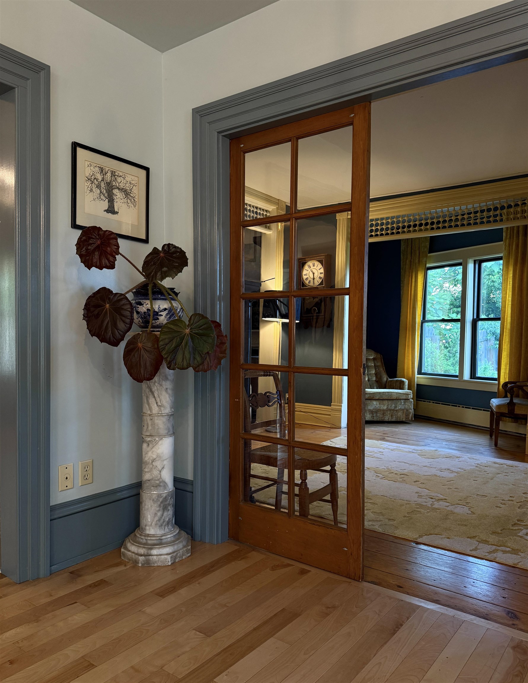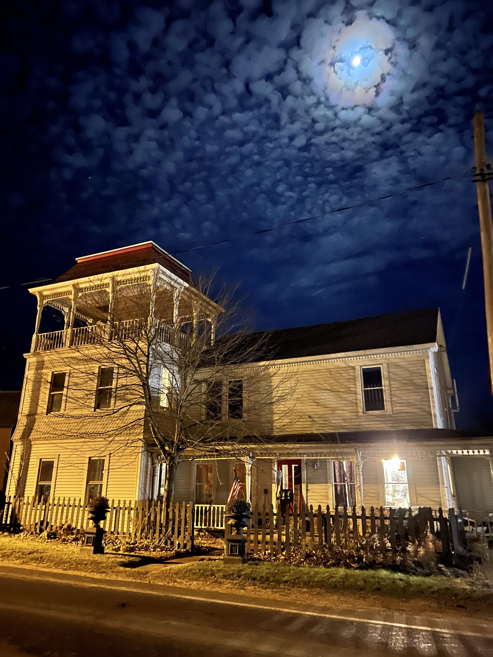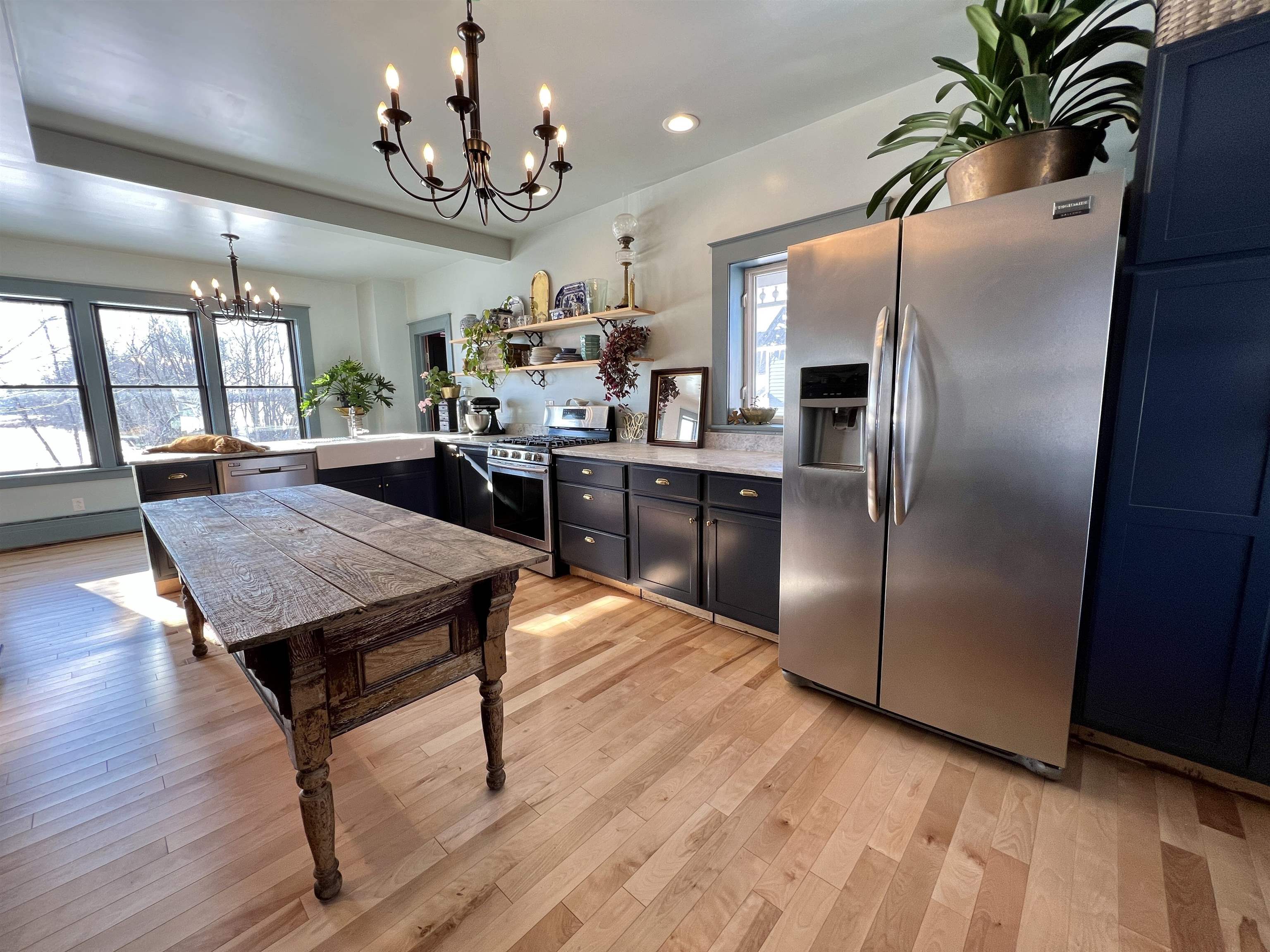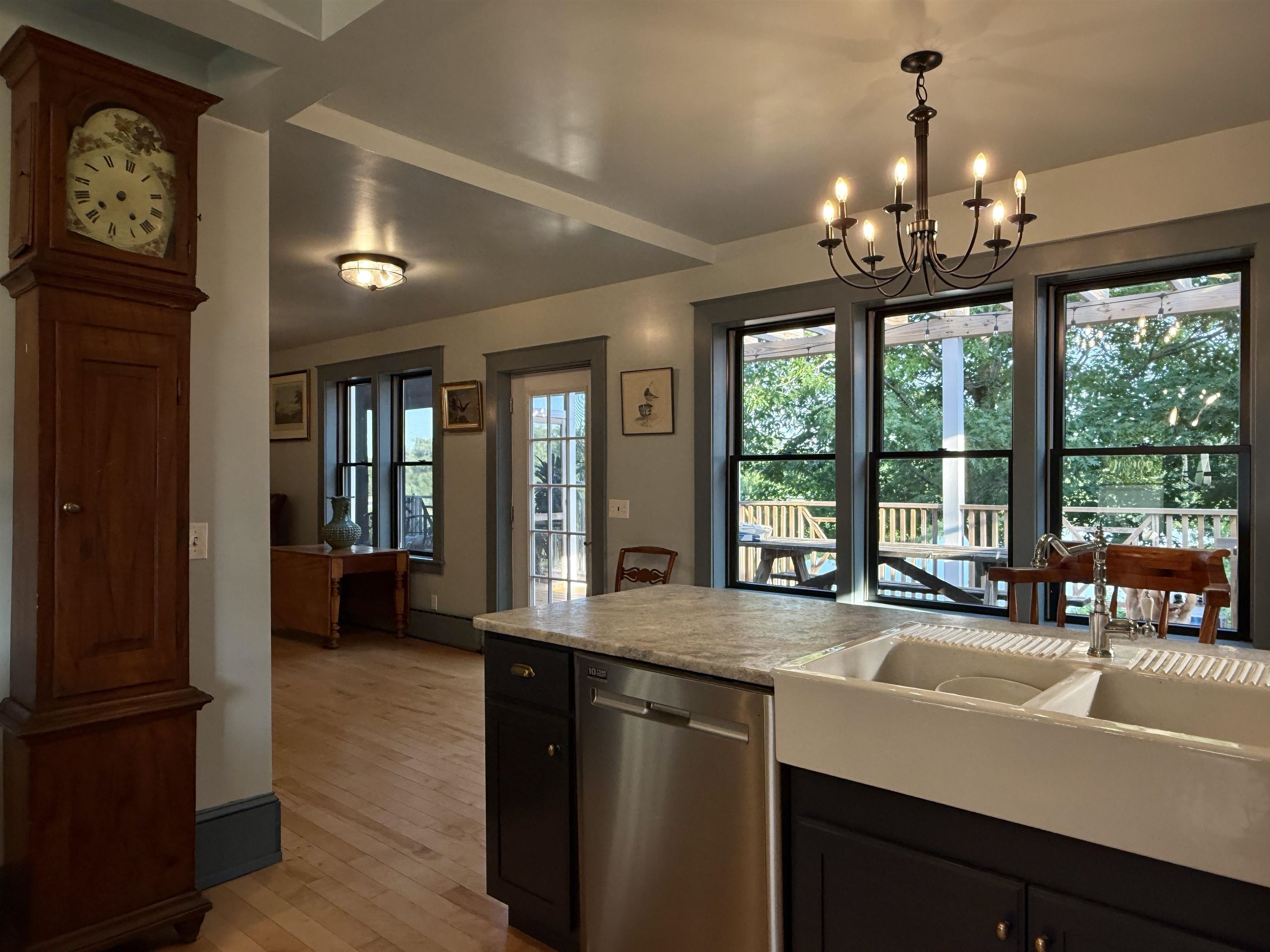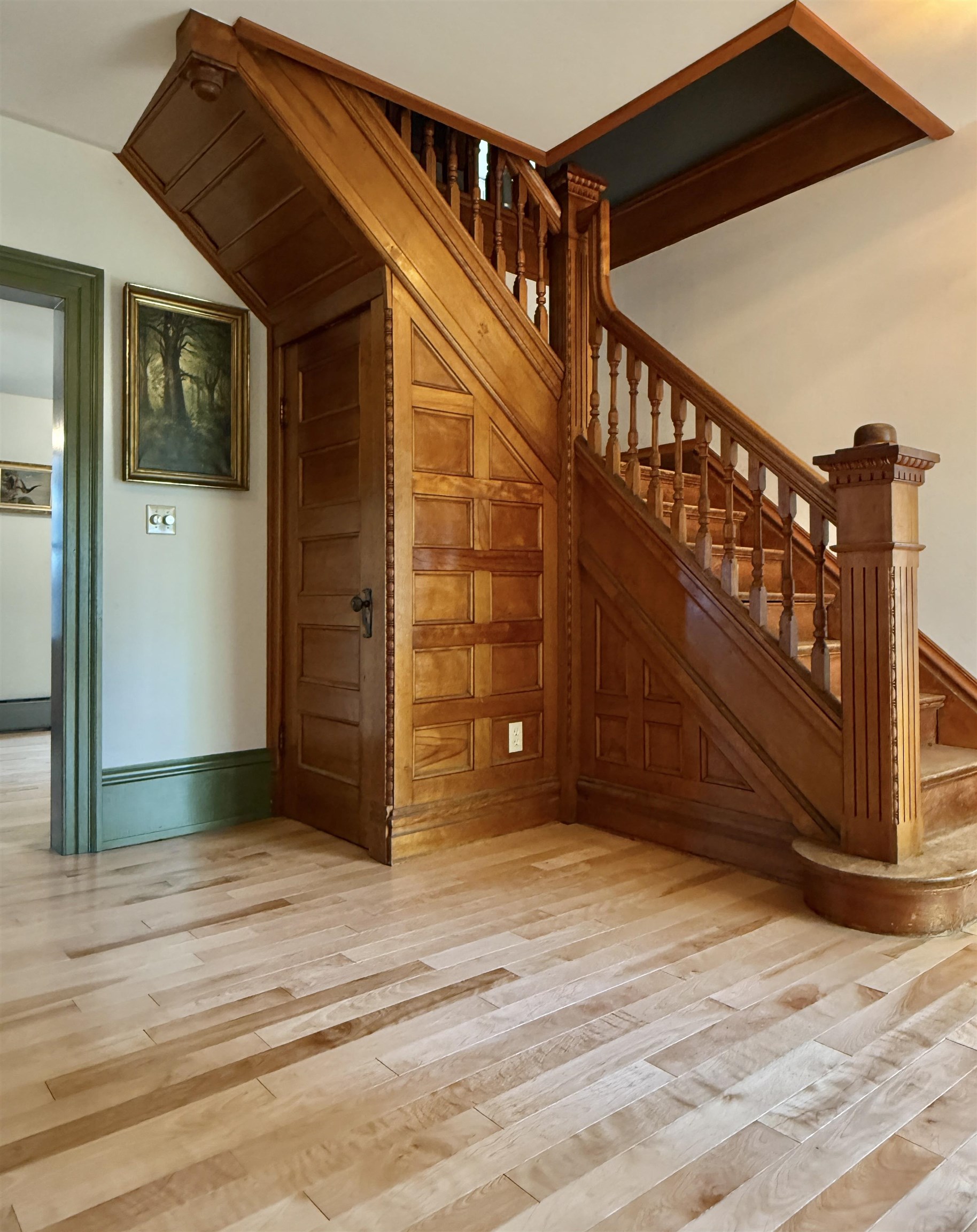 A one-of-a-kind home on at least two fronts: architecture and vista! Nestled between two worlds, the front of the home appears in charming black and white vignettes of downtown Madrid throughout its long history—while the backyard opens to a stunning riverfront view, bordered only by parkland and undeveloped shoreline on both sides. This historic home began its story in 1832 and evolved through the 19th century with the addition of a prominent three-story tower. The top level was contemporarily described as an “open-air bedroom,” though the landmark is now locally known as the cupola. Lovingly stewarded by just a few families over nearly two centuries, this home now offers you the chance to write the next chapter in its storied book. Extensive interior renovations range from foundational upgrades—like a new heating system and completely replaced plumbing—to more design-forward improvements, including a brand-new kitchen and bathrooms. Whether it’s the solid hardwood yellow birch floors, antiqued quartzite countertops, or the large frameless glass walk-in shower, these updates have ushered the home into an entirely new era. The open layout on the first floor is perfect for hosting, and things really come to life in warmer months when guests can enjoy the large attached deck and screened-in room spanning the entire riverside of the home. A gentle slope leads from the house to the river, past established shrubbery and perennials, and into an English-style garden bursting with grapes, apples, plums, strawberries, and more. The tomatoes are already ripening, and the lavender is in peak bloom—too bad listing descriptions can’t quite capture the peaceful scent of the garden, or the ever-present sound of rushing water over the dam. From here, there’s yet another postcard-worthy view: the historic stone bridge framed by garden greenery. Potential golfers will be delighted to find the backyard abuts the local golf course—so if gardening, kayaking, or fishing aren’t your thing, there’s always golf! And you’ll have plenty of space to store multiple carts in the 1,792-square-foot timber frame barn, built with locally sourced and milled hemlock logs, pulled out of the forest by draft horses. The barn includes an insulated slab and plumbing to support a potential accessory dwelling unit on the second floor—complete with those same incredible river views. A future project to dream about? The new parcel includes additional land from an adjoining lot, adding over 100 feet of river frontage. Much of the extensive antique collection inside could also be included in the sale—offering the possibility of purchasing the home largely furnished on day one. Though much has been thoughtfully renovated and modernized, successive owners have taken great care to preserve standout original features: the stunning staircase, the coved (rounded plaster) ceiling in the living room, and now the replacement of a few posts on the cupola—currently underway. As the next steward and owner, the baton is in your hands. Your love affair with one truly remarkable home begins now—its next chapter is yours to write. The seller is a NYS Licensed Real Estate Broker.