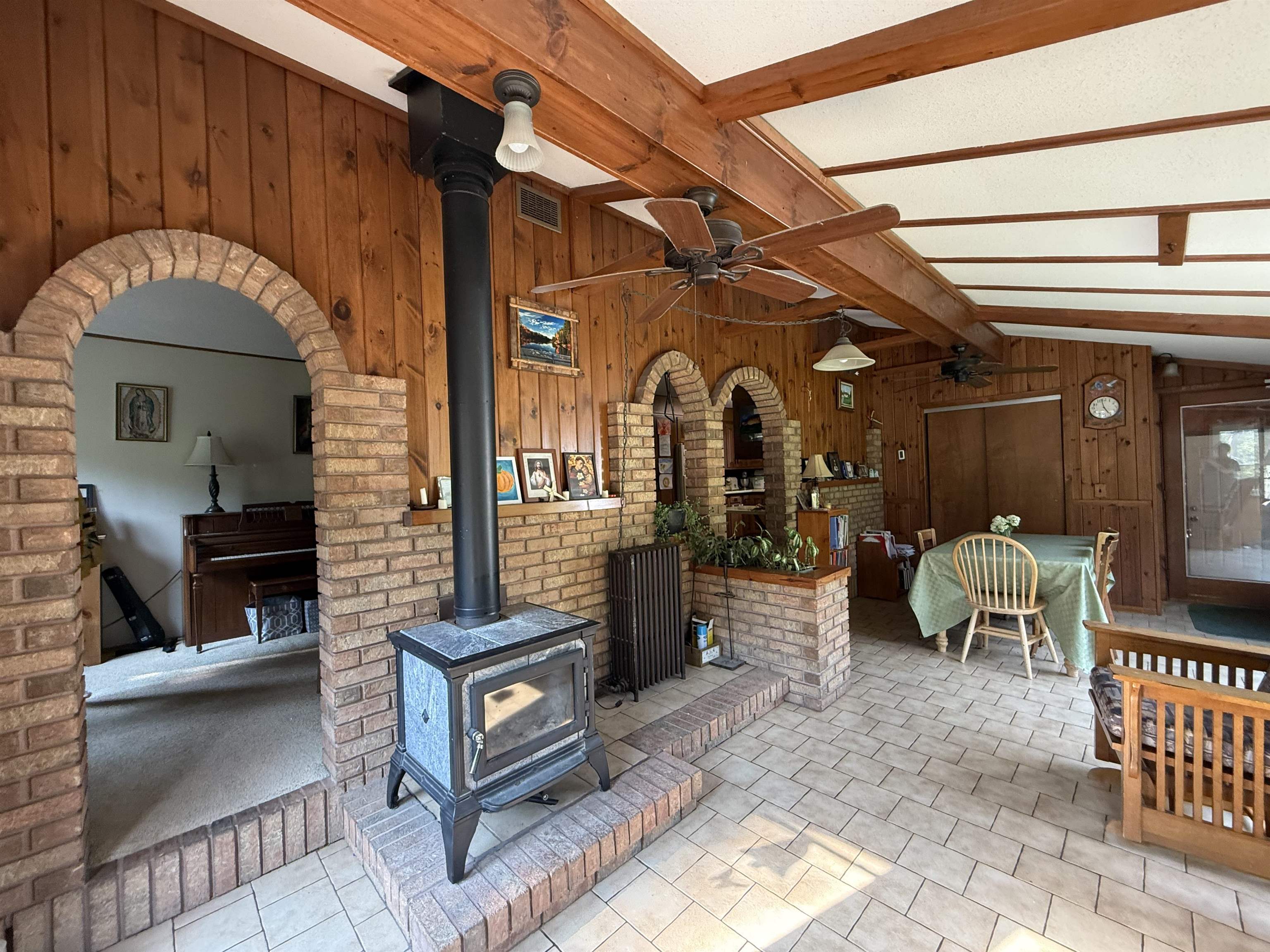 PRICE REDUCED!!! 196 County Road 50, Brasher Falls is a homestead, 1 mile from town in the state forest! Situated on 2.1 well-appointed, landscaped acres with an attached, 2 car garage a barn and screened gazebo, this property checks off a lot of boxes for a discerned buyer. The house; almost 1800 sq .ft, 3 bedrooms, 1 1/2 bathrooms, an extremely spacious, newly added bonus room with endless possibilities (currently used for home schooling, but could be another huge bedroom, family room, work space for the entrepreneur or recreation room...you decide), magnificent sunroom/ dining room with gorgeous brick arches and accents, vaulted wood beamed ceilings, tongue and groove wood walls, tile floors and a gorgeous newly purchased soap stone wood stove to keep it all toasty warm. There is a huge mudroom with cathedral ceiling, new LVT wood floors, entrance from driveway, attached 2 car garage and a back door. The kitchen has wood cabinets, lots of counter space, a peninsula, appliances that will convey (the dishwasher was purchased this week) and plenty of room to cook to cook and entertain. There is space off the kitchen for an eating area and a separate room looking back through the brick arch currently used as a music room. The generously sized living room is in the front of the home it has the front entrance with double closets leading to it and a gorgeous staircase to the second floor. The main floor also includes a bedroom and half bathroom. Upstairs there are 2 very good-sized bedrooms with double closets, the main full bathroom with double vanities and linen closet at the landing. Outside you will enjoy the 24 x 30 two car attached garage, circle driveway, the landscaped, partially fenced 2.1-acre lot with back deck, lovely path to the screened gazebo and above ground pool area, a cement slab currently a basketball court, fire pit, children''s playhouse, garden area and the 40'' x 47'' barn that has a workshop, chicken coups and ENDLESS possibilities. Let''s not forget this is ALL connected to thousands of acres of the Brasher State Forest and a minute from the St. Lawrence County multi-use recreational trail, 1 mile from the center of town and Brasher School. The propane boiler was new 2018, the electrical was professionally updated 2021, the 1,000-gallon concrete septic tank was pumped 2024 when the new professionally engineered leach field was installed. This wonderful property is priced to sell so don''t hesitate, call to get your showing today!! The sellers plan to leave the pool and deck at the current asking price!!
