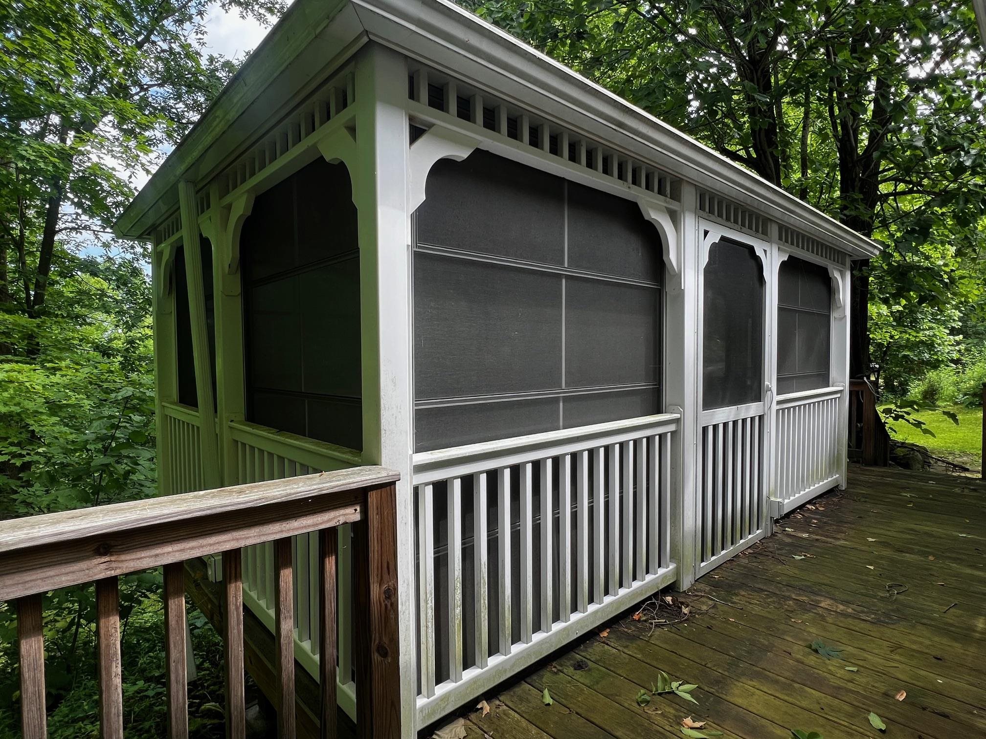 Welcome to Pleasant Lake, where you can enjoy all four seasons from this cozy 23' x 36' home — a perfect year-round residence or an ideal retreat for snowbirds. The inviting interior features a combined kitchen and dining area with ample cupboard space and a convenient island, and all appliances are included in the sale. The home offers modern comforts like central air, a large walk-in closet, and a laundry area equipped with a stacking washer and dryer. Additional highlights include an in-line generator, a charming glassed-in front porch, and a spacious deck with a large gazebo — perfect for relaxing or entertaining outdoors. The property also includes two outbuildings, a garden shed, a water softener system, a 140-foot drilled well, and a 1,000-gallon cement septic tank with a leach field. Located near the 305-acre Pleasant Lake, which boasts 3.4 miles of scenic shoreline, you'll have easy access to a convenient town boat launch on the north end. The lake is well-known for excellent fishing, including Northern Pike, Musky, Largemouth Bass, Crappies, Bullheads, Yellow Perch, and Rock Bass. Just a short walk away is the expansive 950+ acre Pleasant Lake State Forest, offering exceptional deer and small game hunting, including turkey. This is a rare opportunity to own a peaceful retreat with access to nature, recreation, and year-round comfort.