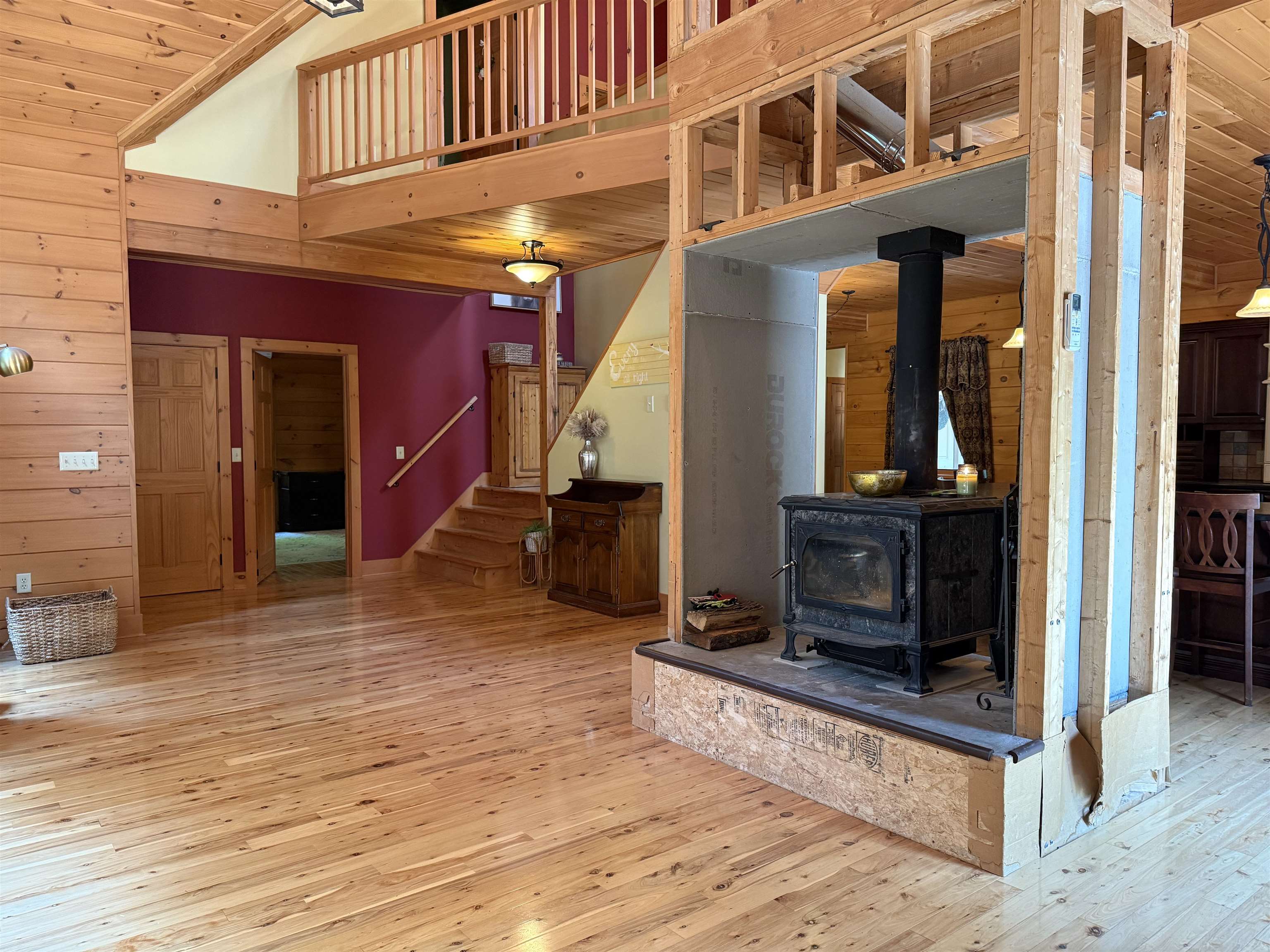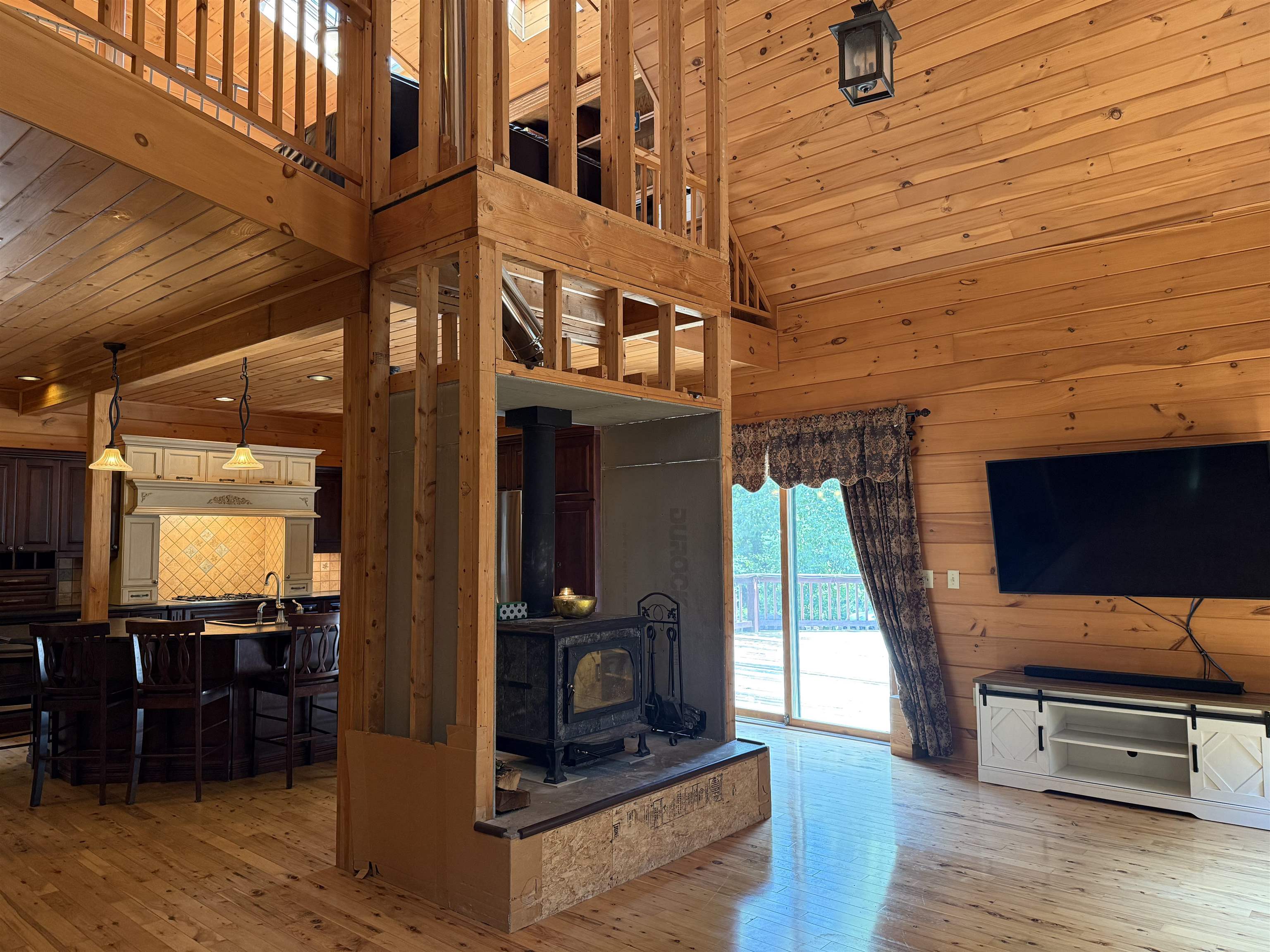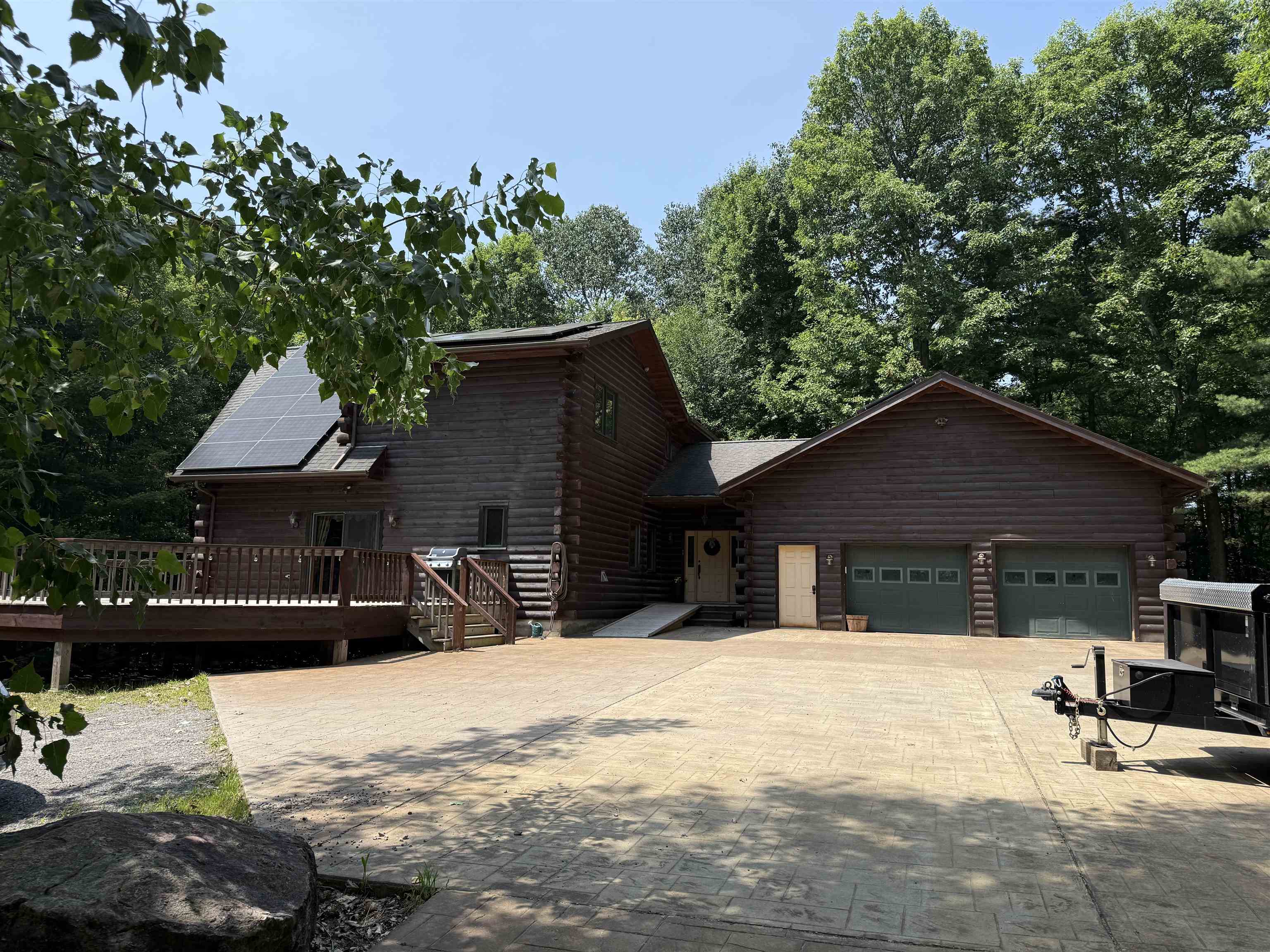 WELCOME TO YOUR NEW OASIS AT 192 LENNY ROAD! This beautiful 2102 ft.² Log home has 5 bedrooms 2.5 bathrooms, lots of natural light, a spacious deck, a covered balcony, a stamped concrete section of driveway in front of the attached two car garage all situated on 12.3 acres with trails and the property borders the Stone Valley Trail. This home is located close to Potsdam, Parishville, Colton, and Canton. As you Walk up onto the front, spacious deck And enter the home, you will see the beautiful open concept living room with a cathedral ceiling and windows from the floor to the ceiling. They’re beautiful wooden floors throughout the home. In the living room, you will also see a wood stove with a triple wall chimney that has been reinforced in the basement for added strength so you can finish that off with whatever you you’d like all the way to the ceiling. Then you’ll enter the gorgeous kitchen with plenty of cabinets and counter space, a large island with five stools and stainless steel appliances that convey with the home. That room flows into the dining room with a good space for gatherings. That the dining room you will find the foyer area and front door with a large closet and the door that leads to the attached garage. You also see the Pantry area that could also be a main floor, laundry room. Then you will see the beautiful half bathroom. Off the living room you will find the primary bedroom with a large walk-in closet and a primary bathroom with double vanity, a shower and separate bathtub. Also, after living room, you will find the door that leads to the covered balcony that overlooks the lovely property. Upstairs, you will see the spacious loft area With room for a second living room or an office space. Upstairs, you will also see the two bedrooms and another full bathroom. In the basement, you will find another area that is finished for a living room or A playroom with glass doors that Bring you to the yard. You will also find two bedrooms and a finished office space. Also, in the basement, you will see the boiler room, the laundry area with storage and another room that is ready for you to add a bathroom! This home has so much to offer, schedule your showing today!