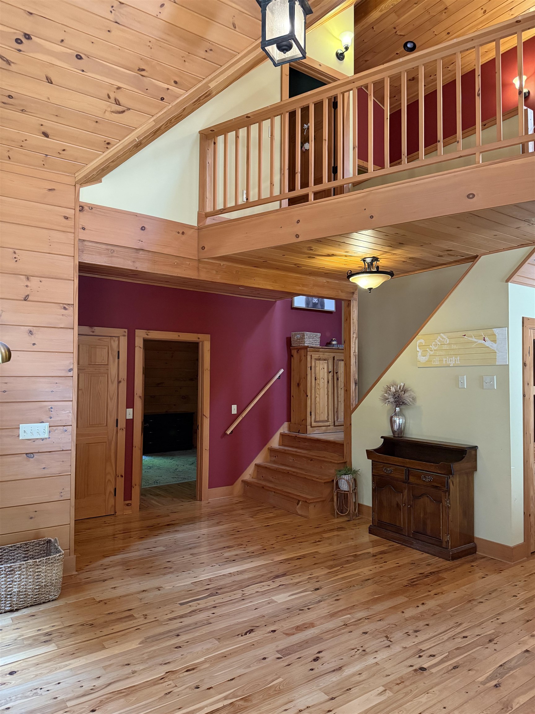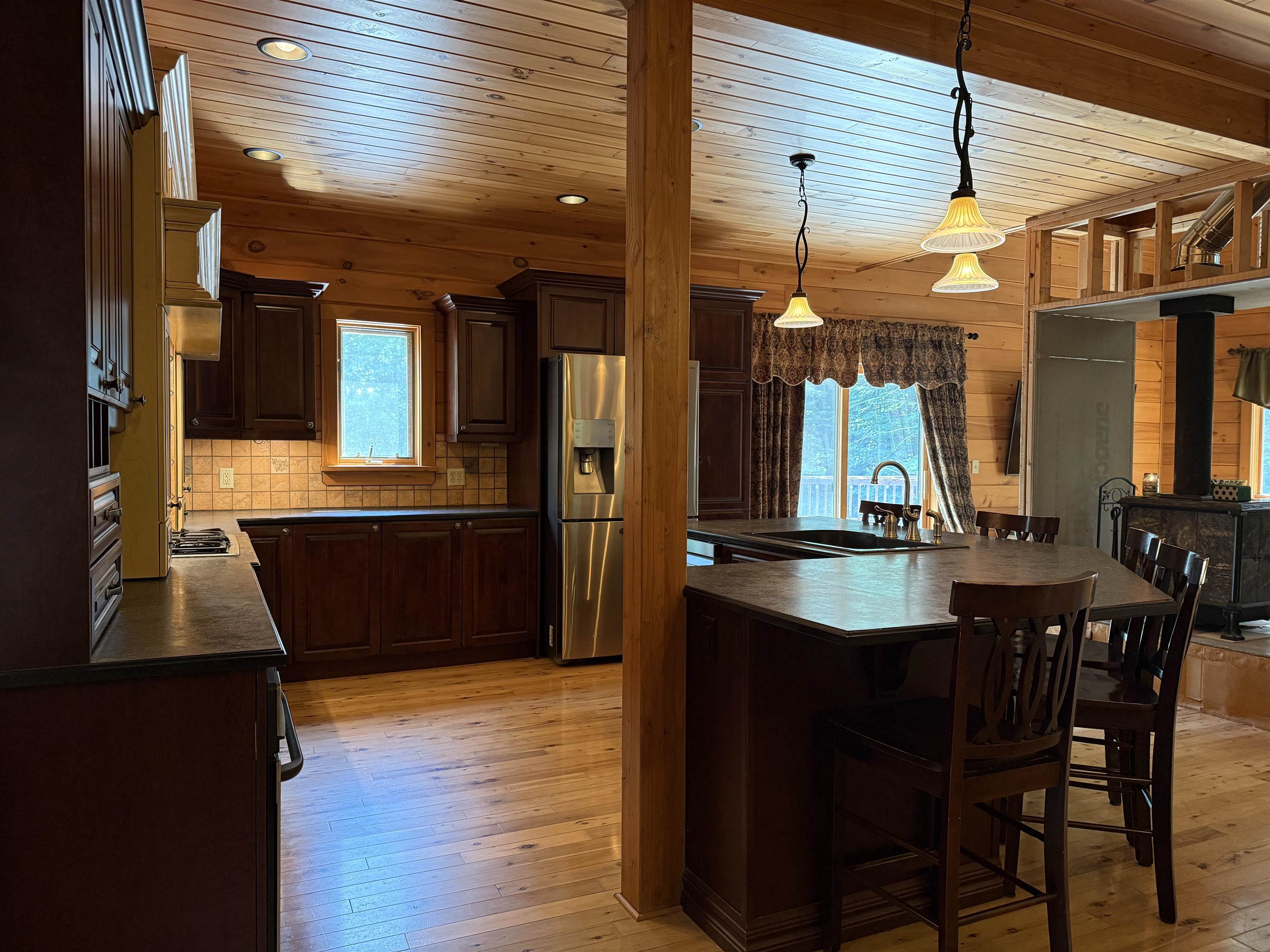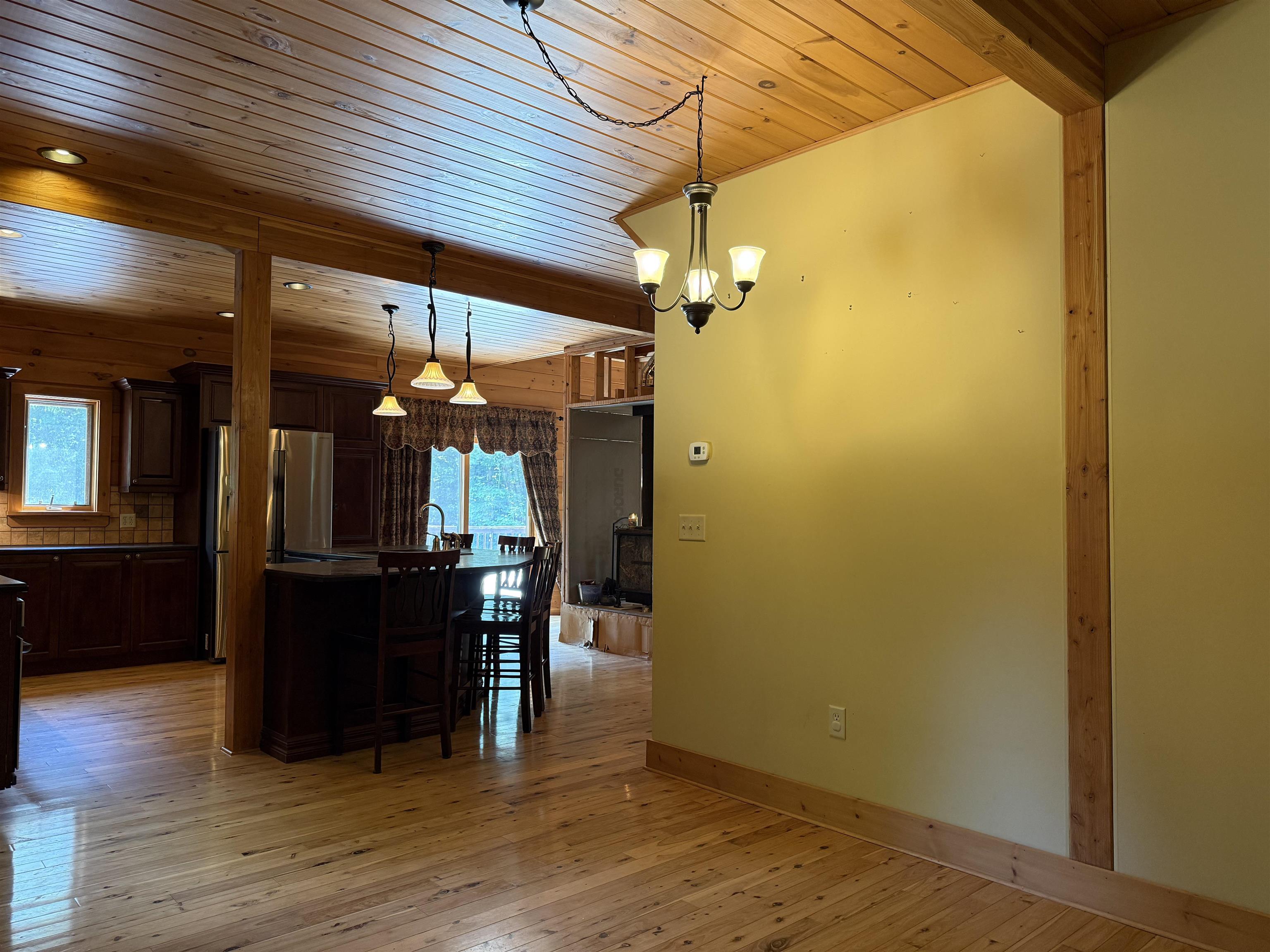 WELCOME TO YOUR NEW OASIS AT 192 LENNY ROAD! This beautiful 2102 ft.² Log home has 5 bedrooms 2.5 bathrooms, lots of natural light, a spacious deck, a covered balcony, a stamped concrete section of driveway in front of the attached two car garage all situated on 12.3 acres with trails and the property borders the Stone Valley Trail. This home is located close to Potsdam, Parishville, Colton, and Canton. As you Walk up onto the front, spacious deck And enter the home, you will see the beautiful open concept living room with a cathedral ceiling and windows from the floor to the ceiling. They’re beautiful wooden floors throughout the home. In the living room, you will also see a wood stove with a triple wall chimney that has been reinforced in the basement for added strength so you can finish that off with whatever you you’d like all the way to the ceiling. Then you’ll enter the gorgeous kitchen with plenty of cabinets and counter space, a large island with five stools and stainless steel appliances that convey with the home. That room flows into the dining room with a good space for gatherings. That the dining room you will find the foyer area and front door with a large closet and the door that leads to the attached garage. You also see the Pantry area that could also be a main floor, laundry room. Then you will see the beautiful half bathroom. Off the living room you will find the primary bedroom with a large walk-in closet and a primary bathroom with double vanity, a shower and separate bathtub. Also, after living room, you will find the door that leads to the covered balcony that overlooks the lovely property. Upstairs, you will see the spacious loft area With room for a second living room or an office space. Upstairs, you will also see the two bedrooms and another full bathroom. In the basement, you will find another area that is finished for a living room or A playroom with glass doors that Bring you to the yard. You will also find two bedrooms and a finished office space. Also, in the basement, you will see the boiler room, the laundry area with storage and another room that is ready for you to add a bathroom! This home has so much to offer, schedule your showing today!