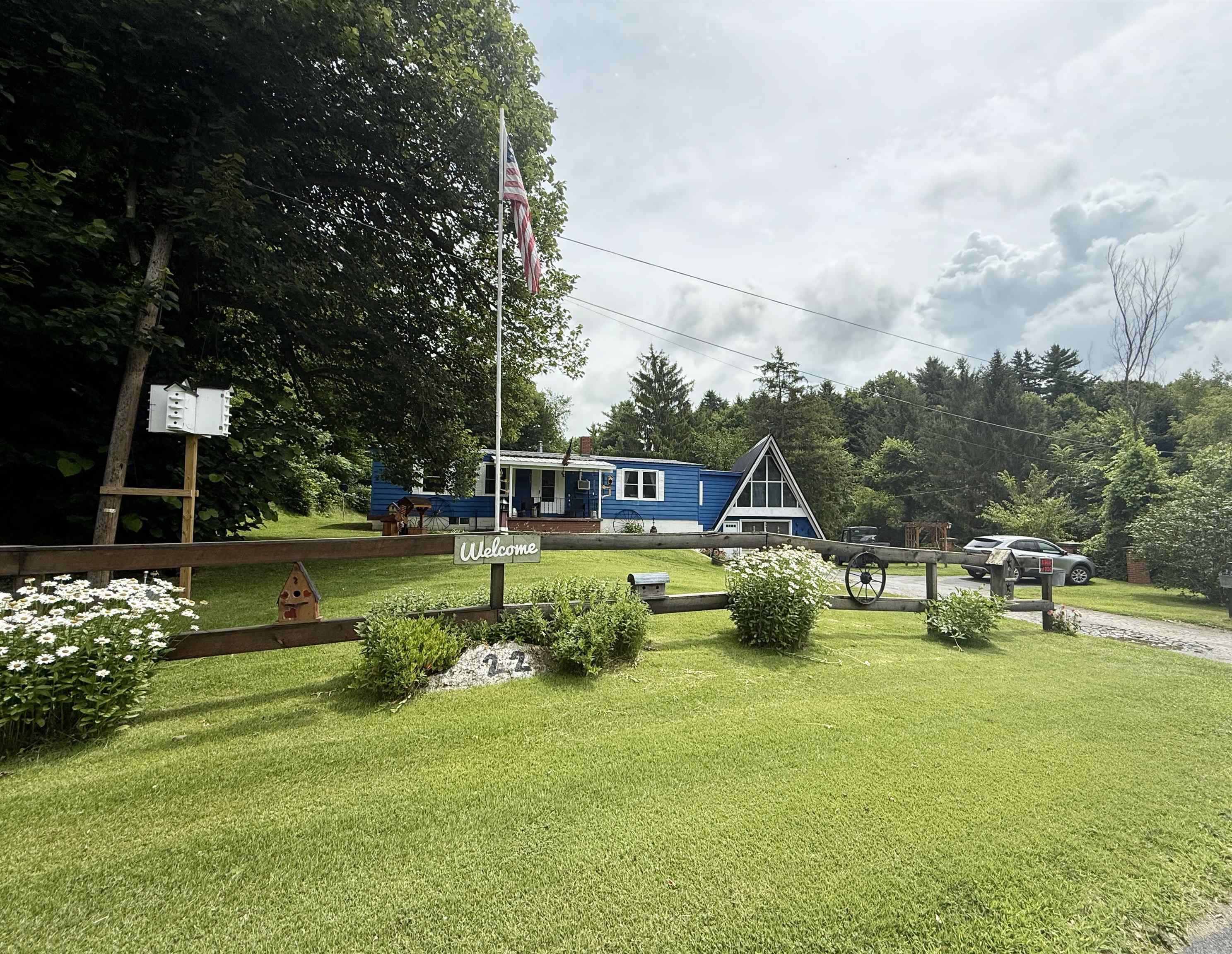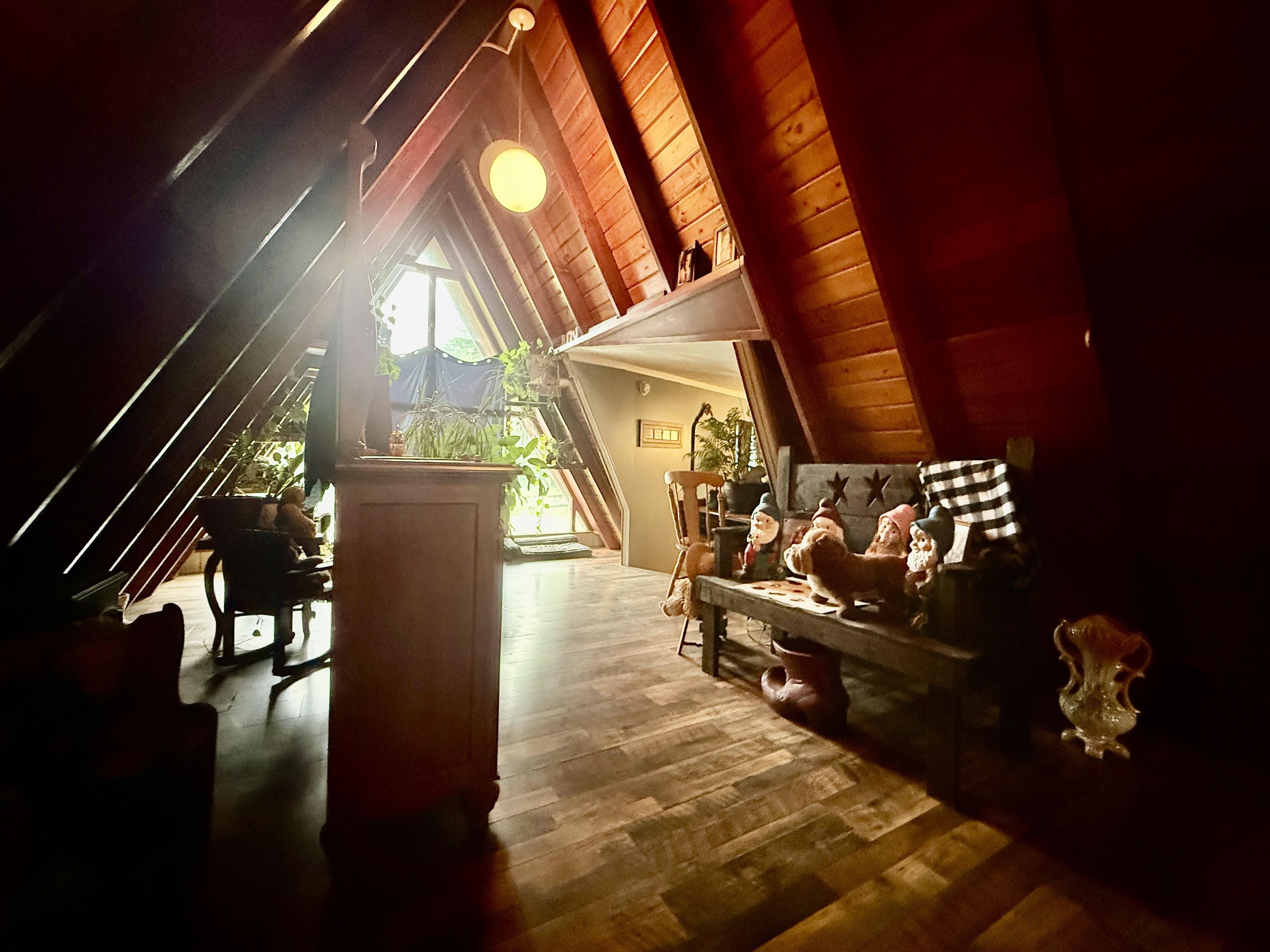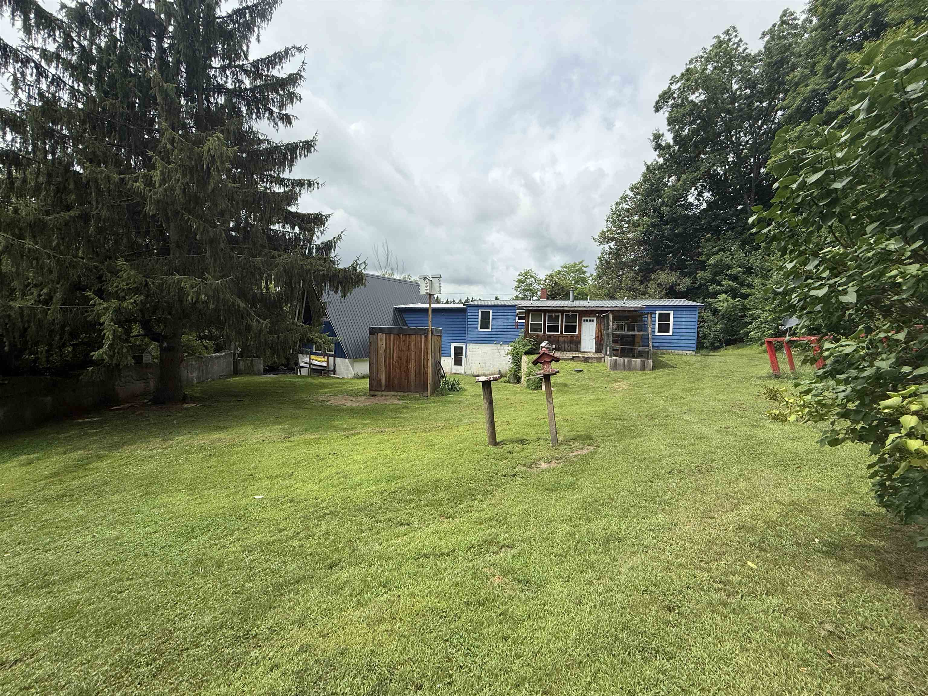 Open the window or sit outside and listen to the rush of the water. This 3-bedroom, 2 bath home sits alongside the water on an acre of land. This beautifully landscaped property has mature perennials and flowering trees. A large backyard has a chicken coop and storage shed. Inside you will find an open living area. At one end of the house there are 2 bedrooms. There are 2 renovated bathrooms, and each have floors made completely out of pennies! Off the kitchen in the back is a bonus room. The A-frame has been converted into the primary bedroom. In the warmer months, the heated garage converts into a screened-in room making extra living space or a game room. Call a realtor to setup a showing for your chance to live in Fowler on the water!