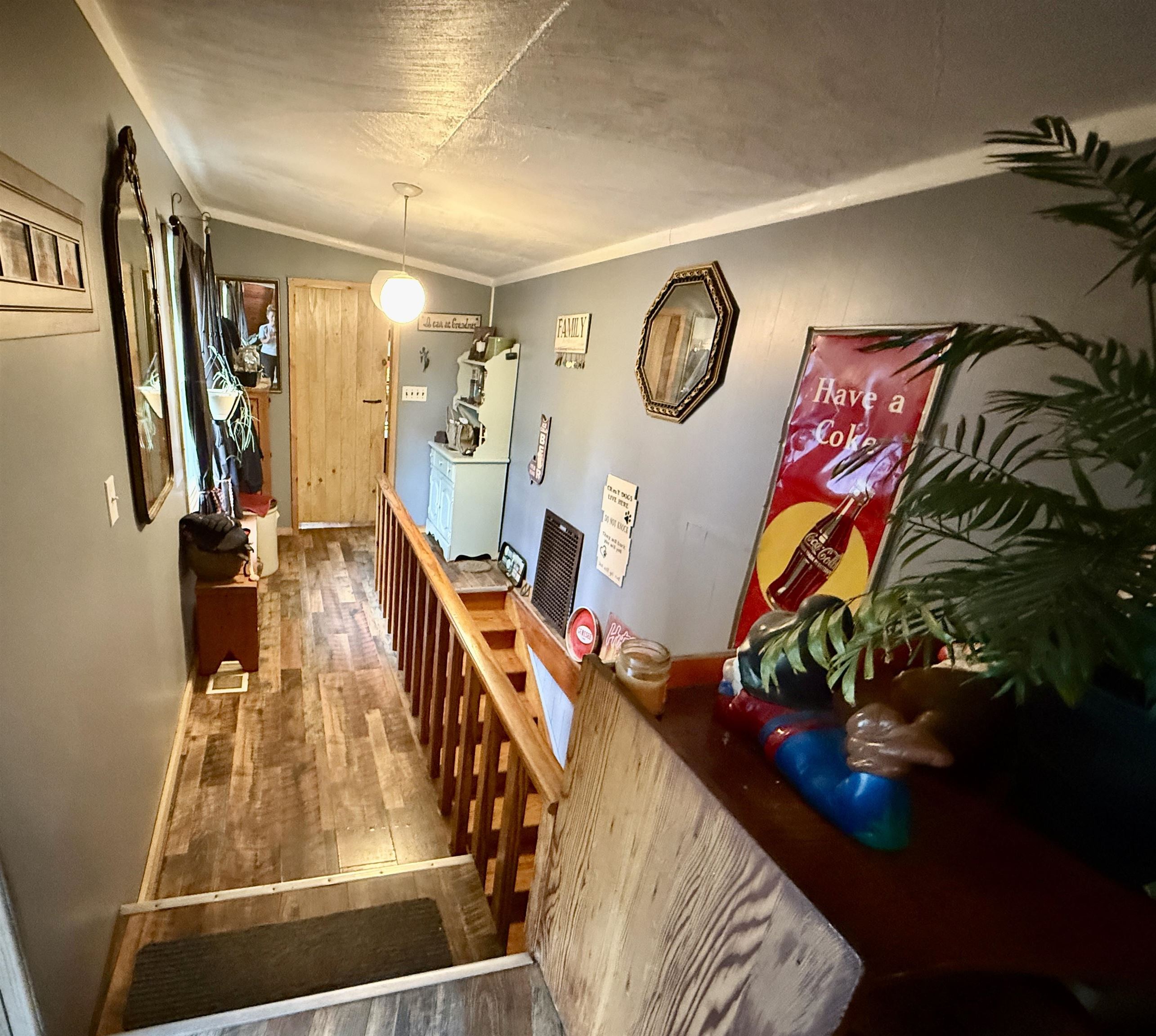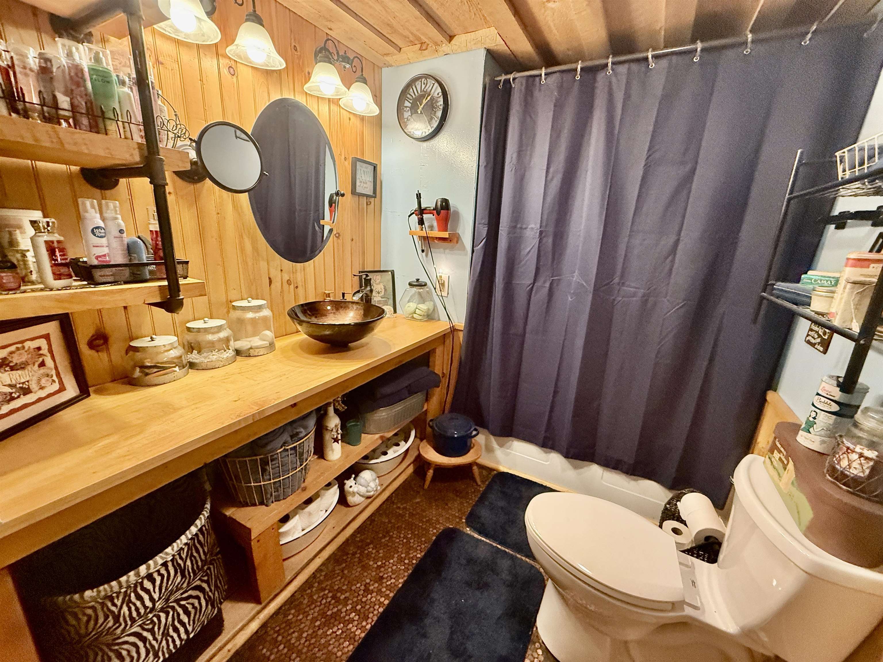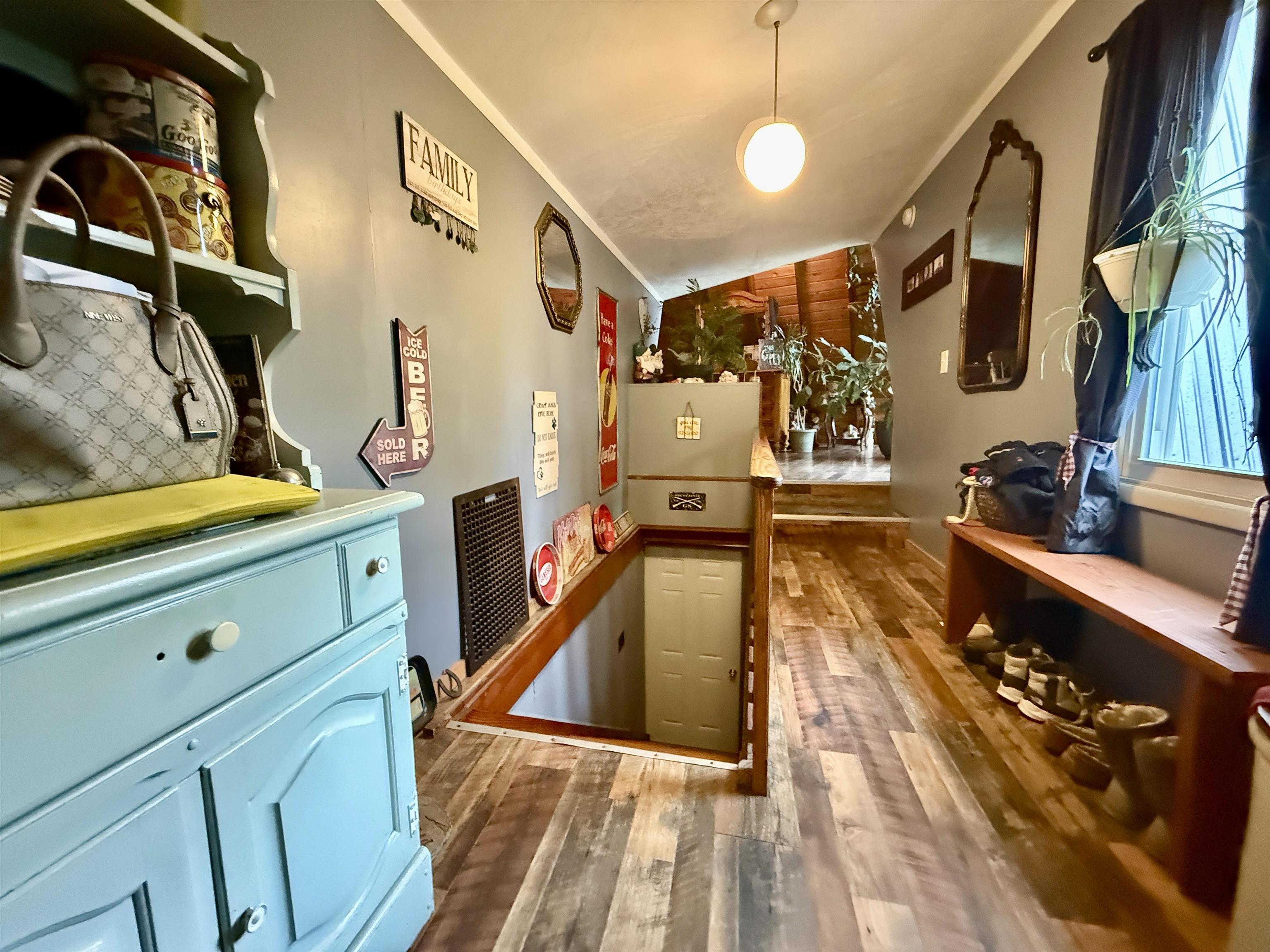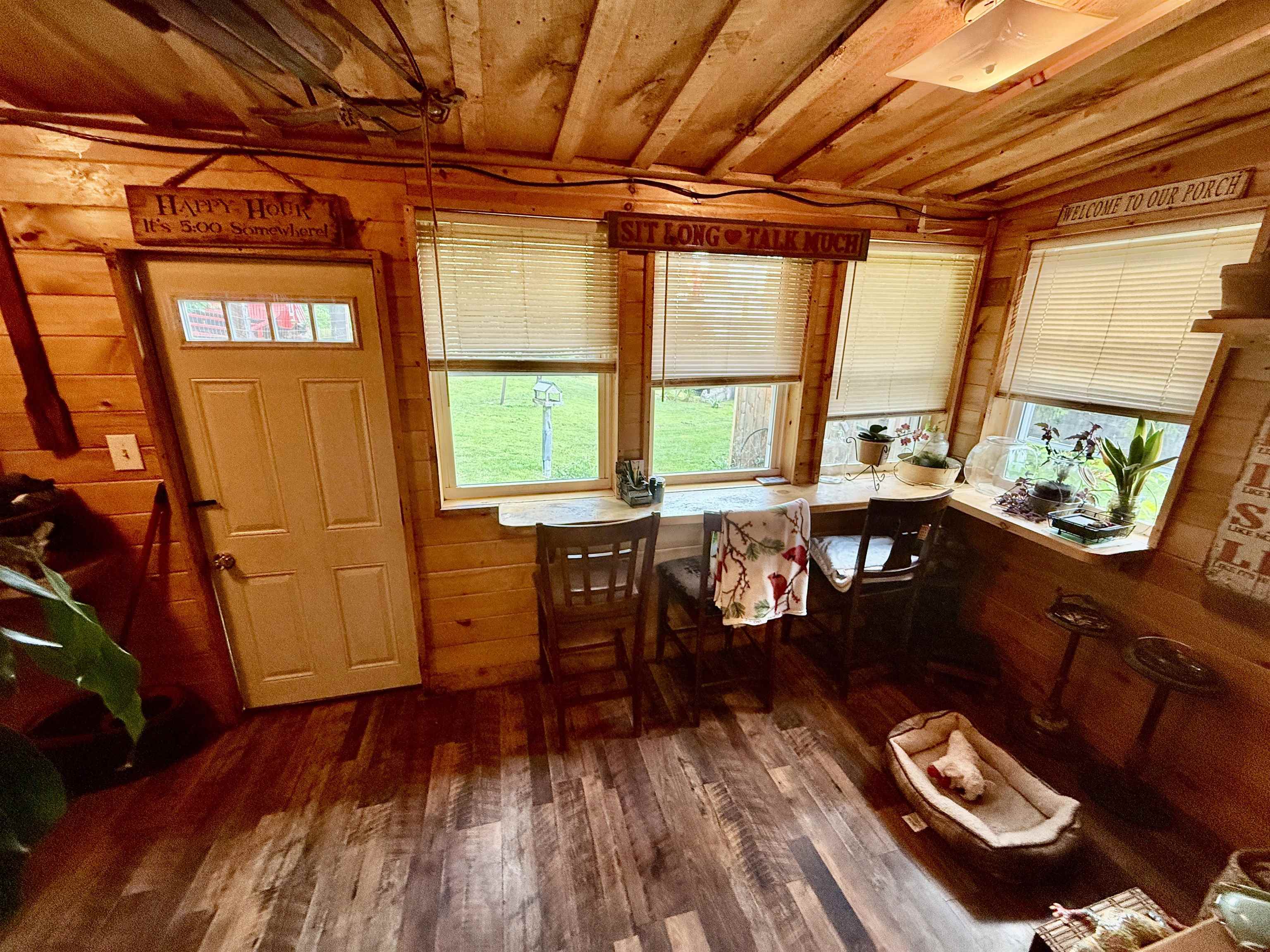 Open the window or sit outside and listen to the rush of the water. This 3-bedroom, 2 bath home sits alongside the water on an acre of land. This beautifully landscaped property has mature perennials and flowering trees. A large backyard has a chicken coop and storage shed. Inside you will find an open living area. At one end of the house there are 2 bedrooms. There are 2 renovated bathrooms, and each have floors made completely out of pennies! Off the kitchen in the back is a bonus room. The A-frame has been converted into the primary bedroom. In the warmer months, the heated garage converts into a screened-in room making extra living space or a game room. Call a realtor to setup a showing for your chance to live in Fowler on the water!