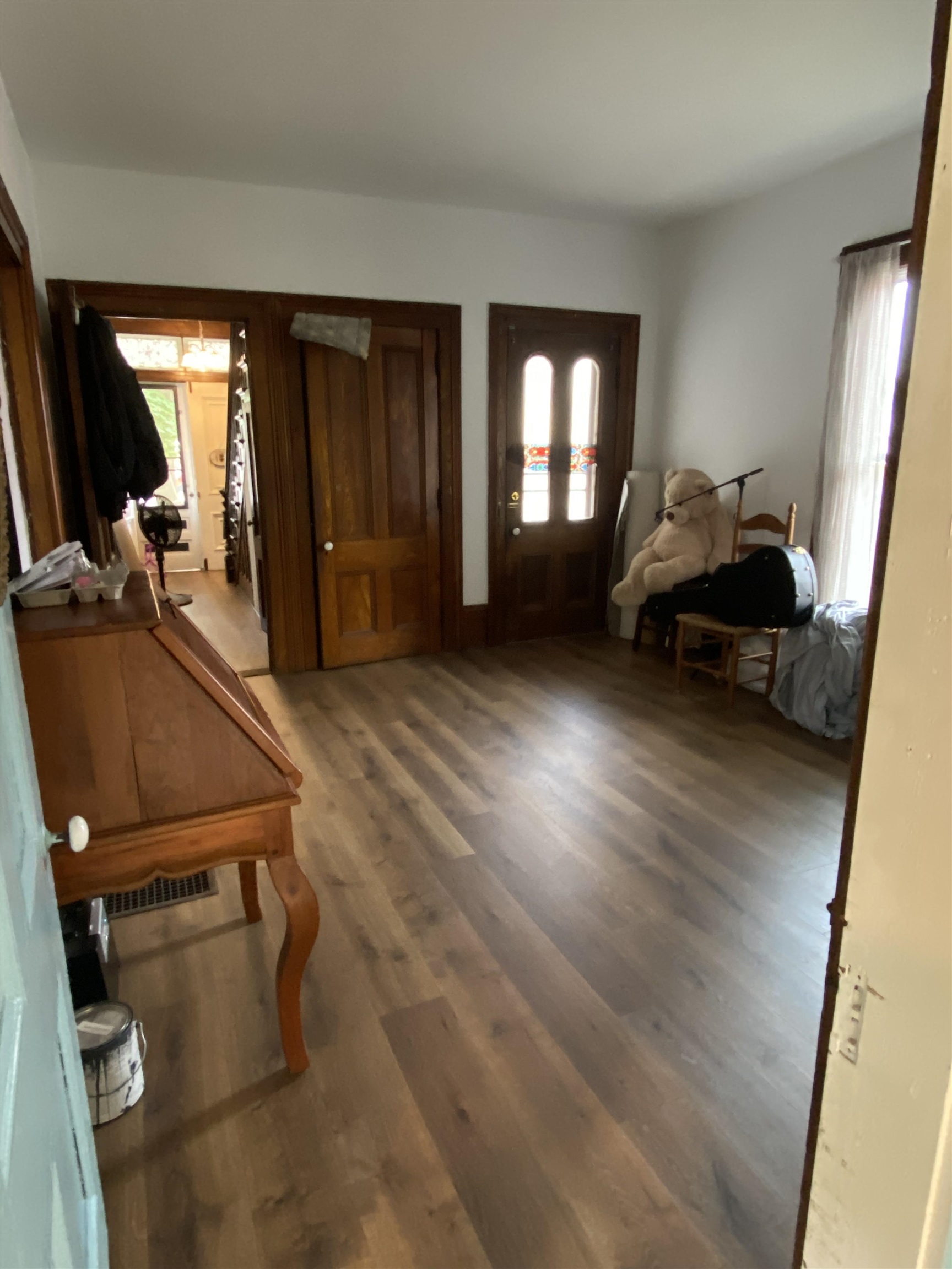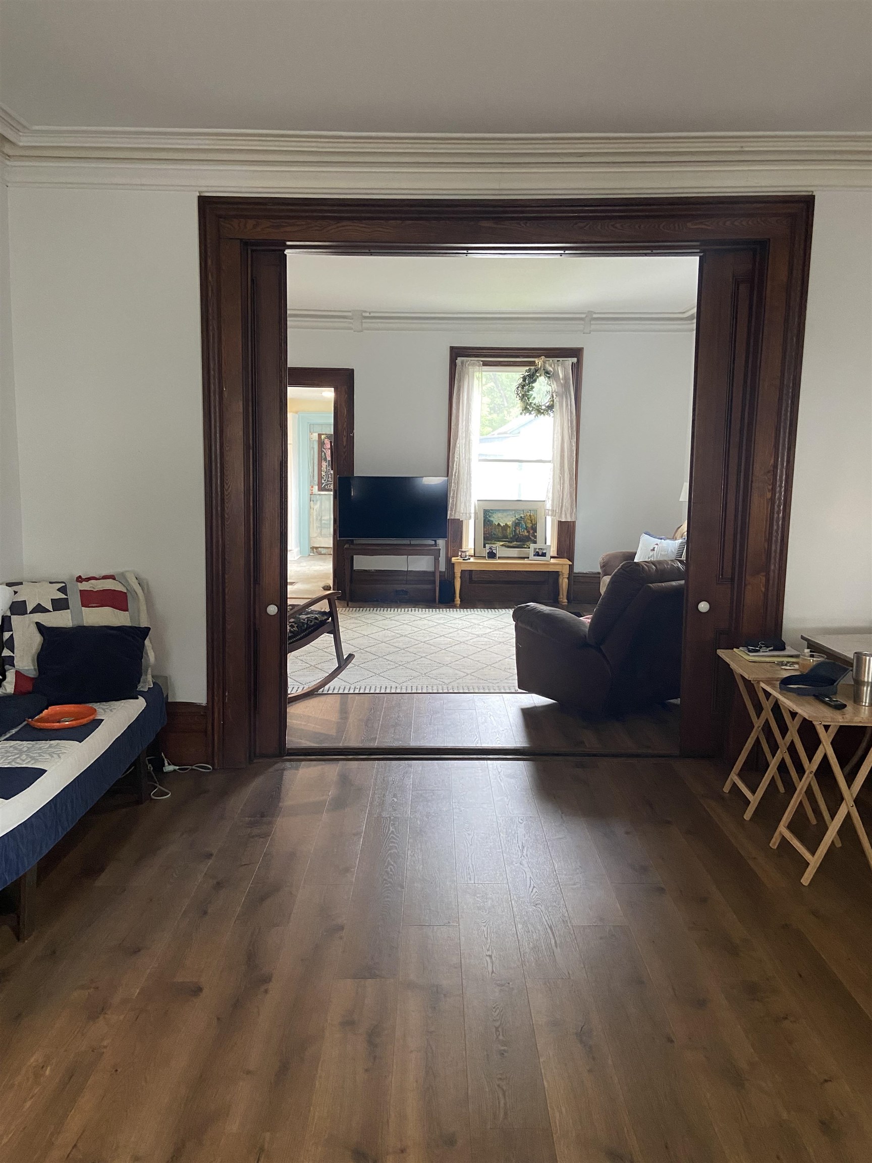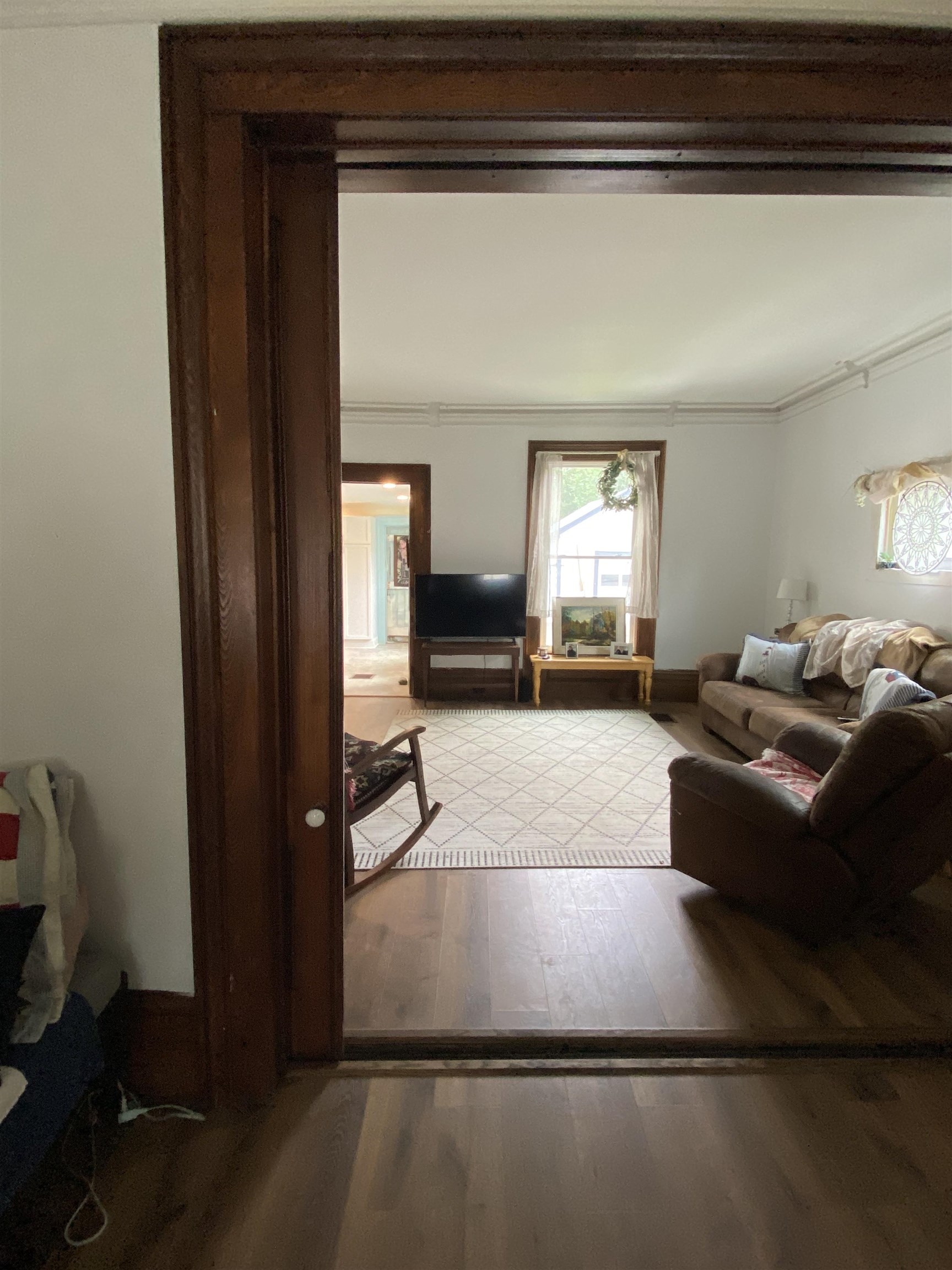 This historic home that has been remodeled but left with its original charm and character. It was once the Moore house and then the Waddington Museum. It''s located on the main street of beautiful downtown Waddington. This three-bedroom, 1.5 bath home has had some major updates such as a new kitchen, new 1.5 baths, new sheet rocked walls and ceilings, new flooring throughout, new electrical entrance, new plumbing, new windows, new sewer right out to the street. A new furnace and water heater were installed in 2021. The original woodwork and huge pocket doors still remain. A new front porch was built in 2024 and some shutters added to enhance the charm. There is one more room upstairs that has not yet been transformed, and it could easily be a fourth bedroom. The lot is deep and garage has plenty of storage space. Laundry is located on the first floor along with a pantry that has been tastefully preserved. The original front staircase is there, as is the beautiful wood front door. There is a Certificate of Occupancy that was issued when purchased from the village and it is now registered as residential.