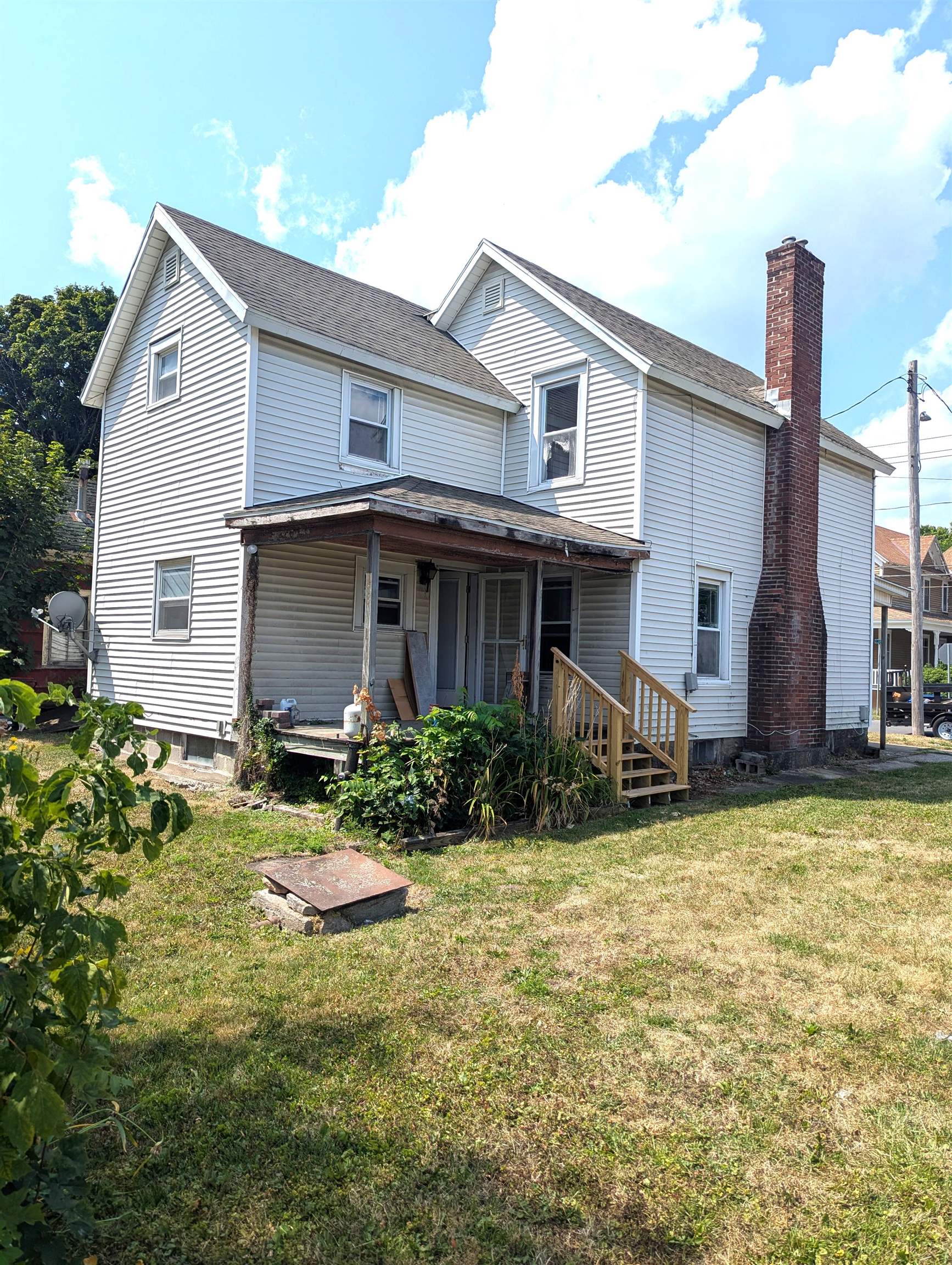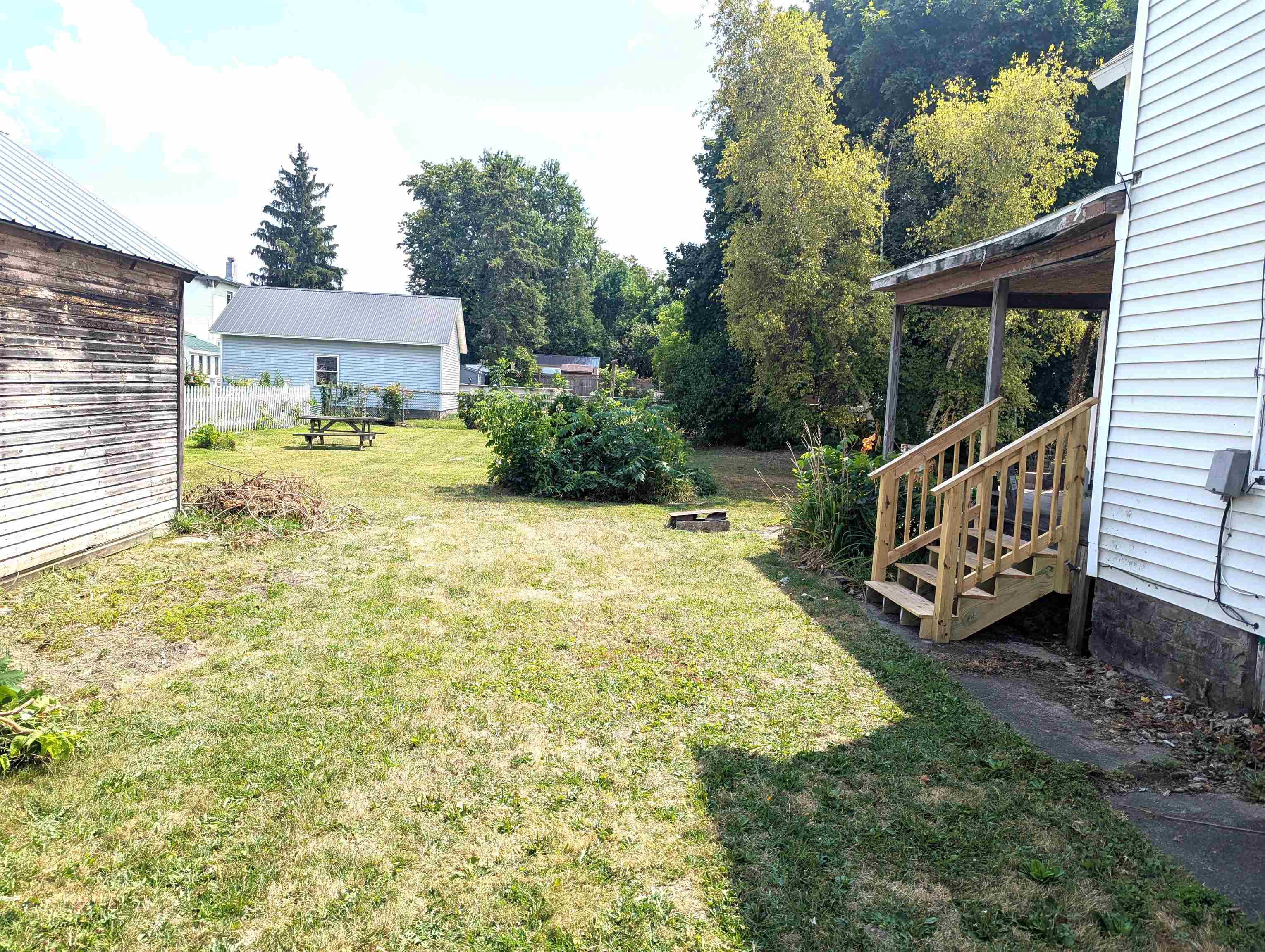 Selling to settle an estate. Affordably priced, well-below assessment, this 3-bed, 1-bath home, with a spacious yard and a garage has a professional freshly cleaned interior allowing a new owner a good foundation to make minor cosmetic repairs and personal choices. The high-efficiency furnace and water heater were both installed within the last 6 to 7 years and the electric service panel is 150-amp circuit breakers. On the main floor is a large living room with a natural gas insert fireplace, eat-in kitchen with most appliances and the laundry units. The second floor has a full bathroom and bedrooms. Both levels feature mostly hard wood flooring. The side porch steps and railings have new pressure treated boards. All windows are vinyl insulated, and the roof was last shingled approx. in year 2008. Located less than 2 blocks from a playground/park and within walking distance to city pool and recreational amenities by the St. Lawrence River. At this price you should call soon to schedule a showing!