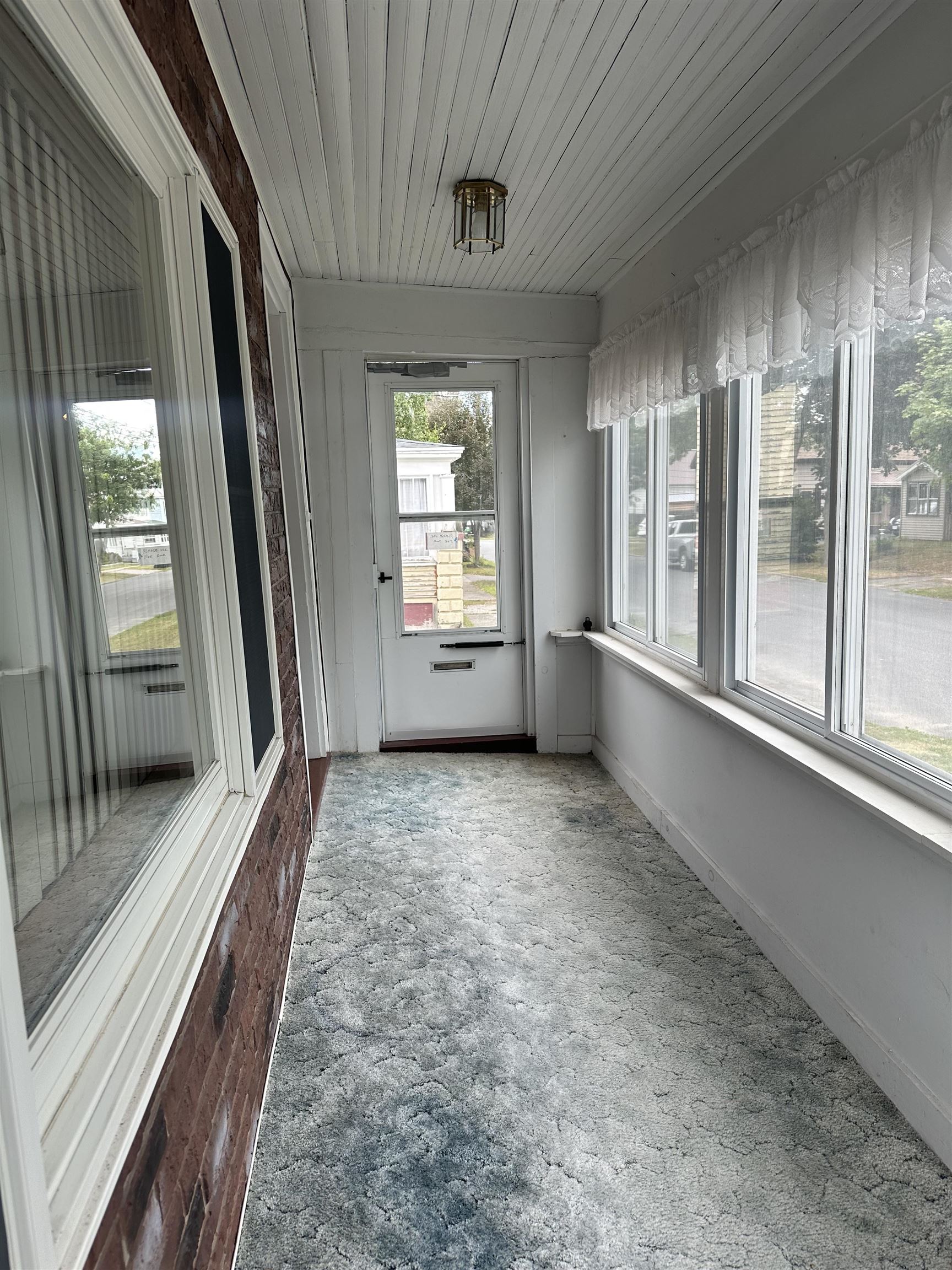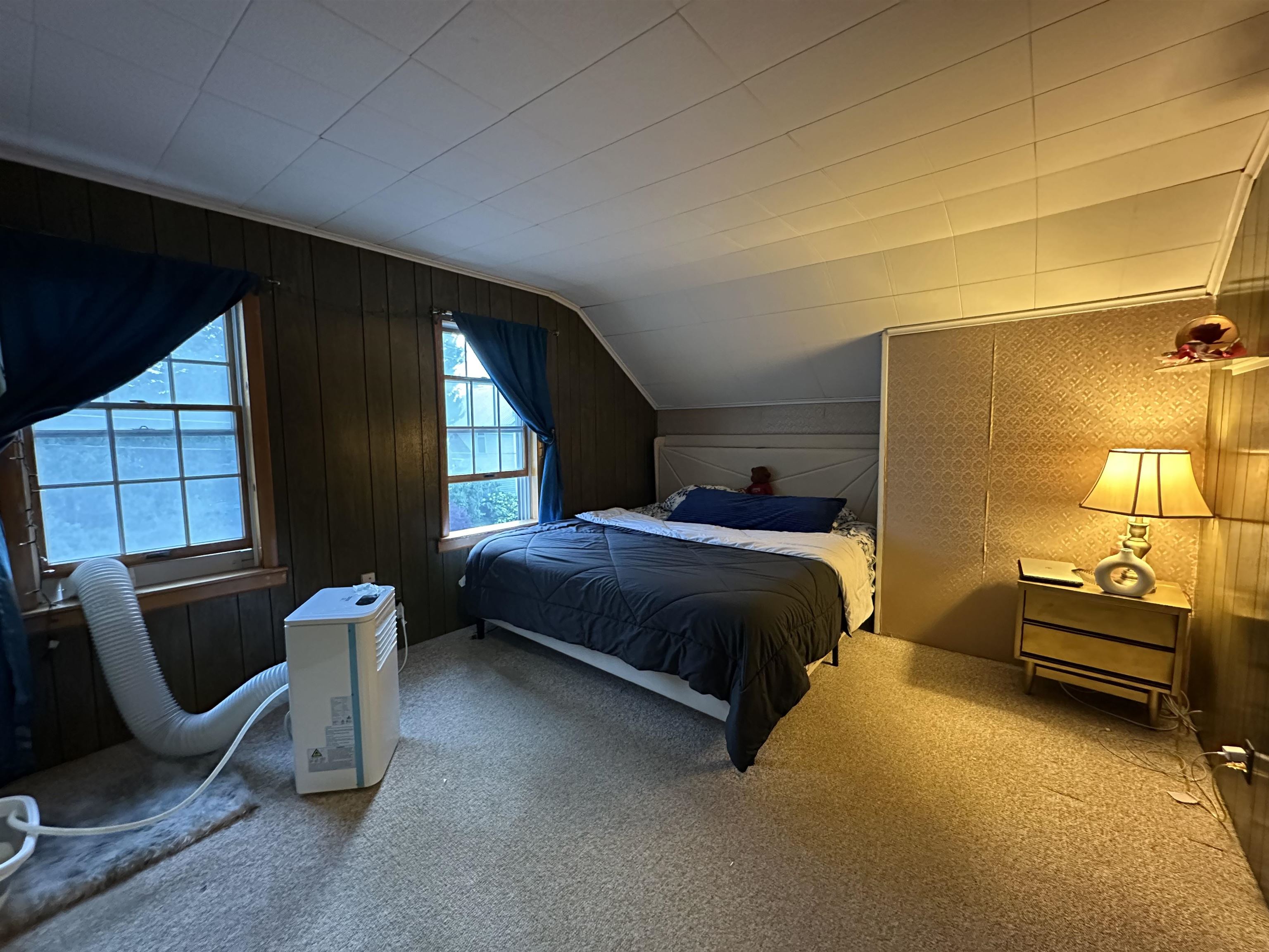 $10,000 price drop and a must see! What a rare home with a fence enclosed corner lot and two stall detached garage. The 98 x 100 lot is neatly manicured and then you walk into a knotty Pine three season room and into an eat in kitchen with a rather large bar. The double living room has plenty of daylight and a gas fireplace. The main floor has a bedroom and a full bath/laundry room. The upstairs has two bedrooms and a tub in the bathroom. It also has plenty of attic storage space. The blown in insulation and 95%efficient furnace will make heating affordable. Make your appointment today before you miss your opportunity! For sale by land contract lessee.