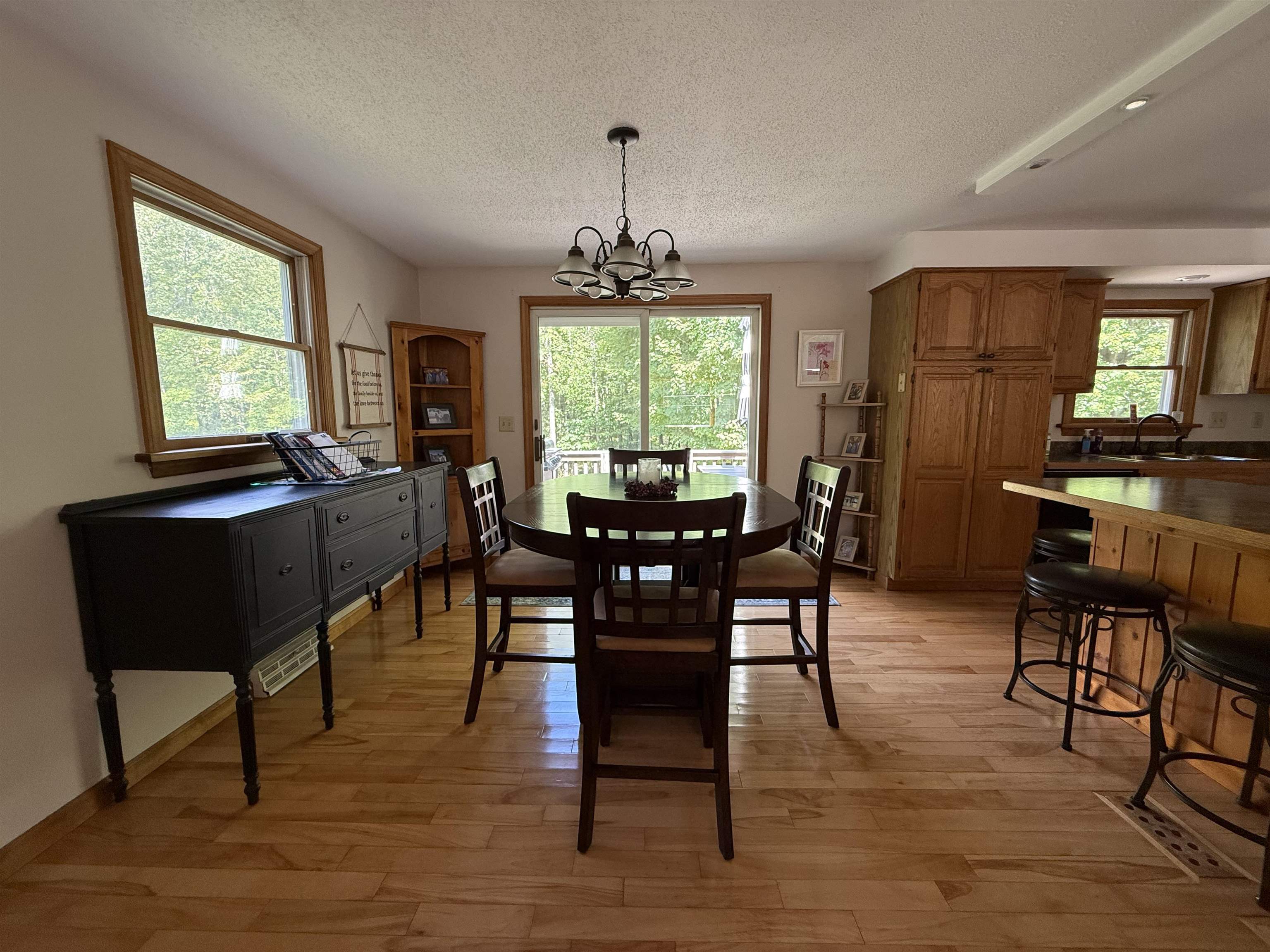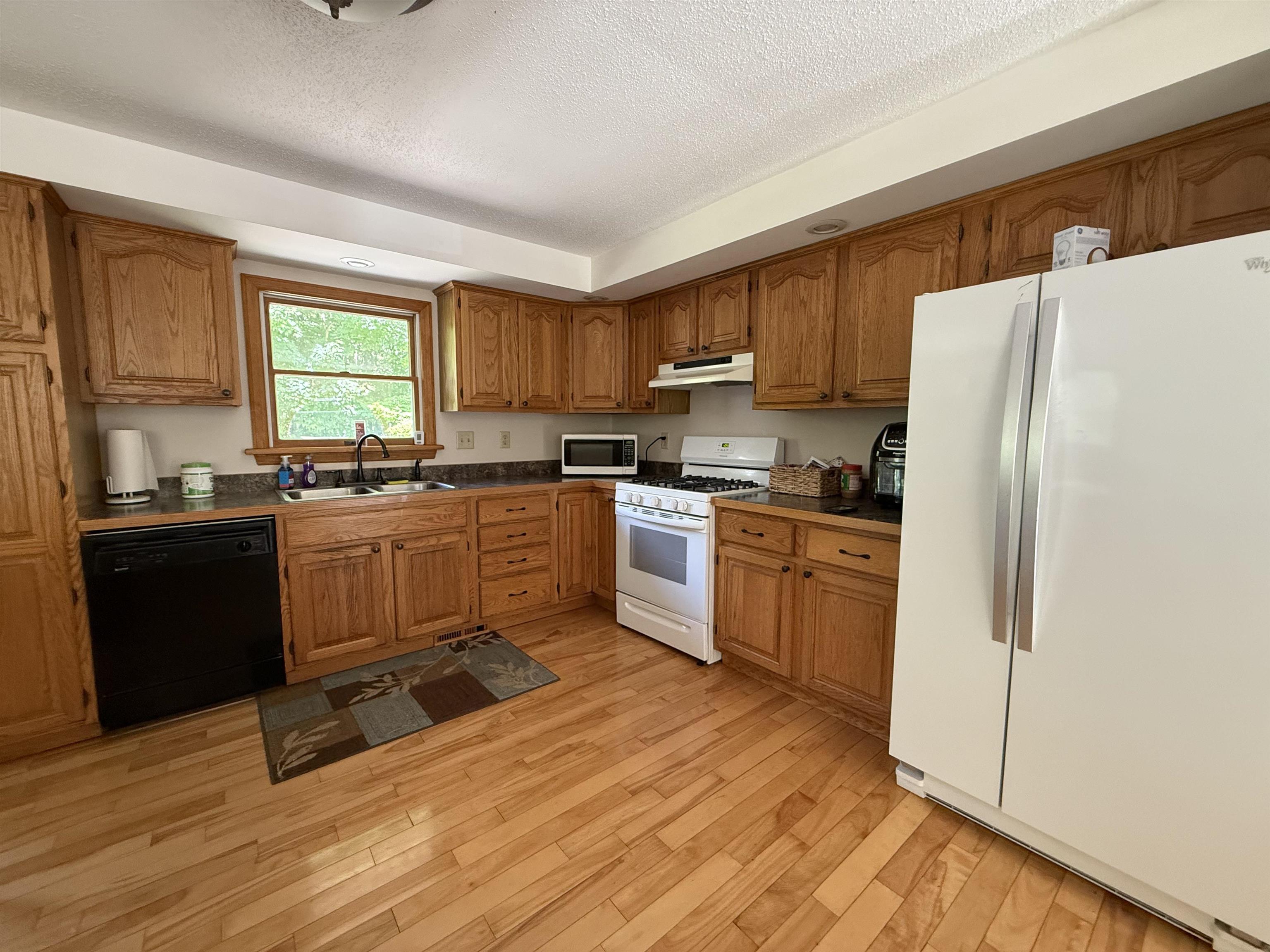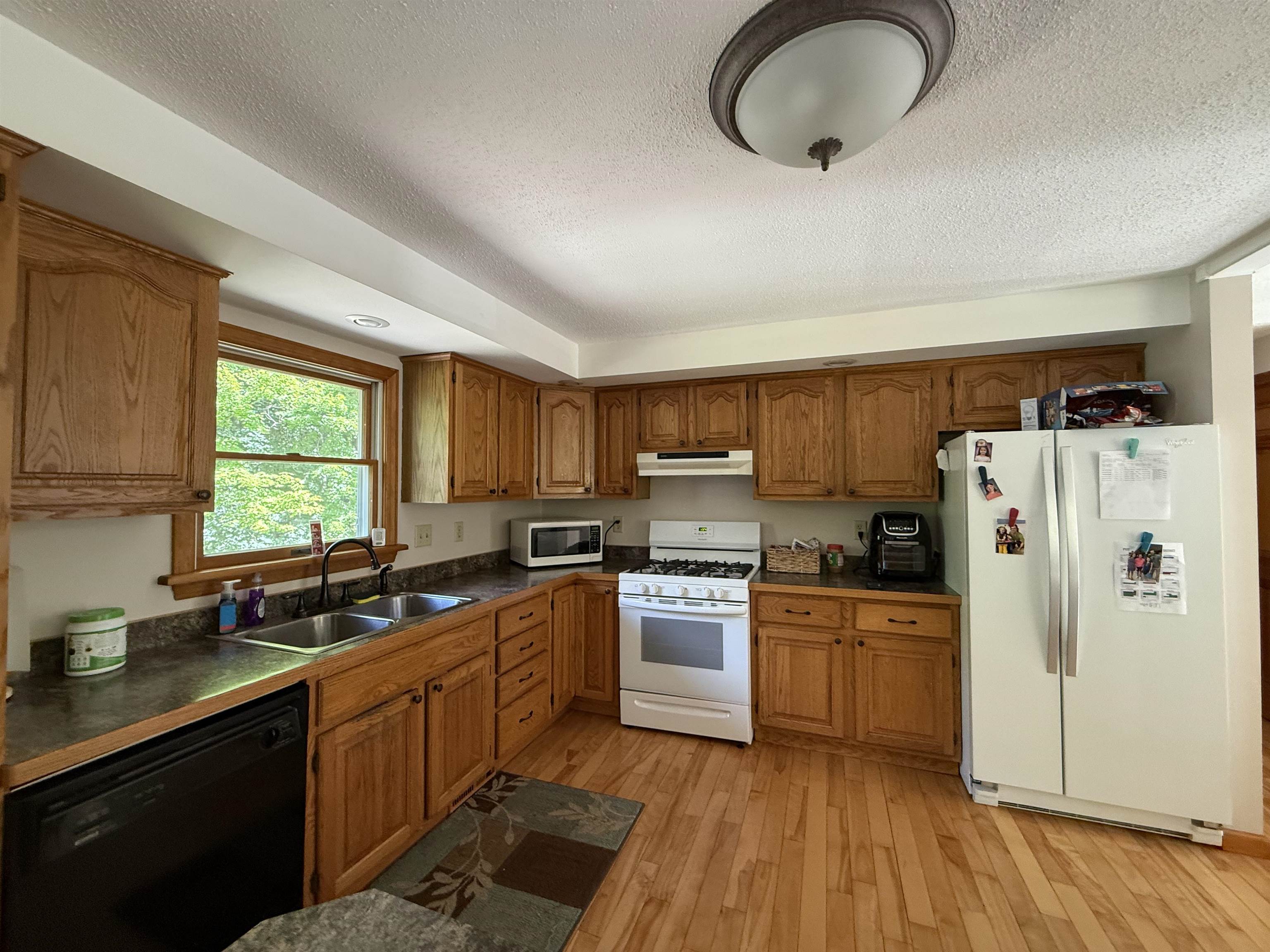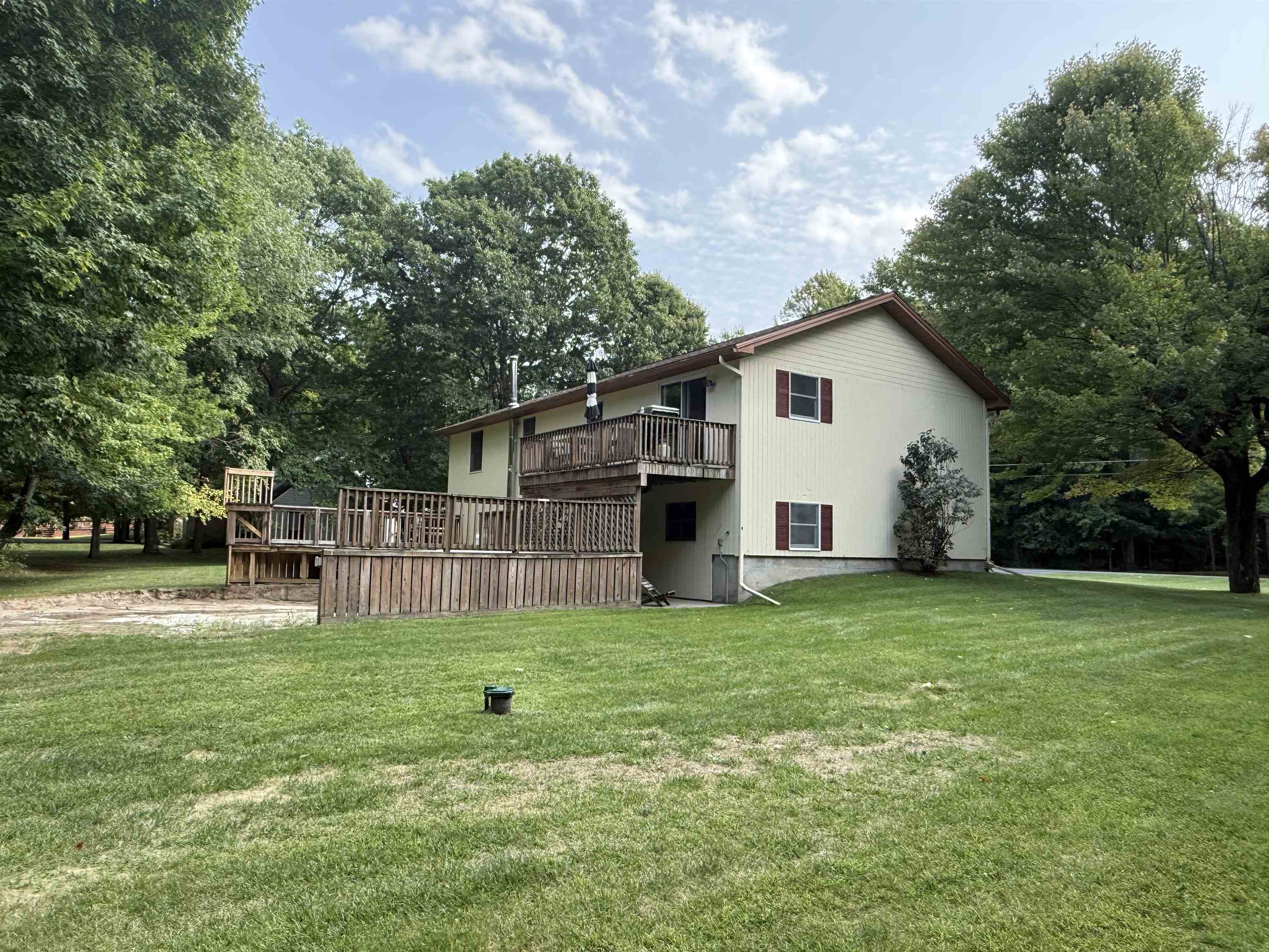 Located in a sought-after neighborhood amongst newer homes, this raised ranch offers space, comfort, and tranquility. The main floor features an open-concept kitchen, living, and dining area, perfect for gatherings or those who love to entertain. The KraftMaid oak kitchen boasts abundant cabinetry and a breakfast bar that flows seamlessly into the dining area, where sliding doors lead to a deck and concrete patio overlooking a very private backyard. The main level also offers three bedrooms and two full baths, while the lower level offers a spacious family room or additional bedroom, bathroom, and laundry area with direct walkout access to the garage. Hardwood floors are featured in the kitchen, dining area, and down the hall. The attached two-car garage is fully insulated and heated, with a double paved driveway and convenient turnaround. This home combines quality finishes, a thoughtful layout, and a prime location—making it a wonderful place to call home.