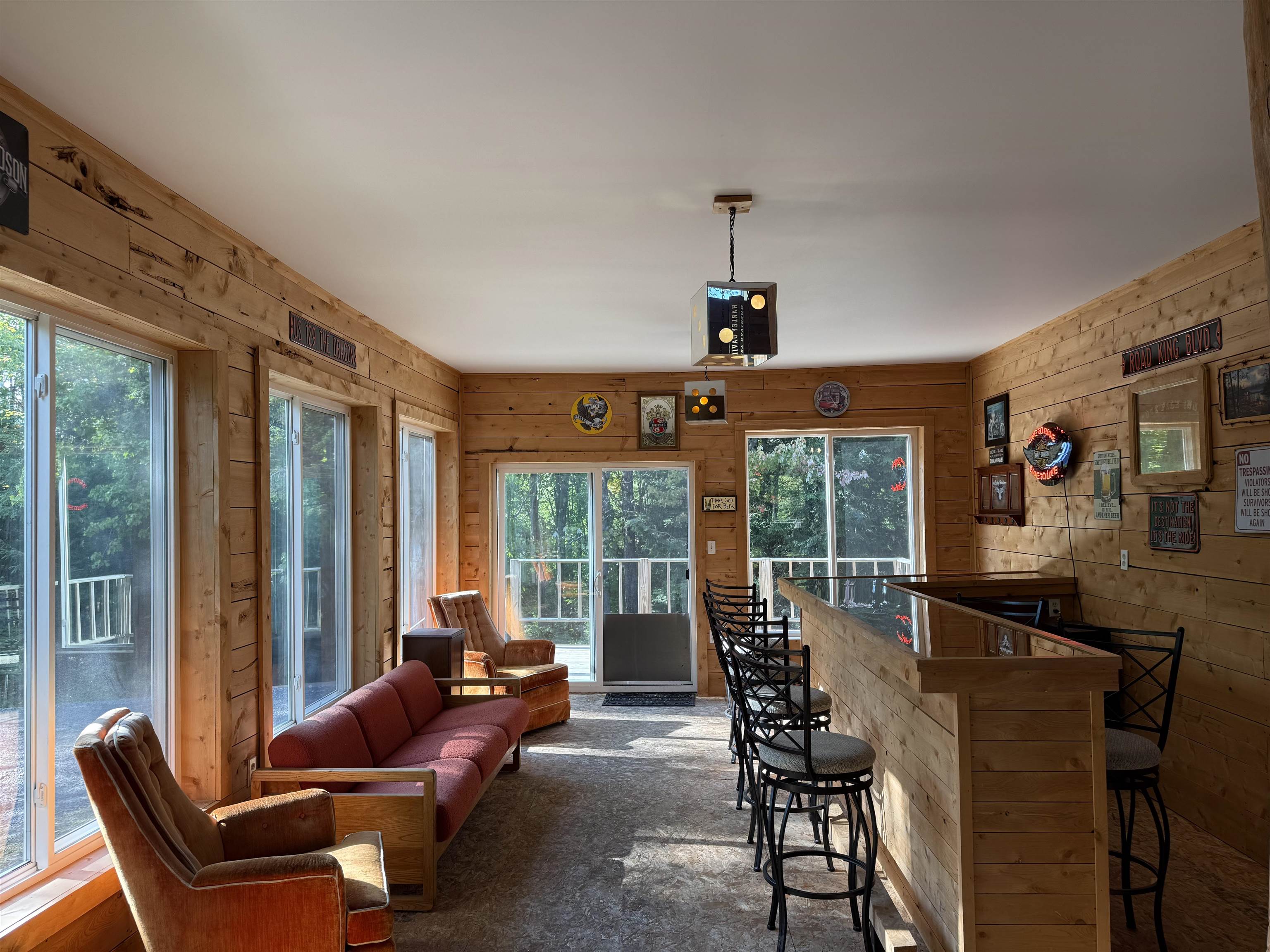 WELCOME TO YOUR NEW OASIS ~ A SEASONAL CAMP SITUATED ON 63.9 ACRES! This is a rare opportunity to own 63.9 beautiful acres of varied topography, perfect for hunting, hiking, snowmobiling, ATV riding, cross-country skiing, or simply enjoying nature. The camp is nestled up on a hill and the property is bordered on one side by state land, a true outdoor enthusiast’s dream. The three-season camp with beautiful Cedar siding, milled from cedar harvested right on the property, offers 1,770 sq. ft. of living space featuring a spacious kitchen, dining, and living room with cathedral ceilings and a woodstove, a beautiful bar room with lots of windows for plenty of natural light, 5 bedrooms (2 on the first floor, 3 upstairs) 1 bathroom on the main floor. The living room has a wall of windows and glass doors that open to a stunning wraparound deck with a covered section that has an outdoor grilling station and bar, perfect for entertaining. There is another deck on the back of the camp off the bar room for your convenience as well. The property features plenty of room to explore or develop trails, with the potential for zip lines, hunting stands, or even a private recreation area. It’s also conveniently located near the Adirondack Mountains, snowmobile and ATV trails, and only about 45 minutes to the St. Lawrence River. Whether you're looking for a hunter’s getaway, a family retreat, or simply a place to enjoy the seasons, this property offers unmatched privacy, adventure, and charm. Relax around the bonfire, roast marshmallows, and enjoy cozy evenings by the woodstove – this camp is ready for your next chapter of memories! The camp has no electricity, but you can use a generator. There is no well, but there is a 275 gallon tote that catches the rain water. Schedule your showing today!