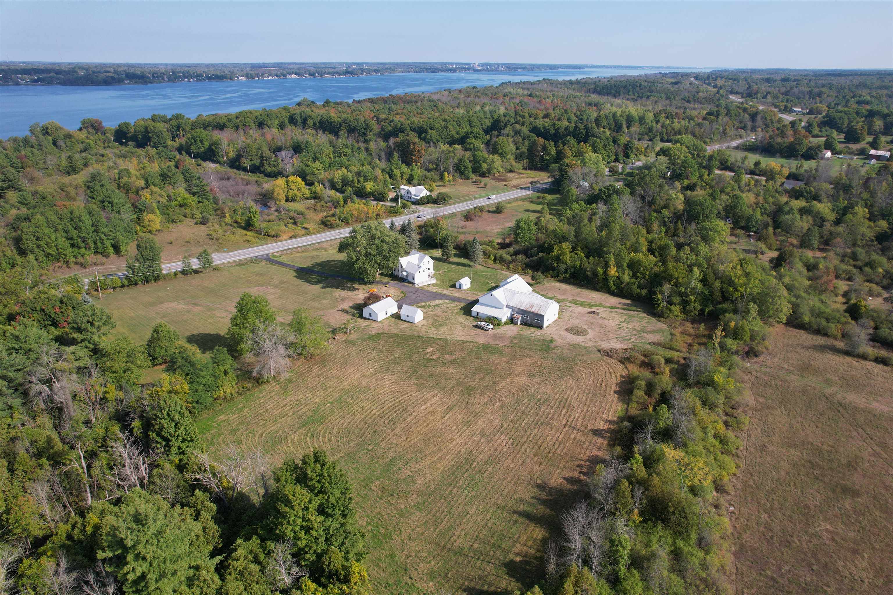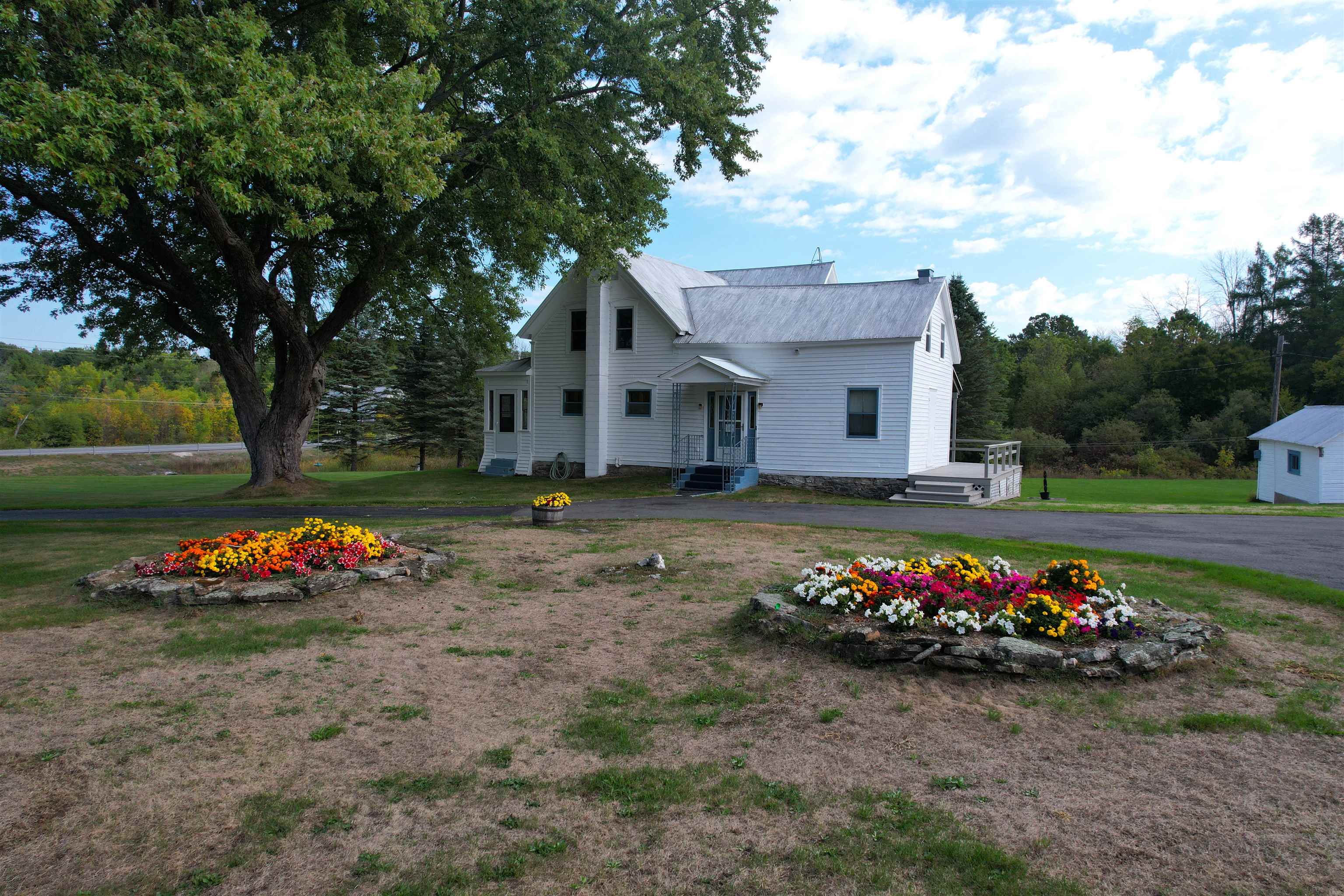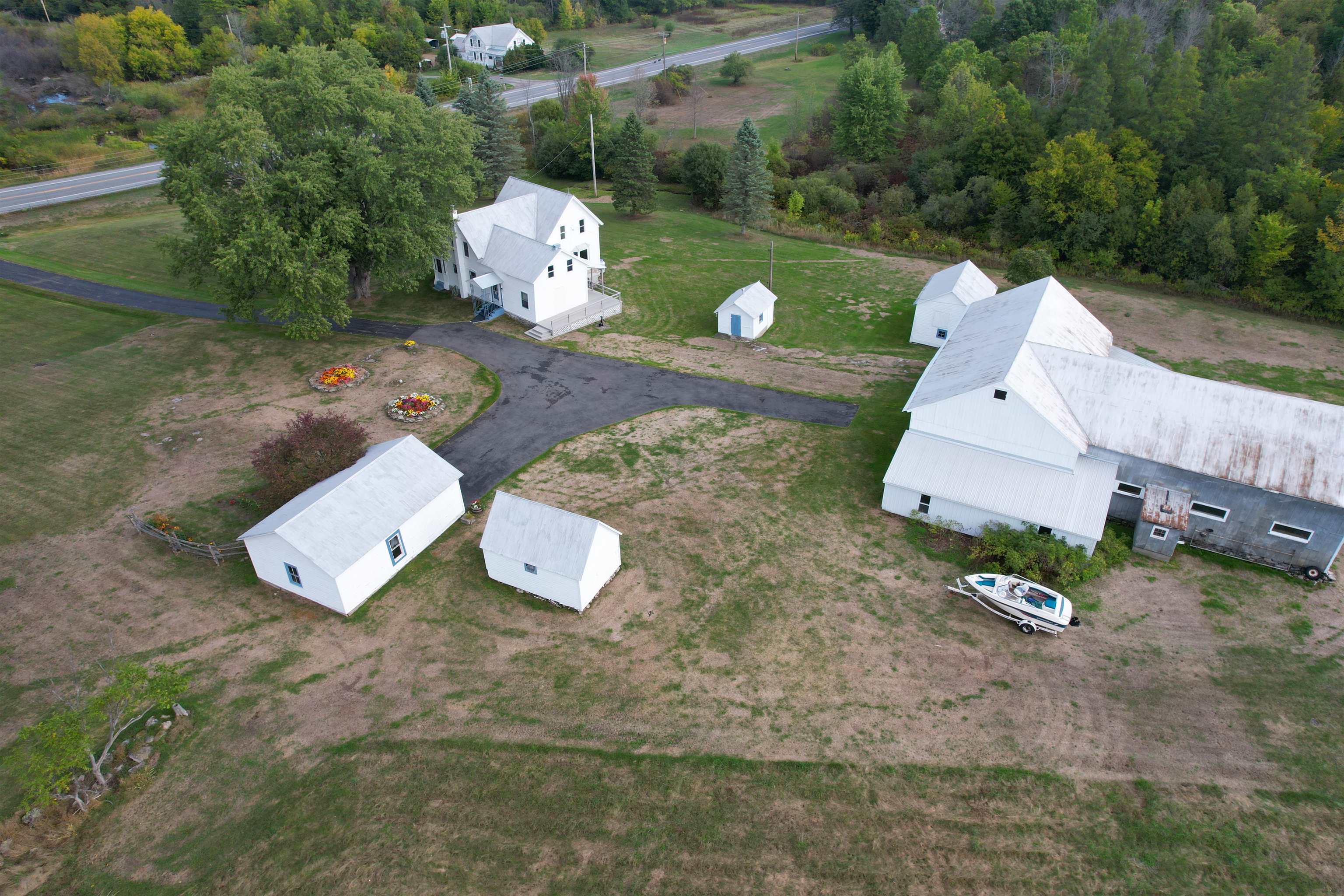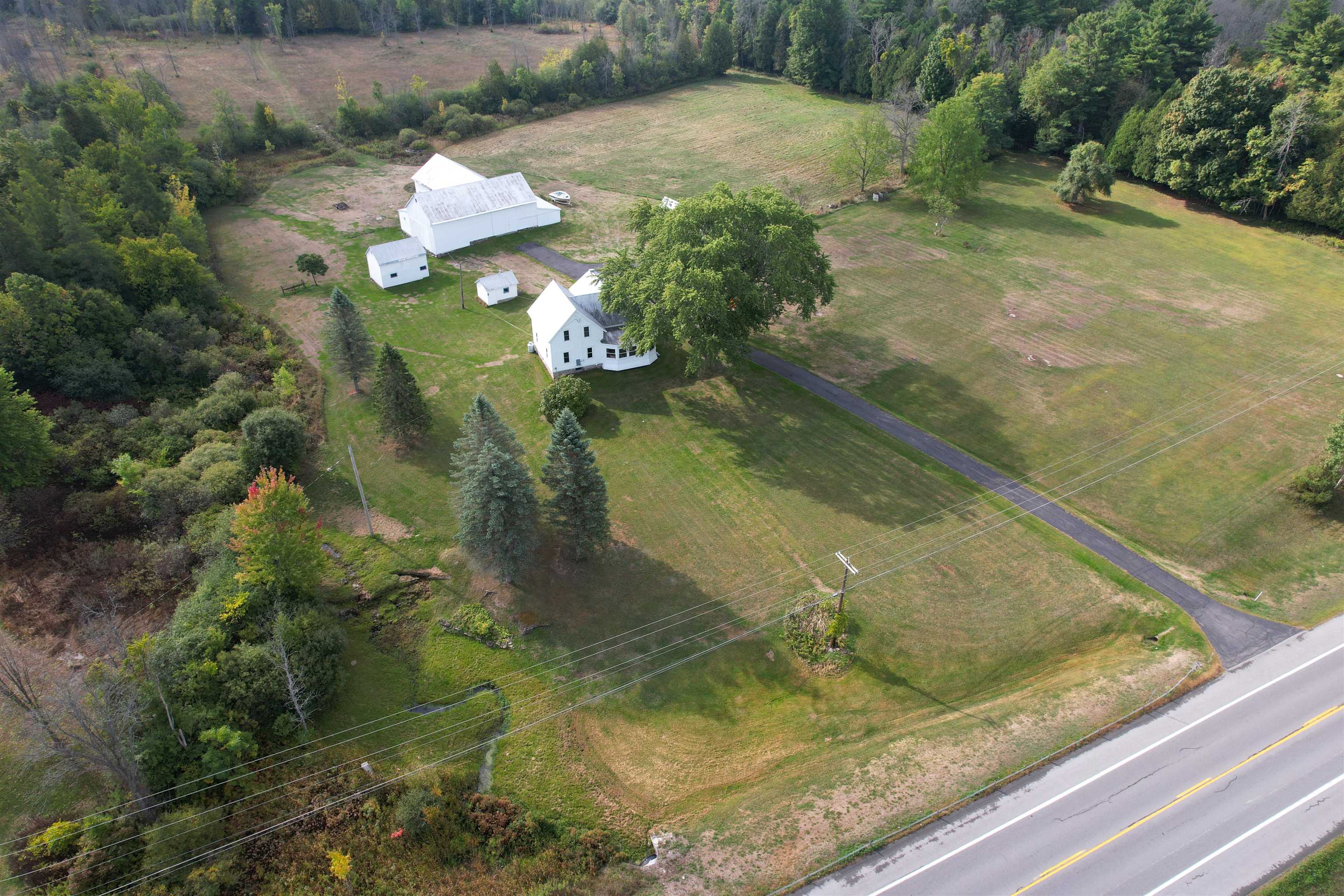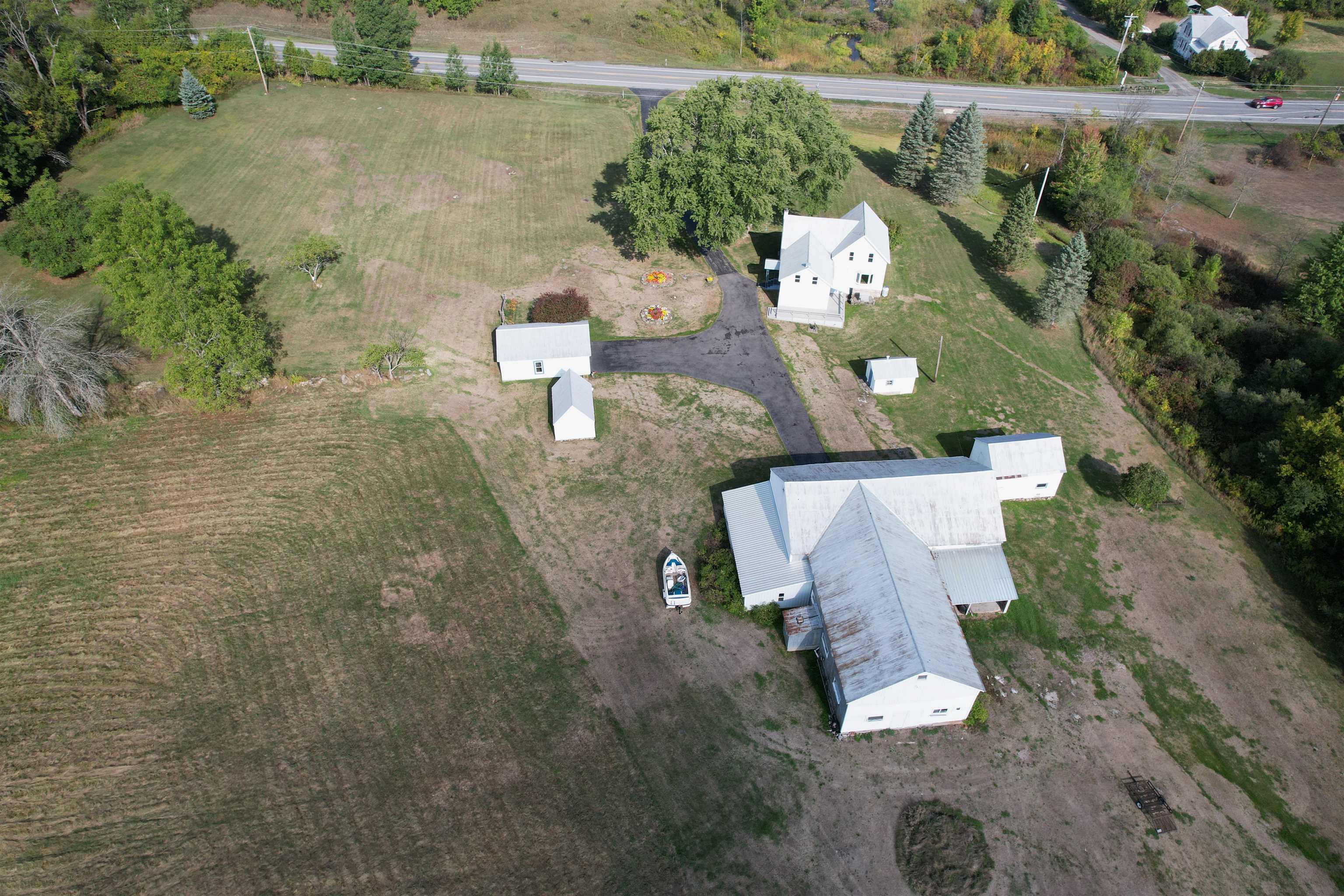A beautiful farmhouse for a new owner to make memories. A paved driveway leads the way to a modern house and outbuildings found on 15 acres. The spacious kitchen and living room allow much room for gathering and entertaining. The eat-in kitchen features Amish built oak cabinets including a pantry cupboard, a second sink for prep, a large center island, and a brand new dishwasher. A very large living room with original woodwork and molding that has been refinished by a local contractor. An insulated enclosed sun porch is a perfect place to relax and enjoy the views. Also on the first floor are a brand new washer and gas-powered dryer, a full bathroom with a lovely shower and in-floor heat. Three bedrooms with carpeted floors and a full bathroom with a tub/shower complete the second floor. A full basement includes a second set of washer and dryer perfect for work clothes and a cast steel fuel oil boiler for heat and hot water. Propane powers the dryer and Generac. A two-story unfinished space at the back of the house currently used for storage may possibly be able to be finished into a game room, office, apartment, or more. The amazing yard has been lovingly landscaped. The flowers, apple tree, and waterfalls are breathtaking. The well-maintained outbuildings include a detached garage, former milk house, a hen house, and a barn. The barn has electricity and is used for storage and a hobby farm. The back area of the barn has a space for woodworking and a lean-to off the back. A second floor available for a hay mow. A second drilled well and pump are located in the barn. Property features a third well that is not connected to a hand pump. A survey will be completed before closing to separate the 15 acres from the larger lot. Taxes based on property at assessed value before separation. Be sure to check out our virtual tour and schedule a showing to see more!