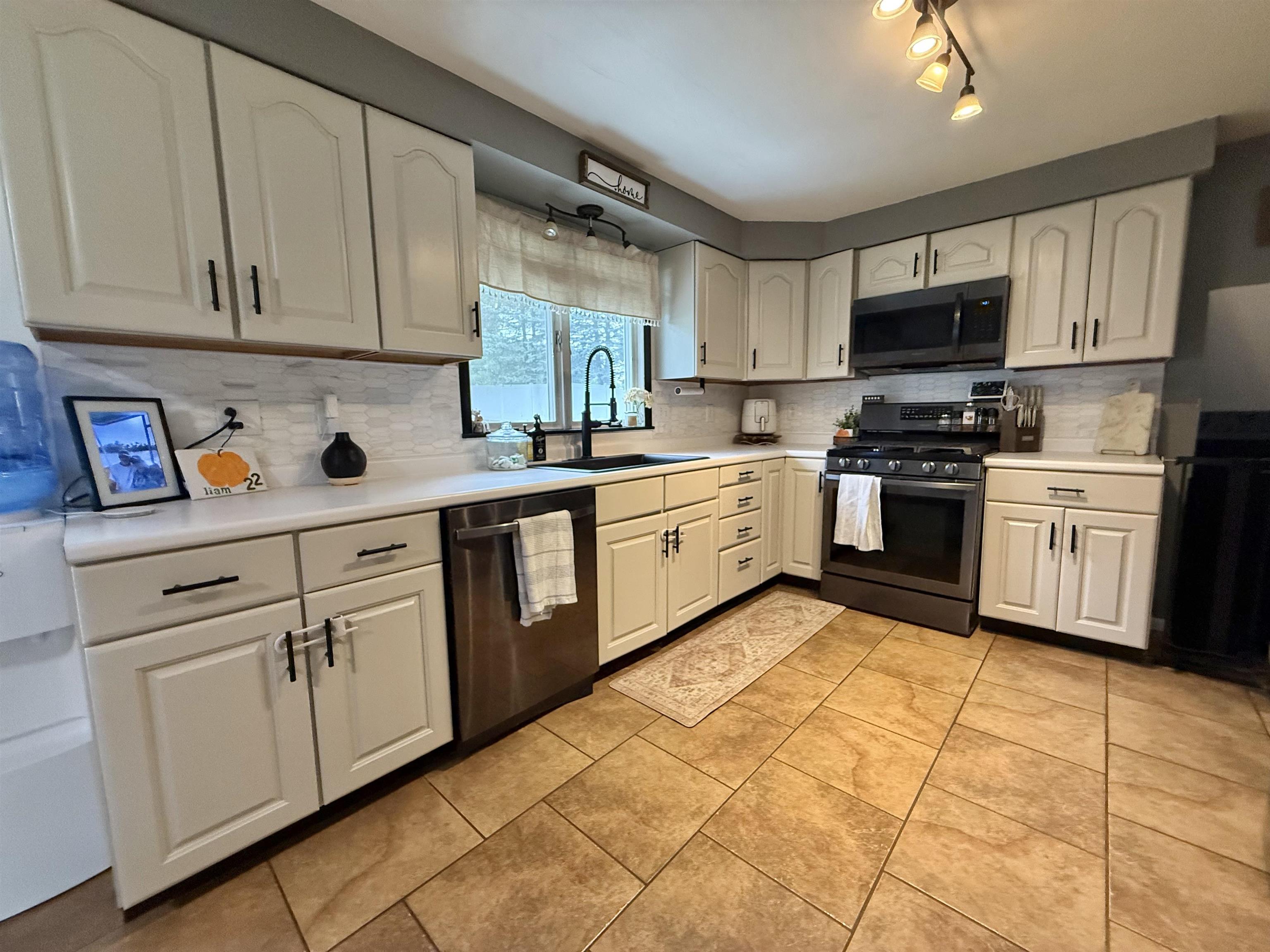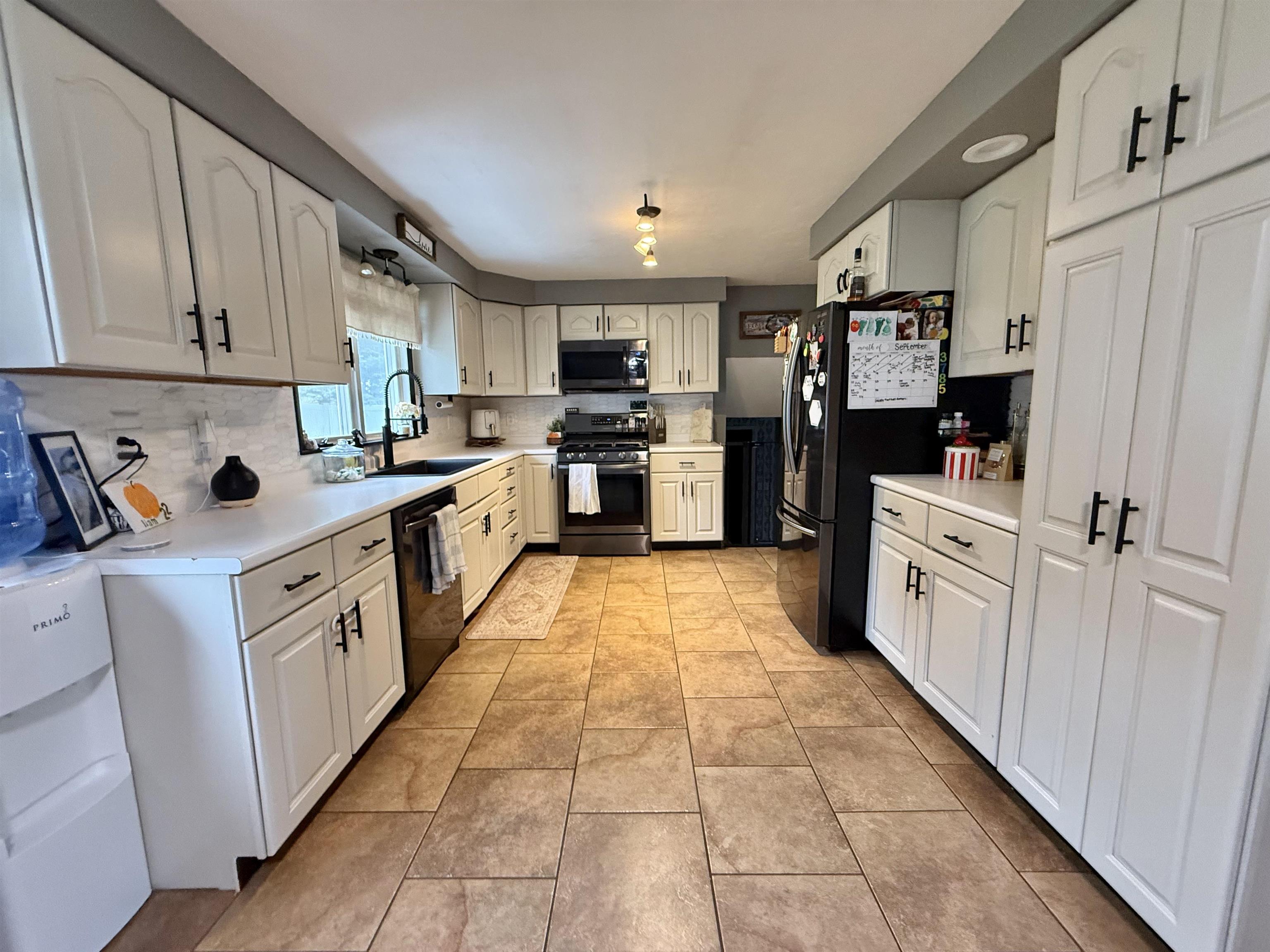 Tastefully updated split-level home designed for comfort, convenience, and versatility. Nestled on a quiet street in Norfolk, this inviting residence features four bedrooms, two full bathrooms, an attached heated garage, and a large fully fenced backyard that ensures privacy and abundant room for outdoor living and play. Upon entry, a sizeable foyer welcomes you to the open-concept main level connecting the living room, dining area, and a well-appointed kitchen. The upper level offers three bedrooms and a full bath, while the lower level provides a laundry room with additional full bathroom, and a bonus room ideal for a home office or creative area. The basement expands the living space with a bar room for entertainment and a private bedroom. Updates include a natural gas boiler with on-demand water heater (installed in 2022), a new roof (2023), new siding (2024–2025), and four new mini-split units providing heating and air conditioning to all upper-level bedrooms and the main living area. All appliances are conveyed with the sale. Must see in person to appreciate.