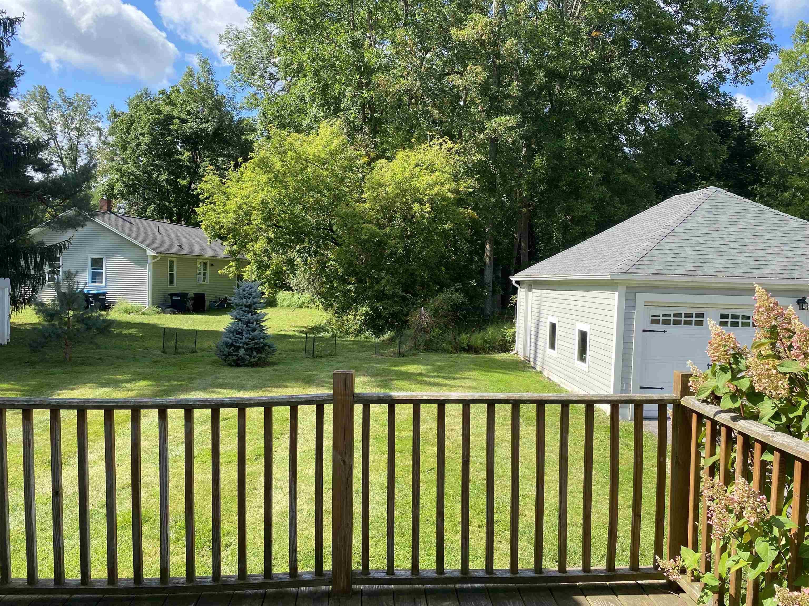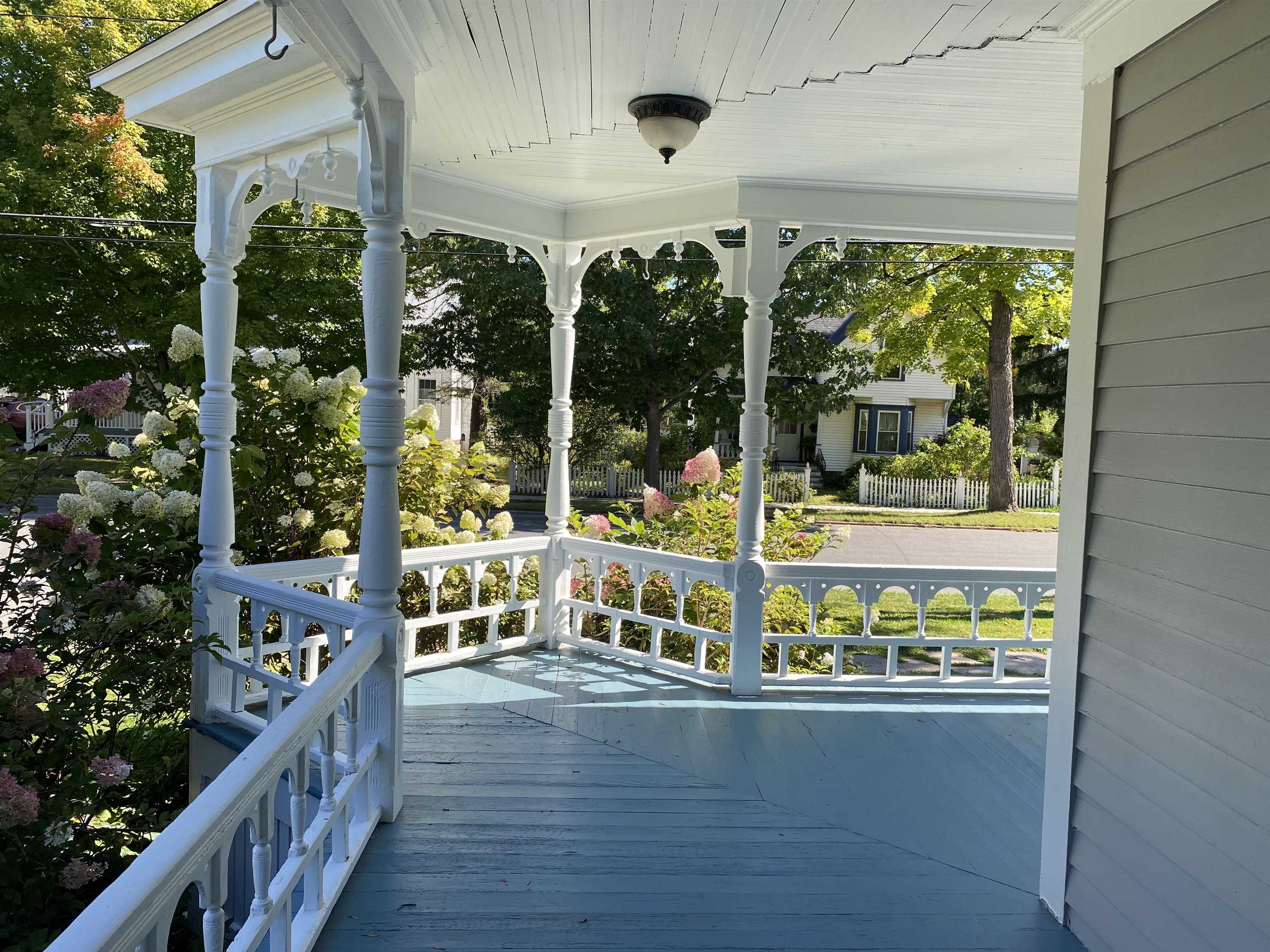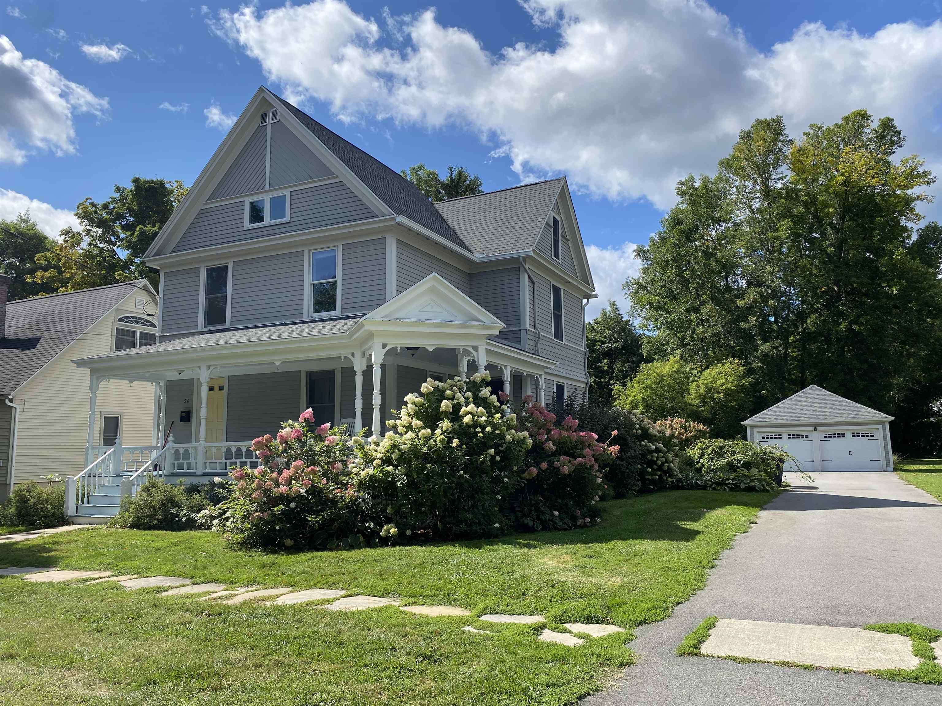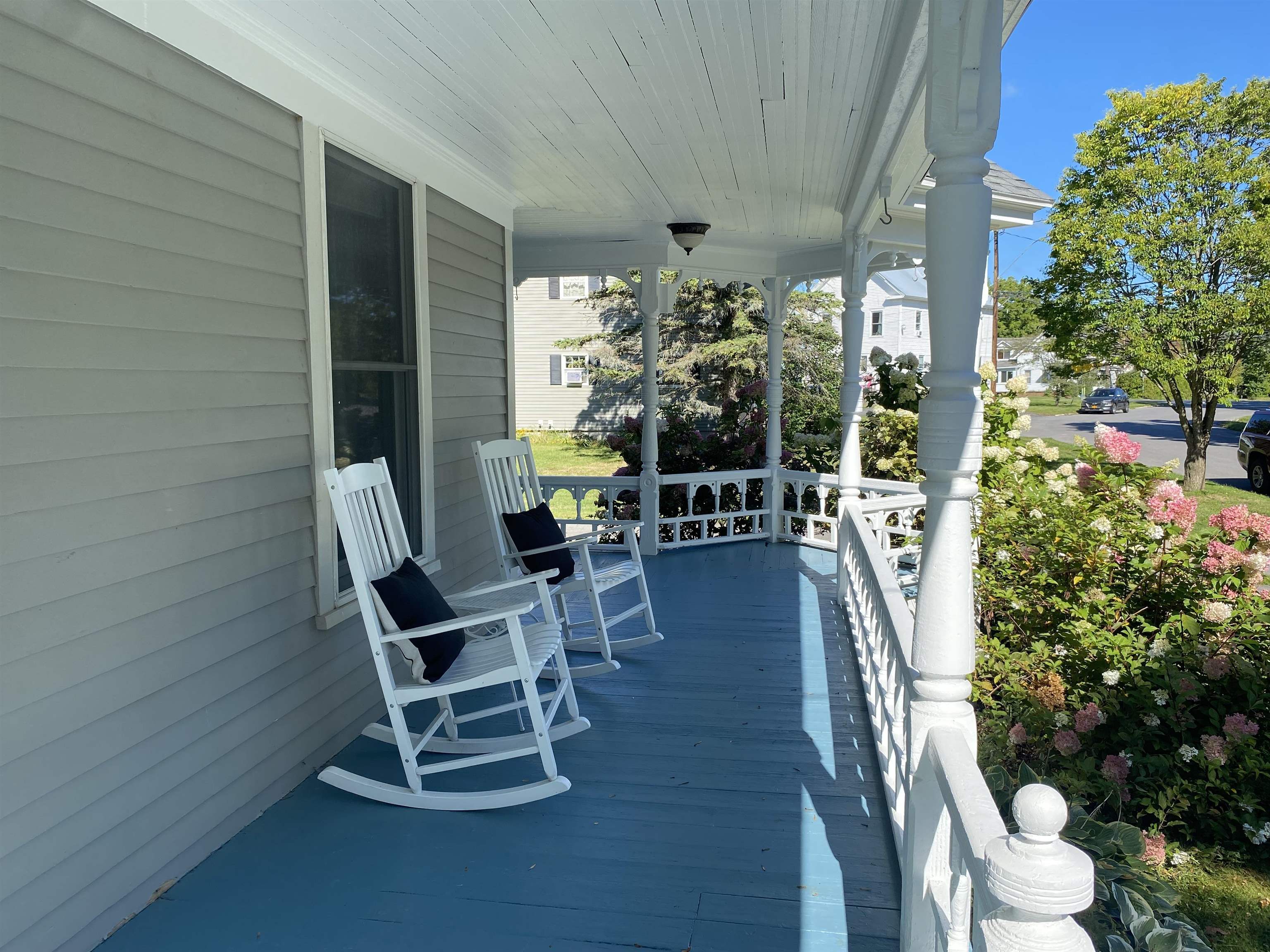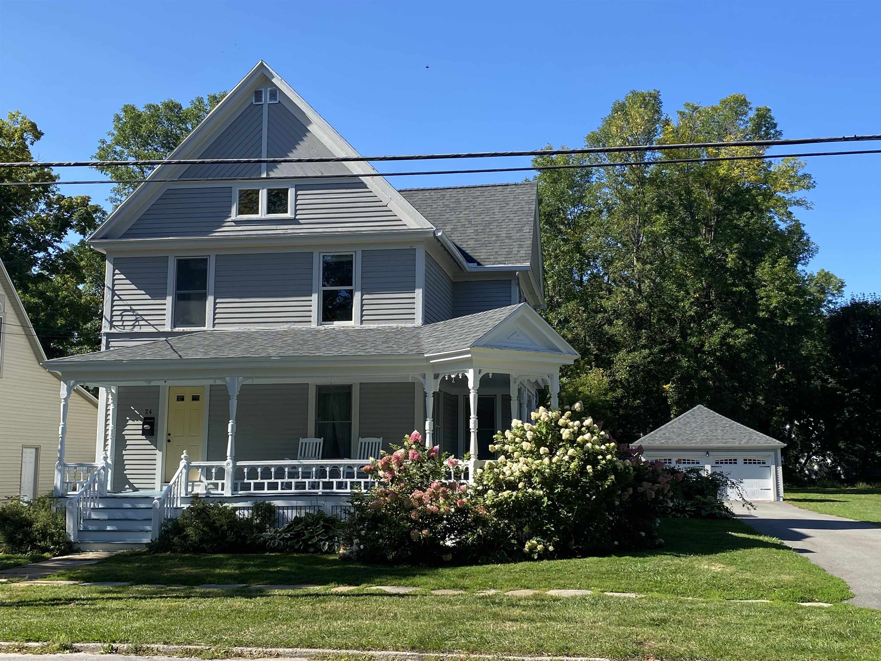 This beautifully remodeled four-bedroom, three-bath home in the Village of Potsdam blends timeless charm with thoughtful modern updates. Set on a lovely lot with a wrap-around porch, side deck, patio, and a landscaped yard designed by Willow Tree Landscaping, this traditional three-story residence offers both curb appeal and comfortable living. The detached two-car garage with automatic doors and a backyard accented by recently planted trees add to the appeal. Step inside the welcoming foyer, where a detailed wood staircase sets the tone for the home’s character. The foyer opens to a large dining room and a spacious living room, both featuring hardwood floors, oversized windows, and updated light fixtures. Just off the dining room, you’ll find a versatile room with two built-in bookshelves, a walk-in closet, and a private three-quarter bath—perfect as a bedroom, den, library, or whatever you need! The completely remodeled kitchen is bright and stylish, showcasing white cabinetry, stone countertops, penny tile backsplash, stainless steel appliances, and light tile flooring. It flows into a cozy second dining or flexible space. A sliding barn door opens to a walk-in pantry with wall-to-wall shelving and stacked laundry units. At the back of the home, a sun-filled living area features a built-in daybed with tall bookshelf, a decorative stone fireplace (not currently working), windows overlooking the backyard, and a door to the large side deck. Two staircases lead upstairs, where you’ll find the impressive primary suite. The primary bedroom boasts a custom walk-in closet with crown molding, double hanging bars, drawers, shelving, and a vanity area. The adjoining remodeled bath offers double sinks, custom cabinetry, and a tiled shower. Two additional bedrooms upstairs are equally inviting with the charming wood floors, including one with floor-to-ceiling bookshelves and a custom wardrobe closet. A second renovated full bath is finished with gray tile floors, a clawfoot tub, and stone vanity. The third floor offers a fully finished, open-concept bonus space ideal for recreation, office use, or guest accommodations, complete with a cozy nook featuring cabinetry, a sink, and tile flooring. With its spacious layout, tasteful updates, and blend of character and modern convenience, this Village home is truly one of a kind