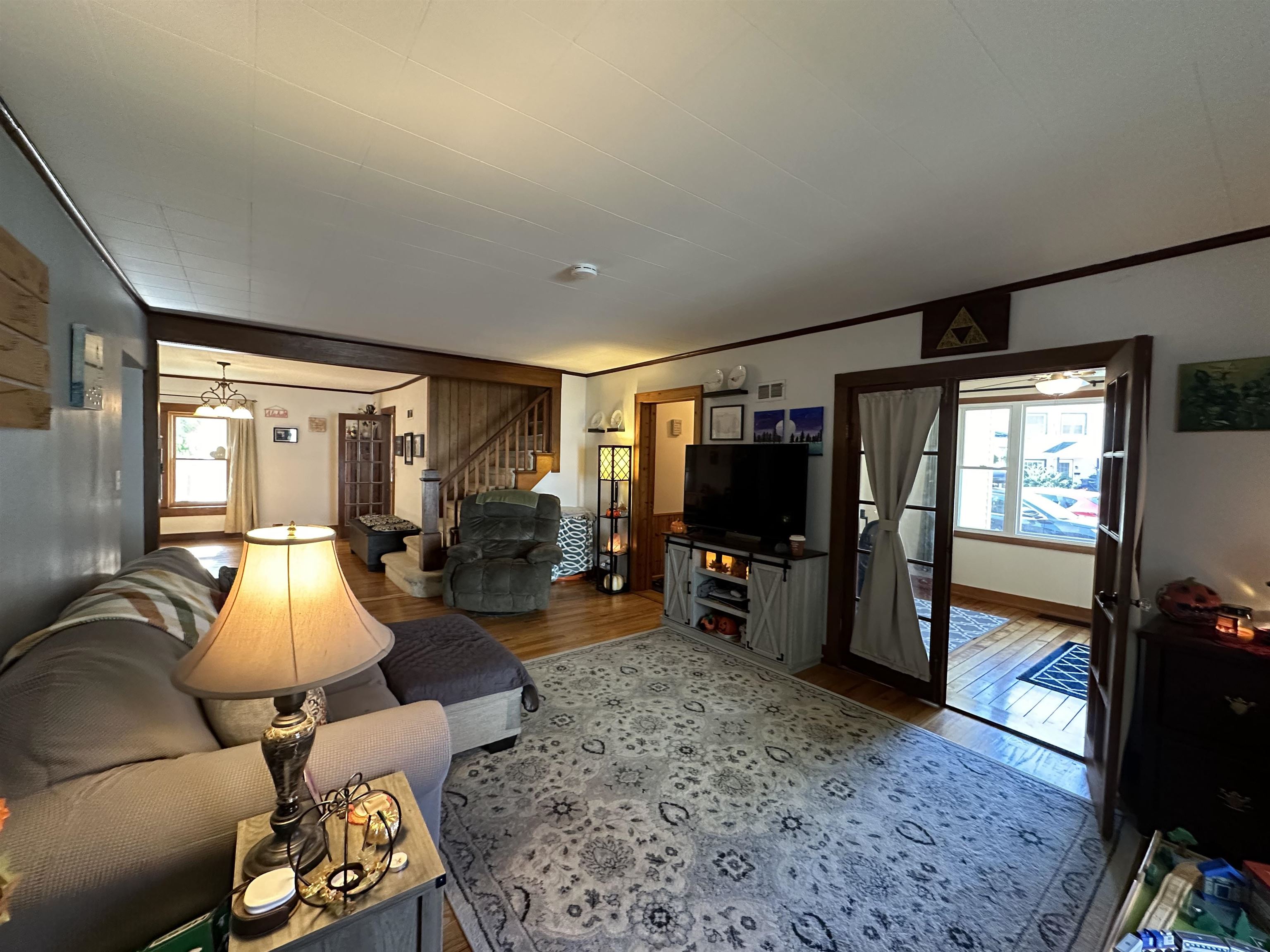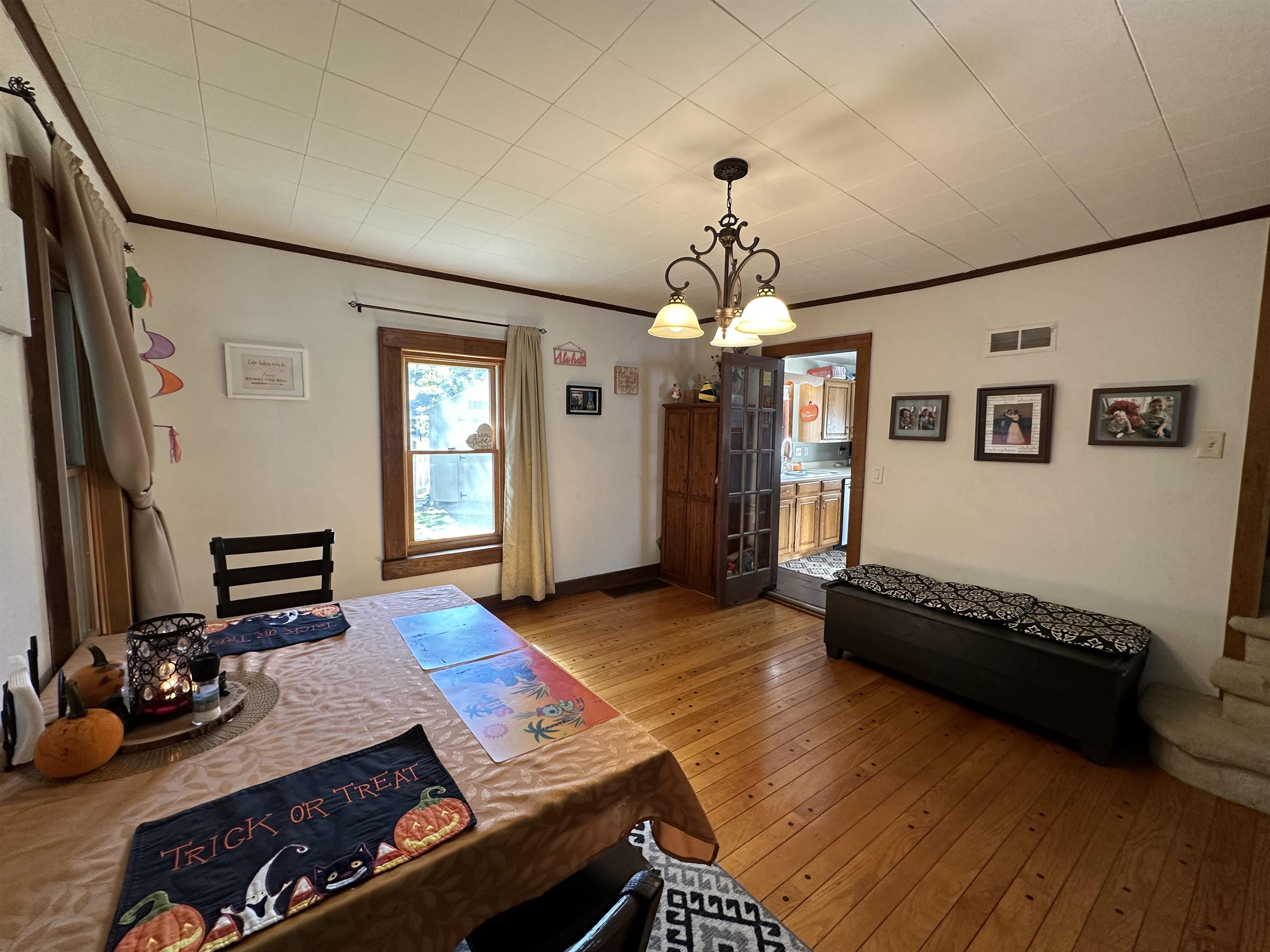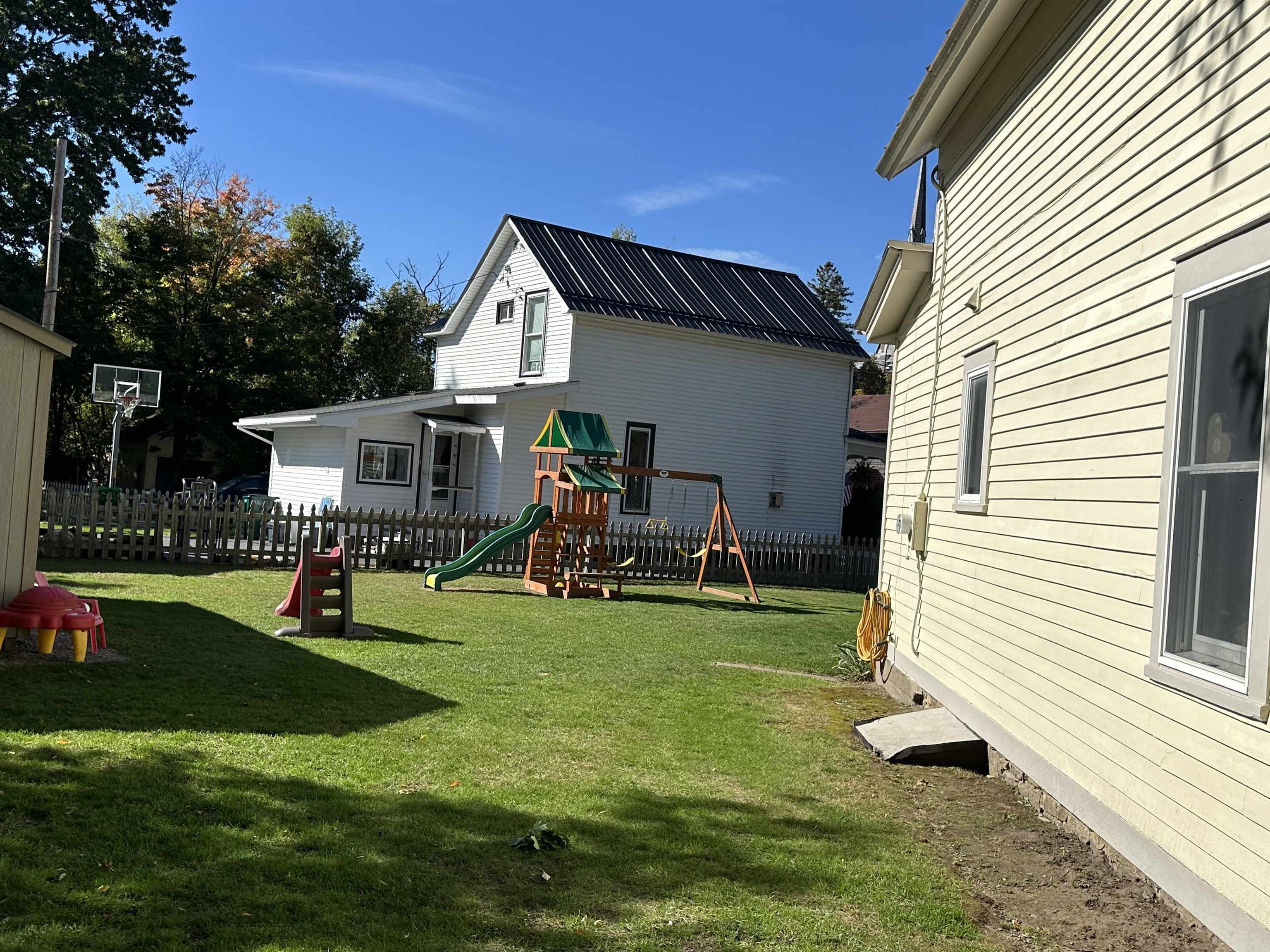 Welcome to 12 Park Place, a charming home in the center of the village close to the park. This home is bigger on the inside than it looks on the outside. Upon entry into the mudroom is a large coat closet as well as a closet for the washer and dryer which will stay with the home. Proceed into the spacious living room with hard wood floors and onto the den through the French doors. This is currently being used as a home office. Dining room is open to the living room. Kitchen is a galley style with oak cabinets and plenty of counter space. Electric stove, dishwasher, and refrigerator will convey. There is a first floor bedroom and full bath. Upstairs are two nice sized bedrooms and a full bath. One of the bedrooms has built-in drawers so no need for a dresser. Outside is a nice yard, paved driveway, and a large storage shed. Close to shopping, local restaurants, school, post office, movie theatre, and park.