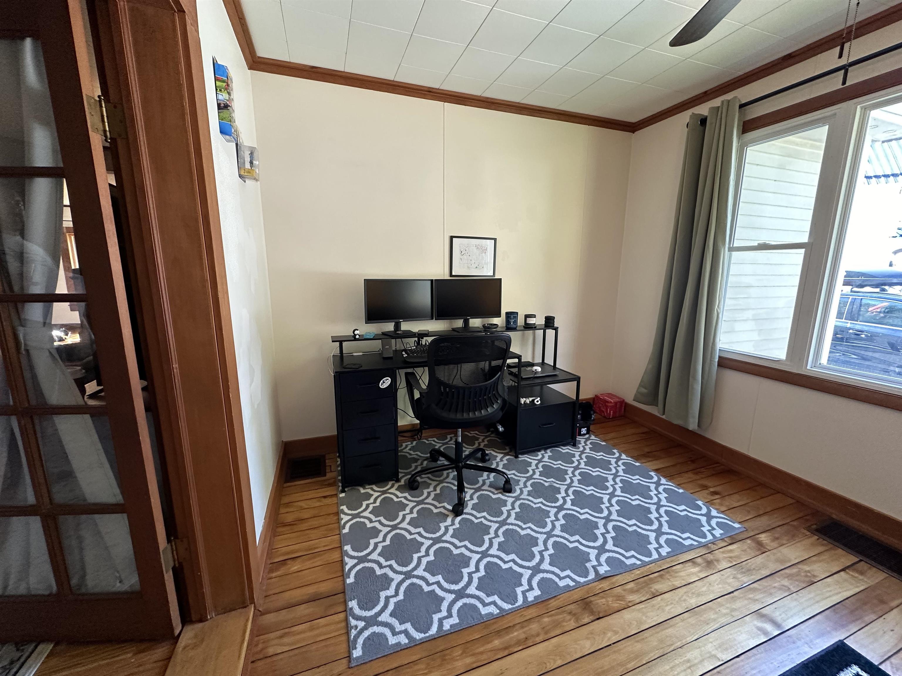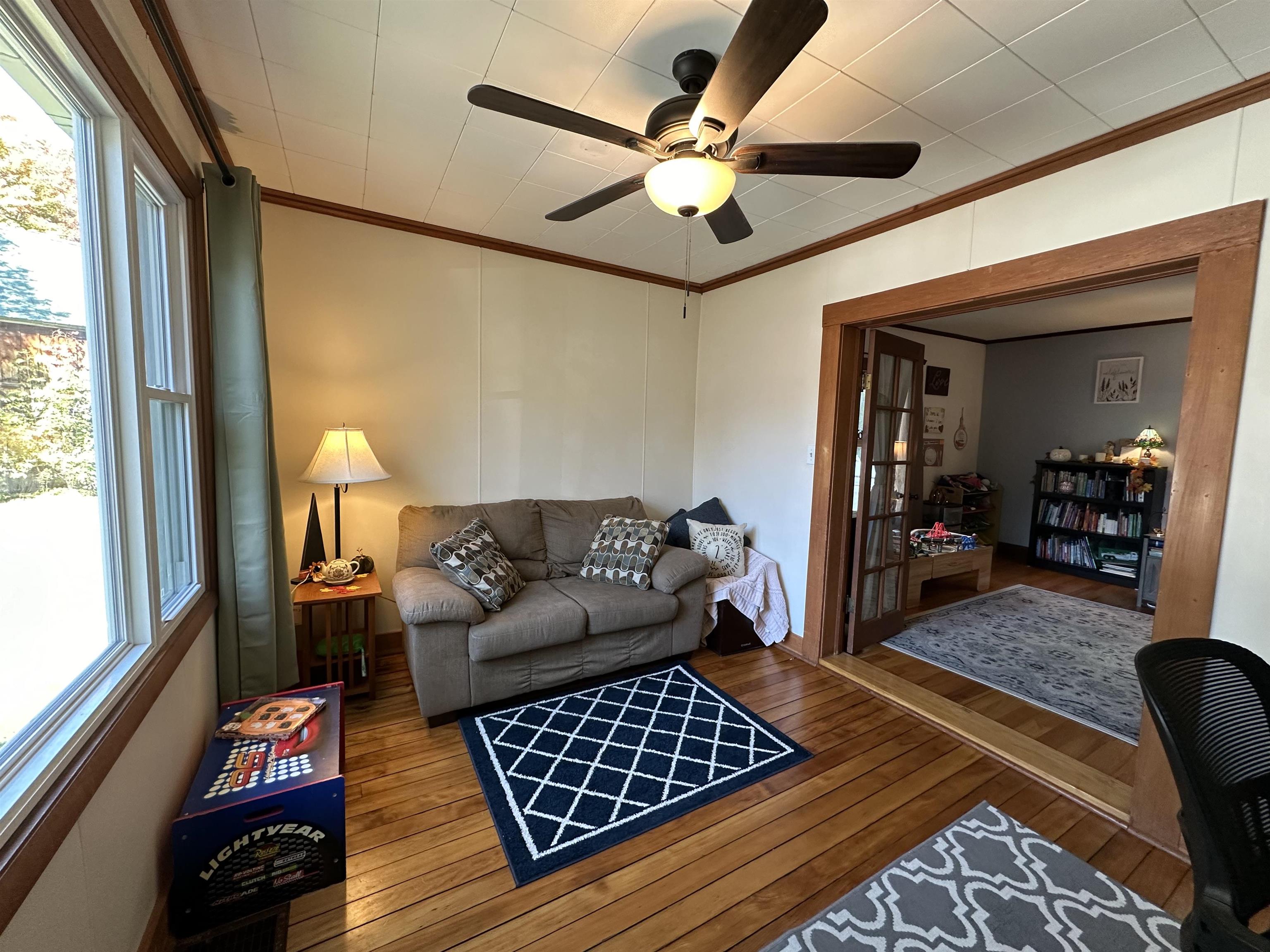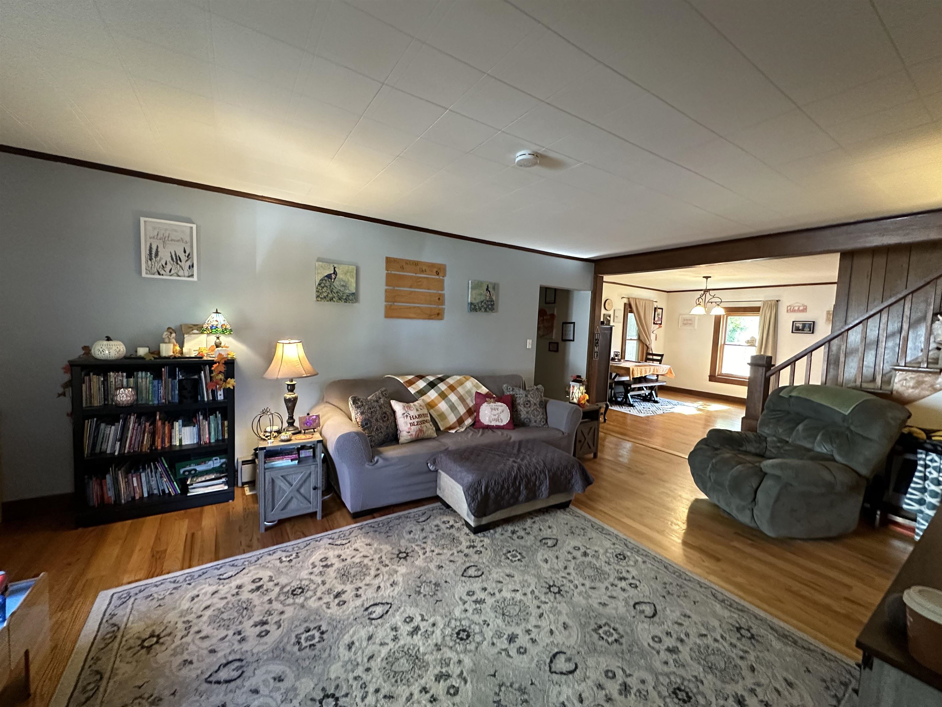 Welcome to 12 Park Place, a charming home in the center of the village close to the park. This home is bigger on the inside than it looks on the outside. Upon entry into the mudroom is a large coat closet as well as a closet for the washer and dryer which will stay with the home. Proceed into the spacious living room with hard wood floors and onto the den through the French doors. This is currently being used as a home office. Dining room is open to the living room. Kitchen is a galley style with oak cabinets and plenty of counter space. Electric stove, dishwasher, and refrigerator will convey. There is a first floor bedroom and full bath. Upstairs are two nice sized bedrooms and a full bath. One of the bedrooms has built-in drawers so no need for a dresser. Outside is a nice yard, paved driveway, and a large storage shed. Close to shopping, local restaurants, school, post office, movie theatre, and park.