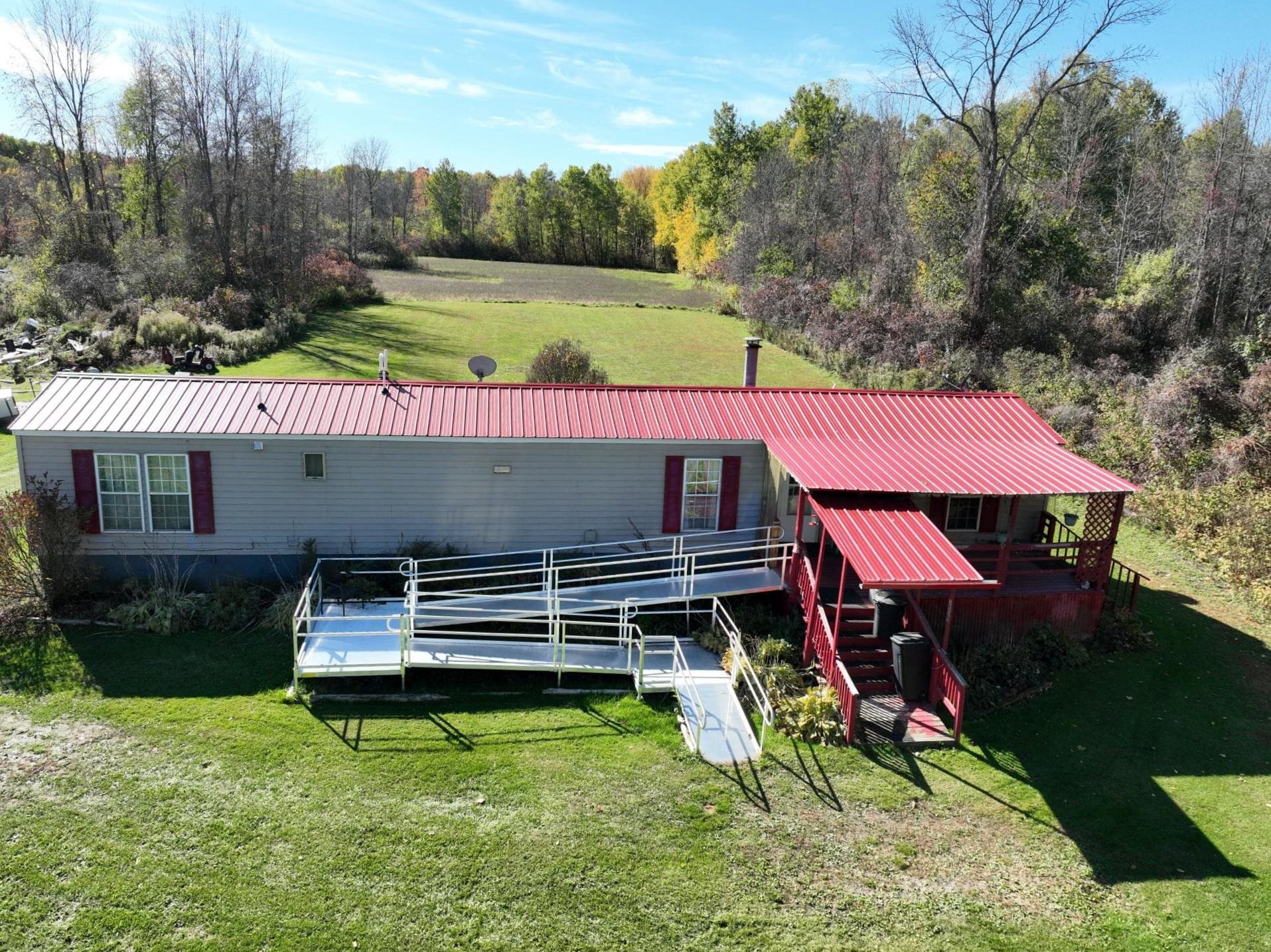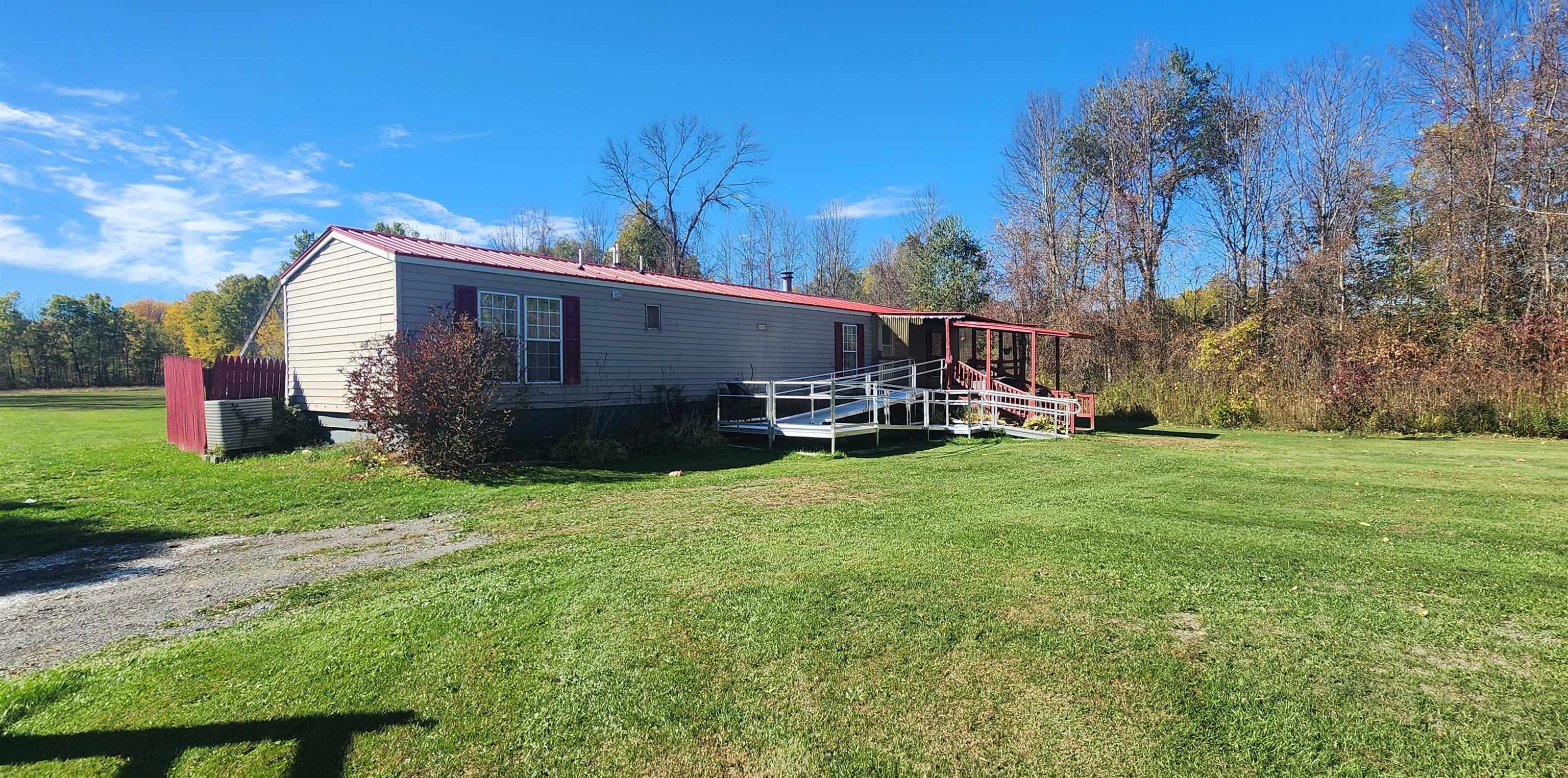 Enjoy peaceful country living in this 1992 2-bedroom, 2-bath single-wide home set on a level one-acre lot surrounded by nature. You’ll love watching wildlife visit the yard and the open views of the neighboring hayfield, maintained by local Amish farmers. The home offers comfortable one floor living with an open layout and plenty of potential to make it your own. The shared driveway provides convenient access, and you’ll appreciate being in the Heuvelton School District — a great option for anyone seeking a quiet rural retreat. Priced to sell, this property is perfect for anyone looking for an affordable slice of the countryside. Don’t miss your chance to make it yours! Red fence is on the property. Lot ends at tall grass in back Amish tend the hayfield behind the house and access through the driveway. They are only there 2 or 3 times a season to Hay. Driveway is shared with neighbor. Chair ramp and shed will convey. **DO NOT DRIVE DOWN DRIVEWAY WITHOUT an Appt with a Realtor. Preapproved buyers for type of home or VOF required with any offer. Sale is AS IS. Video cameras on and around property