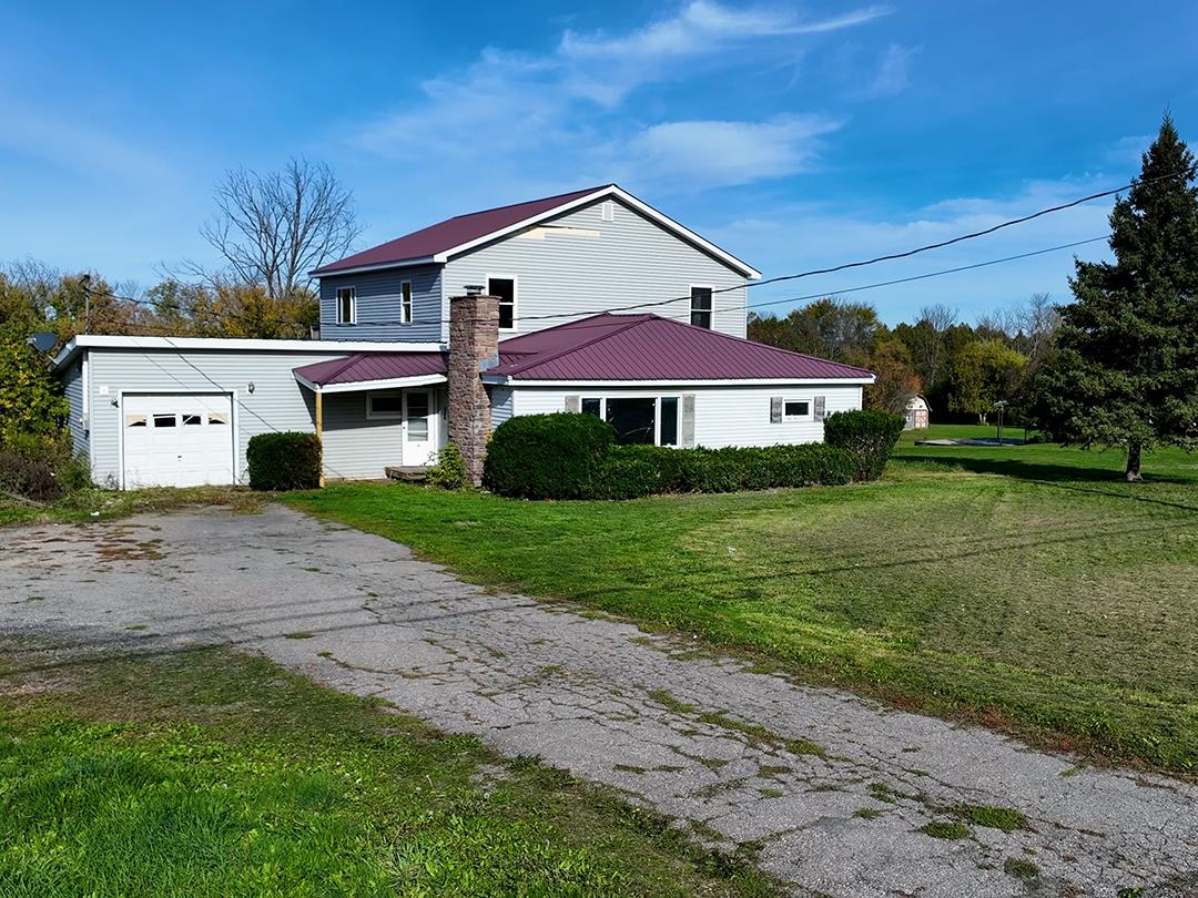 Investors and contractors: This property presents a renovation opportunity with potential for those prepared to take on the project. This spacious 3,280-square-foot home offers four bedrooms, two full bathrooms, and an attached one-car garage, all situated on just over an acre of land. Conveniently located less than a mile from the 18-hole public golf course overlooking the St. Lawrence River and hiking/cross-country ski trailhead. According to previous records, the residence was originally built as a ranch in 1956, with a second story added in 2007. While substantial renovations are needed, the property is being priced at less than half its tax assessed value. The parcel is within 15 minutes of the Ogdensburg-Prescott International Airport (Breeze Airways offers flights to DC and Orlando), Canadian Bridge to Ottawa, Ontario, box store shopping, restaurants, and all city amenities. Morristown, with the nearest public boat launch, marina, restaurants, museum, historic sites, and community events, is less than ten minutes away, and Alexandria Bay is a 40-minute drive. Please note: the new owner will be responsible for removing any remaining contents on the property.