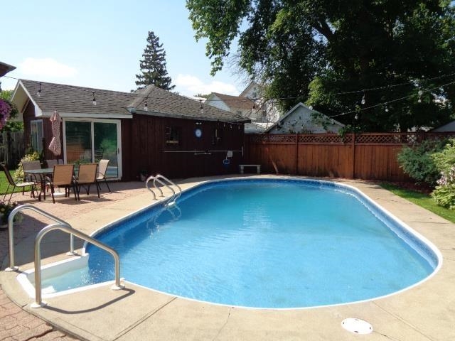 Want your own summer, Oasis? This home boasts of an inground pool, covered patio, storage building with tiki bar and all in a fence enclosed area. This 3 bedroom and two-bathroom home has been made gas efficient with a newer furnace and many replacement windows along with efficient doors. The large double living room and dining/play area have beautiful hardwood floors. The kitchen features stainless steel appliances, a center island, granite countertops, and glass tile backsplash along with ceramic tile floors. Off from the kitchen is a full bathroom with a main floor laundry area. Upstairs has beautiful hardwood floors throughout. The main bedroom is a nice size with two closets and a nook for a dressing table or desk. The two other bedrooms are good sized and allow for bed and play area. This home has plenty to offer and priced merely to cost of house and updates. Make your appointment today!