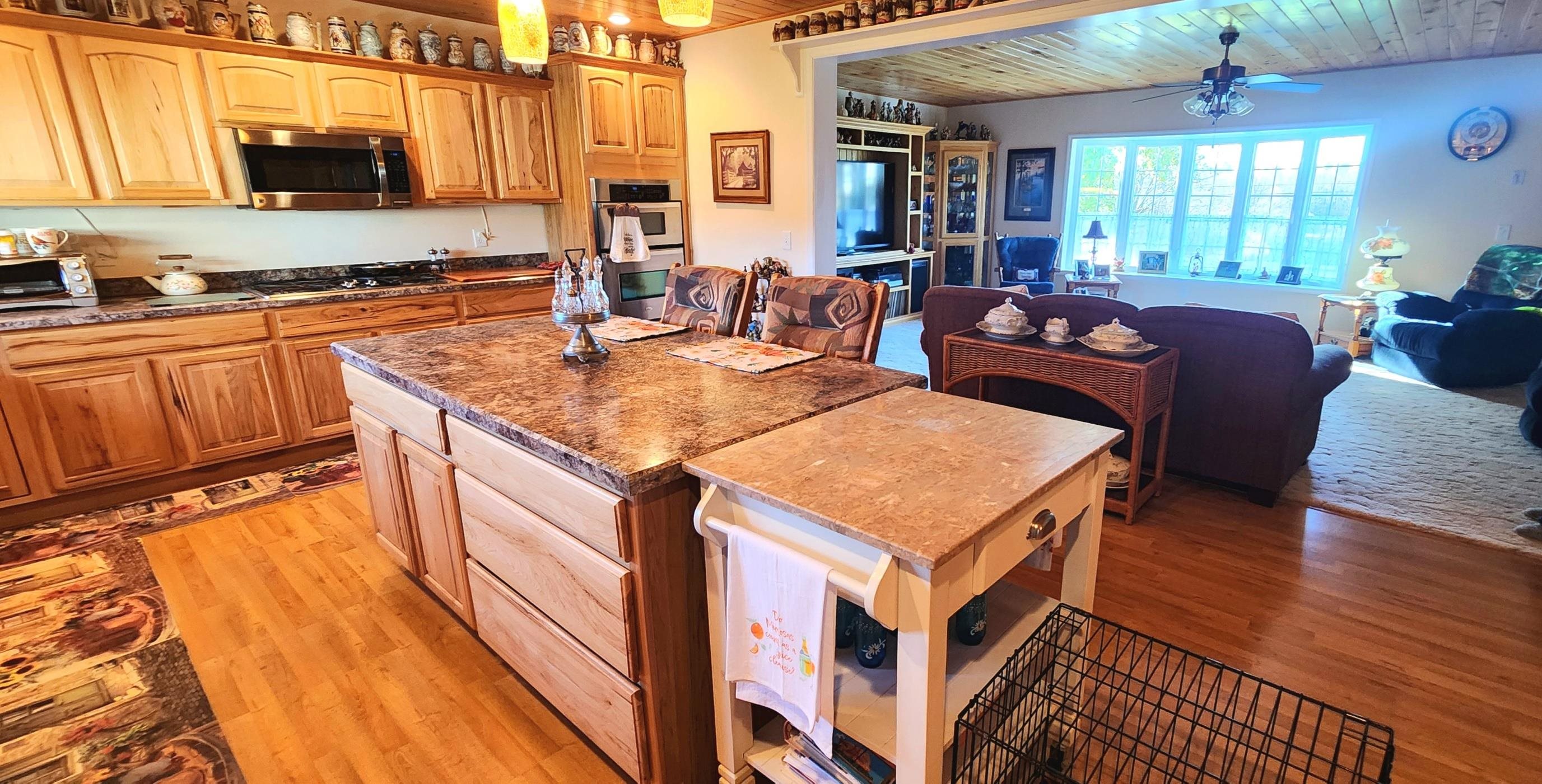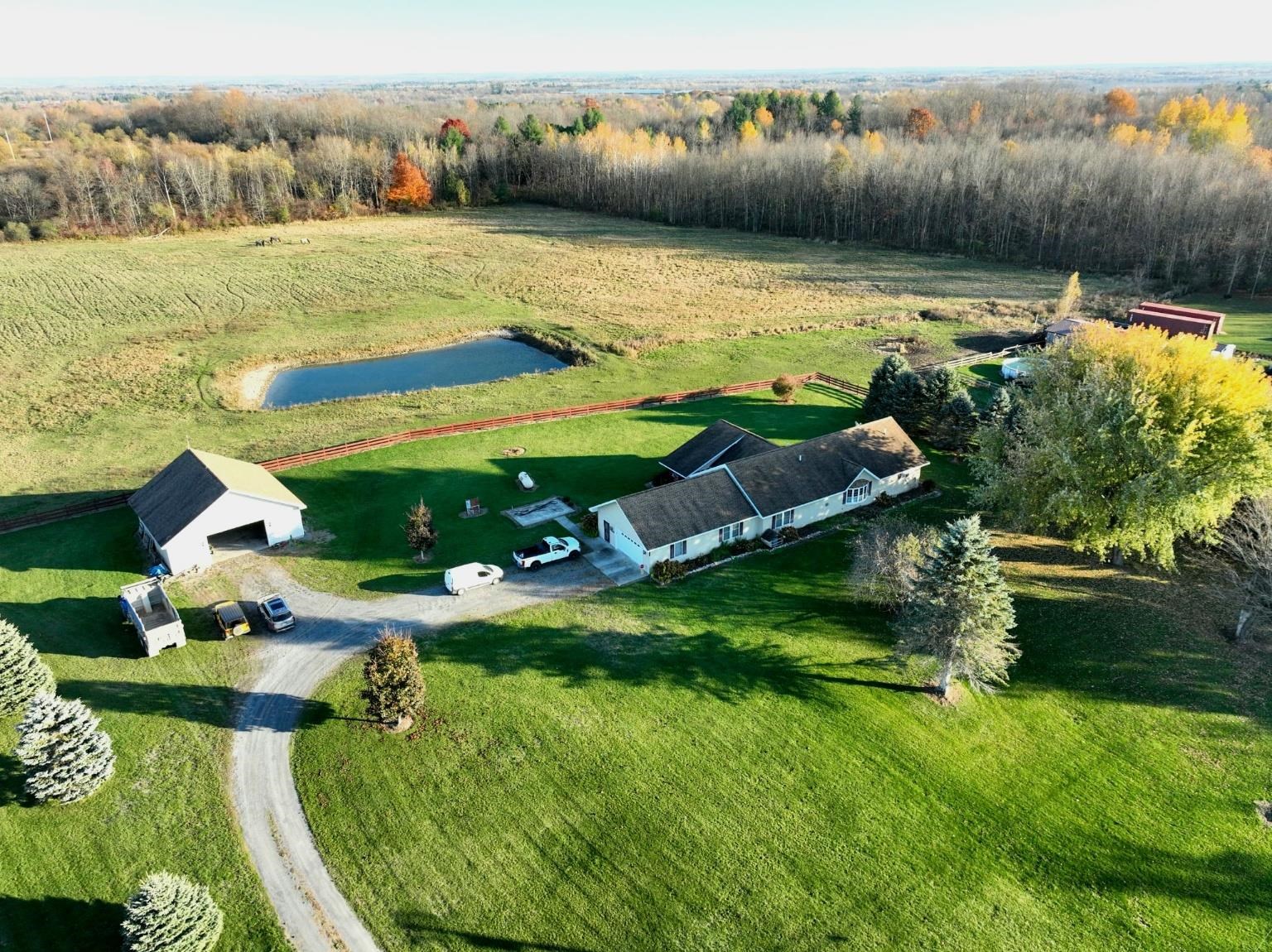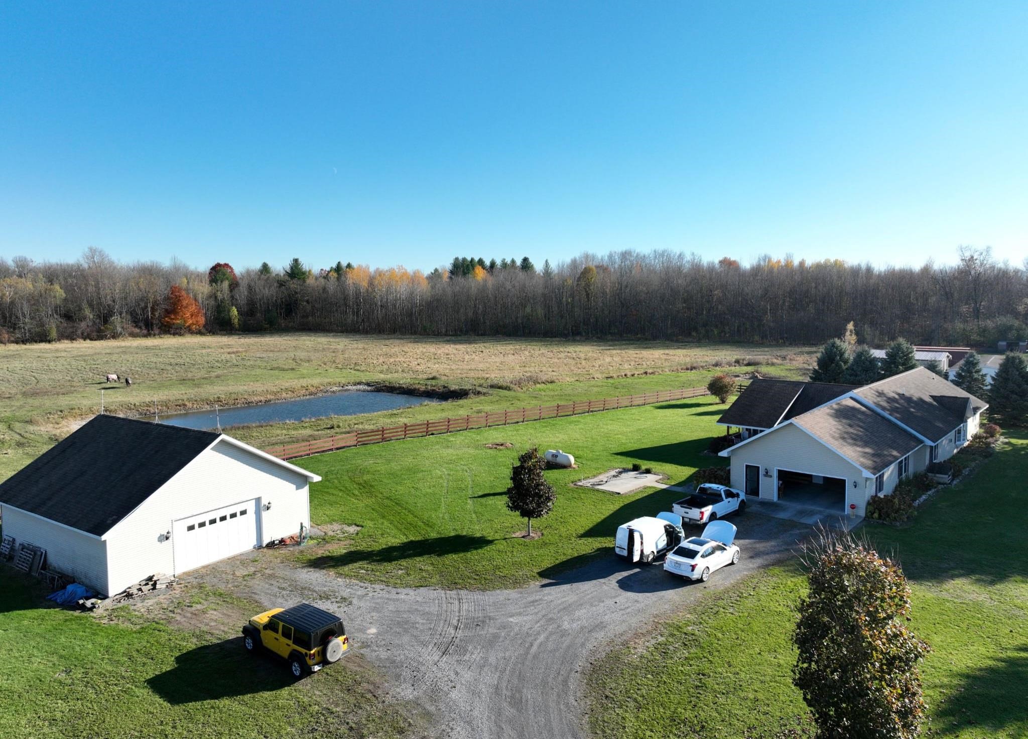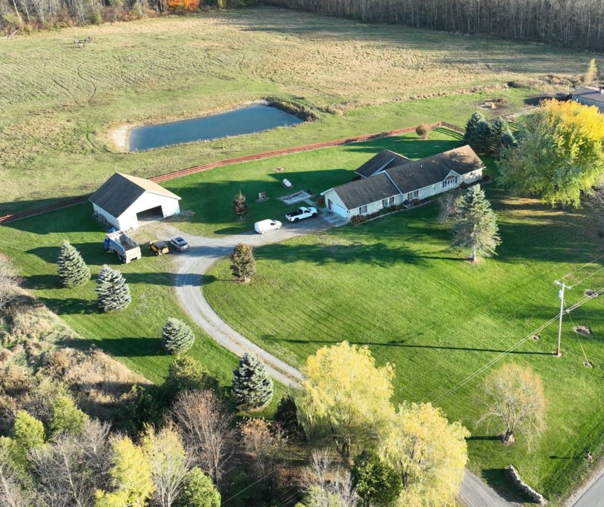 Settle into the serene countryside with this truly move-in ready, beautiful ranch home, perfectly situated on a peaceful 11.6-acre parcel within the esteemed Heuvelton School District. This quality-built modular home immediately impresses with its oversized rooms and a flowing, open floor plan designed for modern living and grand entertaining. The heart of the home is the stunning kitchen, a masterpiece featuring exquisite Amish-made hickory cabinetry, a central island with comfortable seating, and a complete set of gleaming stainless steel appliances that are included in the sale. This culinary space effortlessly shares the dining and living areas, where a cozy propane gas fireplace creates a warm, inviting atmosphere. Step through to the light-filled sunroom, a glorious retreat lined with windows that provide unparalleled views of your private meadow. The home offers three spacious bedrooms and two full baths, including an extra-large primary suite that serves as a luxurious sanctuary, complete with a beautifully appointed ensuite bathroom and a substantial closet. Beyond the elegant interiors, the property boasts incredible utility with two fantastic garages: one attached with extensive storage, including convenient pull-down access, and a second, much larger, 36 x 36 detached garage with its own electricity and vast storage, offering the ultimate canvas for the workshop or hobby space of your dreams. This is more than a home; it’s a private, beautiful estate with it''s own spring fed deep pond and vast meadow just waiting for you to simply unlock the door and start living. Spectrum Internet is not available at this location other internet options would be Slic, Verizon or Starlink.