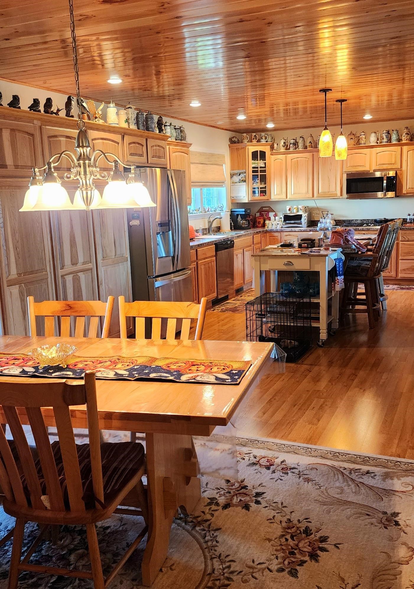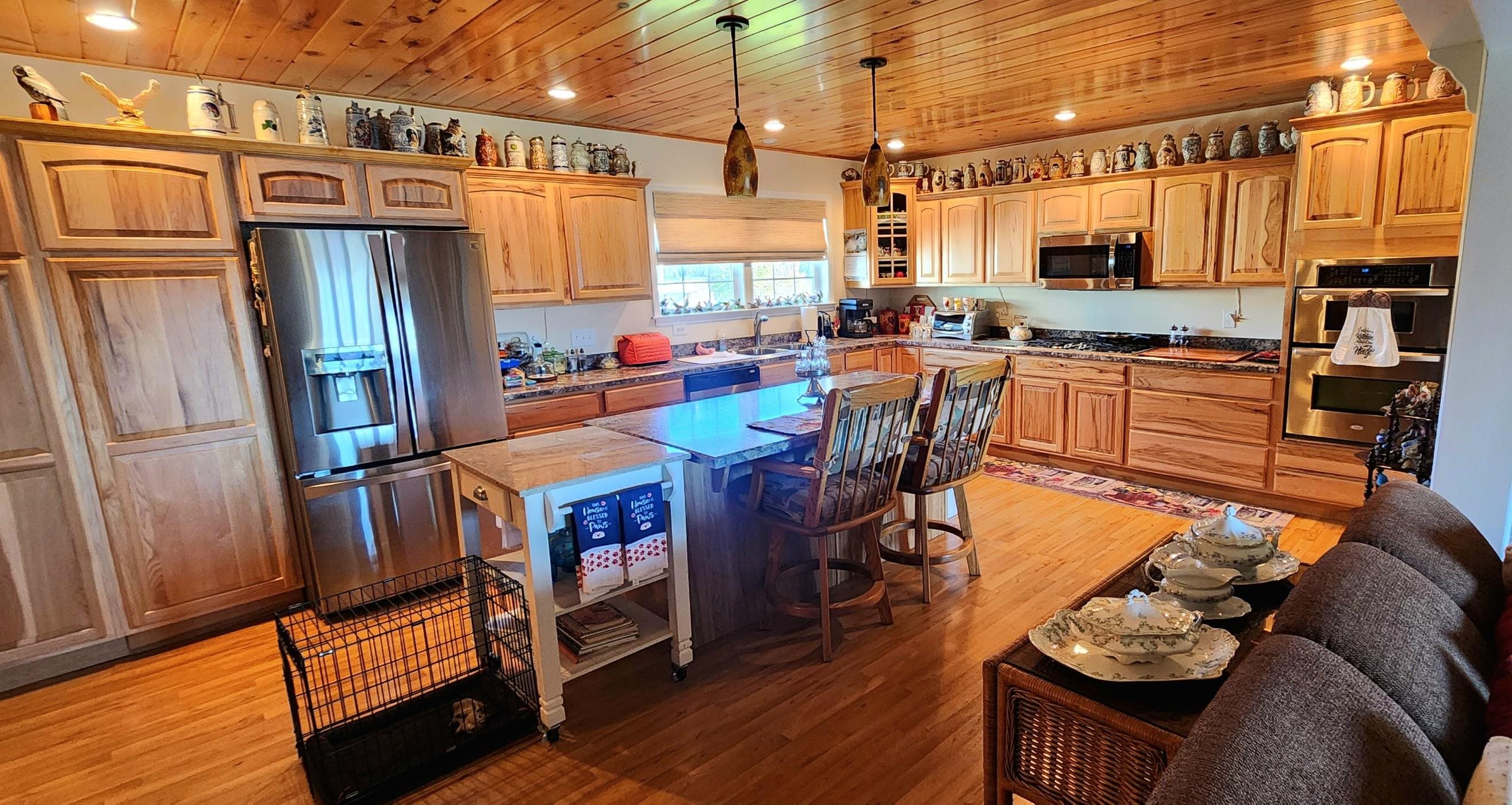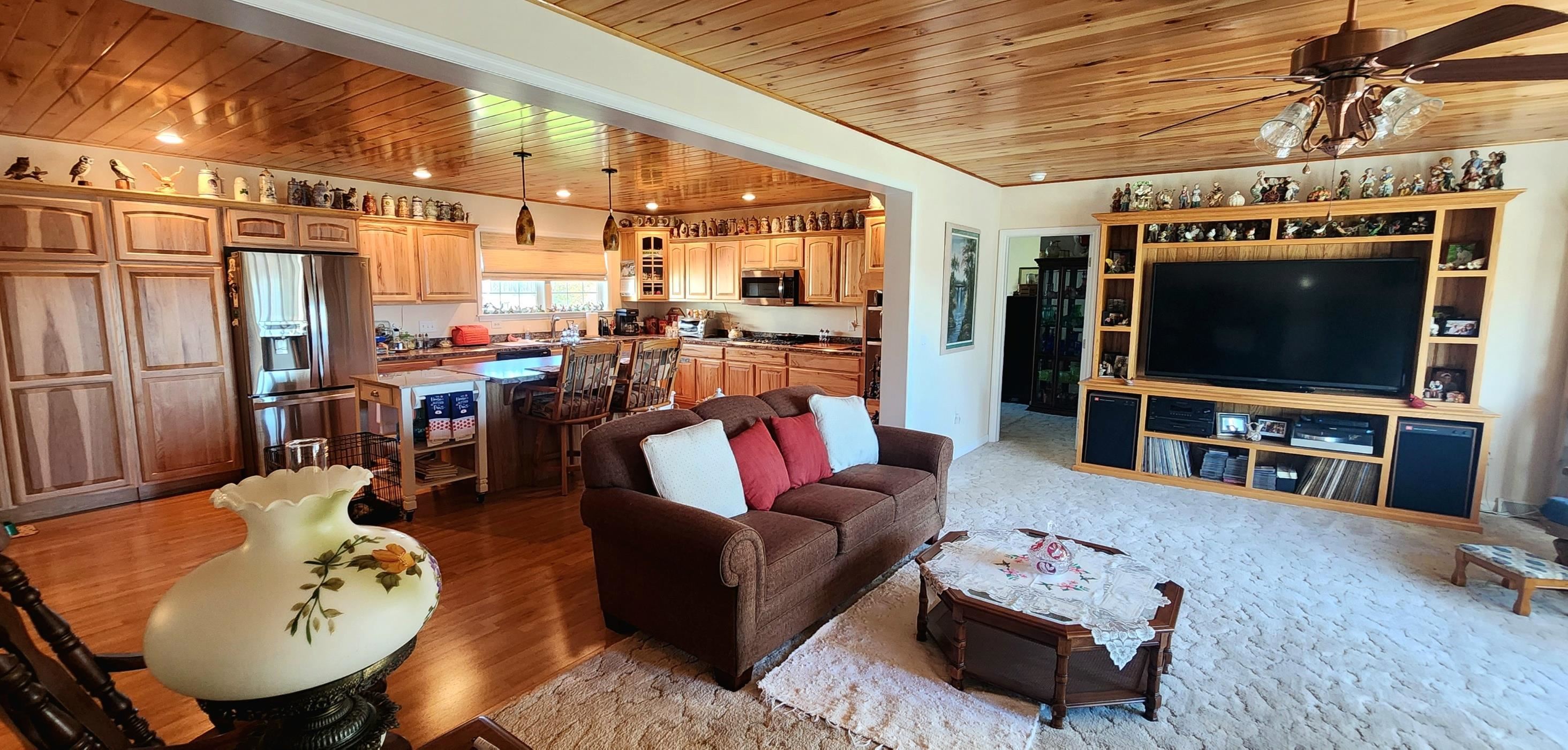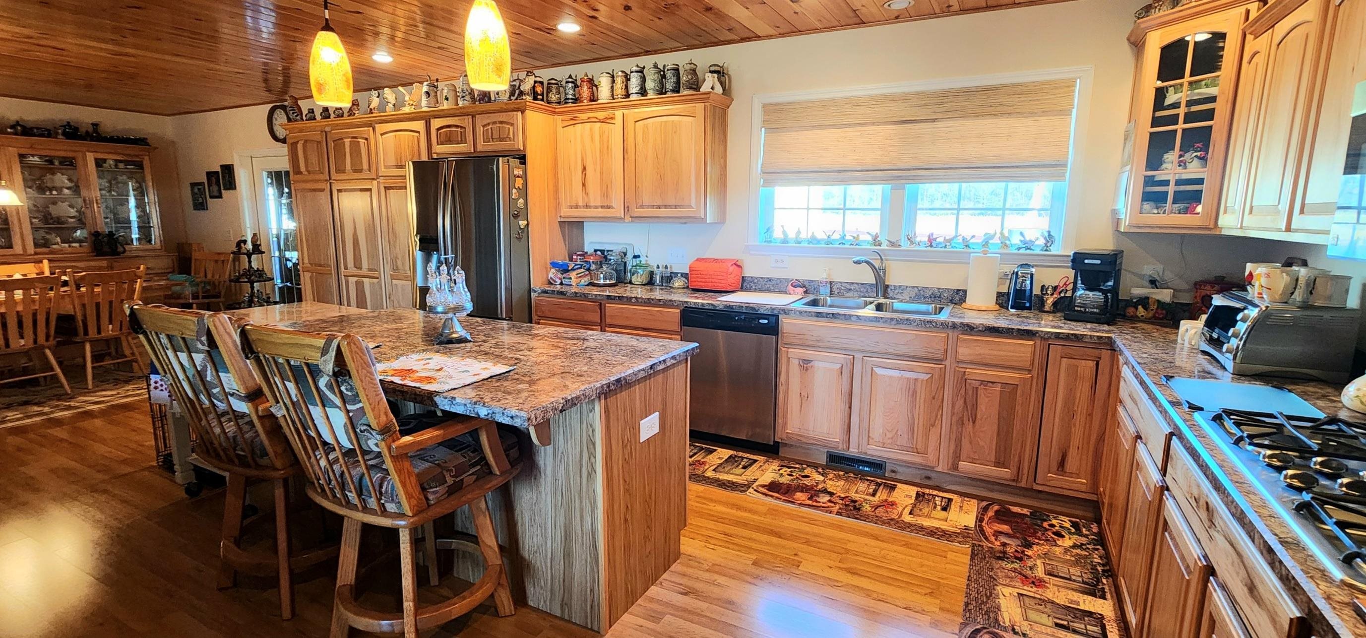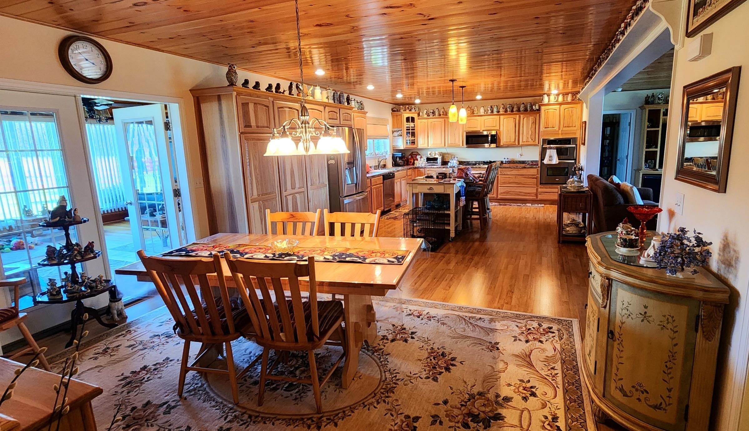Settle into the serene countryside with this truly move-in ready, beautiful ranch home, perfectly situated on a peaceful 11.6-acre parcel within the esteemed Heuvelton School District. This quality-built modular home immediately impresses with its oversized rooms and a flowing, open floor plan designed for modern living and grand entertaining. The heart of the home is the stunning kitchen, a masterpiece featuring exquisite Amish-made hickory cabinetry, a central island with comfortable seating, and a complete set of gleaming stainless steel appliances that are included in the sale. This culinary space effortlessly shares the dining and living areas, where a cozy propane gas fireplace creates a warm, inviting atmosphere. Step through to the light-filled sunroom, a glorious retreat lined with windows that provide unparalleled views of your private meadow. The home offers three spacious bedrooms and two full baths, including an extra-large primary suite that serves as a luxurious sanctuary, complete with a beautifully appointed ensuite bathroom and a substantial closet. Beyond the elegant interiors, the property boasts incredible utility with two fantastic garages: one attached with extensive storage, including convenient pull-down access, and a second, much larger, 36 x 36 detached garage with its own electricity and vast storage, offering the ultimate canvas for the workshop or hobby space of your dreams. This is more than a home; it’s a private, beautiful estate with it''s own spring fed deep pond and vast meadow just waiting for you to simply unlock the door and start living. Spectrum Internet is not available at this location other internet options would be Slic, Verizon or Starlink.