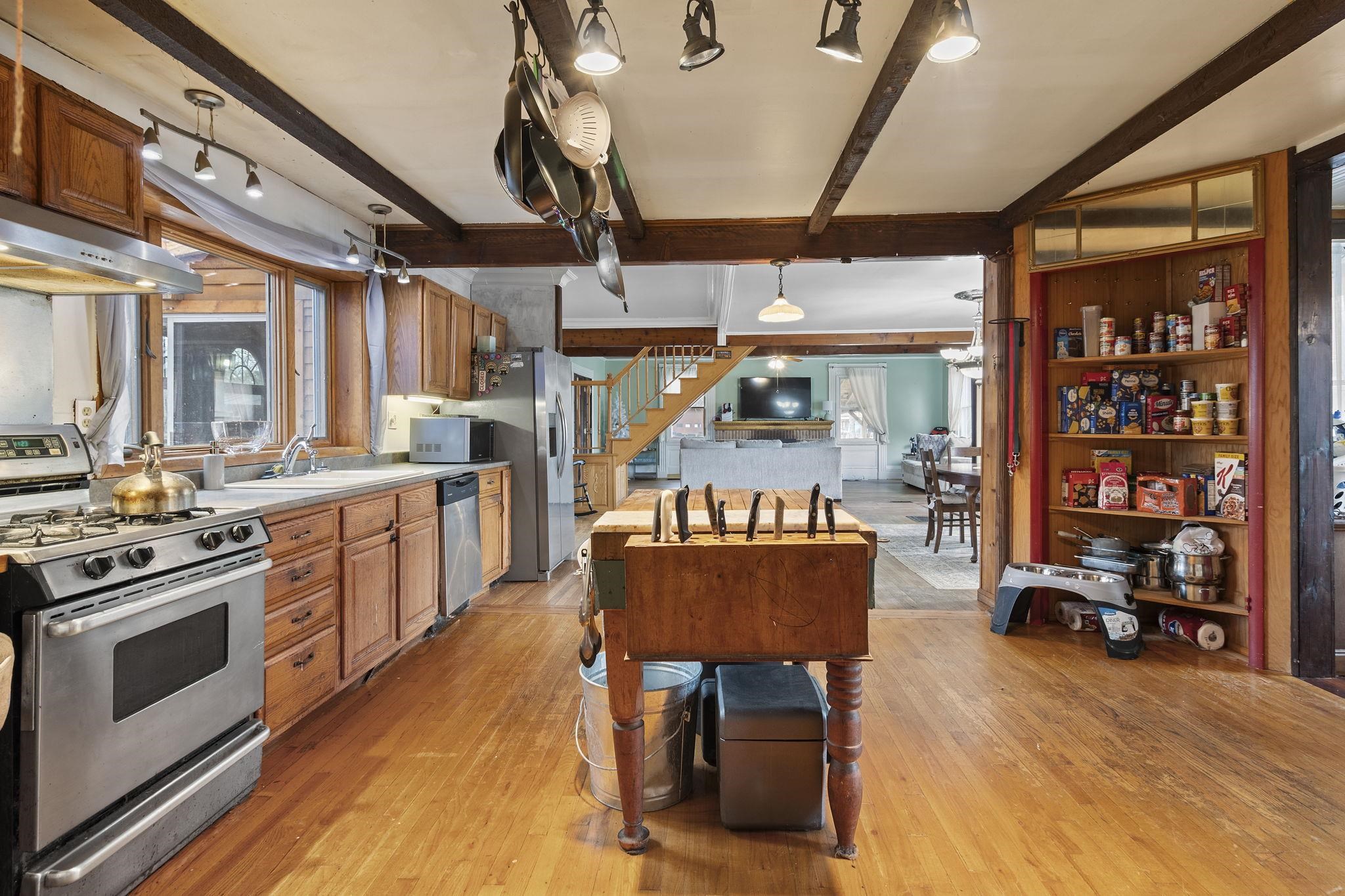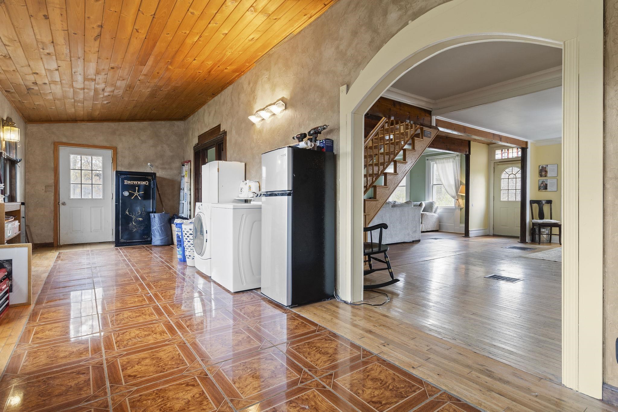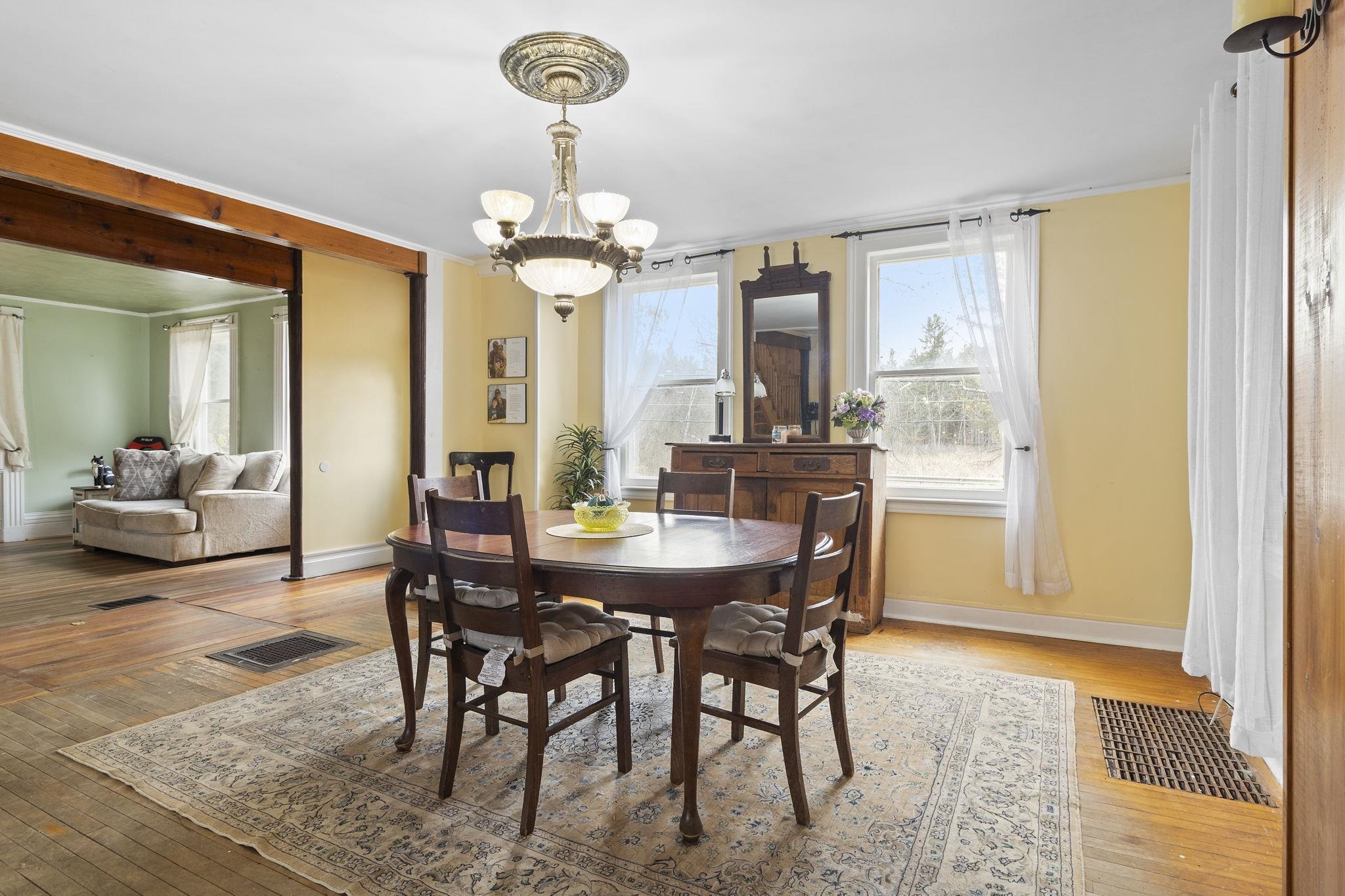 Welcome to the market, this charming farmhouse style home located on the outskirts of Canton, NY on 53.9 acres of land with a one car detached garage, a paved wraparound driveway and a multi-story barn equipped with water and electric. This home features just over 2,000 sq ft of living space with a first-floor open floor plan that offers a main floor bedroom, laundry space, the convenience of a main floor bathroom and a living room fireplace giving a cozy atmosphere. The upstairs floorplan has two bedrooms with a full bathroom, featuring a jetted bathtub. The land offers privacy and an abundance of hunting, fishing, and nature trails all in your backyard! The pond can be enjoyed year around with winter ice skating and ice fishing. The summer months enjoy a well-stocked pond of trout, bass, and perch for fishing leisure. For the hunting enthusiasts, your backyard is a haven for wildlife. Enjoy the beaver pond, goose, duck and deer hunting! This home is located in the Canton Central School District. Offering a unique blend of recreation and convenience, call today!