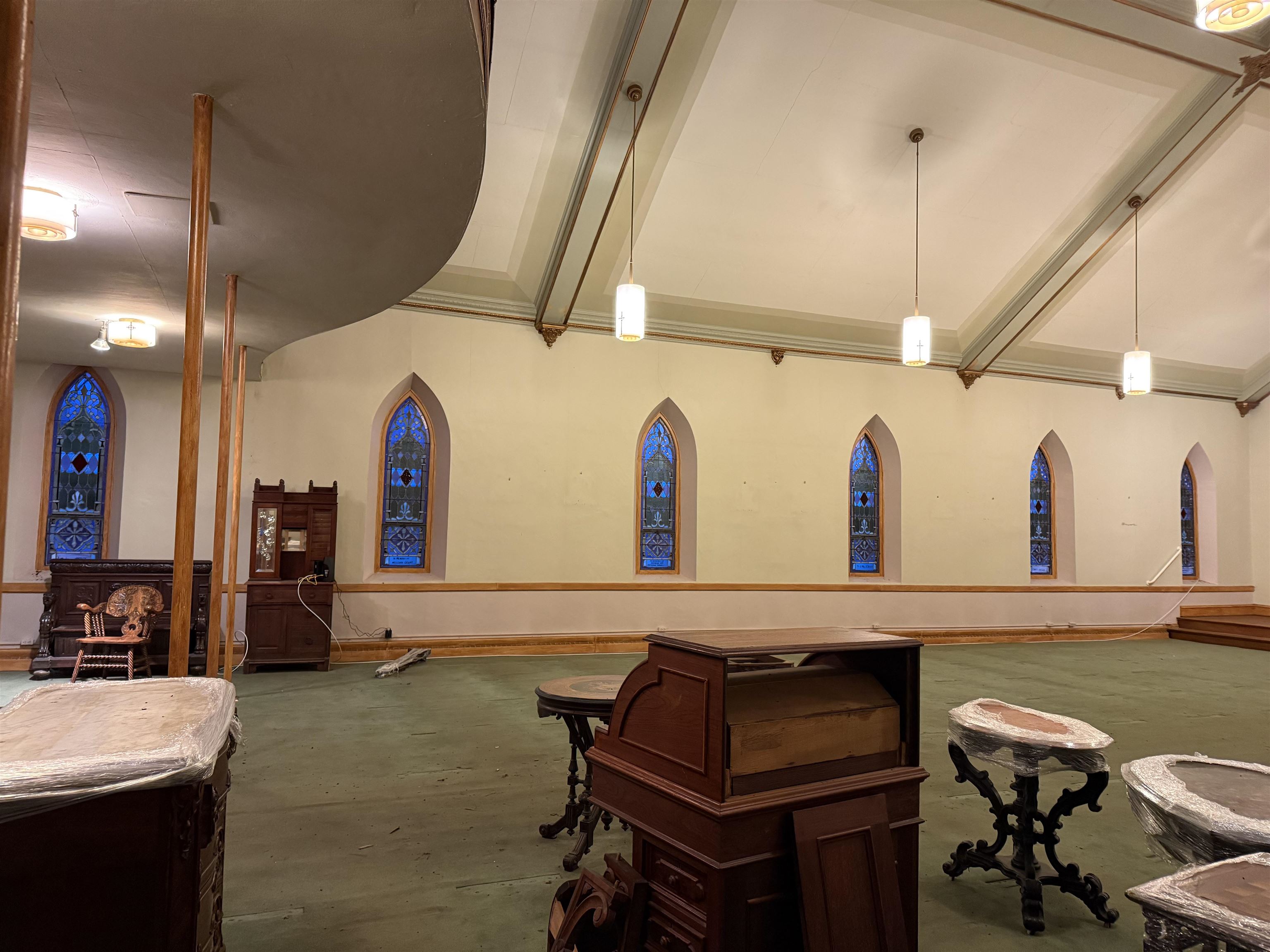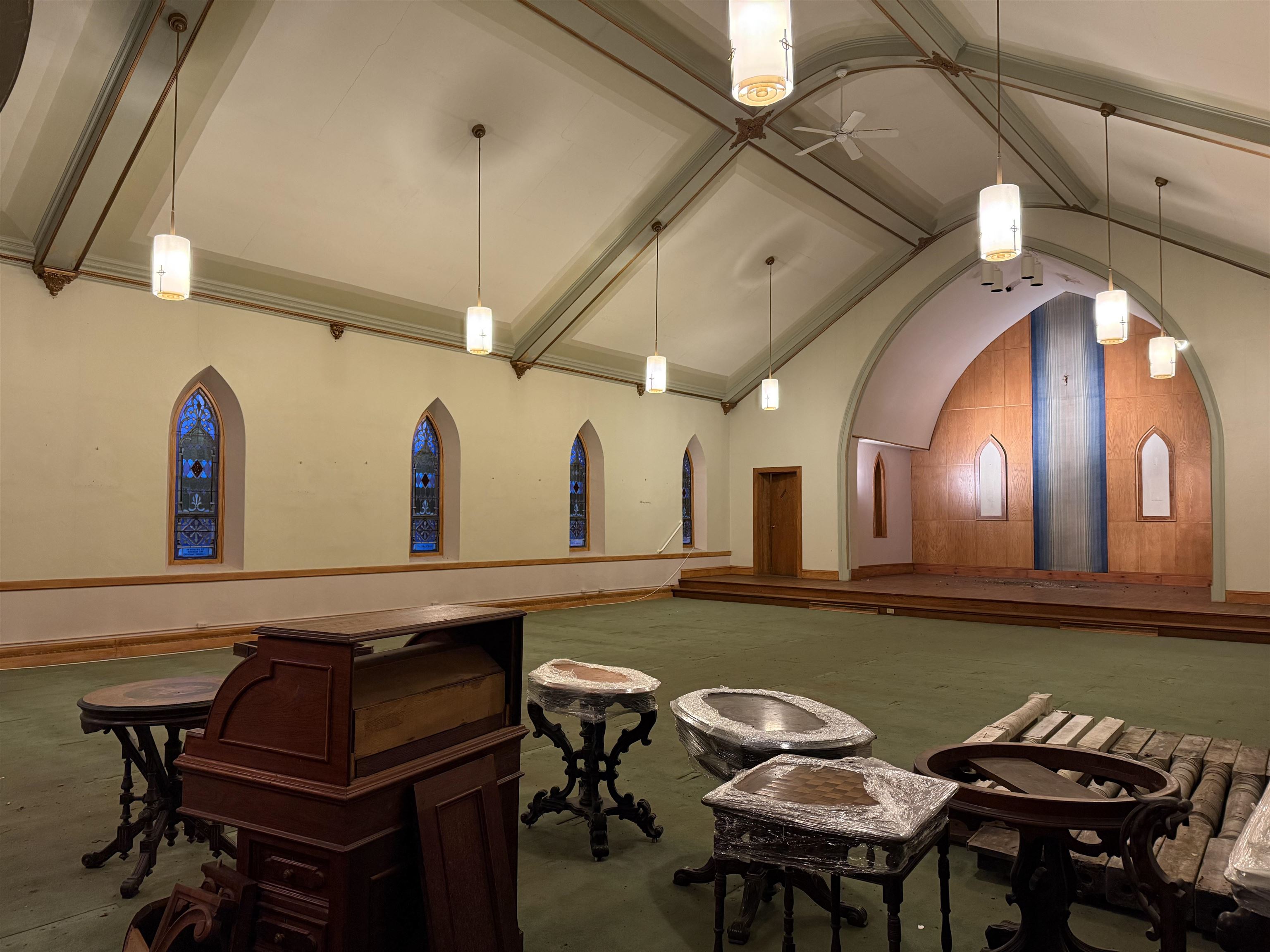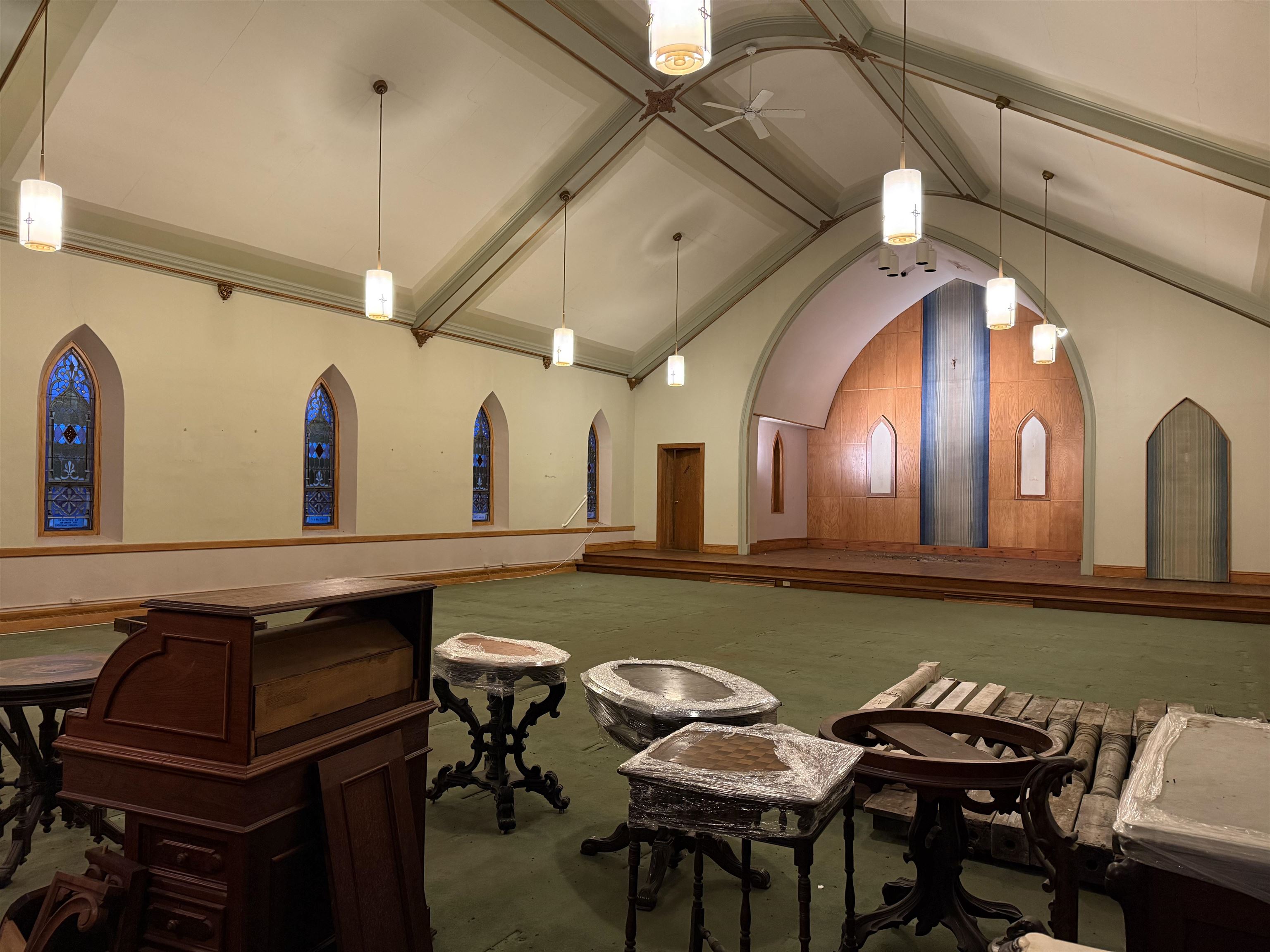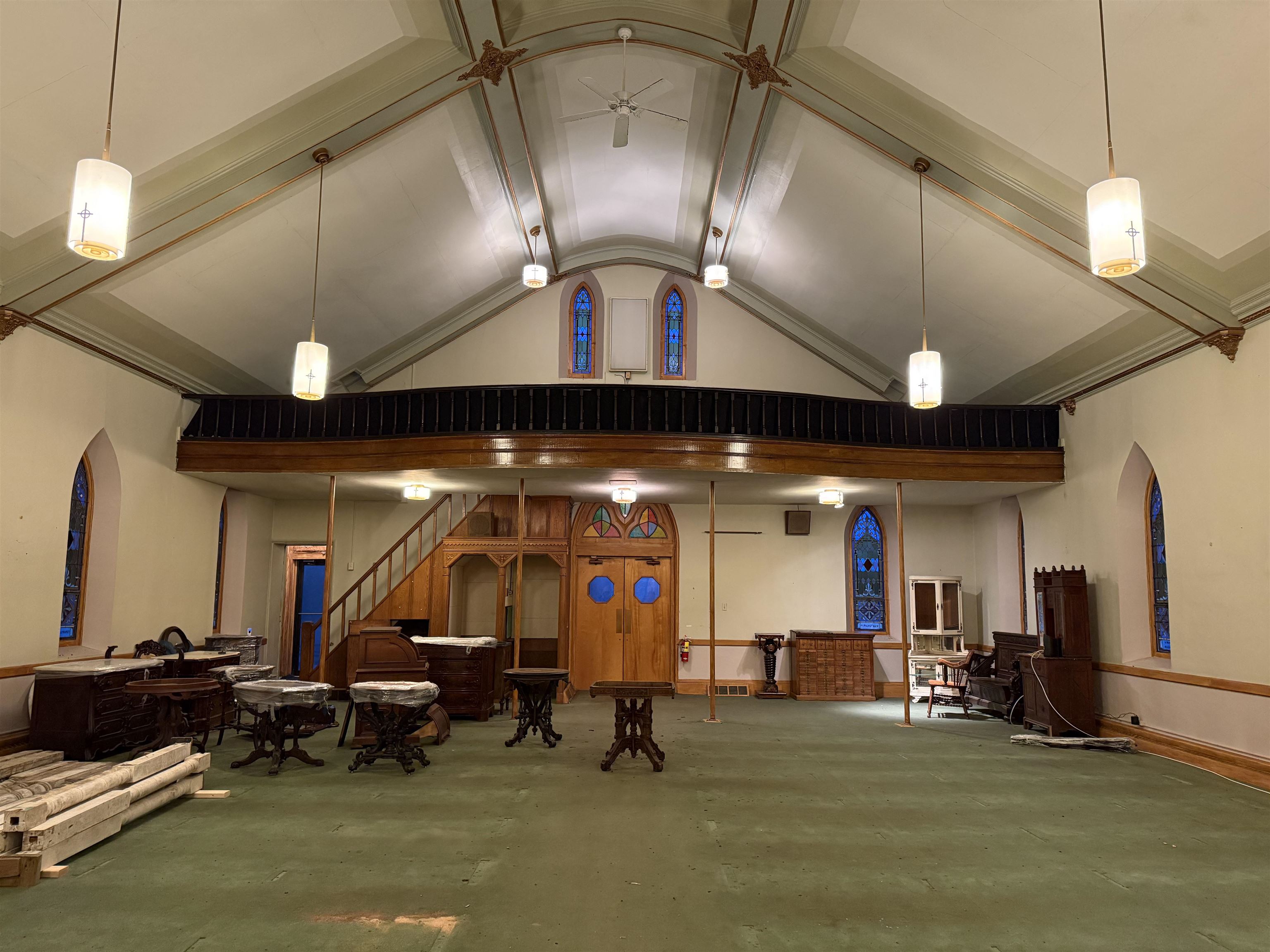 THIS GORGEOUS 19TH CENTURY CHURCH COULD BE YOUR NEXT GREAT OPPORTUNITY! Whether you envision a charming event venue, a unique home, a creative office space, or something entirely your own, this property offers incredible potential. Featuring beautiful stained-glass windows, a brick and stone exterior, and classic architectural details, the church exudes timeless character. Inside, you’ll find a spacious main hall, a loft area, and a few rooms in the back—perfect for offices, storage, or living quarters. The property sits on 1.7 acres with a generous yard that even extends across the road, offering plenty of outdoor space. Don’t miss your chance to own a piece of local history. Schedule your showing today!