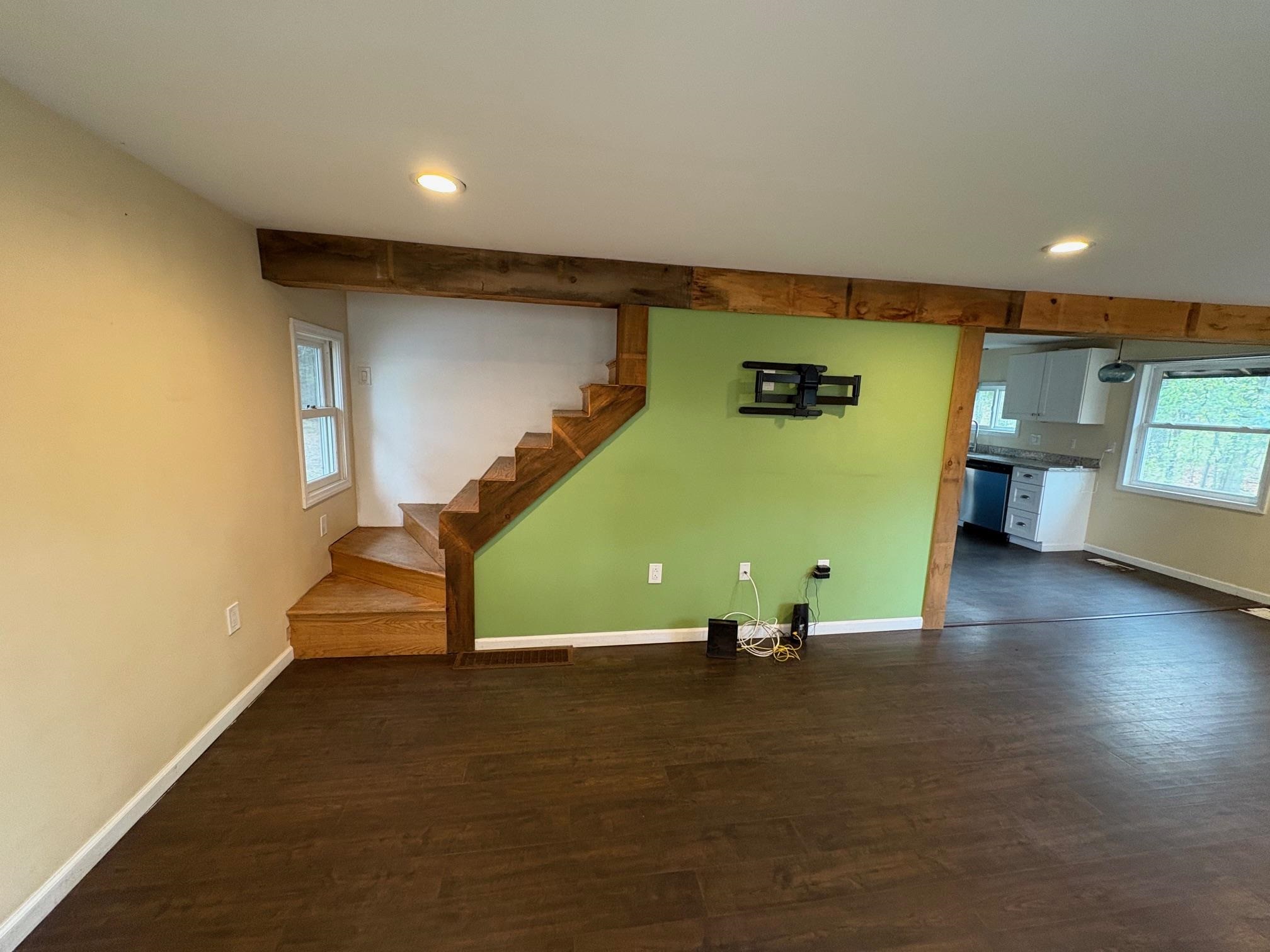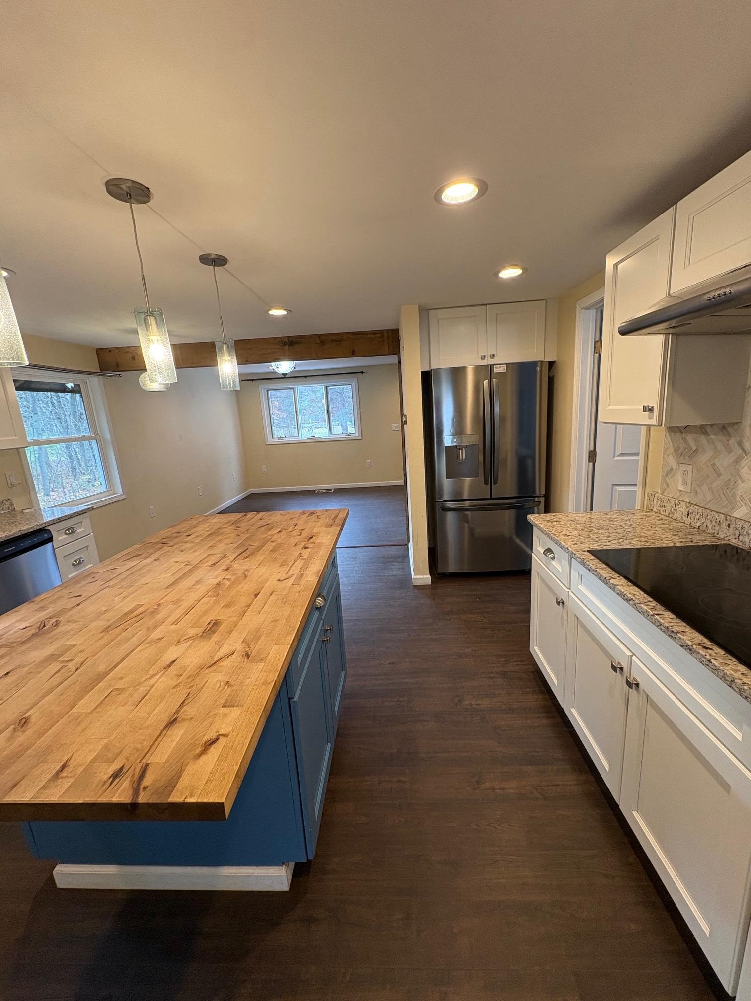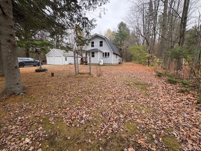Welcome to this charming two story three bed, one bath home nestled in the trees on a 3.68 acre lot. You enter the house through a charming mudroom, which opens into a large living area with plenty of natural light. The lovely, updated kitchen features stone countertops, a beautiful farm house sink, pot filler over the stove, wall oven, stainless steel appliances, and ample storage. The butcher block island offers storage and additional workspace. The primary bedroom features a French door leading to a large deck and two large closets for storage. The bathroom has a large stone walk-in shower with a rainfall showerhead and jets. The stackable washing machine and dryer are conveniently located in the bathroom. The garage features new doors and plenty of space for both vehicles and a work area. This home is a must-see! Contact your agent for a showing today.