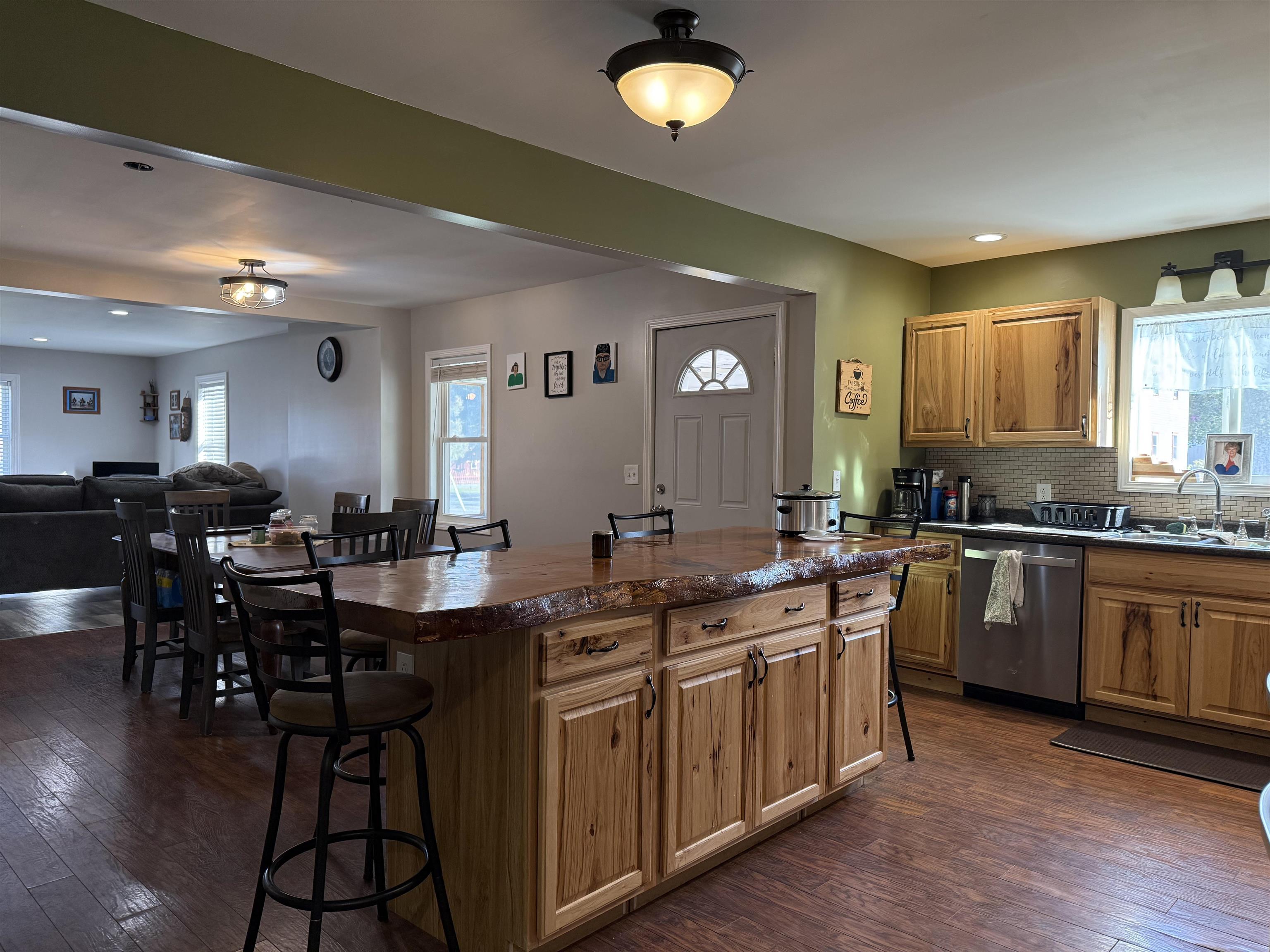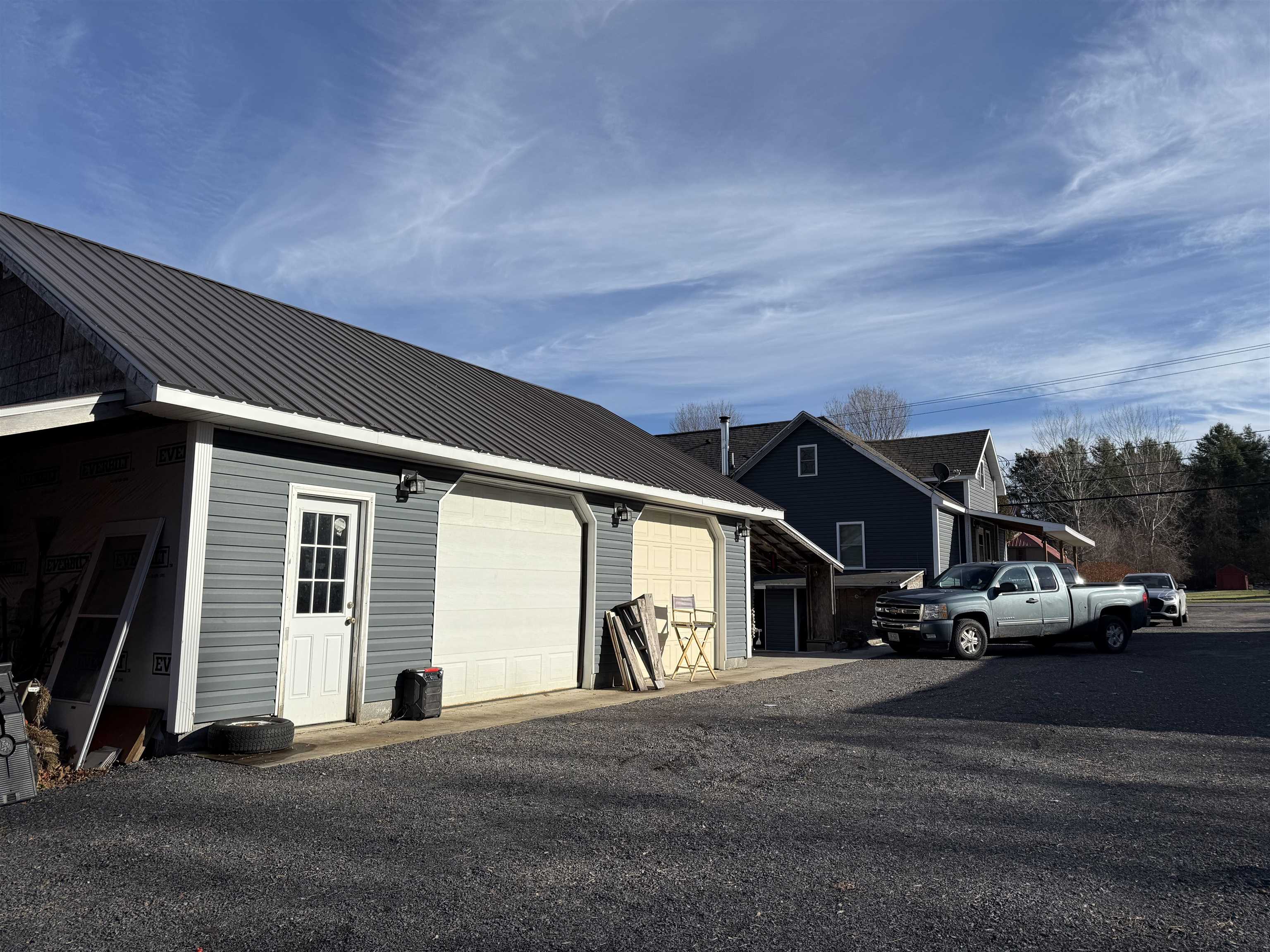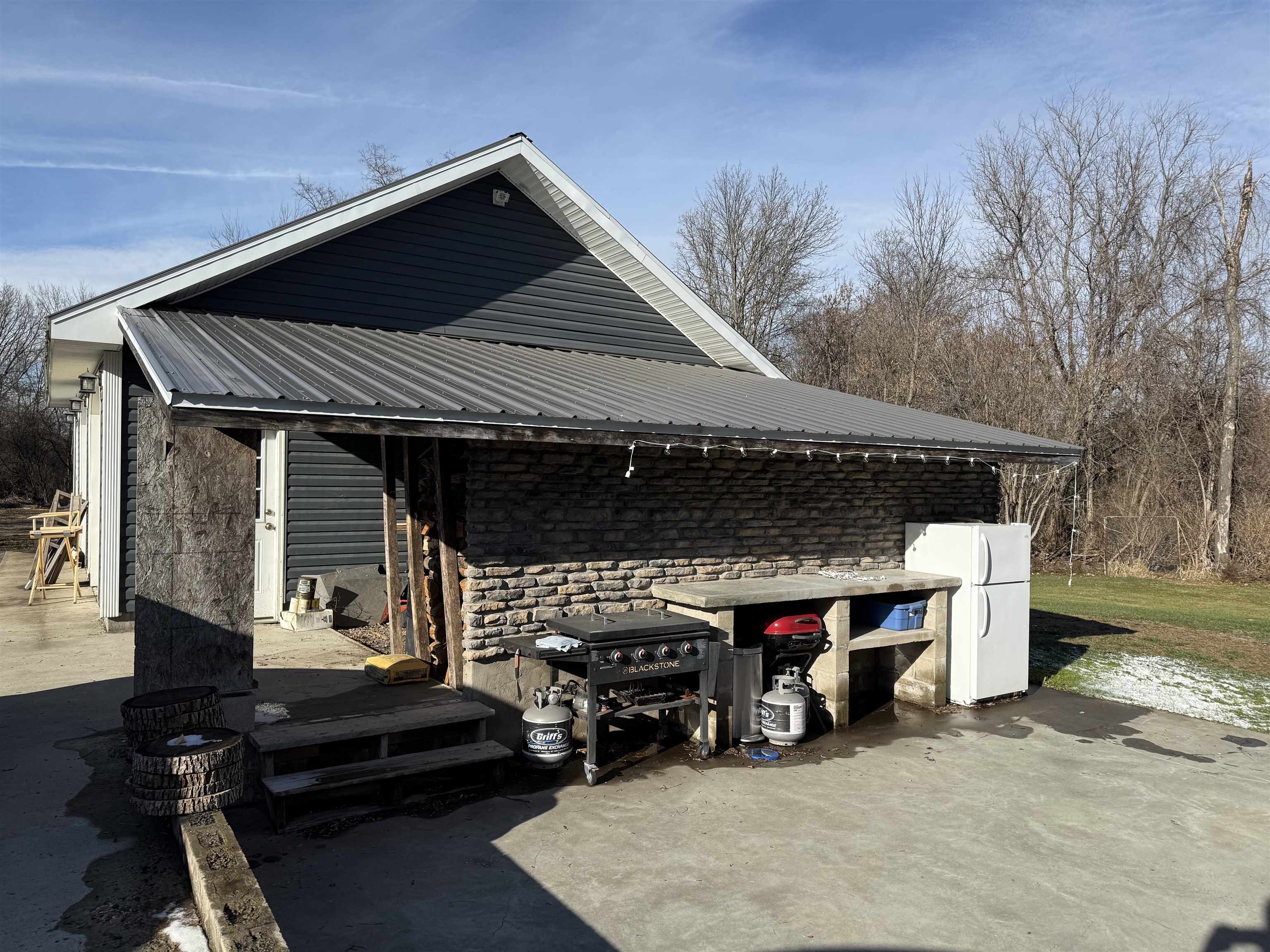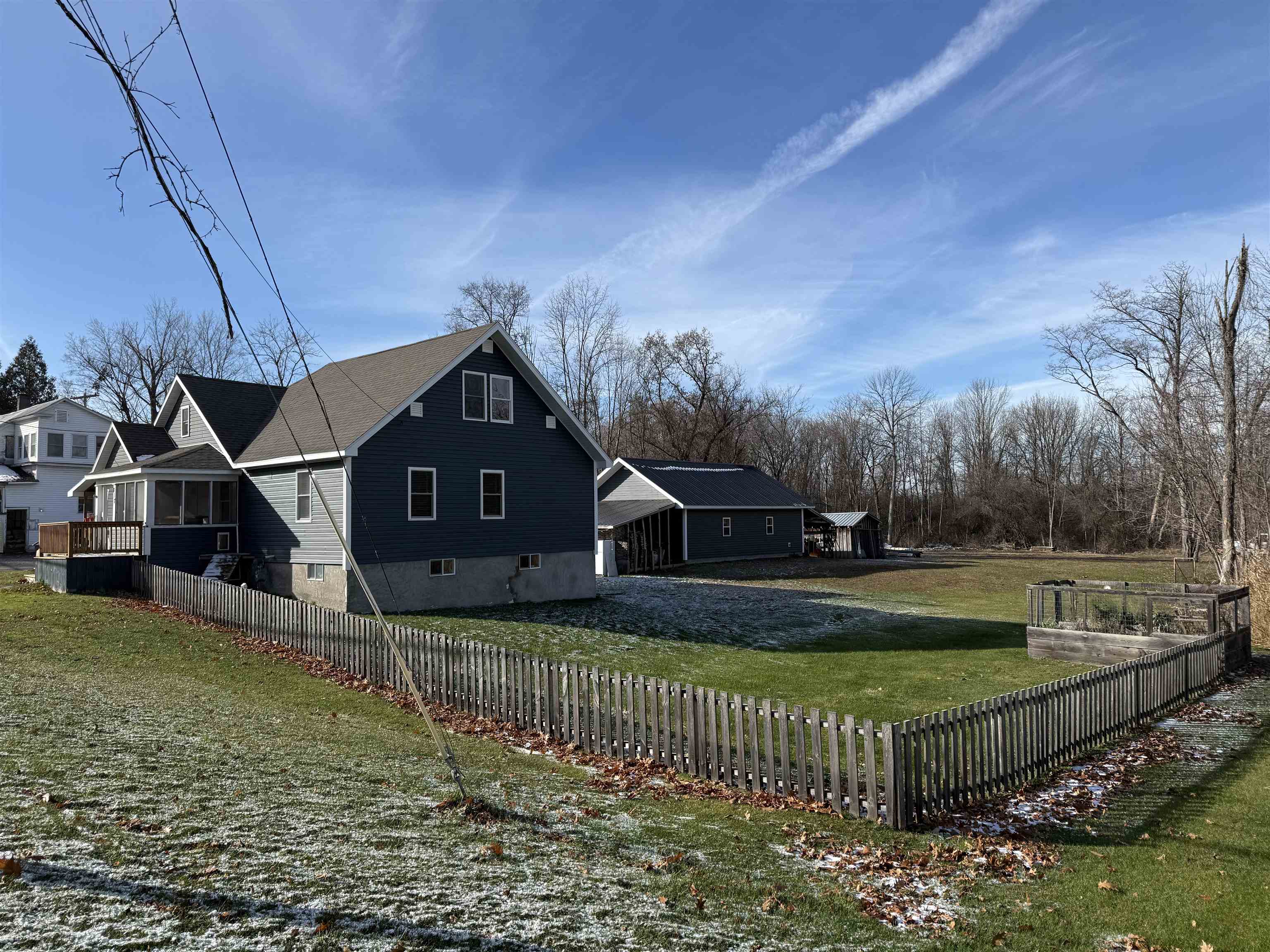 WELCOME TO YOUR NEW HOME! This beautifully remodeled 4 bedroom, 3.5 bathroom home offers modern comfort, abundant space, and wonderful outdoor living. Move-in ready, it features an open-concept main level, an outdoor kitchen patio space, a covered porch, a screen porch, a spacious yard, and an oversized, insulated 2-car detached garage with additional storage. Step inside through the side entry to a warm and inviting kitchen complete with hickory cabinets, stainless steel appliances, and a large slab-wood island with seating. The kitchen flows into a generous dining room, perfect for gatherings, and then into a bright, spacious living room filled with natural light. The main floor also includes a primary suite featuring two walk-in closets and a stunning primary bathroom with a large tiled shower (two shower heads, shelves, and a bench), a double vanity, and an oversized mirror. A second full bathroom adds convenience on this level. A staircase off the living room leads to a potential in-law suite complete with its own bedroom, walk-in closet, and a full bathroom with a tiled shower. A second staircase leads to two additional bedrooms and a half bathroom. The basement offers even more living space, with a gym area, a large game room or second living room, a woodstove, laundry area, and a utility room housing the natural gas boiler/water heater. Outdoor living is exceptional here: relax on the screened front porch, unwind on the covered side porch, or entertain on the outdoor kitchen patio featuring a stone wall and room for dining. The oversized, insulated two-car garage provides ample space for a workshop, lawn equipment, and more, with lean-tos on both sides for added convenience. A separate shed offers extra storage, and the spacious backyard provides plenty of room for recreation and activities. This beautifully remodeled home truly has it all and is ready for new owners! Schedule your showing today!