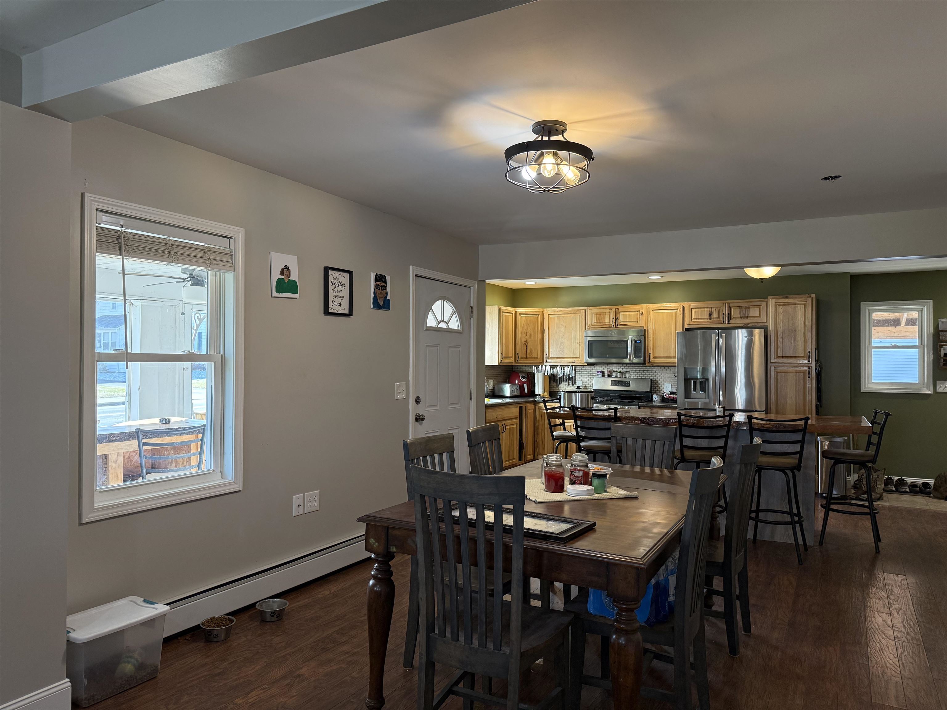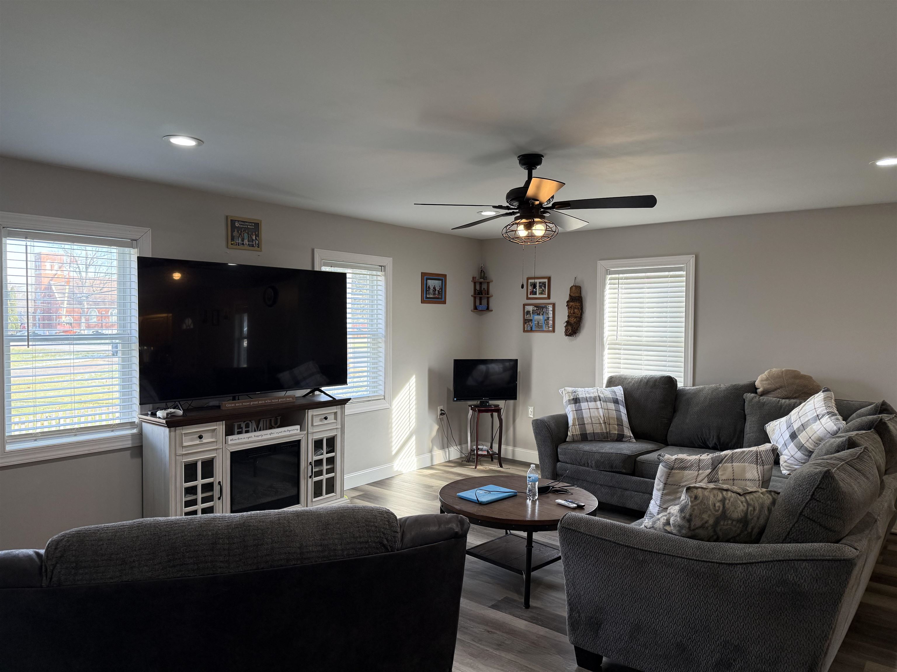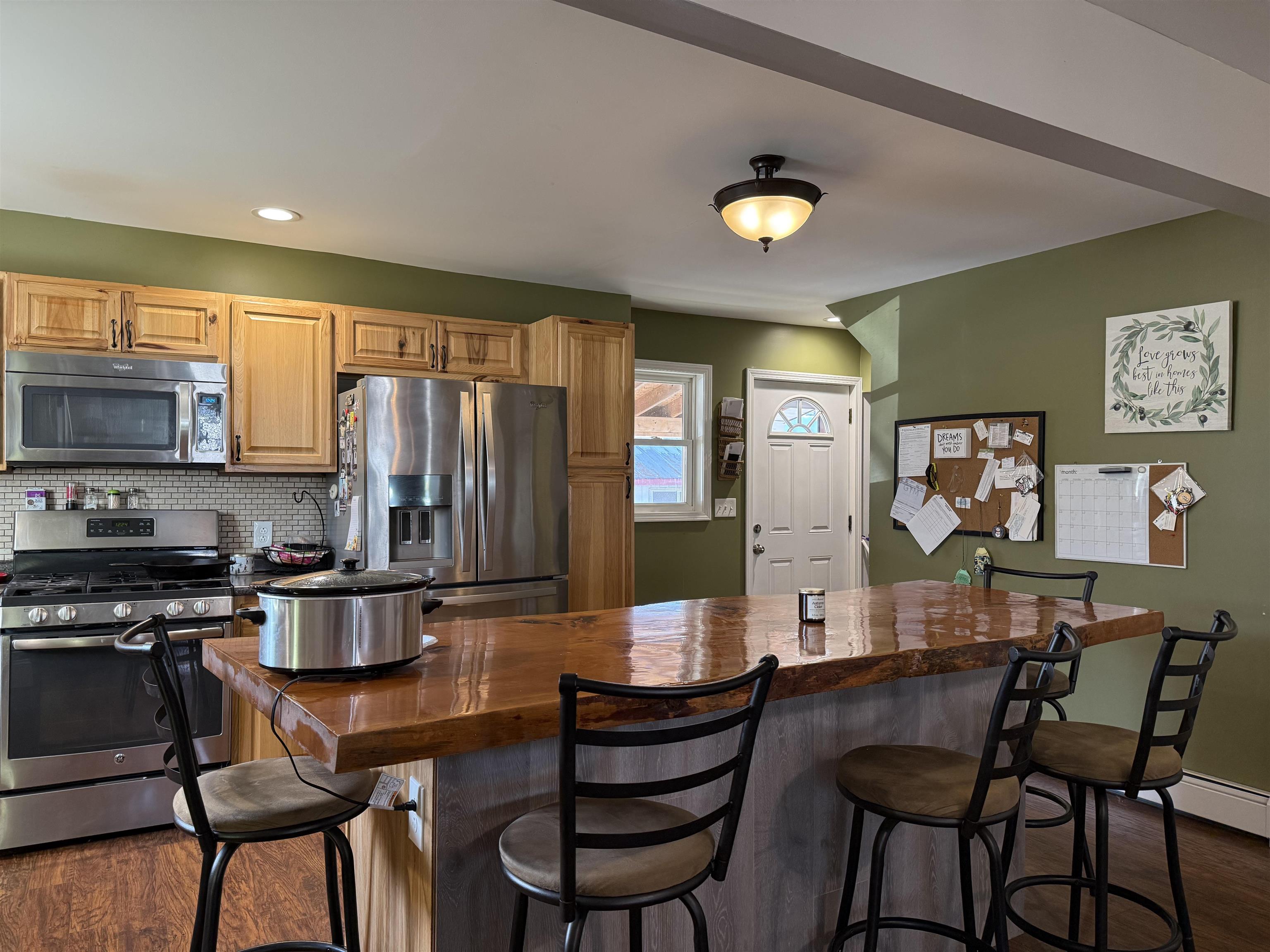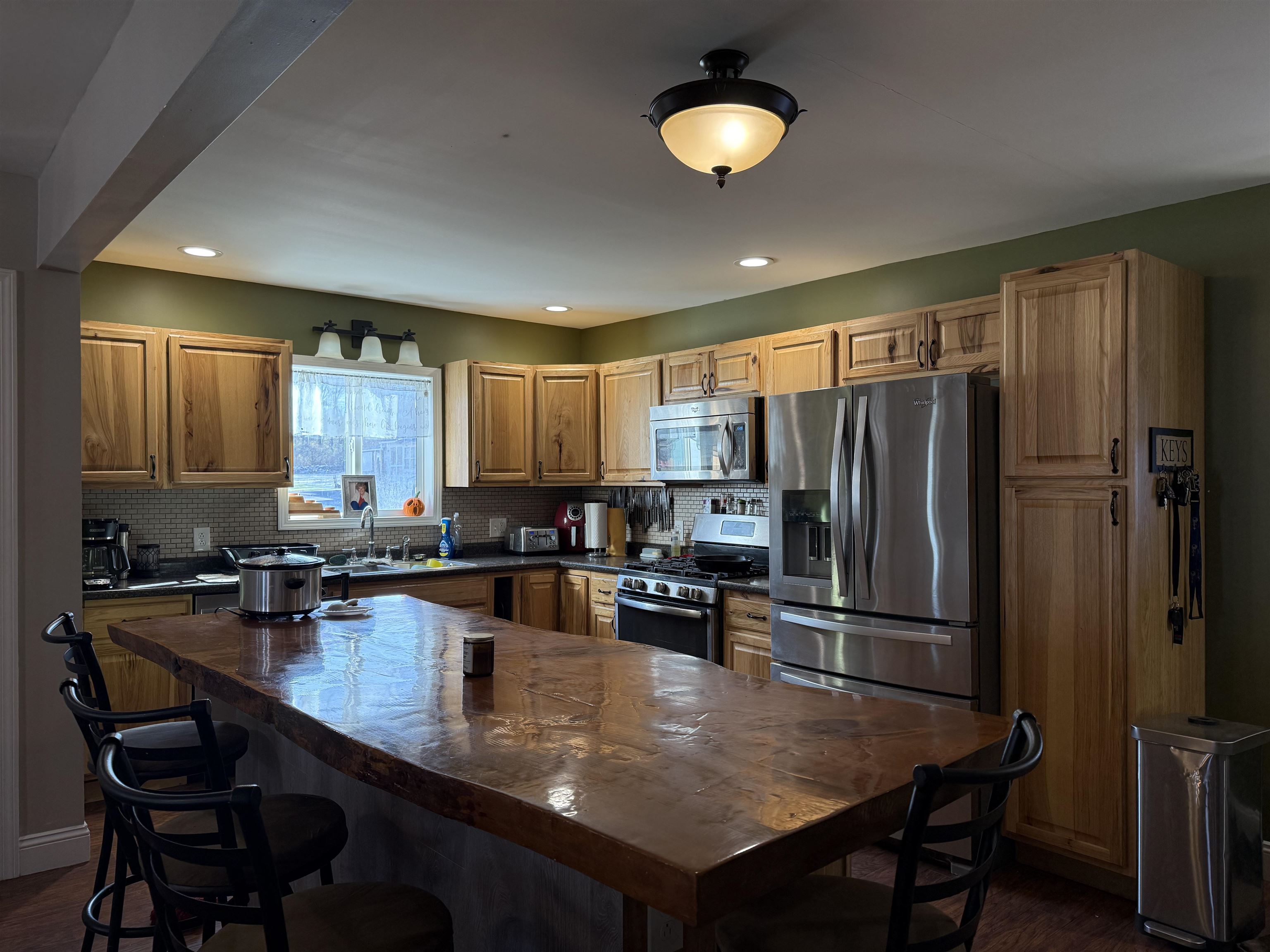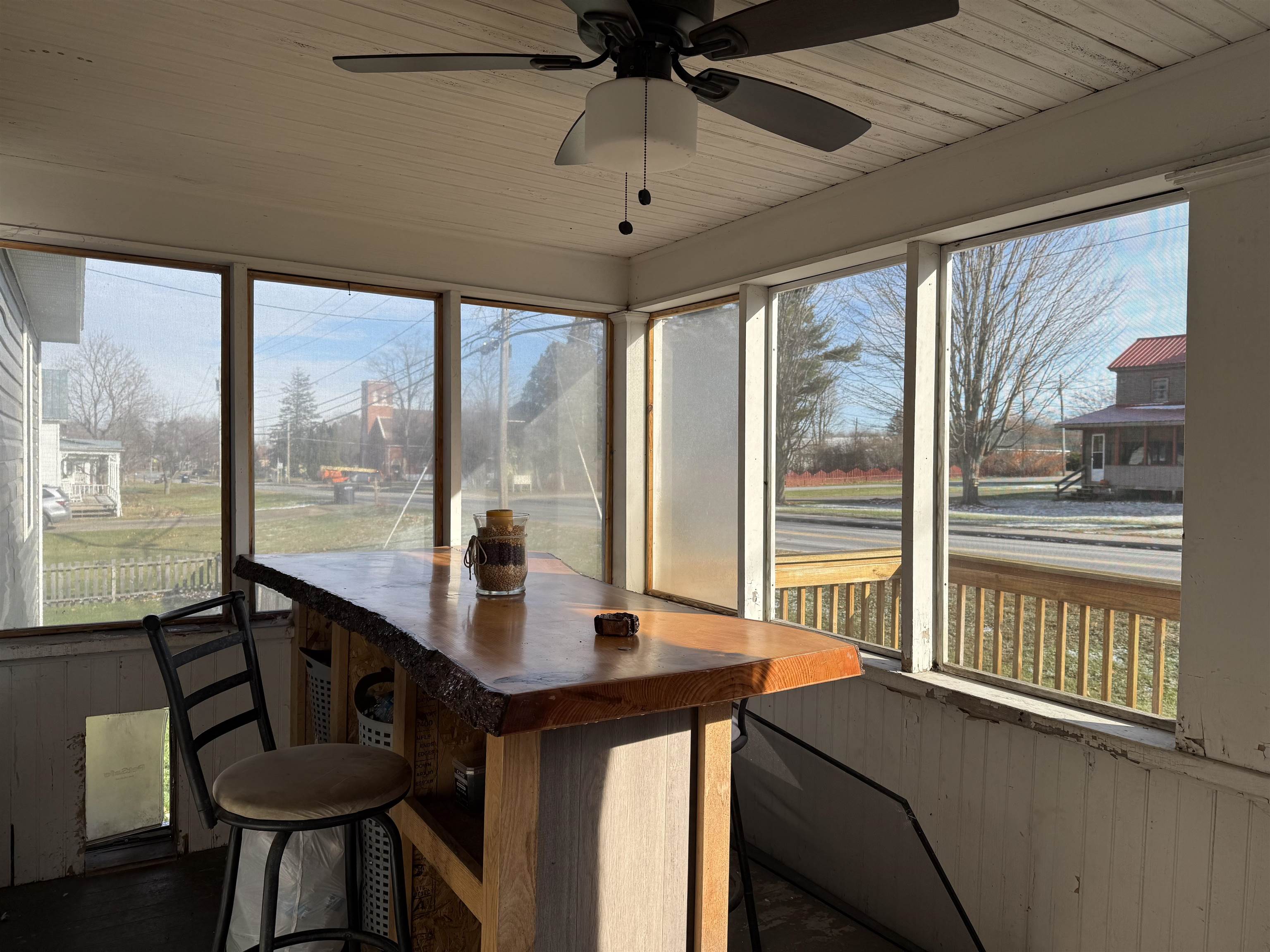WELCOME TO YOUR NEW HOME! This beautifully remodeled 4 bedroom, 3.5 bathroom home offers modern comfort, abundant space, and wonderful outdoor living. Move-in ready, it features an open-concept main level, an outdoor kitchen patio space, a covered porch, a screen porch, a spacious yard, and an oversized, insulated 2-car detached garage with additional storage. Step inside through the side entry to a warm and inviting kitchen complete with hickory cabinets, stainless steel appliances, and a large slab-wood island with seating. The kitchen flows into a generous dining room, perfect for gatherings, and then into a bright, spacious living room filled with natural light. The main floor also includes a primary suite featuring two walk-in closets and a stunning primary bathroom with a large tiled shower (two shower heads, shelves, and a bench), a double vanity, and an oversized mirror. A second full bathroom adds convenience on this level. A staircase off the living room leads to a potential in-law suite complete with its own bedroom, walk-in closet, and a full bathroom with a tiled shower. A second staircase leads to two additional bedrooms and a half bathroom. The basement offers even more living space, with a gym area, a large game room or second living room, a woodstove, laundry area, and a utility room housing the natural gas boiler/water heater. Outdoor living is exceptional here: relax on the screened front porch, unwind on the covered side porch, or entertain on the outdoor kitchen patio featuring a stone wall and room for dining. The oversized, insulated two-car garage provides ample space for a workshop, lawn equipment, and more, with lean-tos on both sides for added convenience. A separate shed offers extra storage, and the spacious backyard provides plenty of room for recreation and activities. This beautifully remodeled home truly has it all and is ready for new owners! Schedule your showing today!