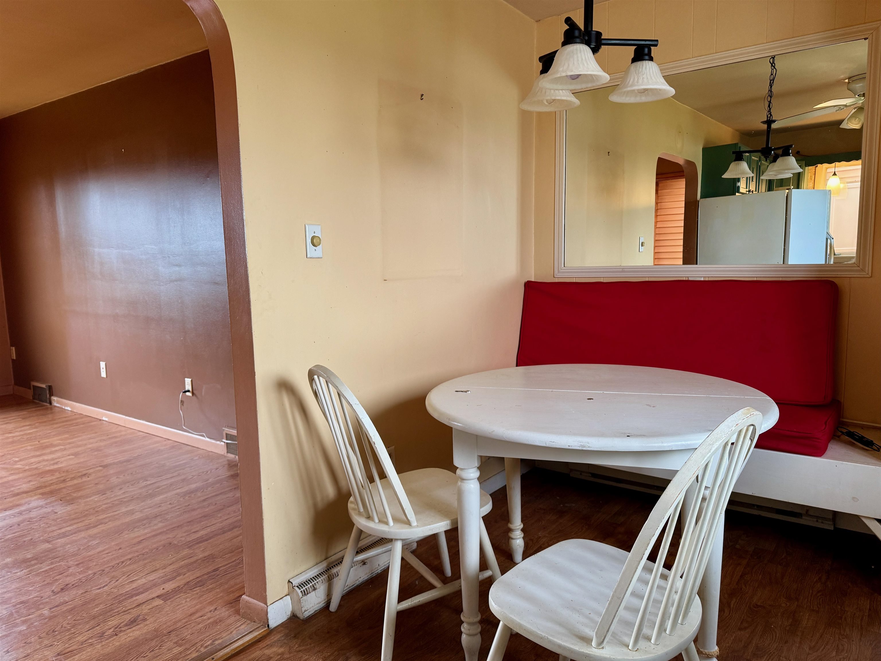 Affordable living for an energetic homebuyer. Located in the Massena school and electric districts, this ranch-style home has living room; eat-in kitchen with pretty blue cabinets and tiled backsplash; 3 bedrooms (one with jetted tub), a full bath, and sunroom with propane stove, open to living room. Laundry available in both the sunroom and full basement. Excellent storage in the garage (double-deep with addition) and storage building.