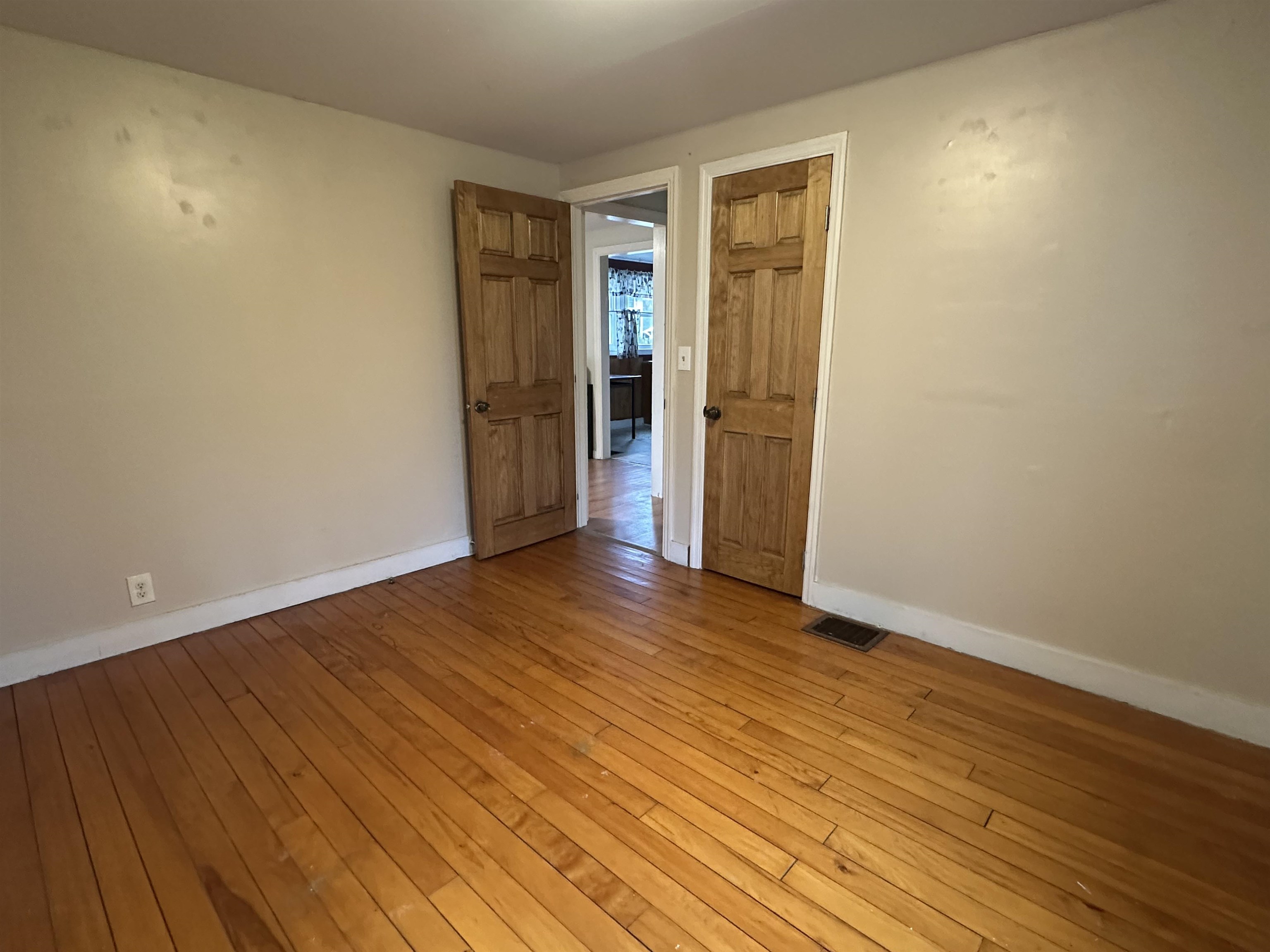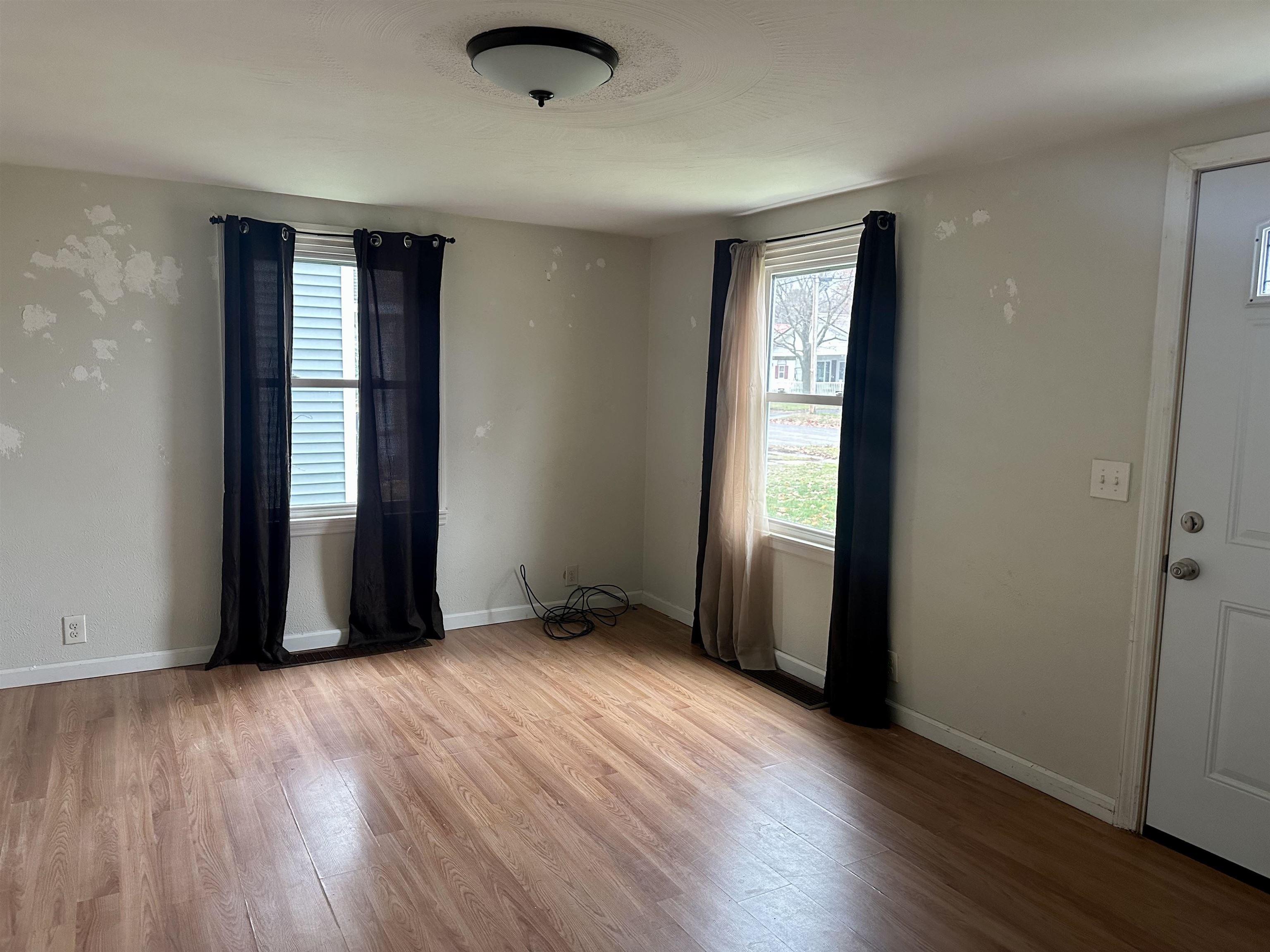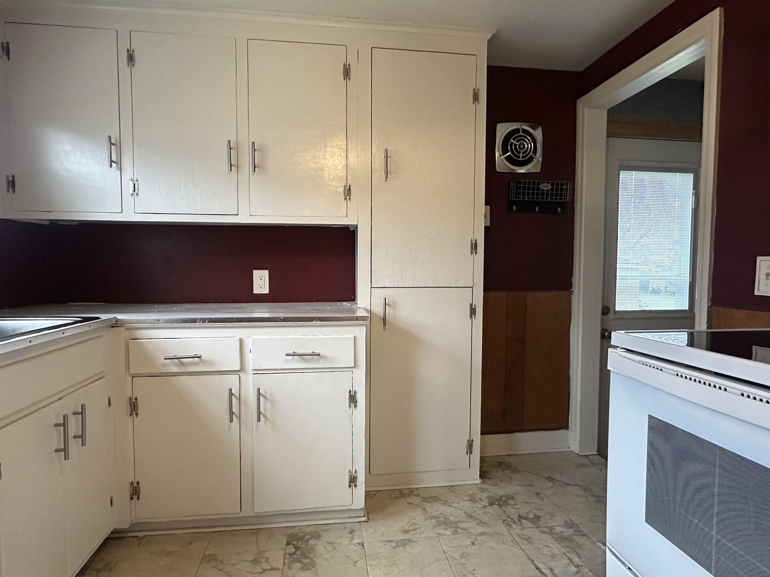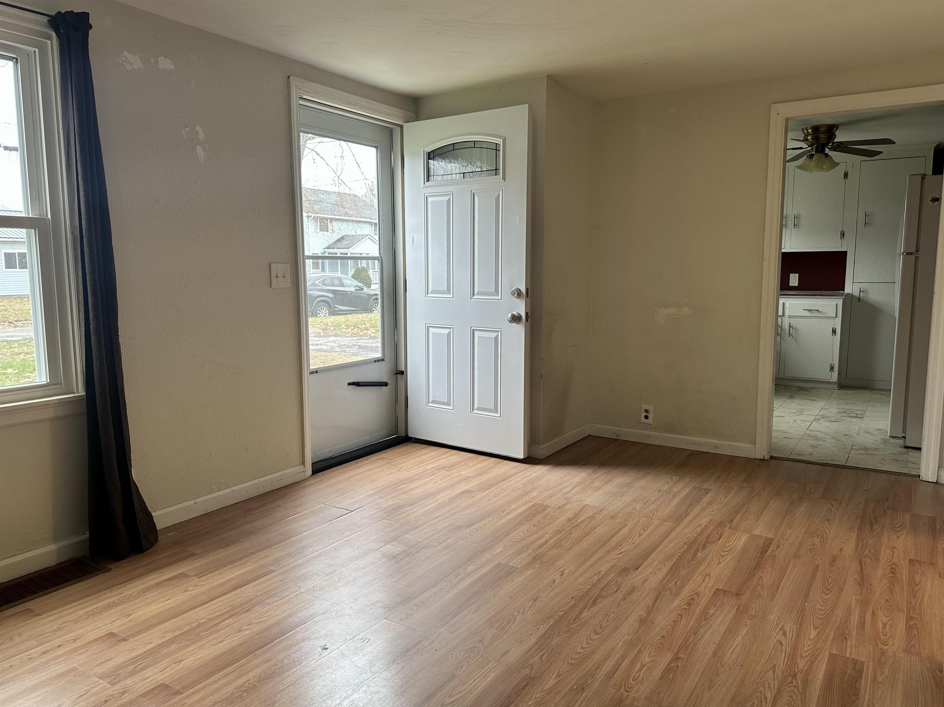 Move-In Ready! This charming 2-bedroom, 1-bath home blends classic character with practical updates. The layout features a nicely-sized family room with coat closet. The cheerful kitchen has a smooth-top electric stove, refrigerator, tile flooring and lots of natural light. It is conveniently laid out to provide space for a small kitchen table and chairs. Both bedrooms have hardwood flooring and closets with 6-panel wood doors. The full bath has a tub/shower and vanity with storage. The full basement offers great storage and includes a washer, dryer, and laundry sink, along with an upgraded 200-amp electrical service. Outside, a detached single-car garage provides extra flexibility. The home has a newer metal roof and the yard is great for pets, gardening, or outdoor living.