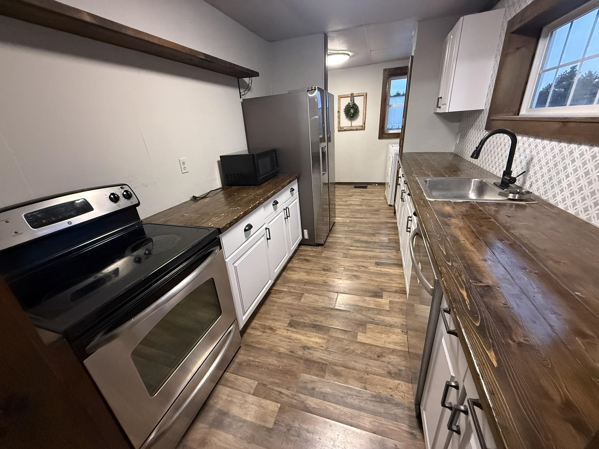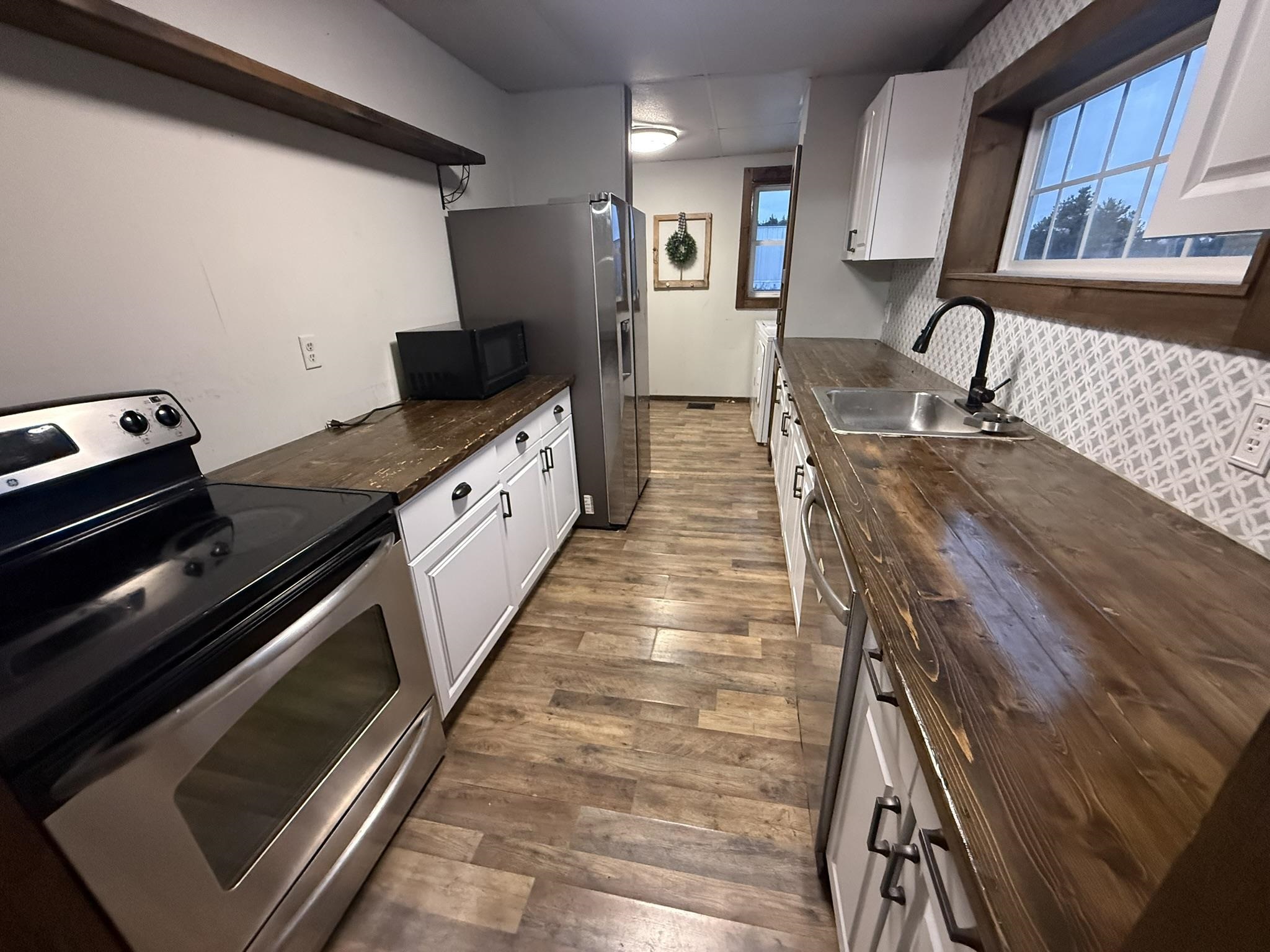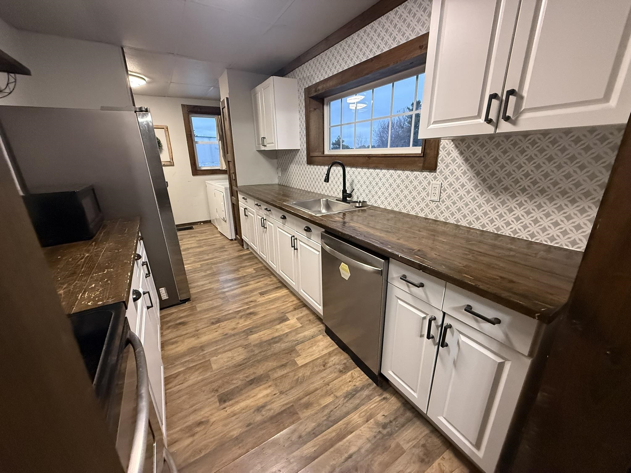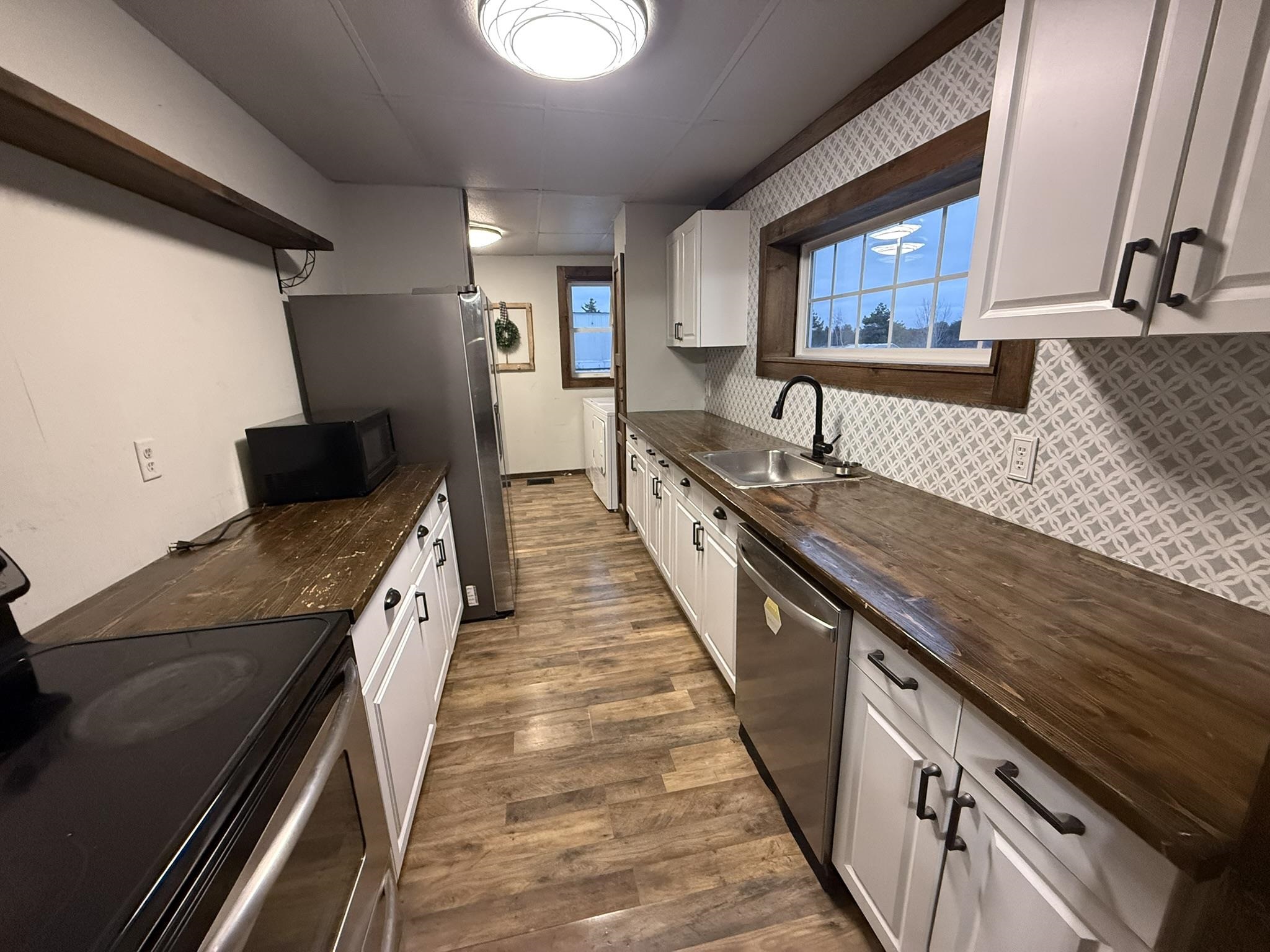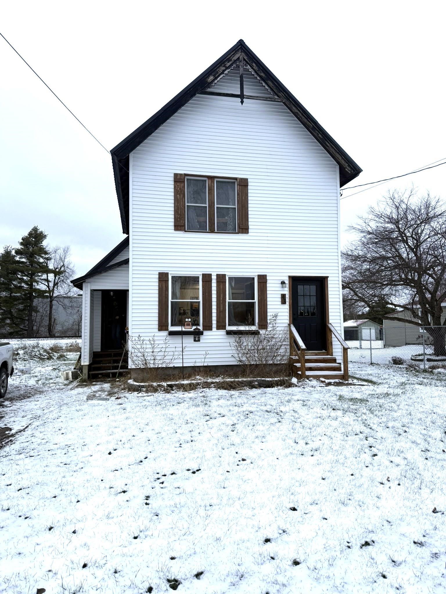 Move in ready...affordable...spacious...all this and more can be found at 43 Scotch Settlement Road in Gouverneur. This property includes two lots with a spacious backyard, a detached garage/storage building, and a renovated home. There is an entryway/mud room perfect for coats and boots. This area opens to the spacious living room with a built-in electric fireplace. The galley-style kitchen has been updated to include plenty of cabinets, a beautiful backsplash, stainless steel appliances, and a lovely wood countertop. The laundry area is adjacent to the kitchen for your convenience. There is also a first-floor, full bathroom that has been updated, and a first-floor bedroom or office, depending on your needs. Upstairs, you will find a spacious primary bedroom with a vanity area and large closets, along with another large bedroom with an oversized cedar closet. The upstairs also includes a "bonus area" that could be used as a play area, library, or whatever you needed it for. The home features Village water, Verizon Fios for internet, and newer windows. Call today to schedule your private tour of this lovely home!