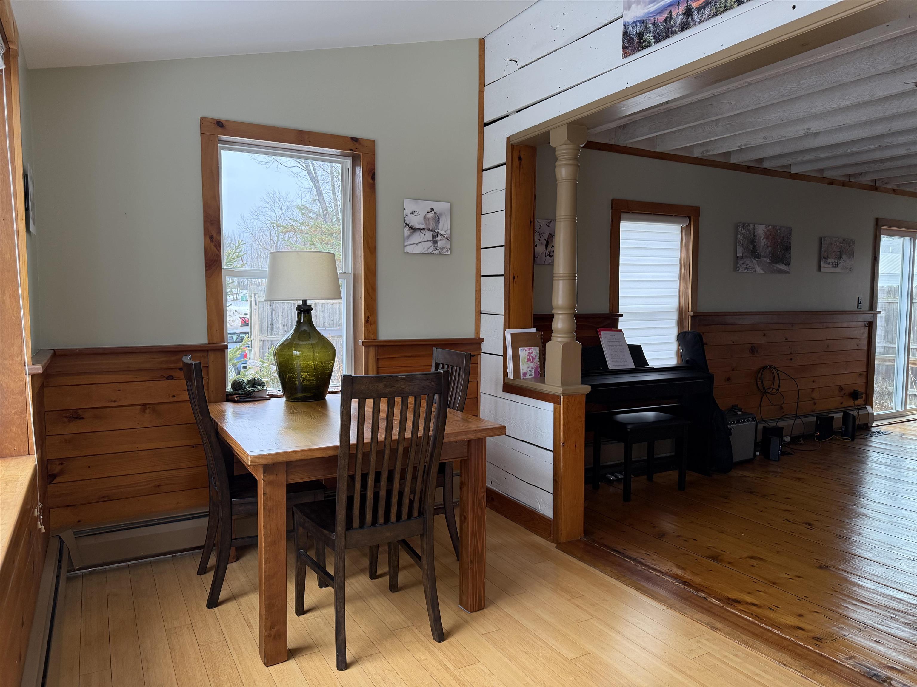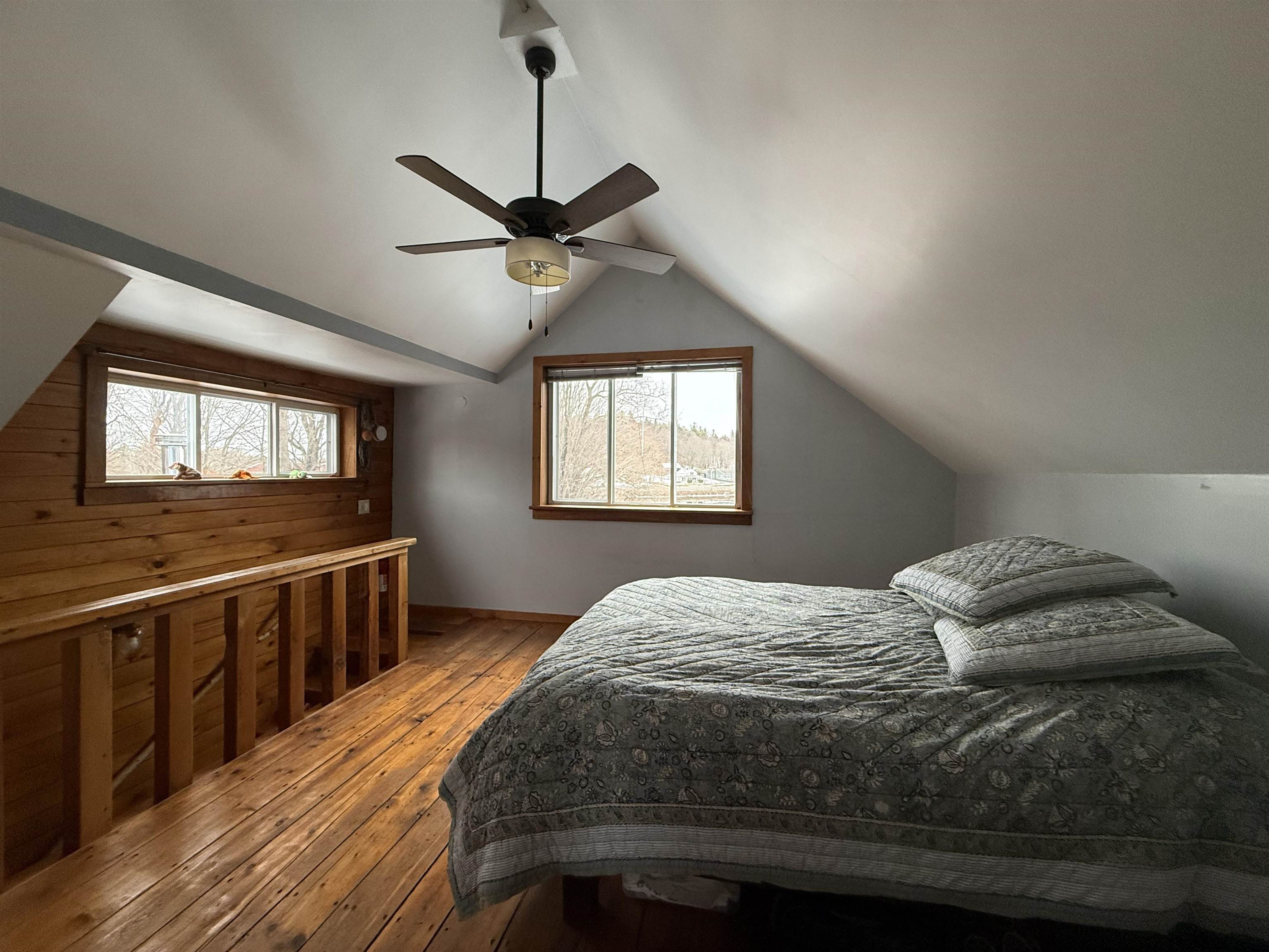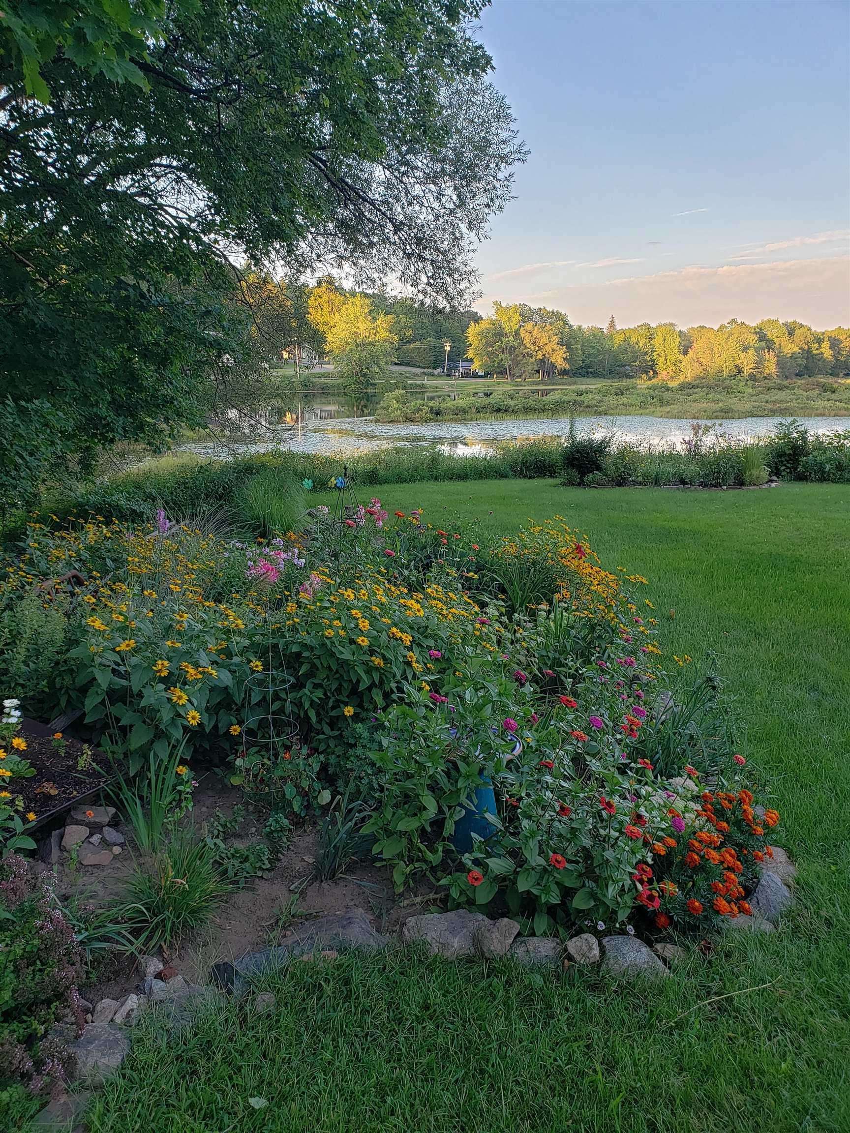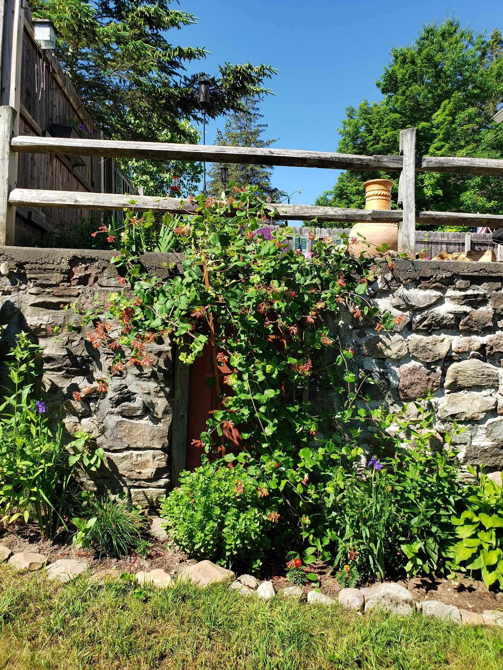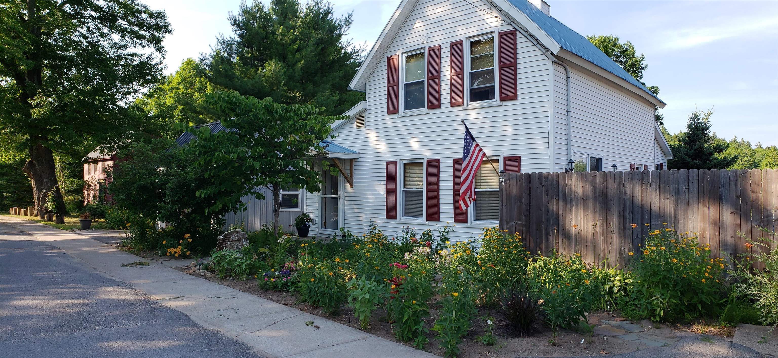 This beautifully renovated circa 1867 home offers a perfect blend of historic charm and modern amenities. The galley kitchen has all the amenities and is open to an informal dining and sitting area featuring cherry and maple floors with a cozy wood stove creating a warm and inviting atmosphere. The French doors lead out to a spacious deck overlooking 87 feet of water frontage on the Raquette River. The living room has tongue and groove pine walls and an open ceiling offering a cottage style design. This space boasts wood pegged flooring that flows seamlessly into the dining area with sliding glass doors to a bi-level deck, perfect for outdoor living and entertaining. Upstairs, the ensuite primary bedroom boasts a Palladian window with water views, a walk-in closet, a dressing area, and a luxurious walk-in tiled shower. The walk-out basement includes a second bedroom or den, a full bath, a mechanical room/workshop, and a laundry area. Outdoor living spaces abound, with a bi-level deck, patios, and a beautifully landscaped yard offering panoramic and serene river views. Additional features include: in-floor radiant heat in the entryway and bathrooms, a detached two-car garage, and barn-style potting shed/storage. This charming and unique property is a rare find for those seeking historic character, modern comfort, and breathtaking waterfront views. Here...you have it all!! Your waterfront retreat awaits!!