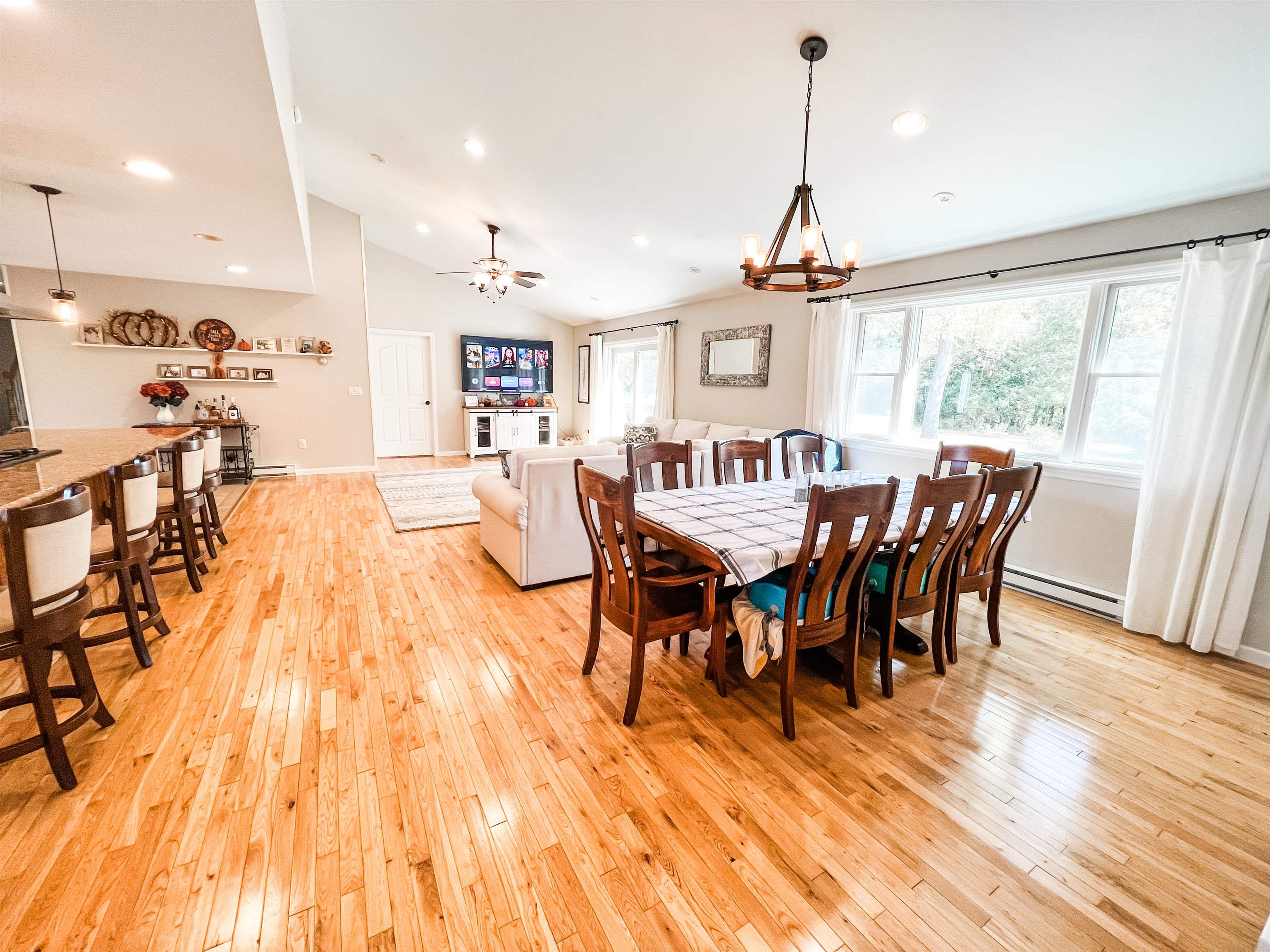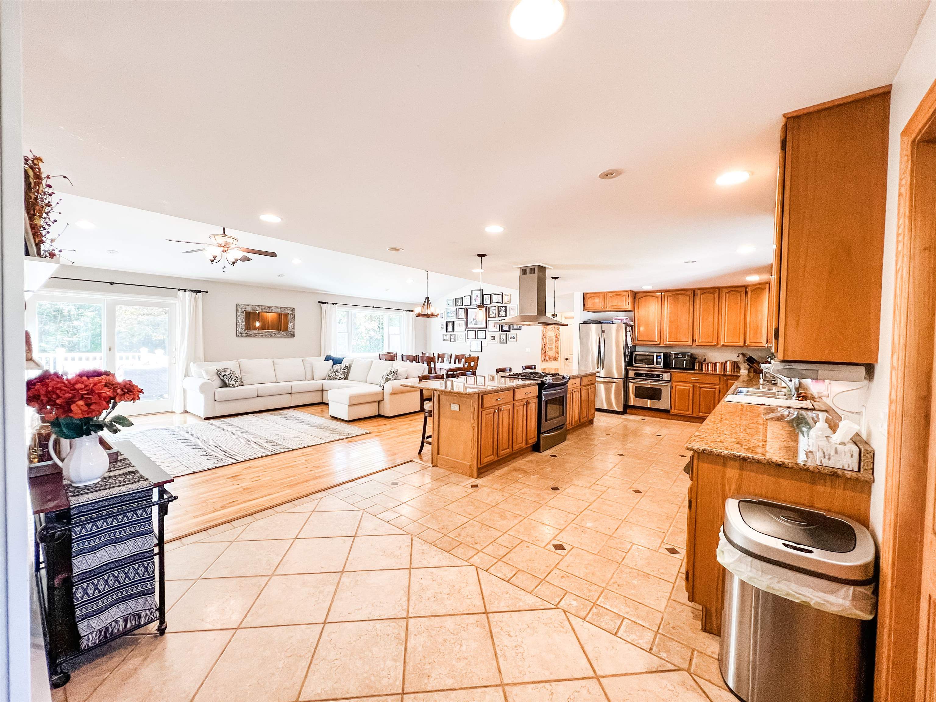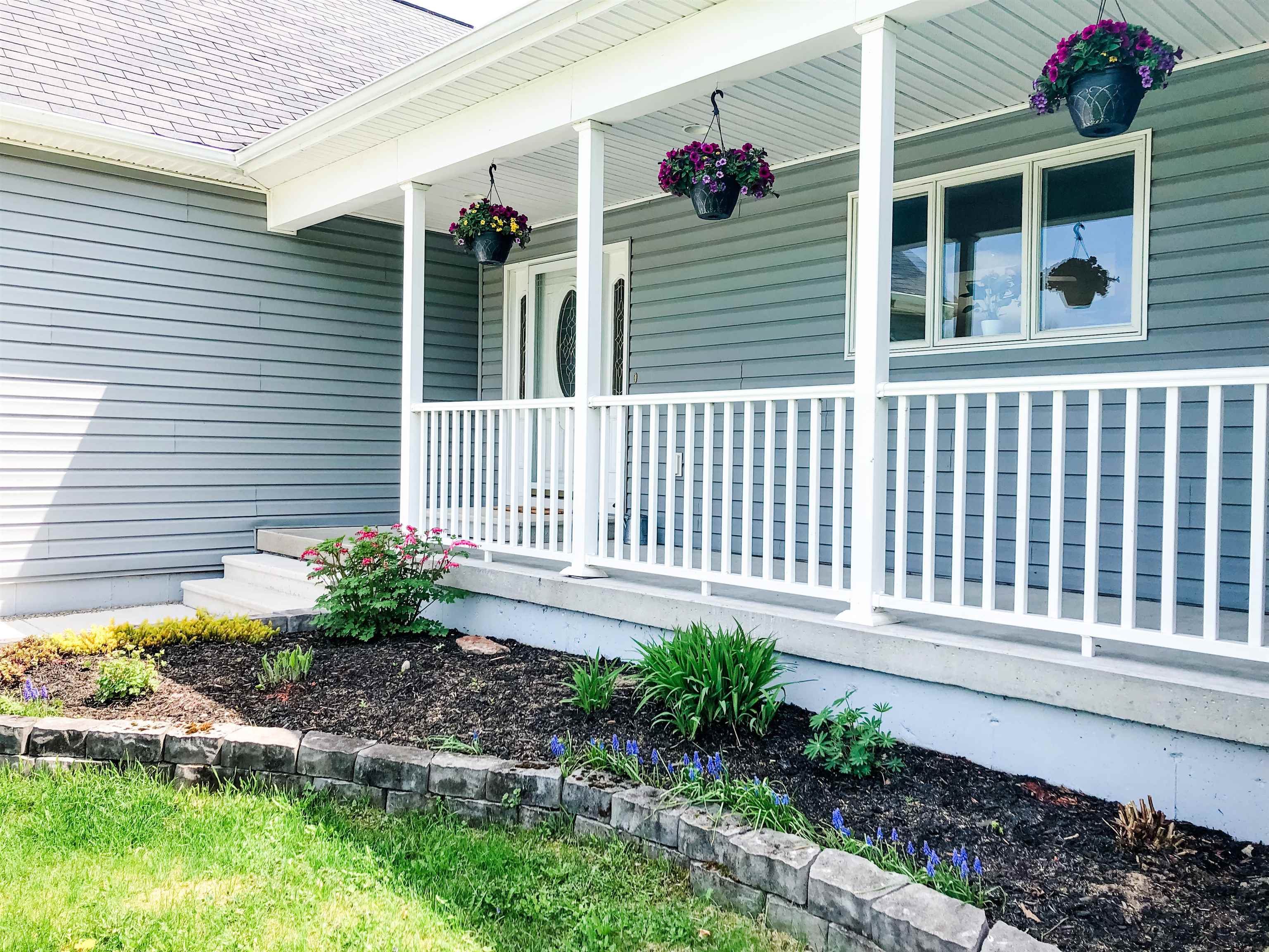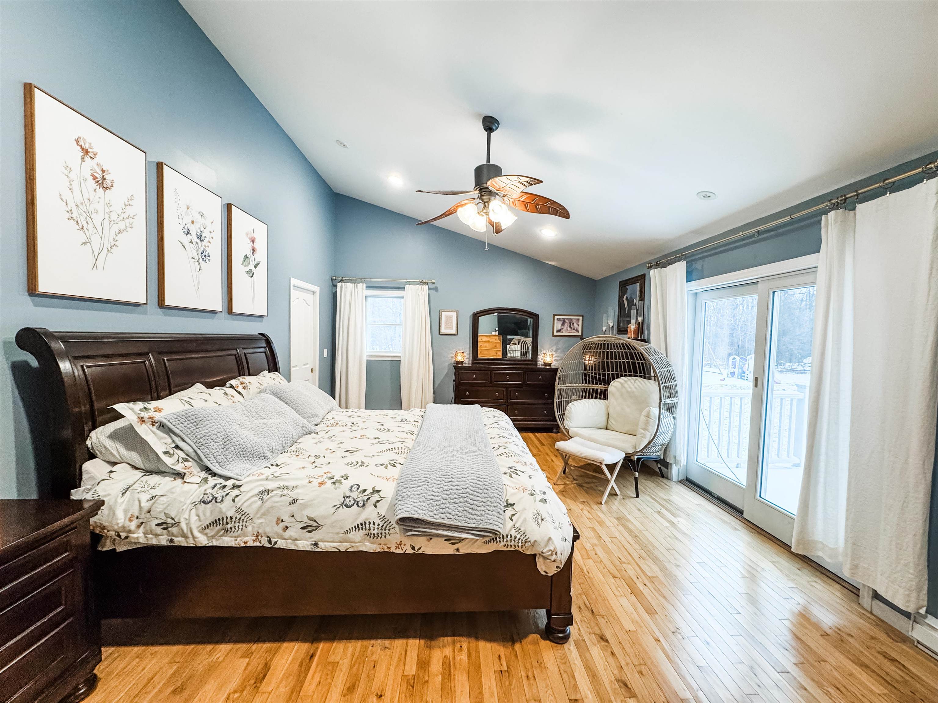 A BEAUTY WITH A VIEW!! Built in 2006 this 4 bedroom home has a view of the St. Lawrence River. There is 2,819 sq.ft. of living space with an additional 1,200 sq.ft. in the finished basement area. It sits on approx. 12.70 acres of land and is beautifully landscaped. There are TWO garages. One is a 2 car that is attached to the home. The other garage sits off to the side of driveway. It is 32'' x 40'' in size with a workshop off the back and stairs that lead to overhead storage. Both garages are heated. The exterior of the home is stone/vinyl, and there is a covered front porch and a large new Trex deck off the back. The interior features a large, open "great room" that consists of the dining, living room, and kitchen. The oak kitchen boasts granite counter tops PLUS a large center island which is also granite. There are stainless steel appliances including a refrigerator, built-in convection oven and oven with warming drawer, an electric oven, a propane cooktop, and a dishwasher. There is recessed lighting, tons of cabinets, and ceramic tile flooring. The dining and living area are spacious with sliding doors out to the back deck. The main floor laundry room has one wall with counter space, and the washer and dryer are included. The flooring throughout the home is oak hardwood except for the ceramic tile in the bathrooms and kitchen. Also, the 4th bedroom (12'' x22'') is the bonus room above the garage. It has a huge triangle shaped window providing a river view. This room has solid bamboo flooring. The primary bedroom has sliding doors to the deck--the primary bath features a Jacuzzi (10) jetted tub, separate shower, and double vanity sink. There is a family room in the basement that is 22''6 x 43''6 in size!! Added features to this home include: a Harman Pellet stove for added warmth, new high velocity Central Air, vaulted ceilings, all electric heat (Massena Electric), new hot water heater, and a new roof on the house and detached garage (one year). The quality and Craftsmanship of this home are truly astounding. This truly could be the one---the home of your dreams!
