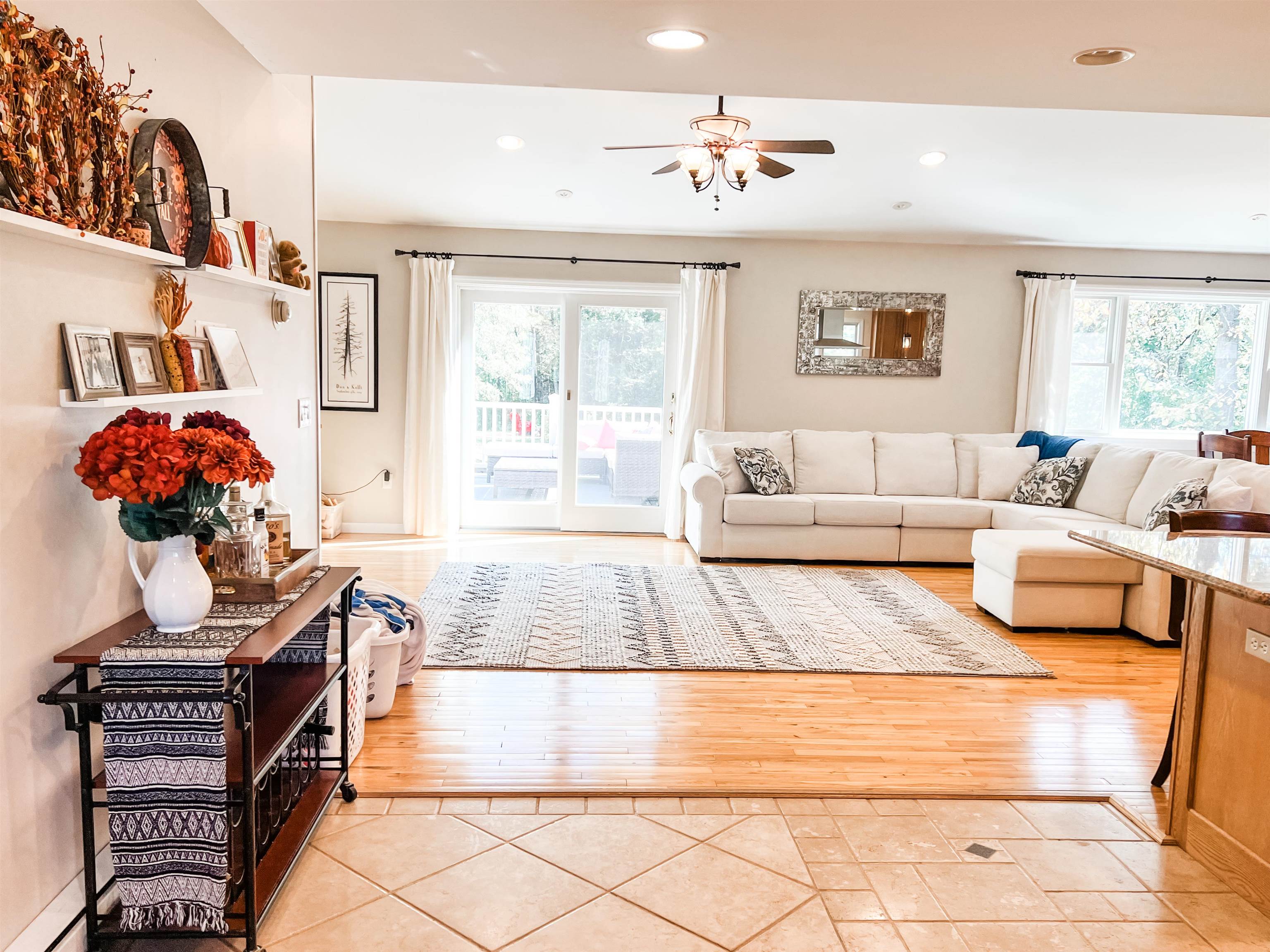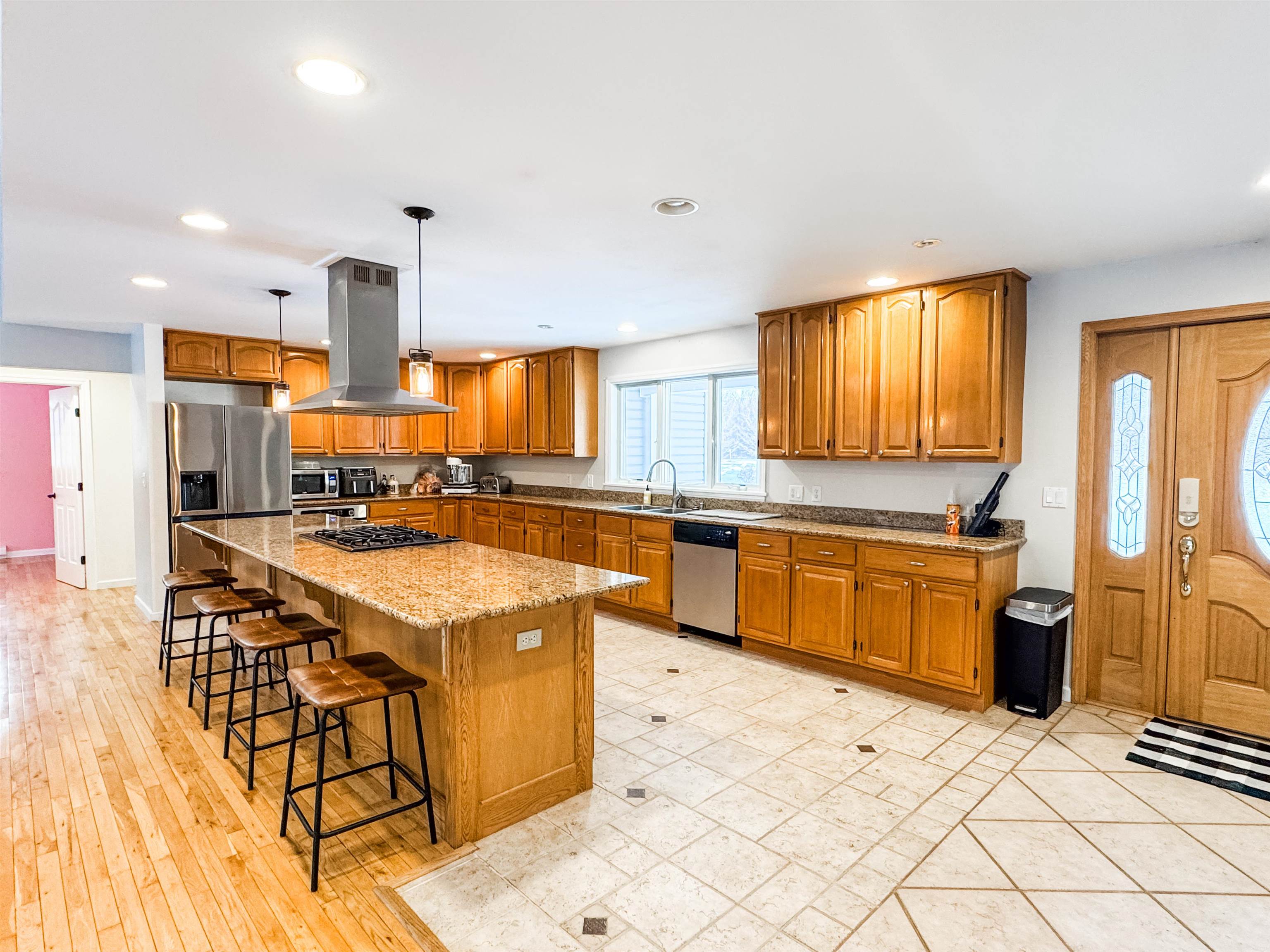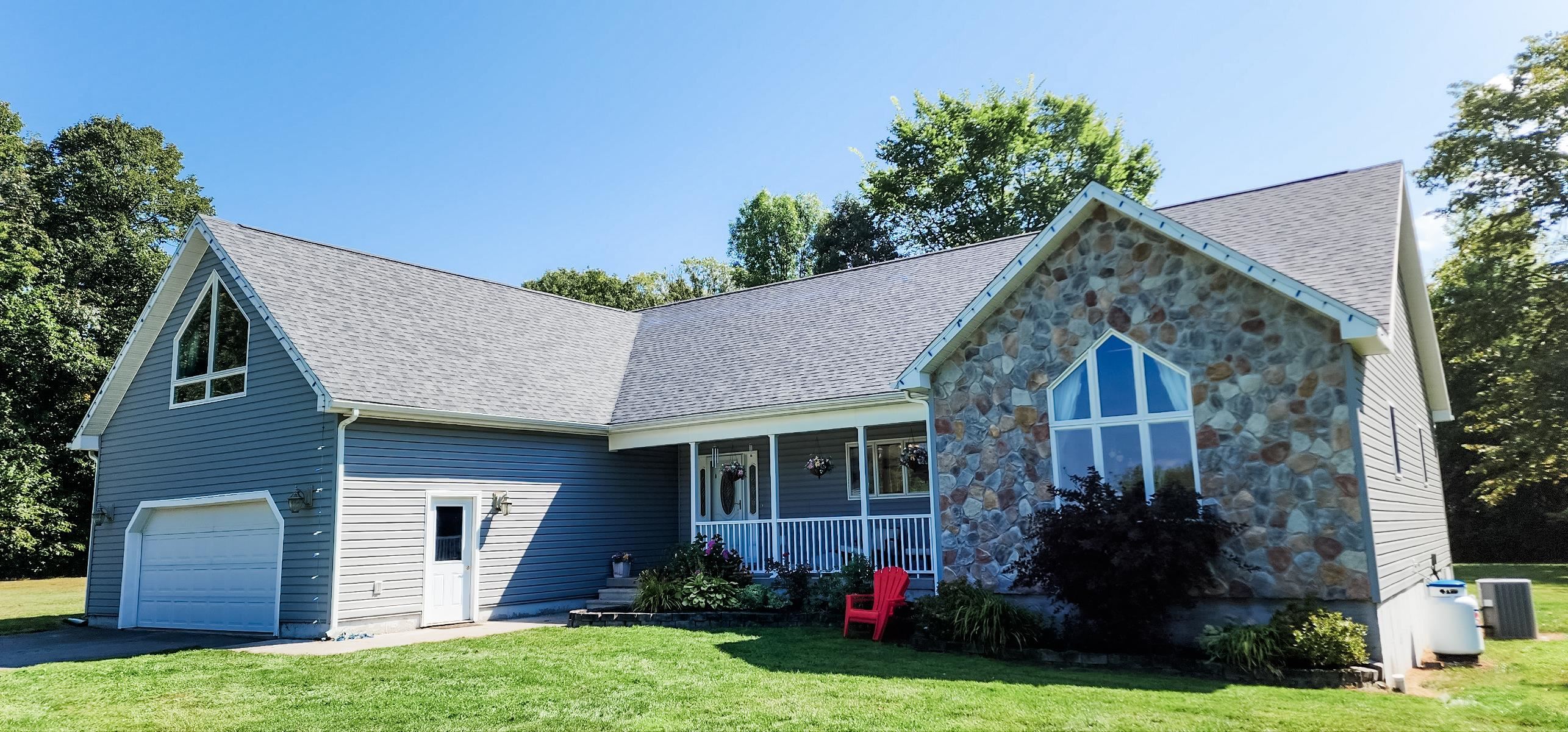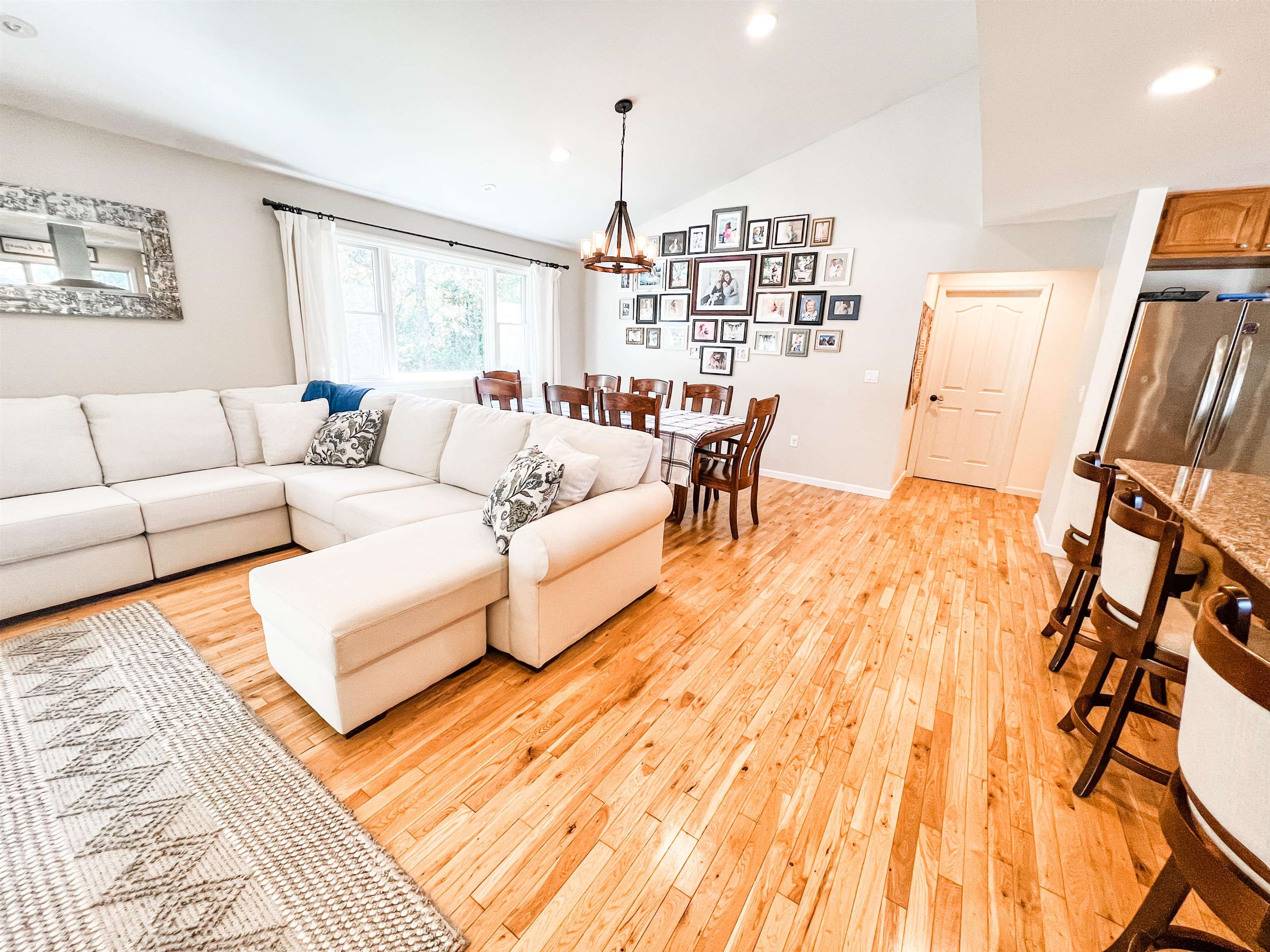 A BEAUTY WITH A VIEW!! Built in 2006 this 4 bedroom home has a view of the St. Lawrence River. There is 2,819 sq.ft. of living space with an additional 1,200 sq.ft. in the finished basement area. It sits on approx. 12.70 acres of land and is beautifully landscaped. There are TWO garages. One is a 2 car that is attached to the home. The other garage sits off to the side of driveway. It is 32'' x 40'' in size with a workshop off the back and stairs that lead to overhead storage. Both garages are heated. The exterior of the home is stone/vinyl, and there is a covered front porch and a large new Trex deck off the back. The interior features a large, open "great room" that consists of the dining, living room, and kitchen. The oak kitchen boasts granite counter tops PLUS a large center island which is also granite. There are stainless steel appliances including a refrigerator, built-in convection oven and oven with warming drawer, an electric oven, a propane cooktop, and a dishwasher. There is recessed lighting, tons of cabinets, and ceramic tile flooring. The dining and living area are spacious with sliding doors out to the back deck. The main floor laundry room has one wall with counter space, and the washer and dryer are included. The flooring throughout the home is oak hardwood except for the ceramic tile in the bathrooms and kitchen. Also, the 4th bedroom (12'' x22'') is the bonus room above the garage. It has a huge triangle shaped window providing a river view. This room has solid bamboo flooring. The primary bedroom has sliding doors to the deck--the primary bath features a Jacuzzi (10) jetted tub, separate shower, and double vanity sink. There is a family room in the basement that is 22''6 x 43''6 in size!! Added features to this home include: a Harman Pellet stove for added warmth, new high velocity Central Air, vaulted ceilings, all electric heat (Massena Electric), new hot water heater, and a new roof on the house and detached garage (one year). The quality and Craftsmanship of this home are truly astounding. This truly could be the one---the home of your dreams!