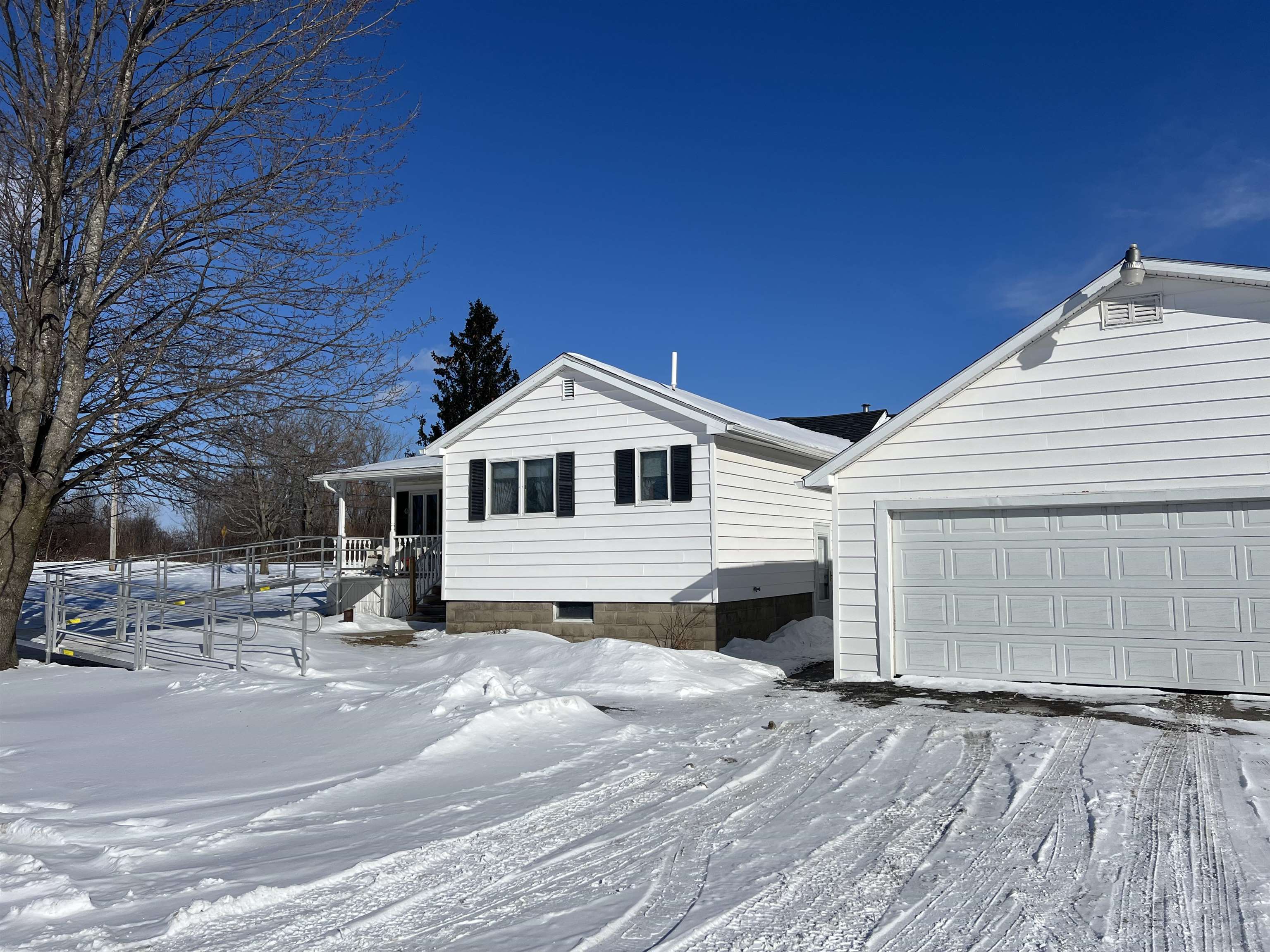 First time offered for sale is this sprawling ranch on almost 2 acres of land in Massena Electric. Three bedrooms, 2 full bathrooms with one fully remodeled with walk-in shower and porcelain tile. There is a master bedroom suite with a full bathroom also. There is an oversized eat-in oak kitchen with granite counters which leads to an oversized family room all with windows overlooking a beautiful yard and a screen house with windows. There is also a greenhouse for the avid gardener! There are four garages with one presently used as a workshop but can be opened up for 4 stalls. There is central air-conditioning and tons of space in the basement. There is a door that walks out to the back yard to access the garden and green house area. This is just outside of Massena and close to the St. Lawrence River. Beach and golf course are minutes away. Make an appointment to see this exclusive offering!
