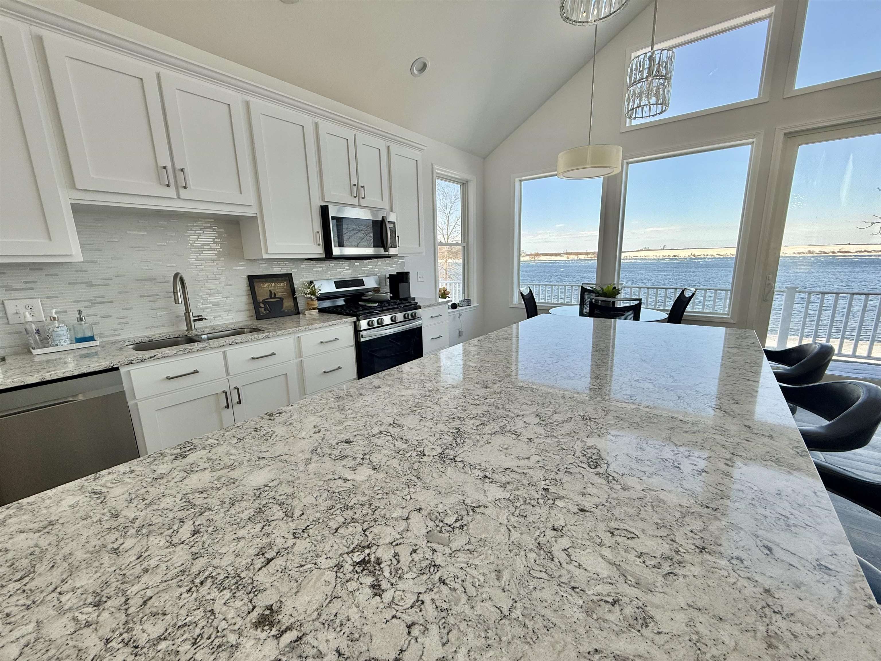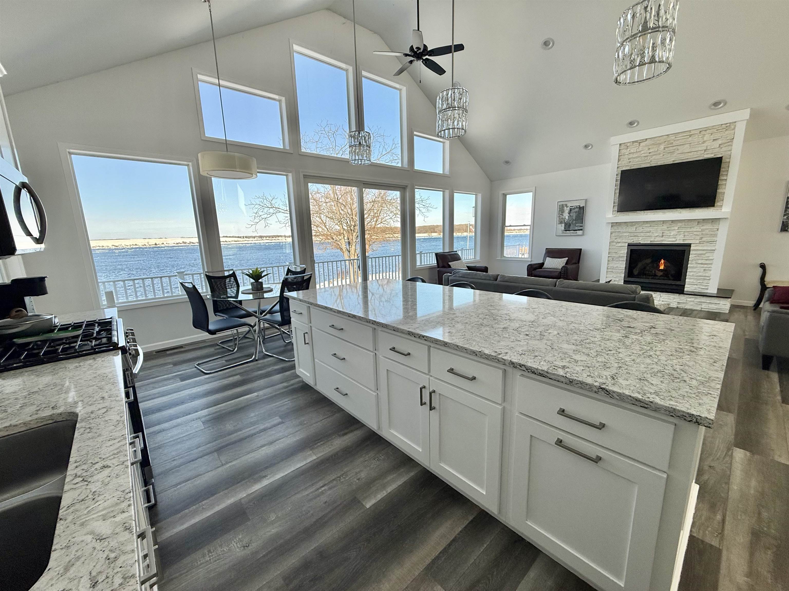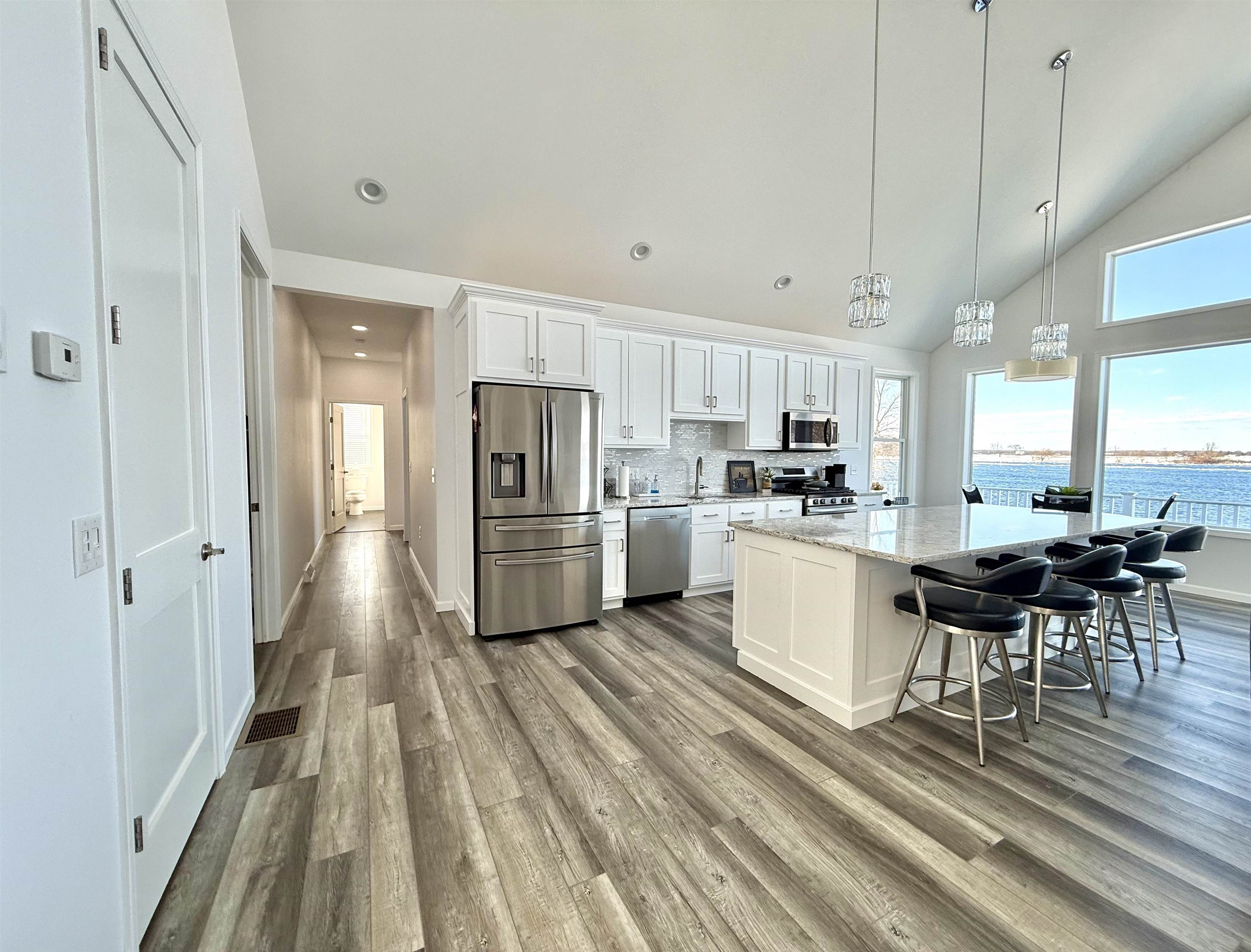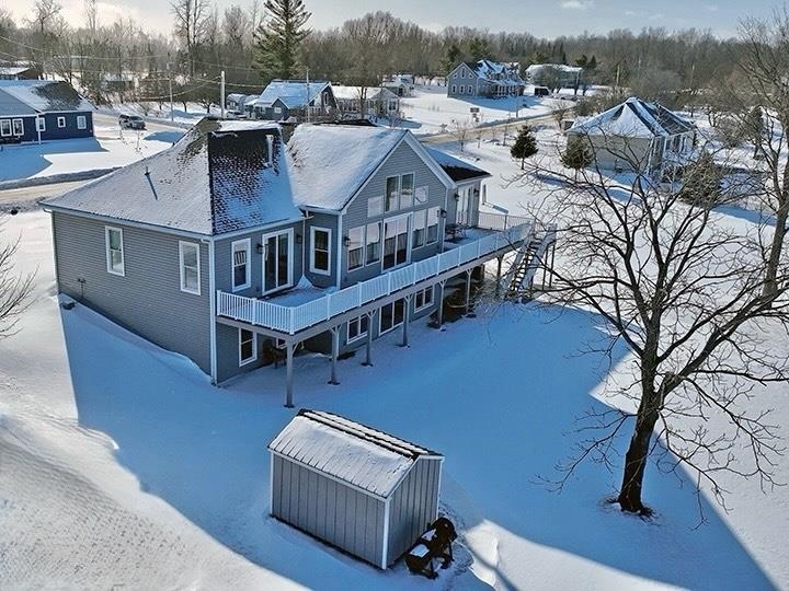 Rare Opportunity– Embrace year-round waterfront living in this exquisite custom-built residence perched along 120 feet of level St. Lawrence River shoreline, in the highly sought-after village of Waddington. Built in 2021, offering 4,300 square feet of quality craftsmanship and thoughtfully designed living space - blending sophistication with comfort, privacy, and timeless style. Step inside through impressive solid wood 10-foot glass doors into an open foyer, setting the tone for refined waterfront living. Here, the open concept layout seamlessly connects the kitchen, dining, and living areas beneath soaring 20-foot cathedral ceilings and expansive floor-to-ceiling windows, framing the breathtaking river views and unparalleled sunsets, filling the home with natural light. Featuring a floor-to-ceiling surround and quartz hearth, the fireplace creates a warm, inviting ambiance. Double glass doors open onto the full-length waterside deck—great for entertaining guests or relaxing by the water. The gourmet kitchen features solid quartz countertops, a spacious island, abundant cabinetry, premium stainless-steel appliances, and a walk-in pantry—perfect for meal preparation and socializing. To the right of the main living area is the primary wing—a private retreat with dual walk-in closets and a spa-inspired en-suite bathroom, complete with a quartz double vanity, and a double-headed shower. Sliding glass doors through the primary bedroom offer direct access to the waterside deck. On the opposite side of the home, two additional bedrooms and a full bath are thoughtfully placed, with each bedroom featuring walk-out glass doors to the deck, ensuring comfort and privacy for family and guests. Completing the main level is a functional mudroom that connects directly to the attached two-car garage, with a conveniently located laundry area. The lower level of the home is designed for both relaxation and productivity. Enjoy a sprawling family and entertainment area with glass doors opening to the stamped concrete waterside patio. One side features a spacious bedroom with river views and a full bathroom, separated by an office nook, while the other side includes an additional bedroom—perfect for guests or hobbies—and an adjacent storage room that can easily serve as a bedroom, both with river views. Additional features include a whole-home generator, central air, water softener, 10-foot interior doors, designer lighting, walk-in closets, recessed lighting, outbuilding for storage, and more. Kitchen appliances and a 30-foot floating dock (with ladder and mooring whips) are included; furnishings and laundry units are negotiable. Located in the charming village of Waddington within walking distance to shops, restaurants, walking trails, and recreational parks with ice skating, pickleball, tennis, and basketball courts, volleyball club, etc. Waddington is famous for hosting the Bassmaster Elite Series, offers world-class carp fishing, and connects to the St. Lawrence snowmobile trail. This home is 20 minutes from the Canadian Bridge to Ottawa, Ogdensburg-Prescott International Airport (with direct flights to DC and Orlando), and Massena International Airport, as well as within an hour of the Adirondack Park and Thousand Islands, and two hours from Lake Placid. Don’t miss this chance to own a remarkable retreat on the St. Lawrence River—schedule your private tour today and experience refined waterfront living.